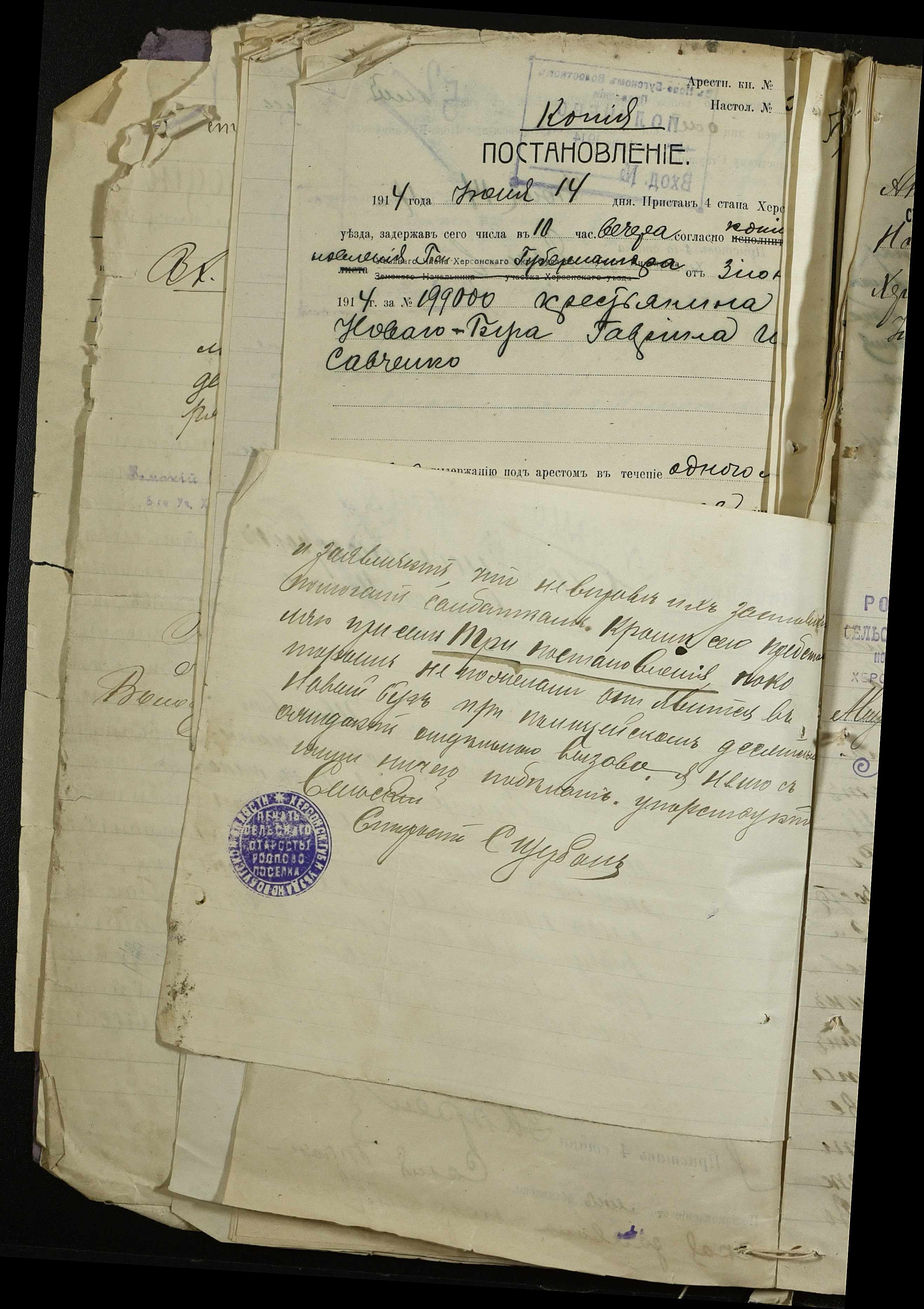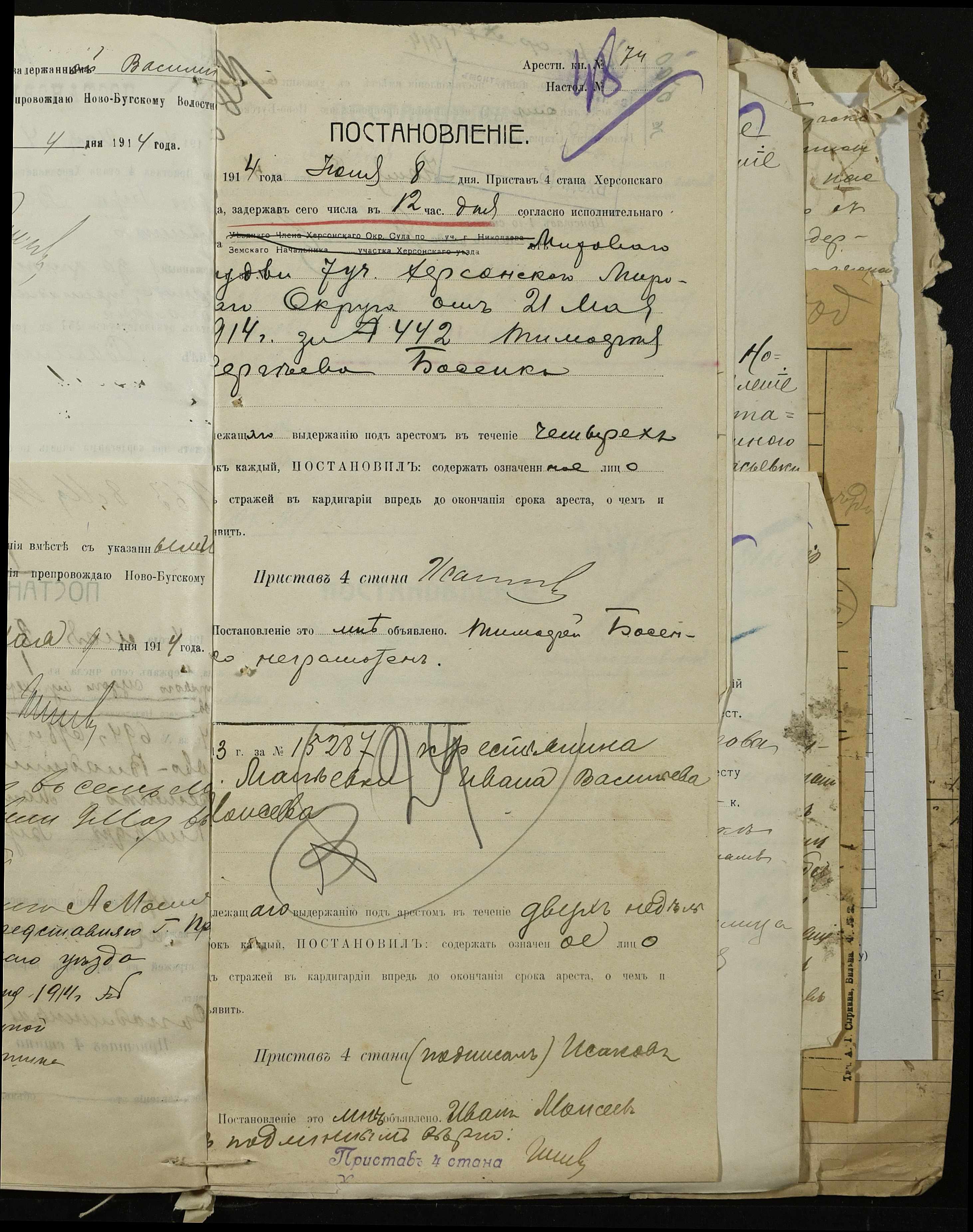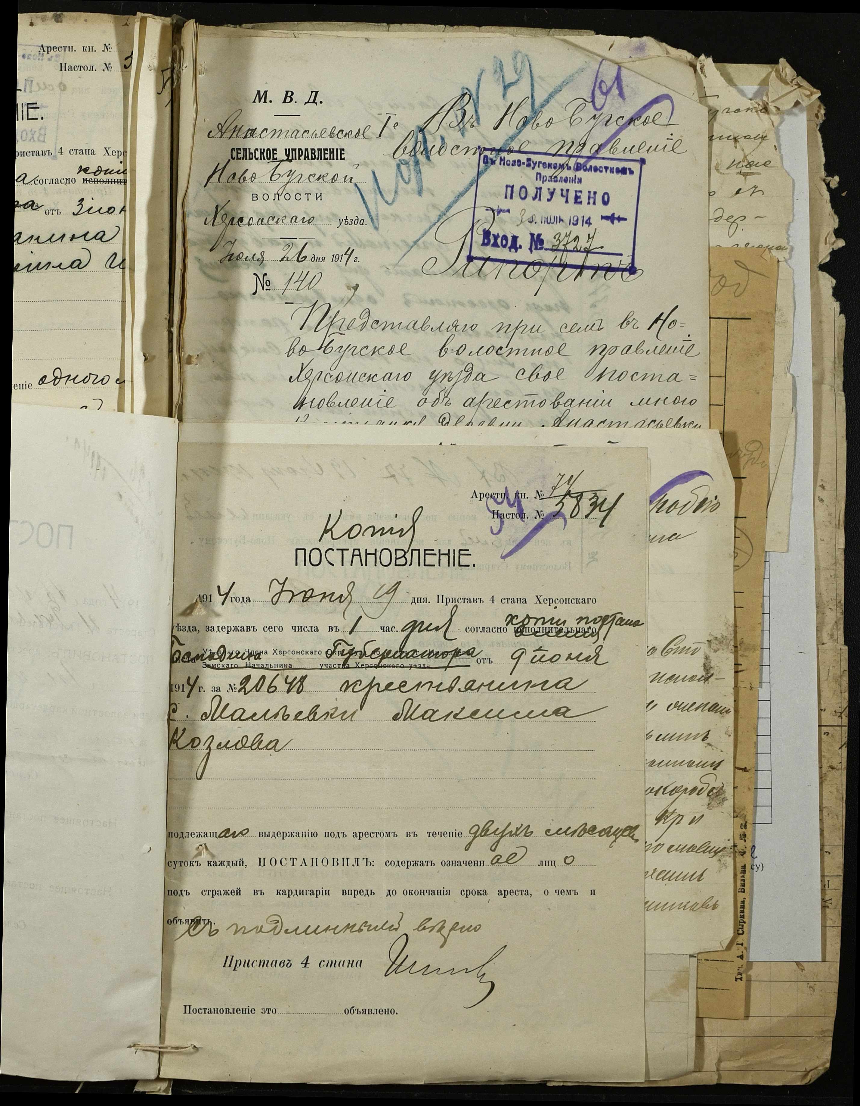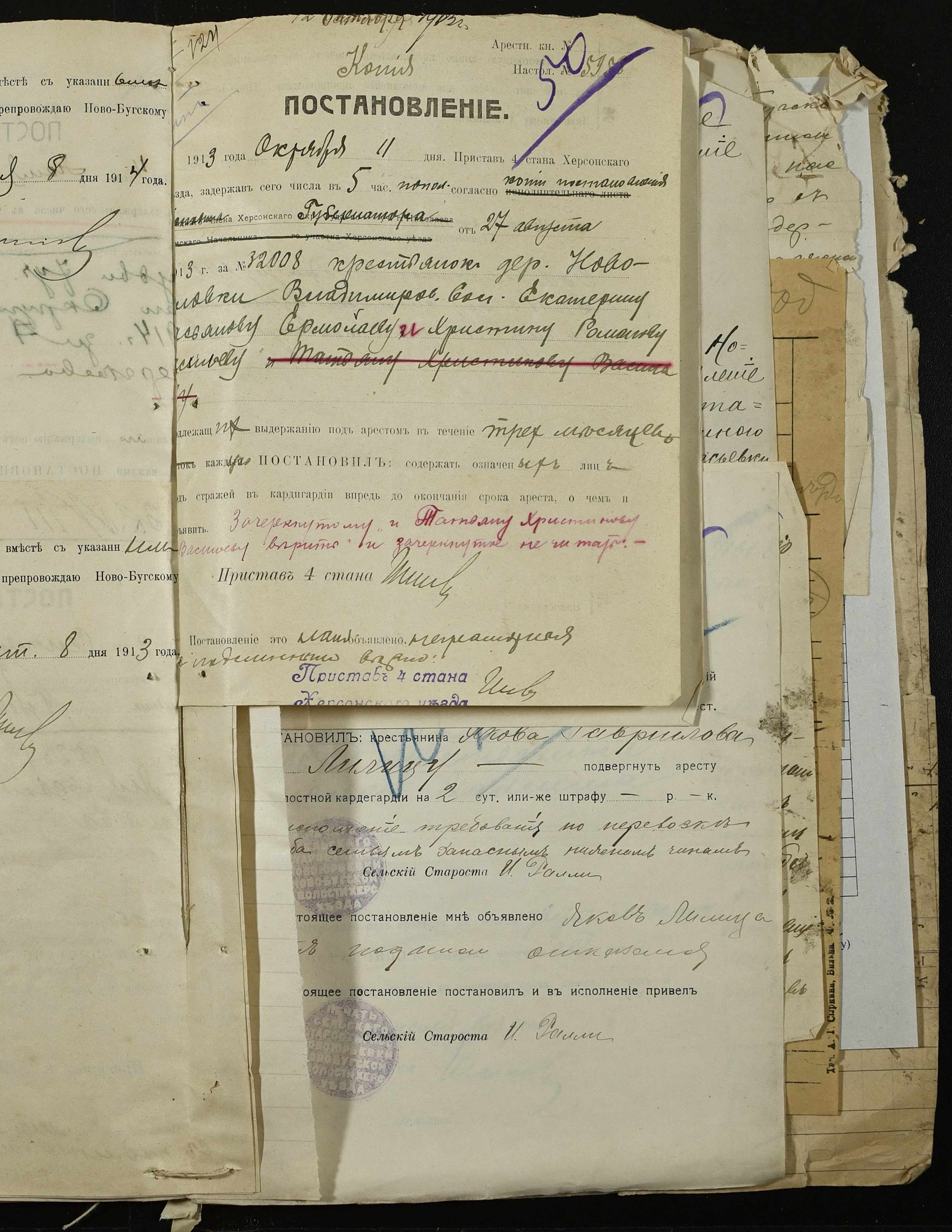 • • • • Справа № 169 “Постанови та рапорти сільського старости м. Новий Буг про арешти та утримання під вартою селян за образу посадових осіб, відмову від виконання різних повинностей”