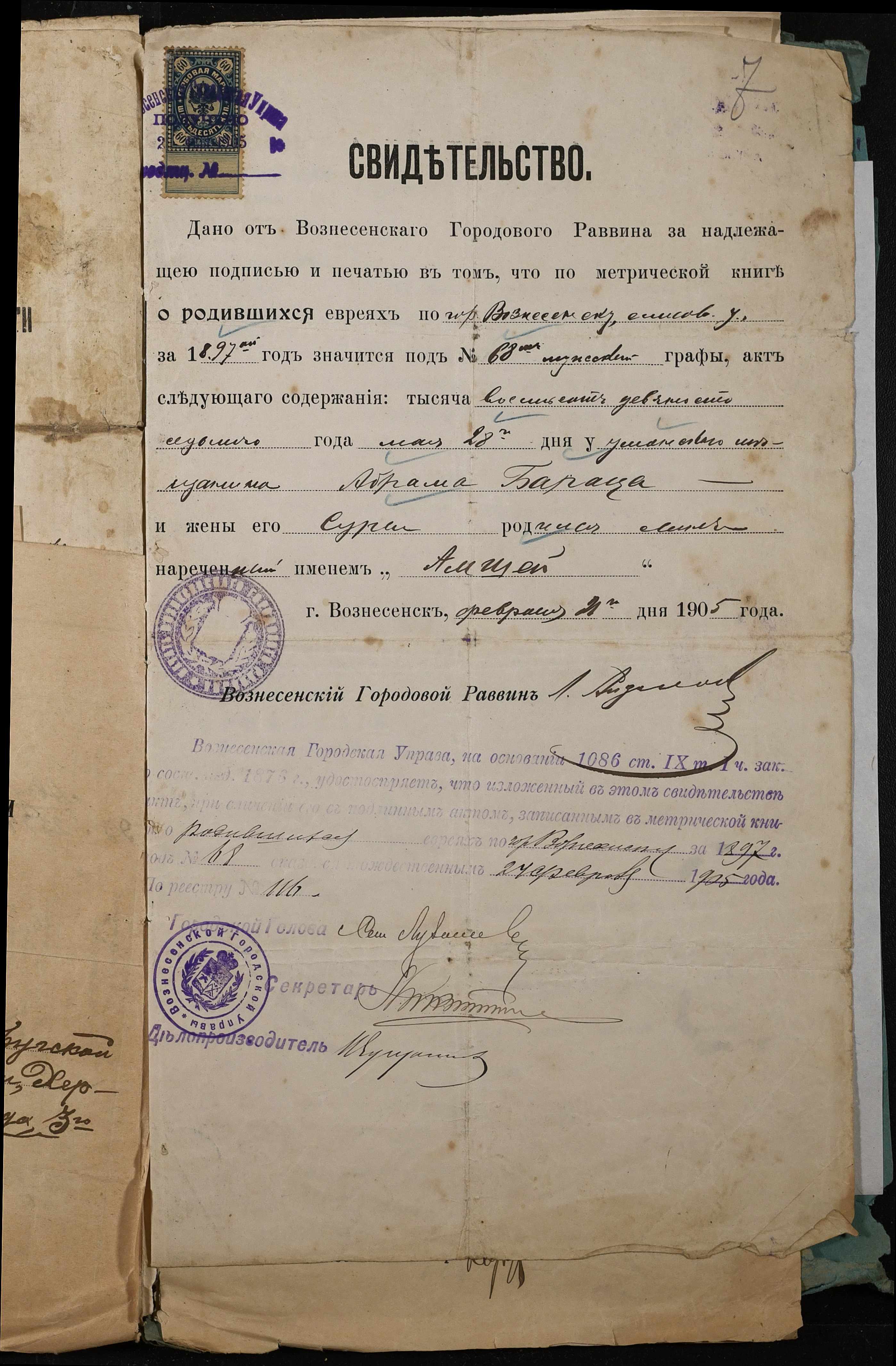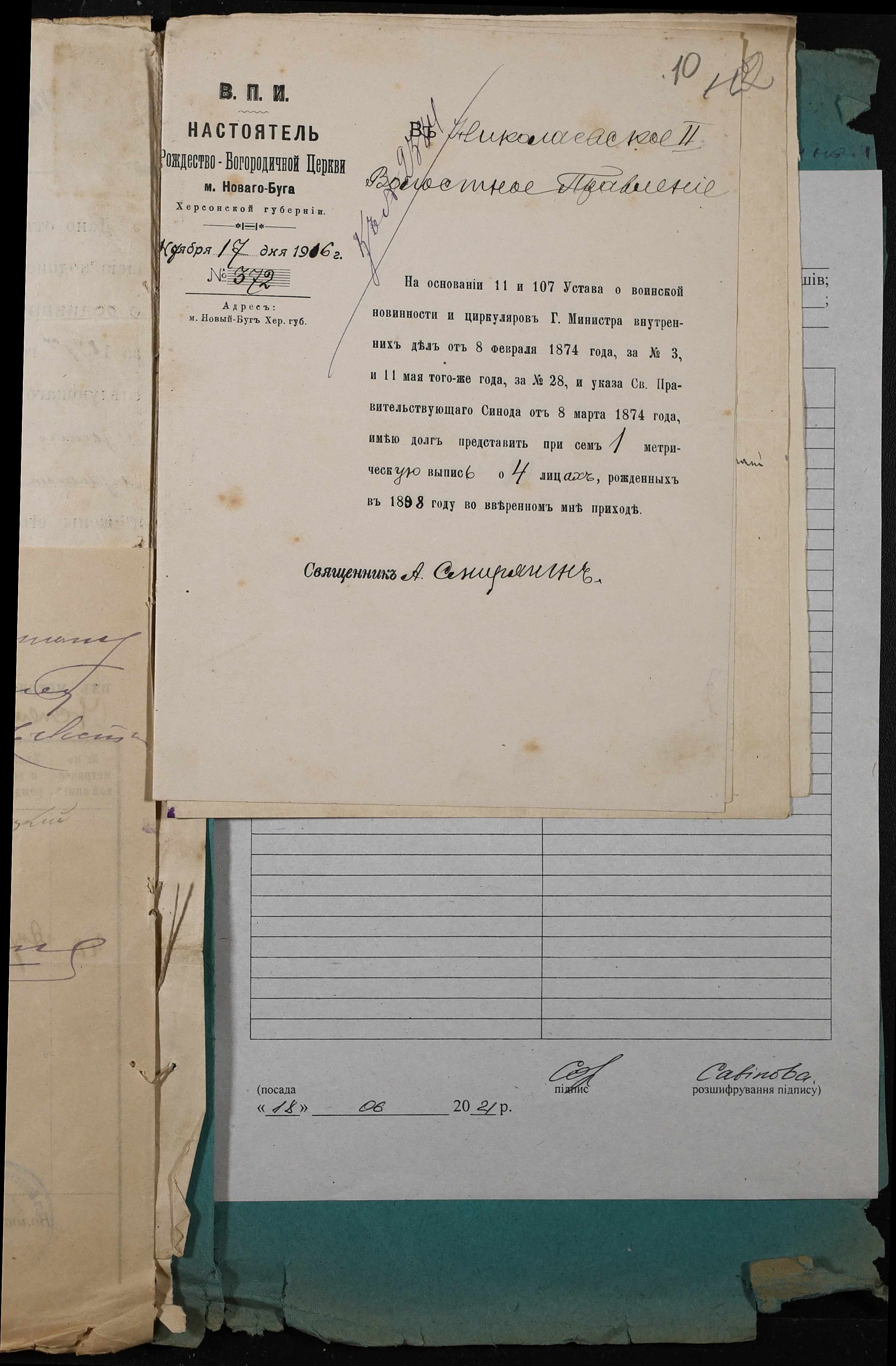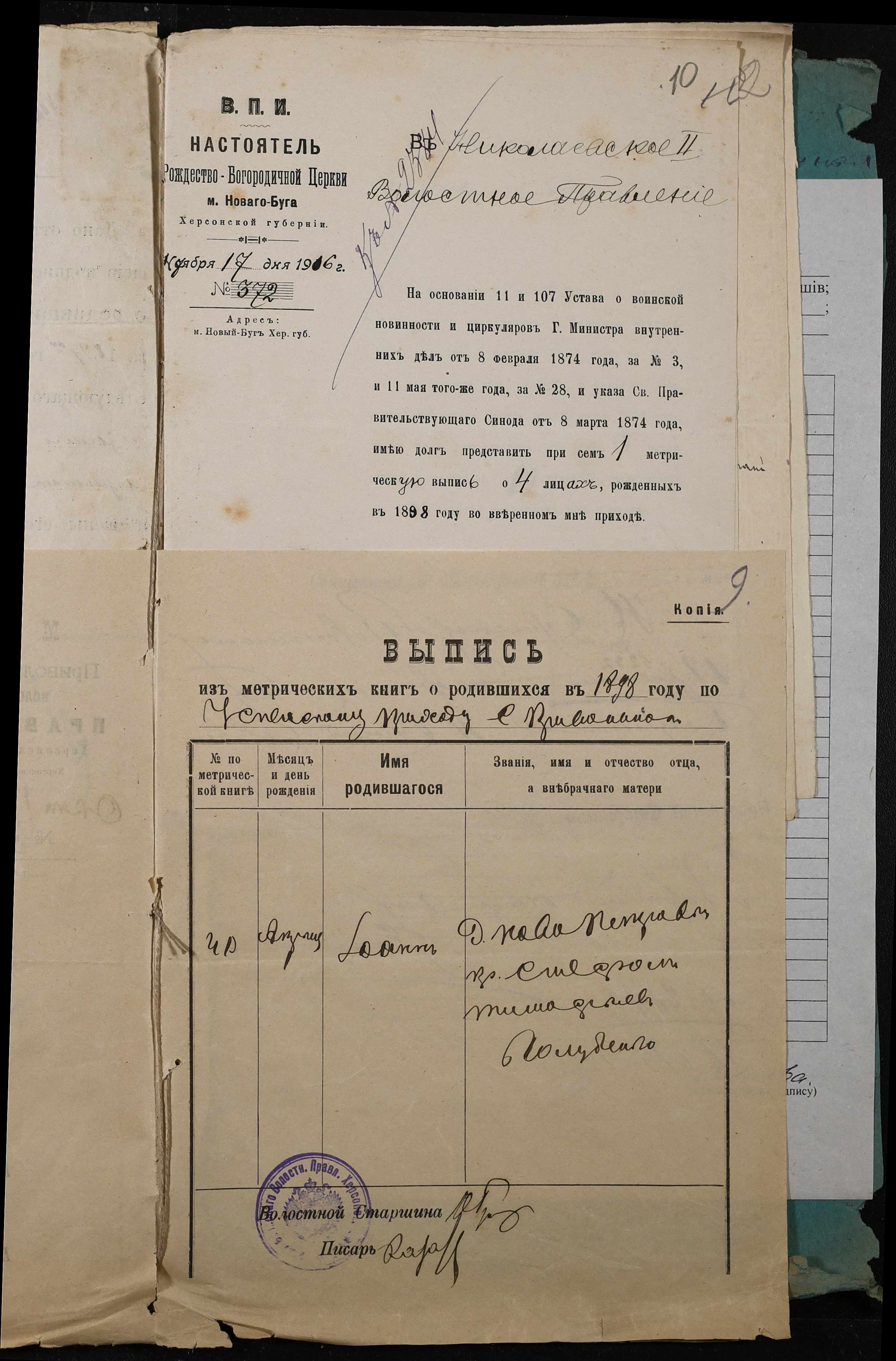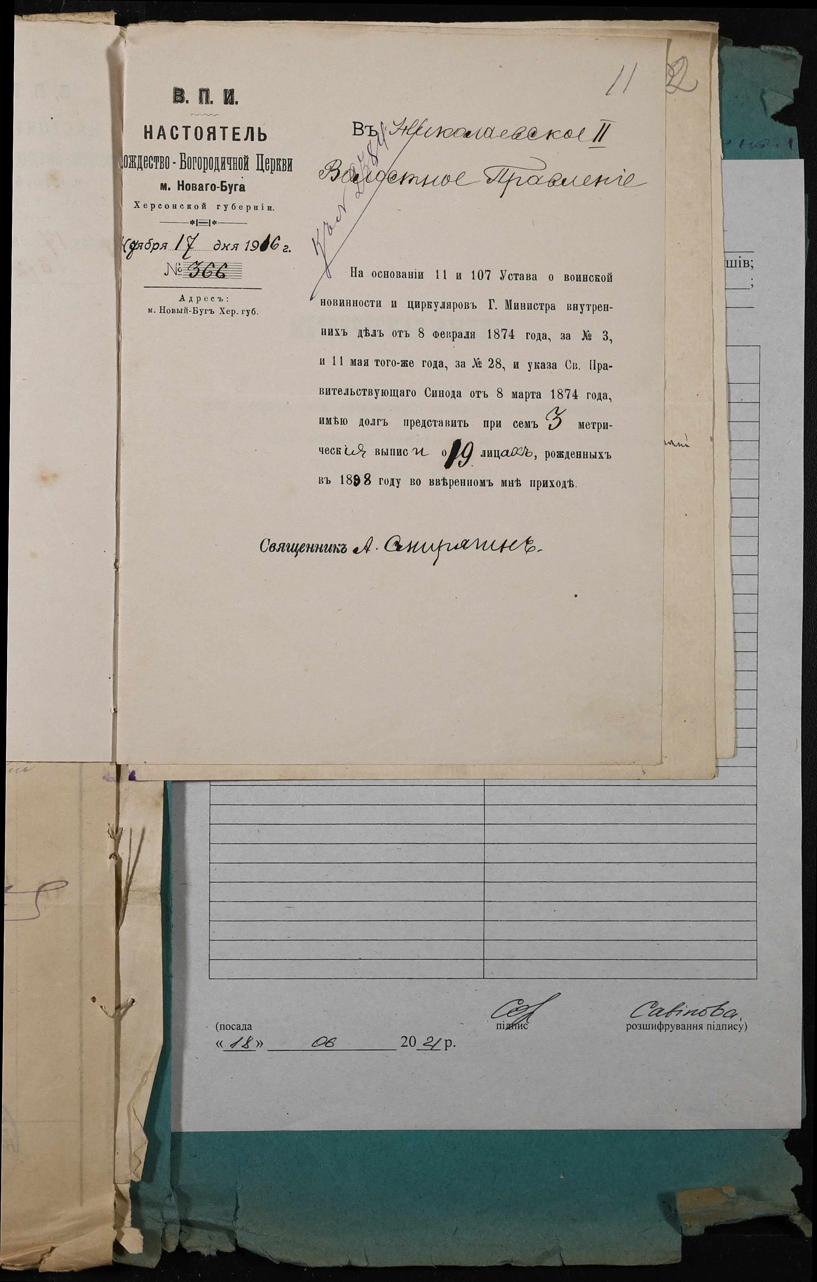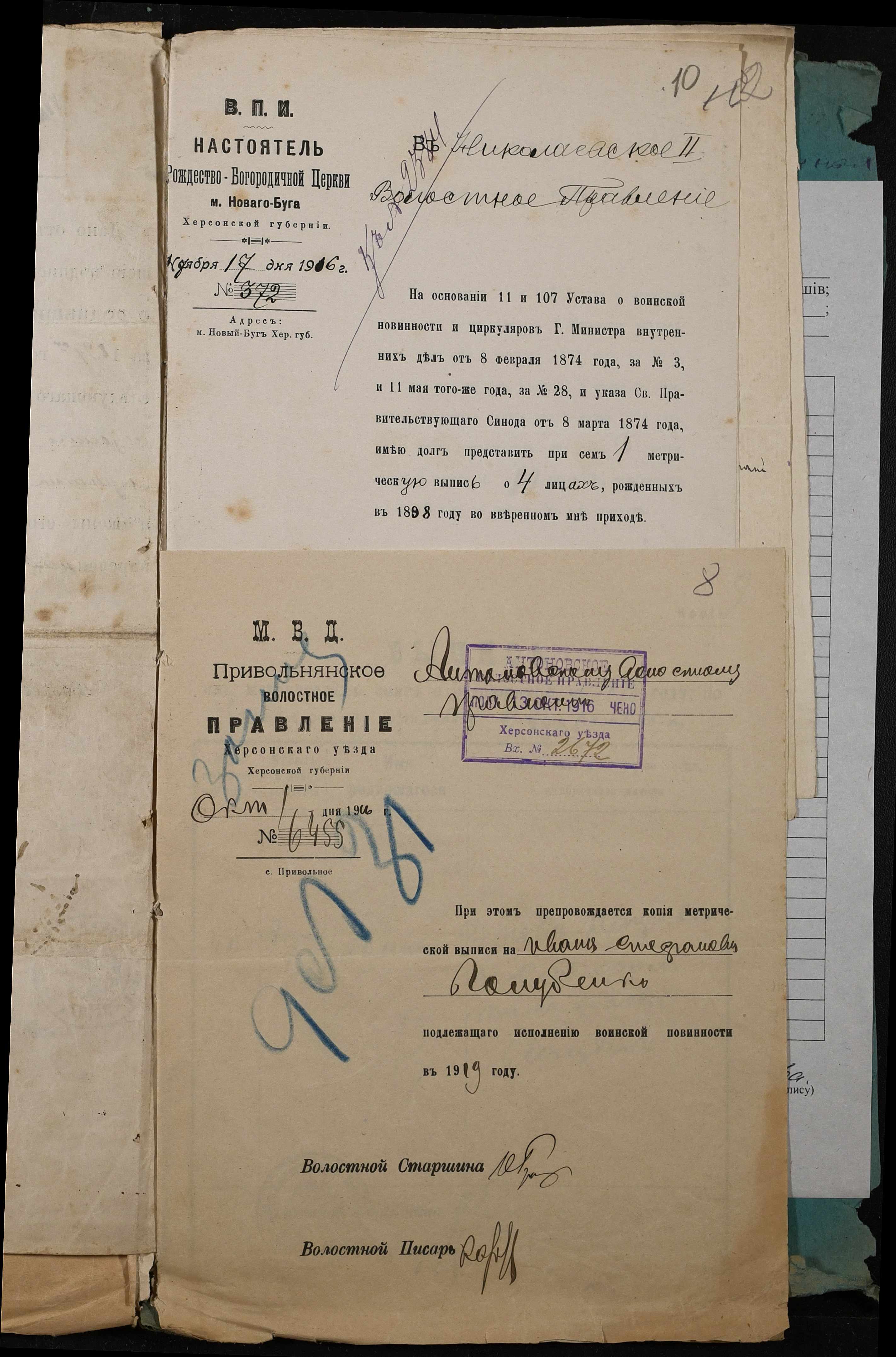 • • • • Справа № 178 “Листування з Херсонським повітовим з військової повинності присутствієм про складання призовного списку, метричні витяги про народження осіб, які підлягають до відбування військової повинності в 1919 році”