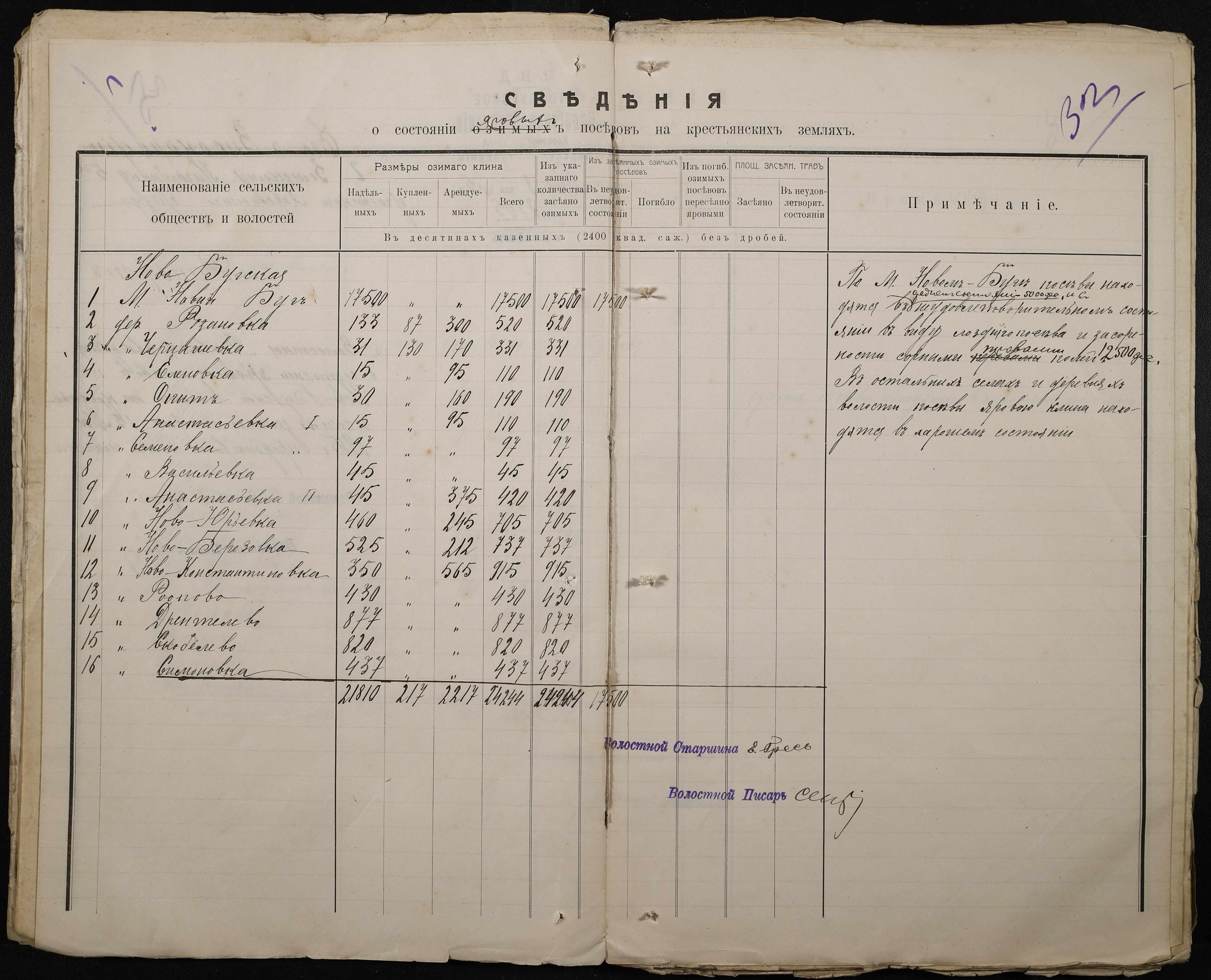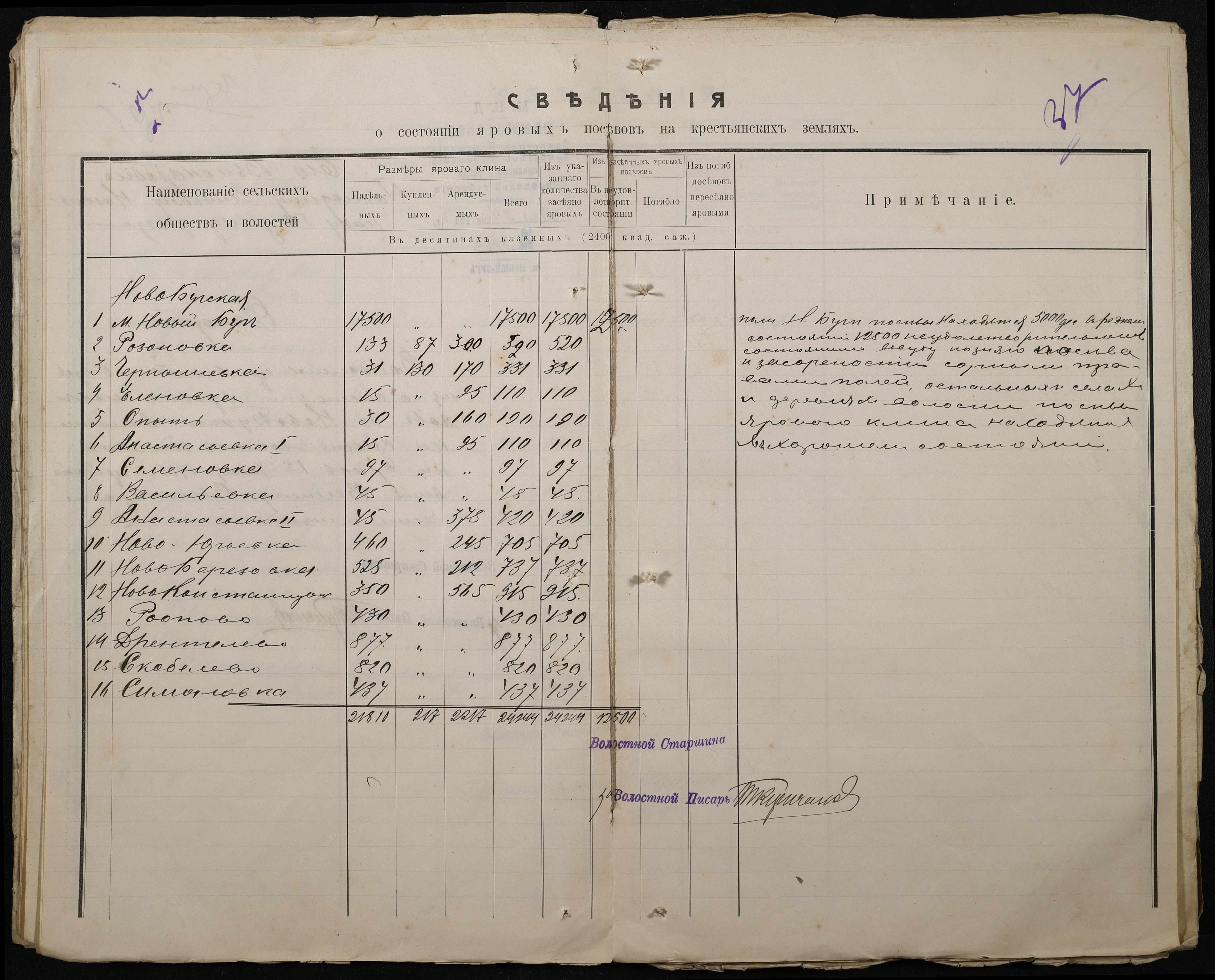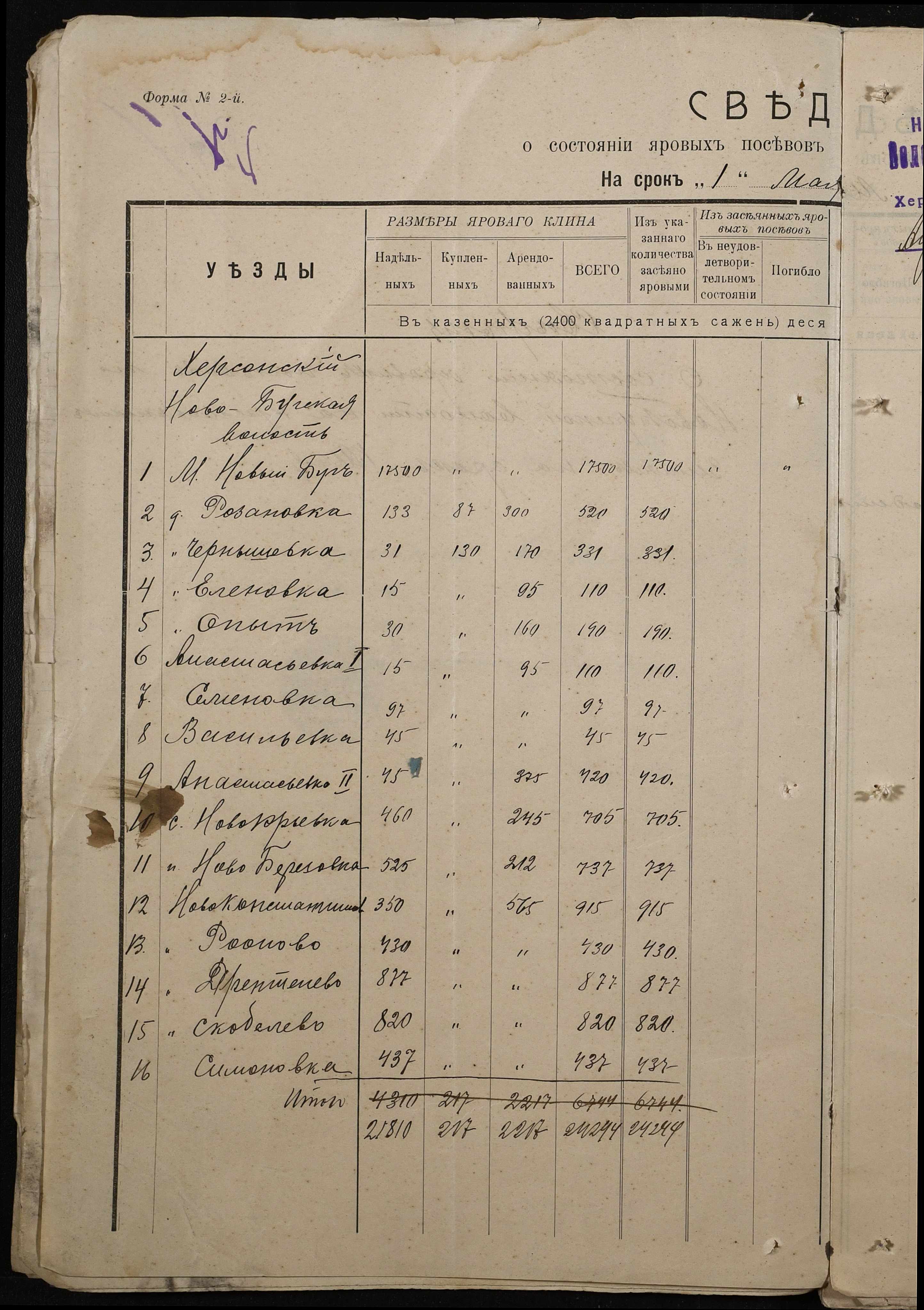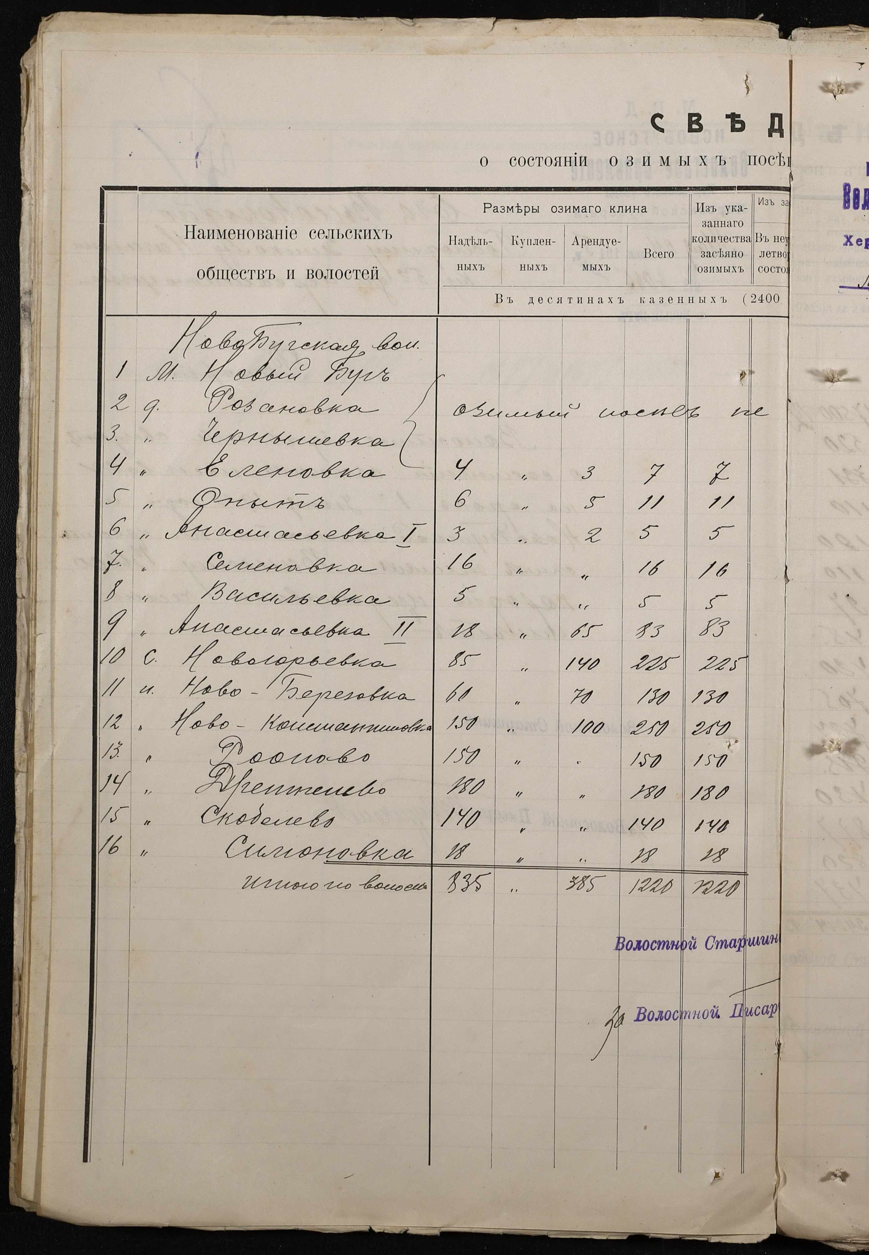 • • • • Справа № 220 “Розпорядження дільничного земського начальника Херсонського повіту та листування з ним про порядок та строки надання відомостей про стан землеробства у волості, відомості про стан селянських озимих та ярих культур, посівних трав у 1915 році”