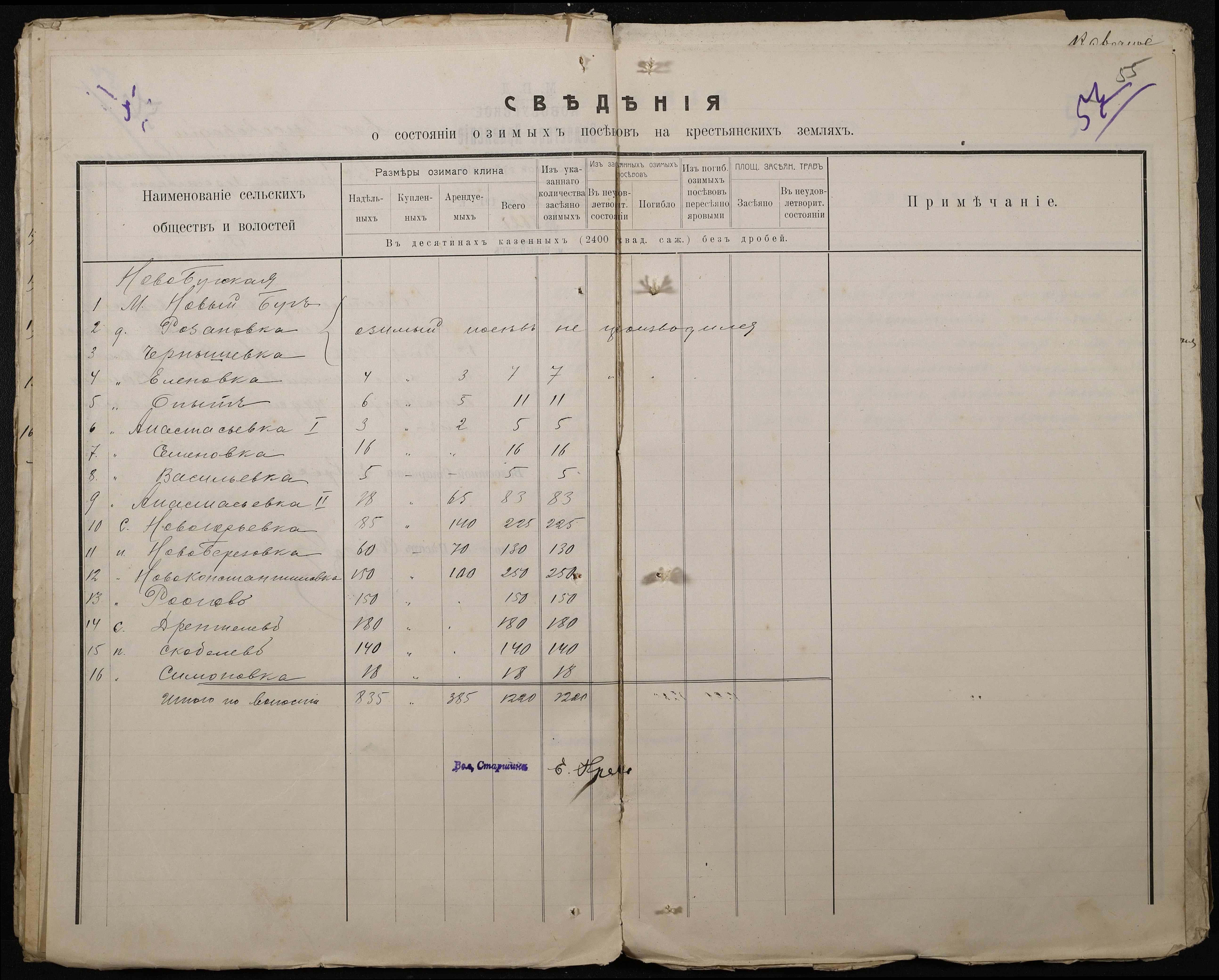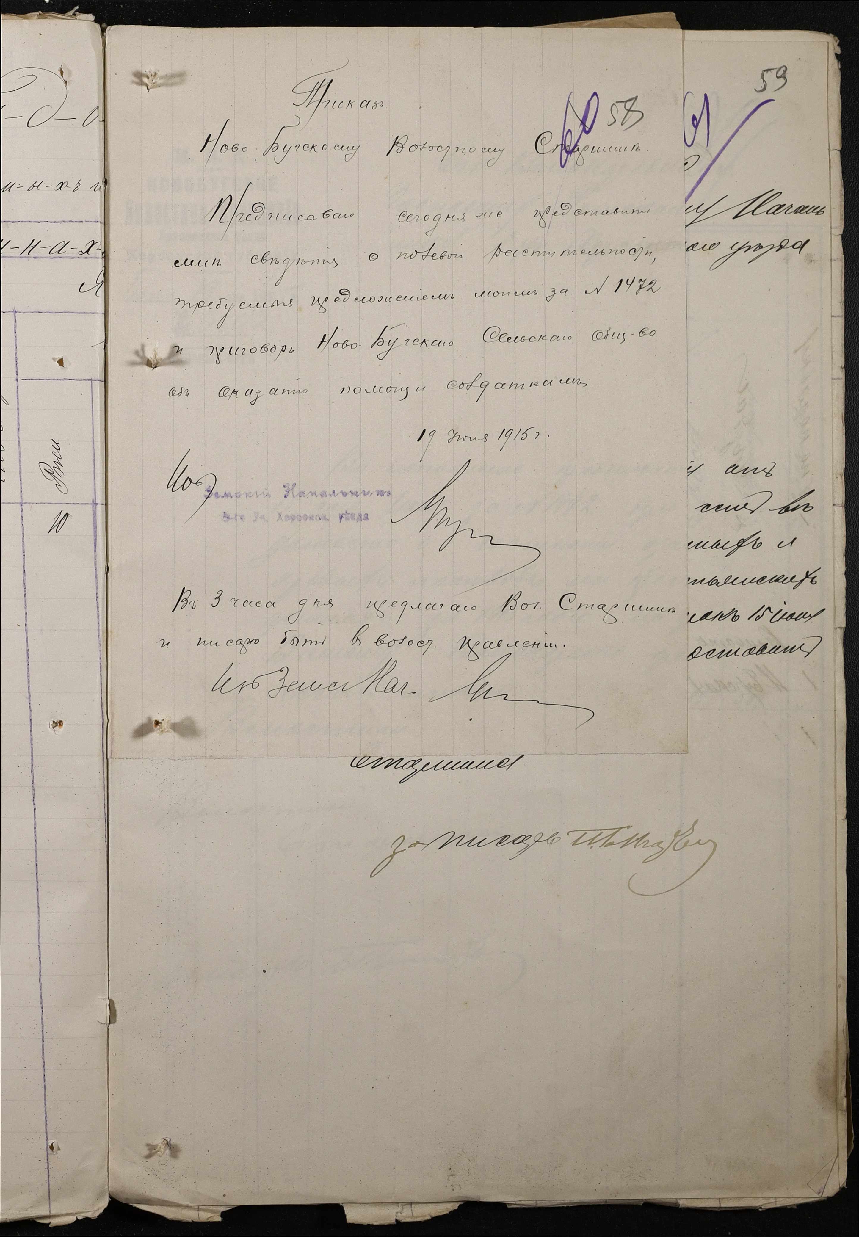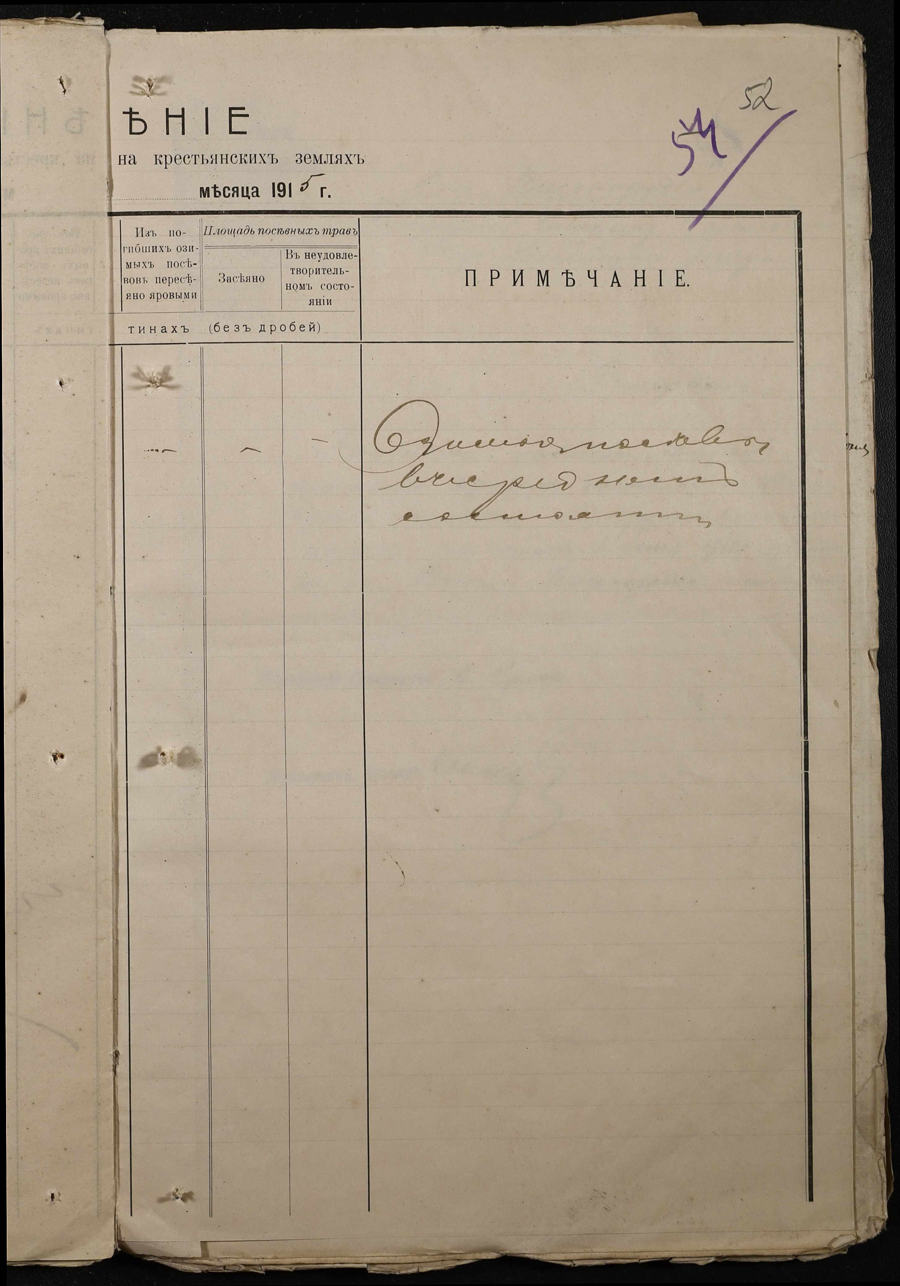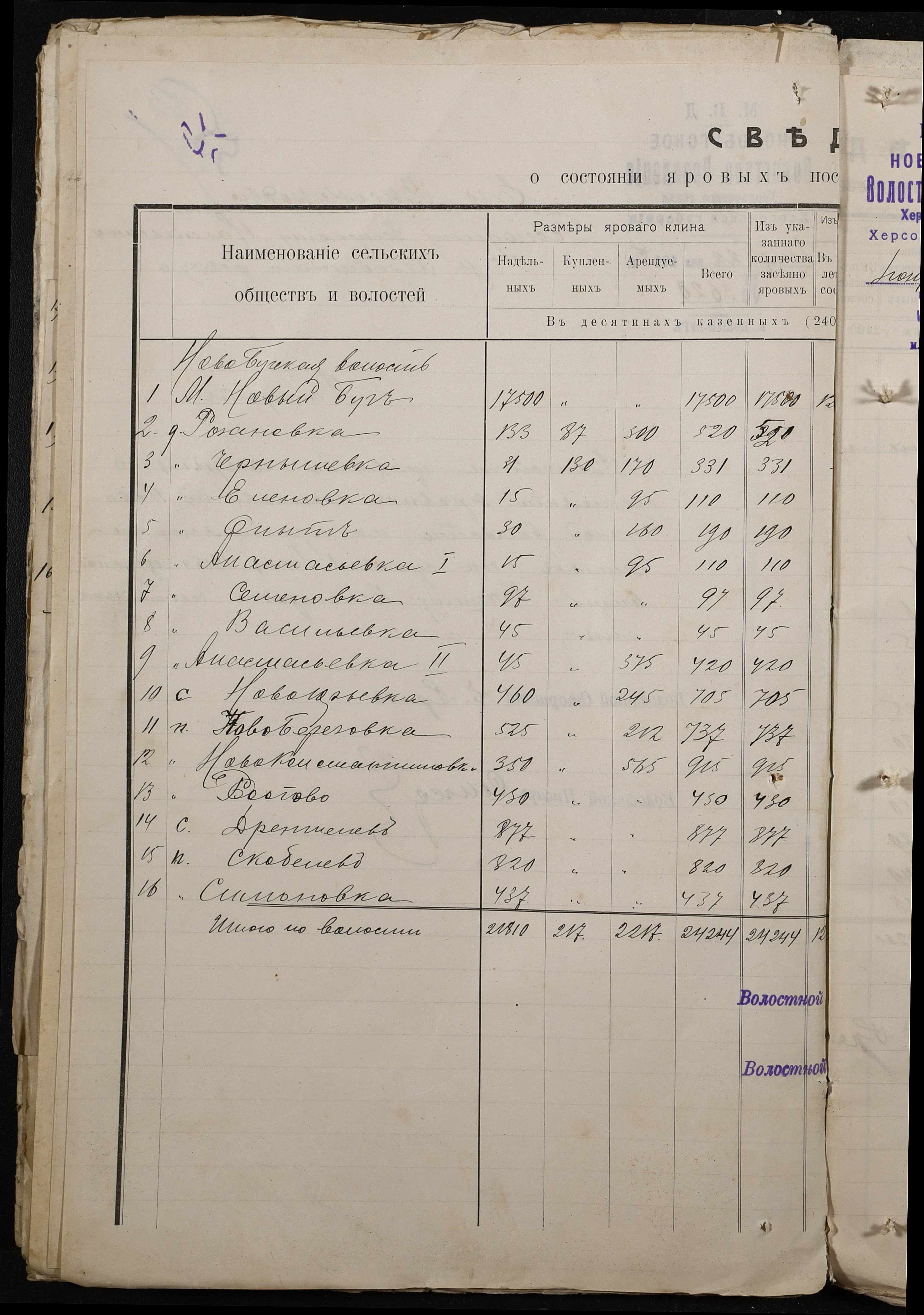 • • • • Справа № 220 “Розпорядження дільничного земського начальника Херсонського повіту та листування з ним про порядок та строки надання відомостей про стан землеробства у волості, відомості про стан селянських озимих та ярих культур, посівних трав у 1915 році”