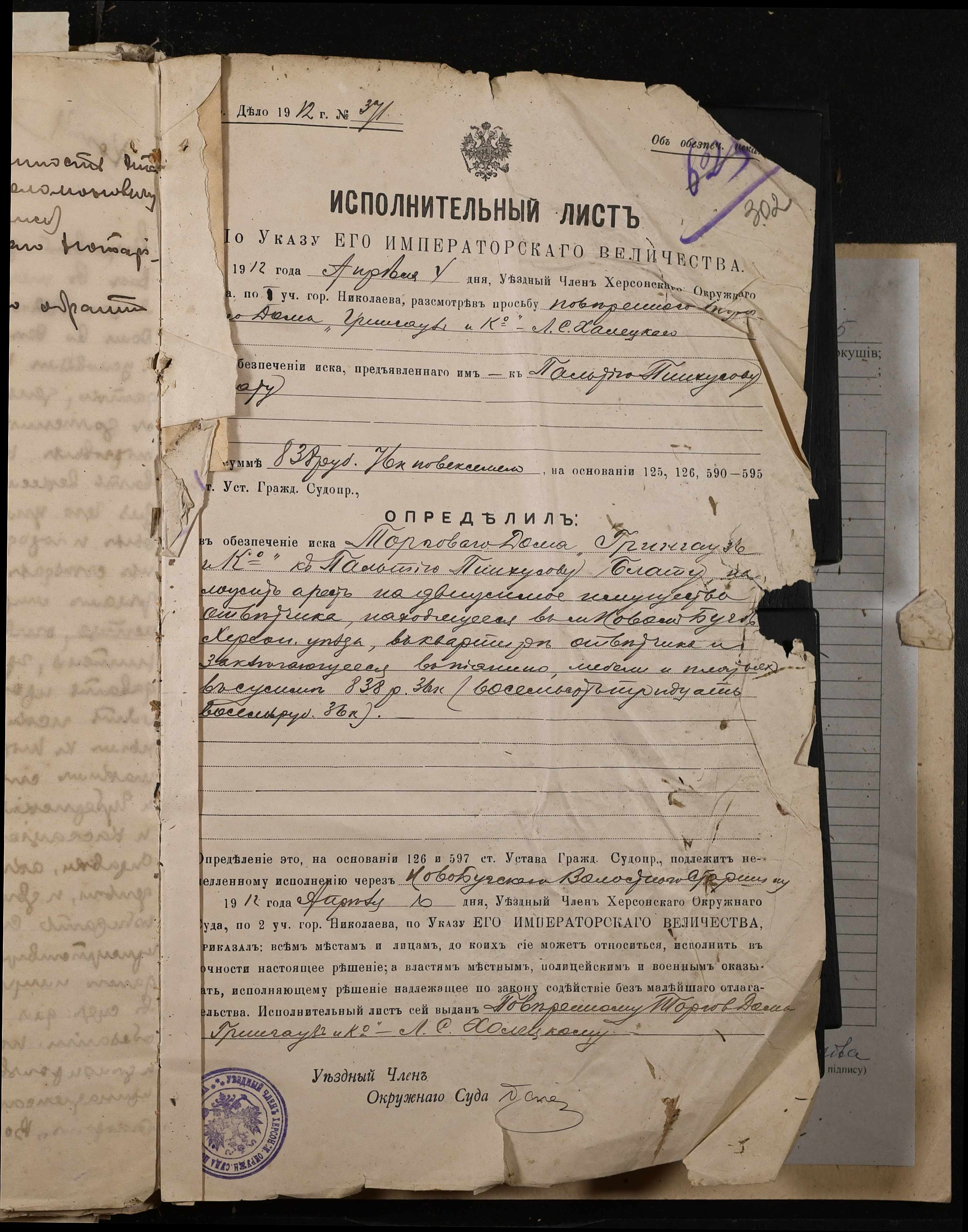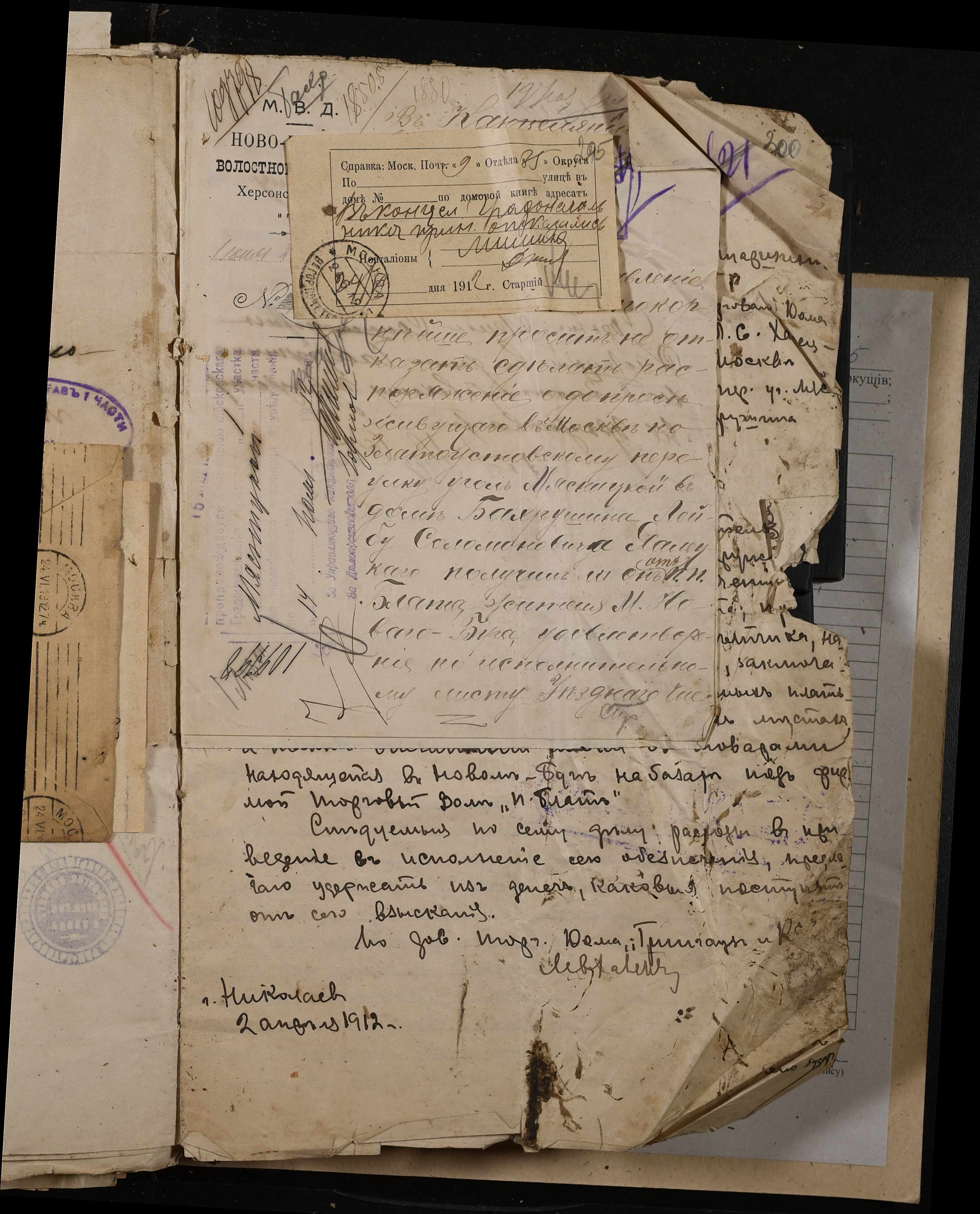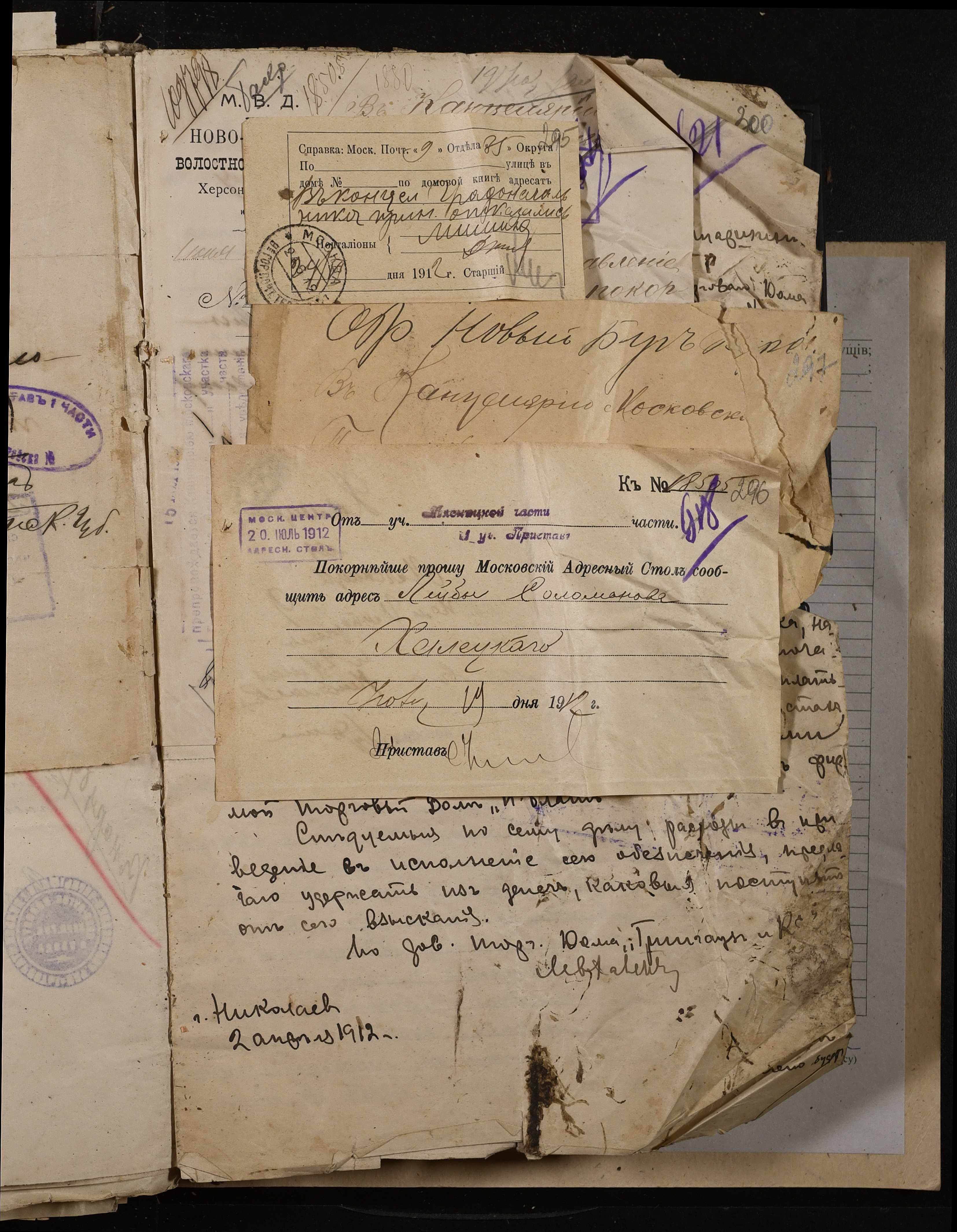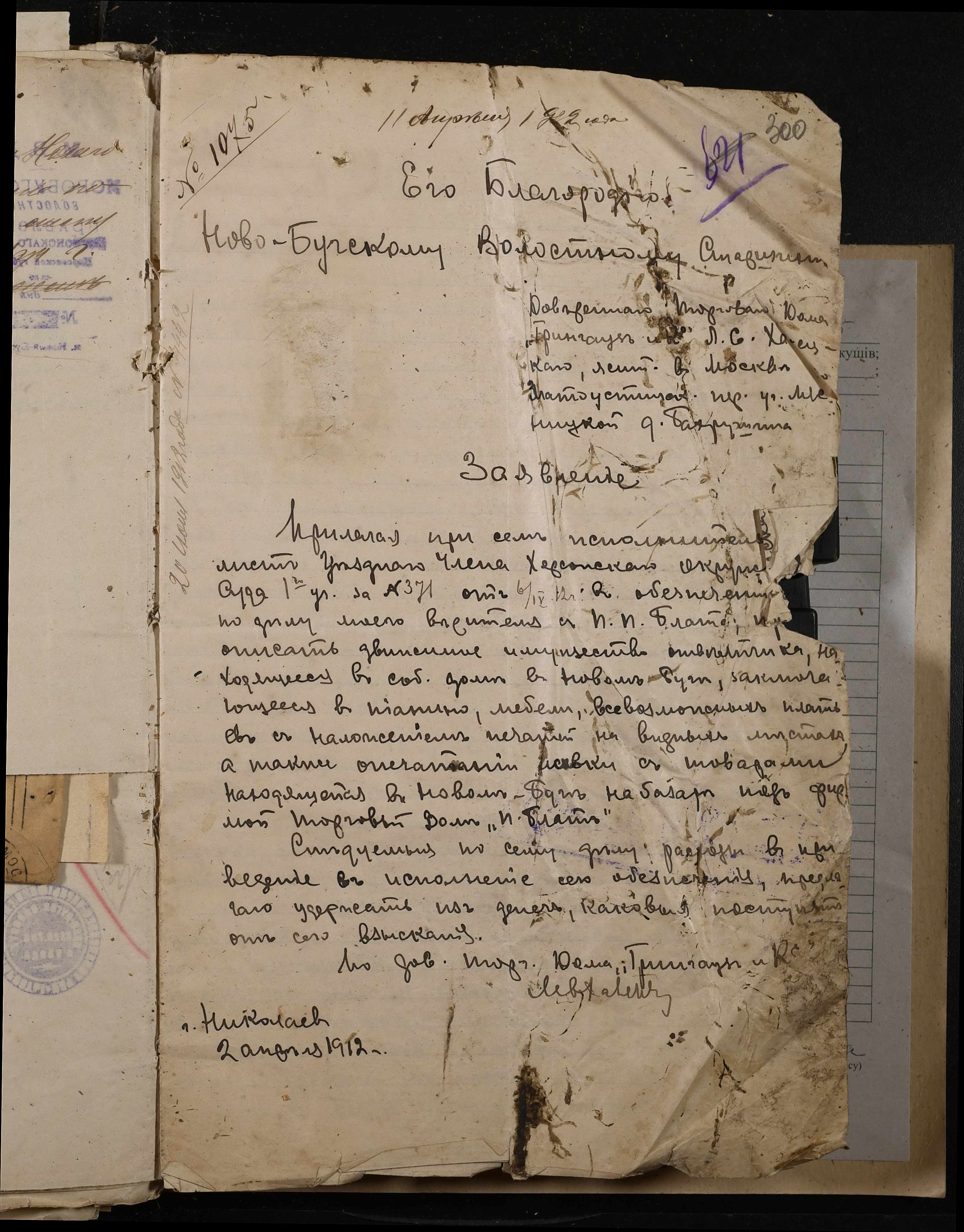 • • • • Справа № 222 “Листування з земським начальником 5-ої дільниці Херсонського повіту про розподіл та перерозподіл надільної землі, інструкції, заяви, повістки”