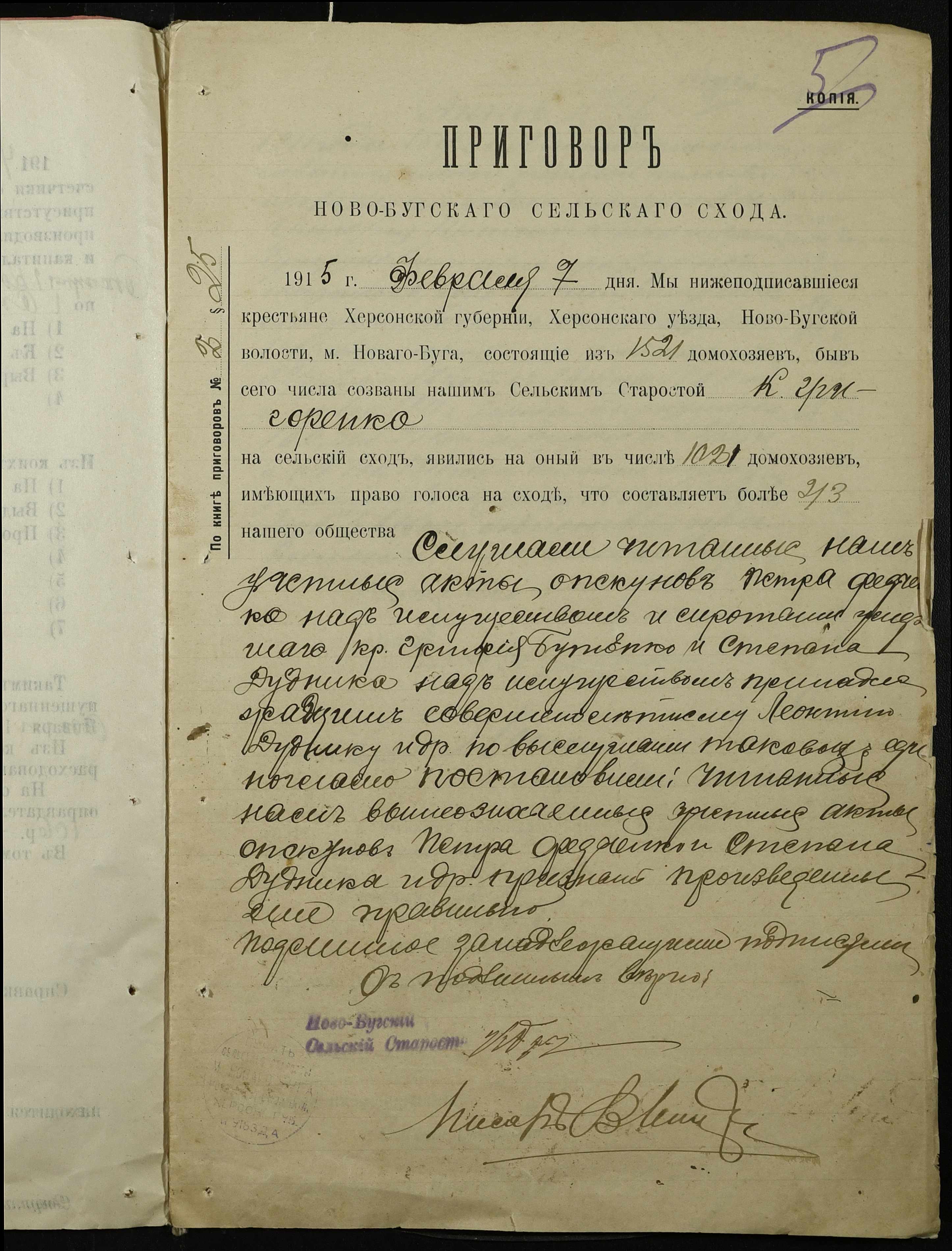 ◦ ◦ Фонд № 14 “Новобузьке волосне правління”