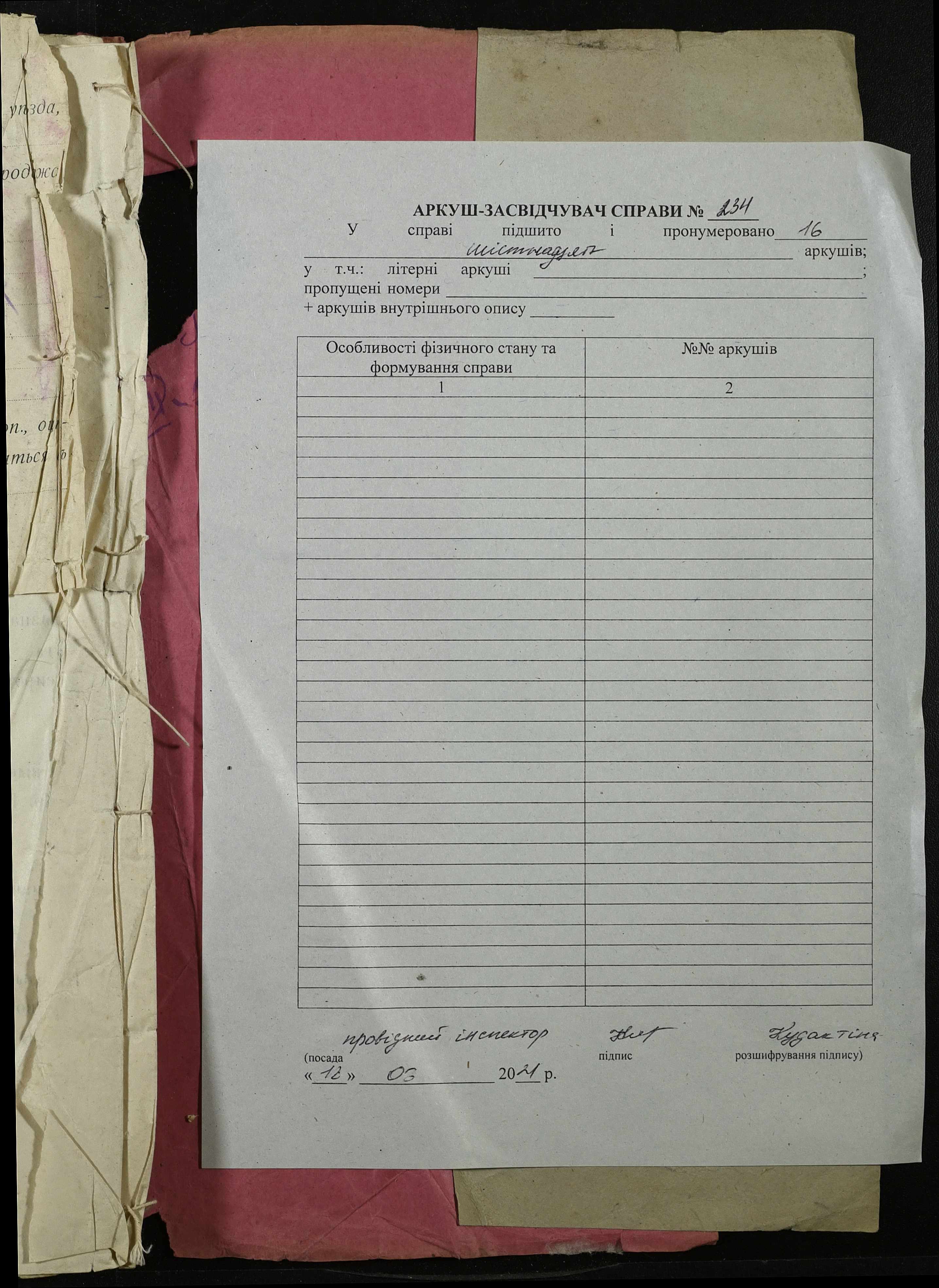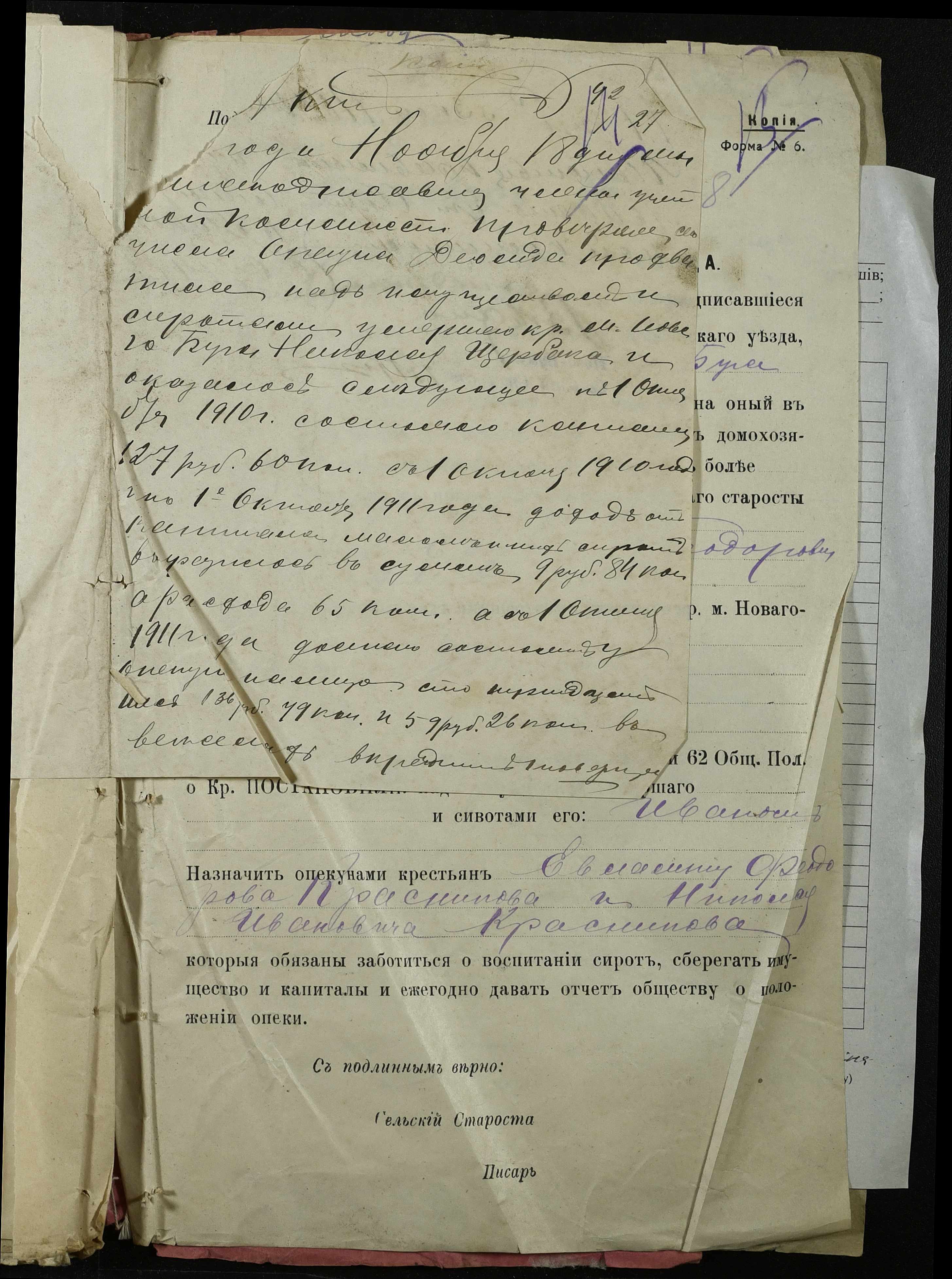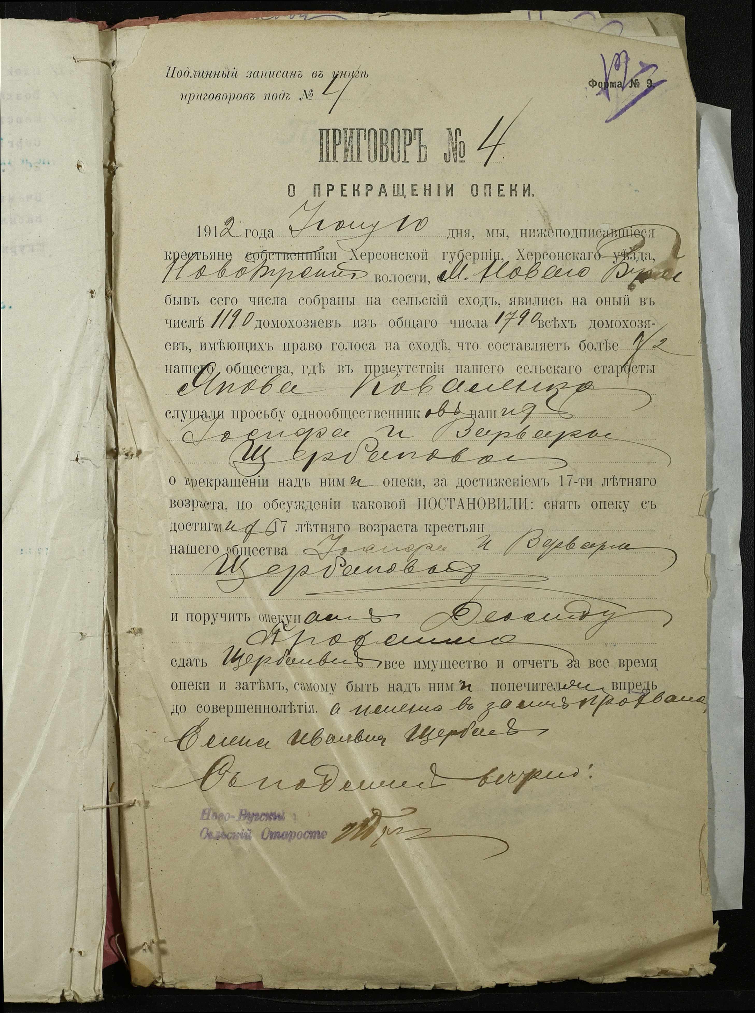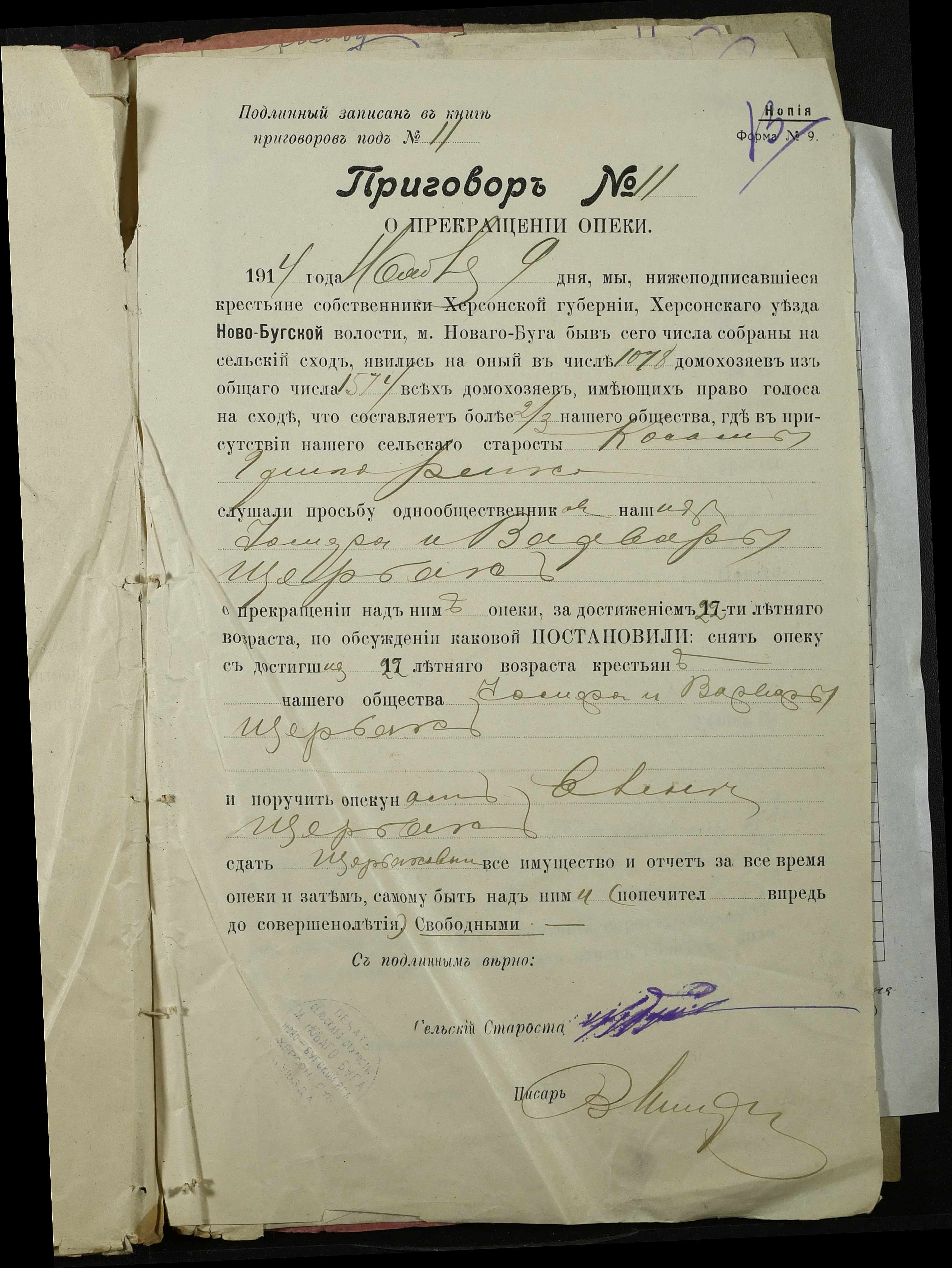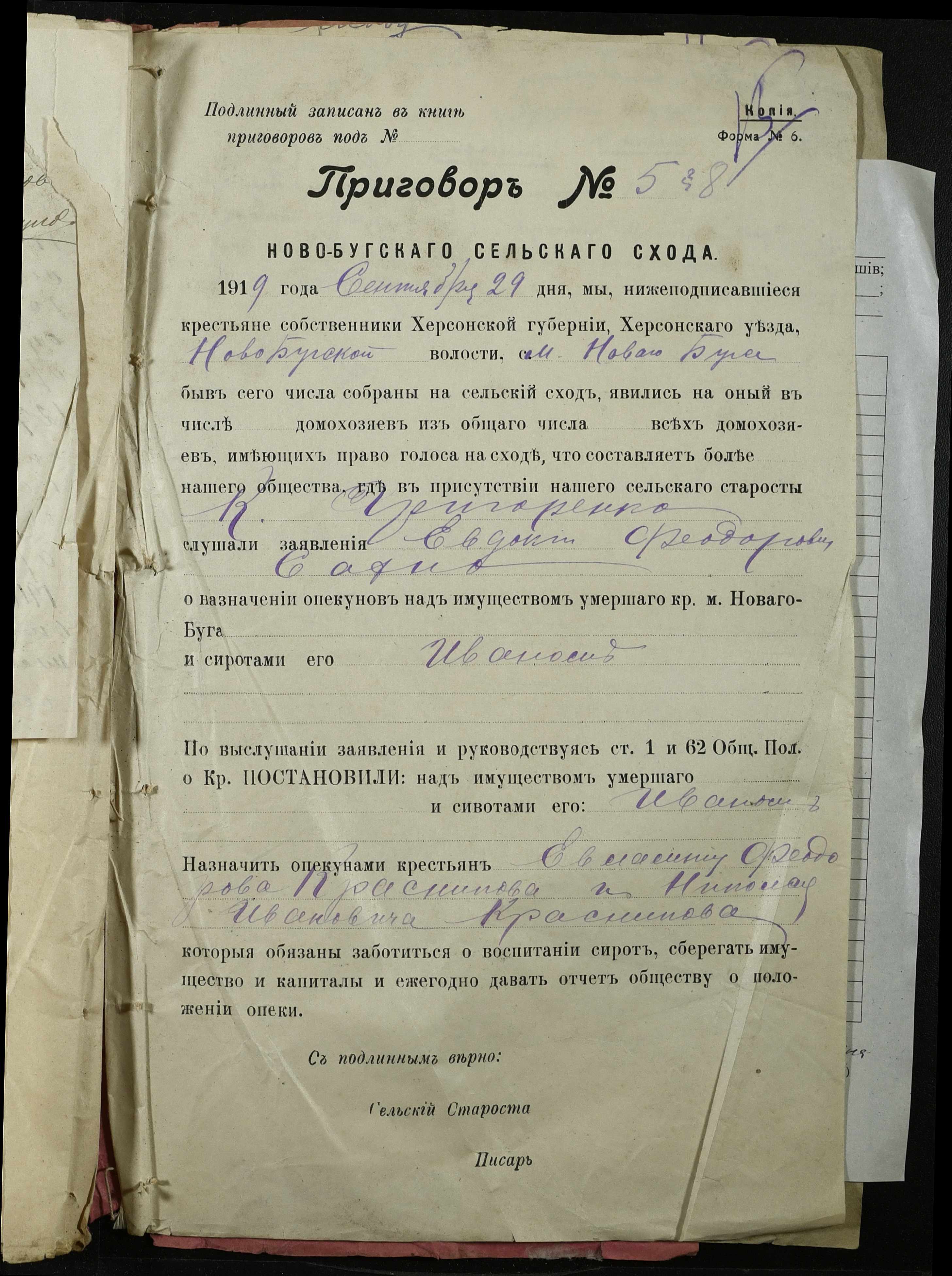 • • • • Справа № 234 “Облікові акти та описи на підопічне майно померлих мешканців м. Новий Буг, присуди сільського сходу про зняття опіки”