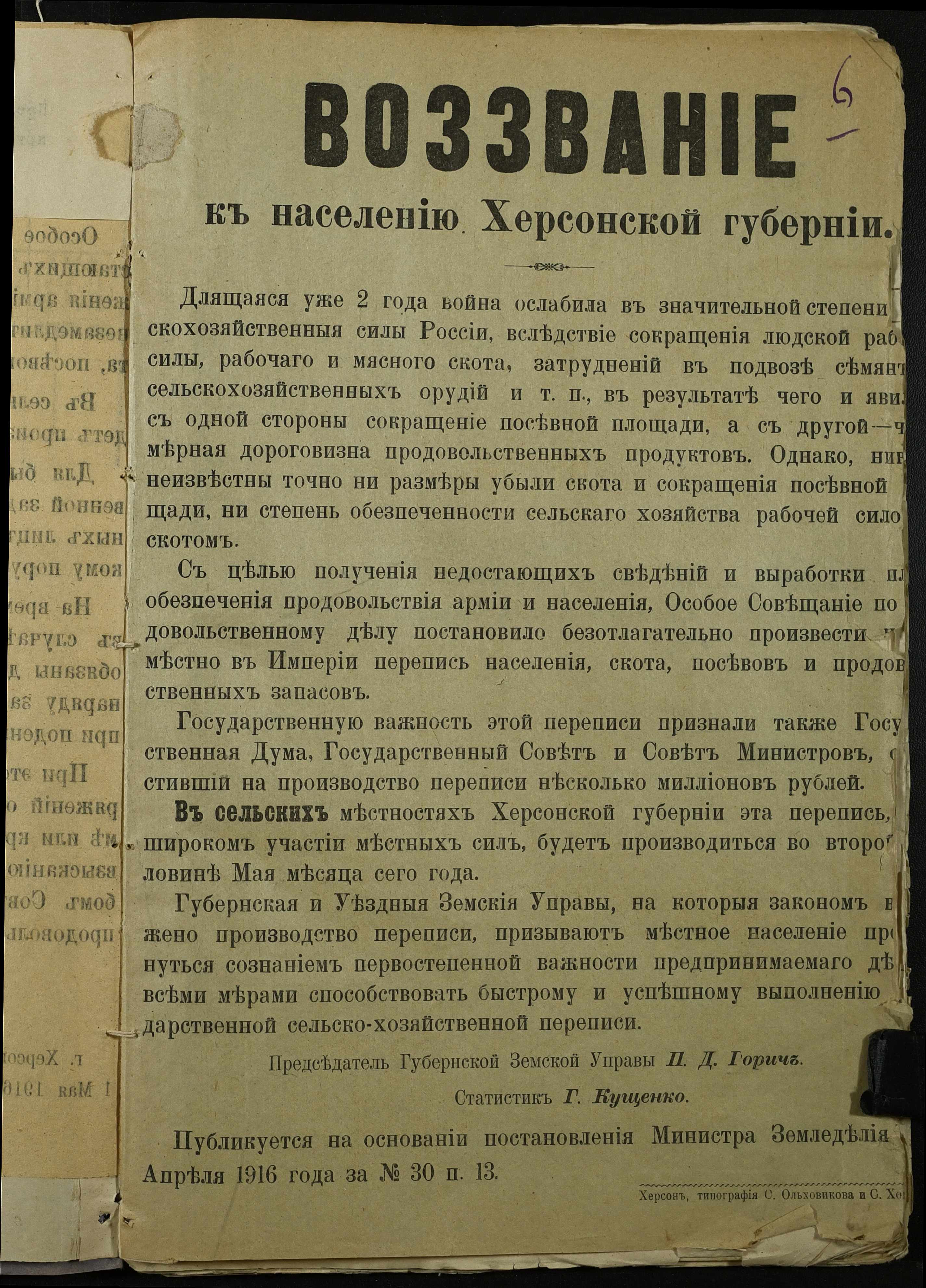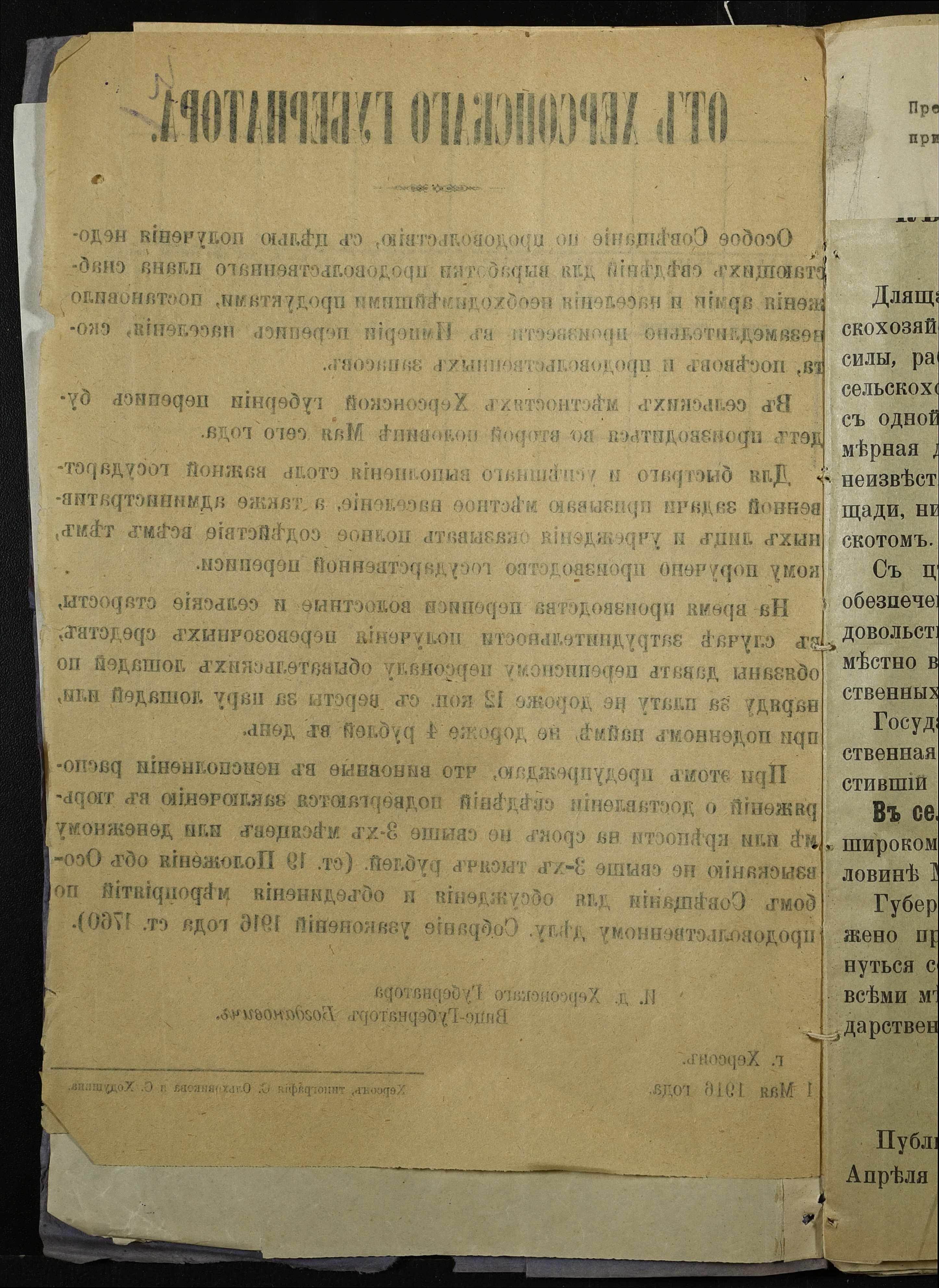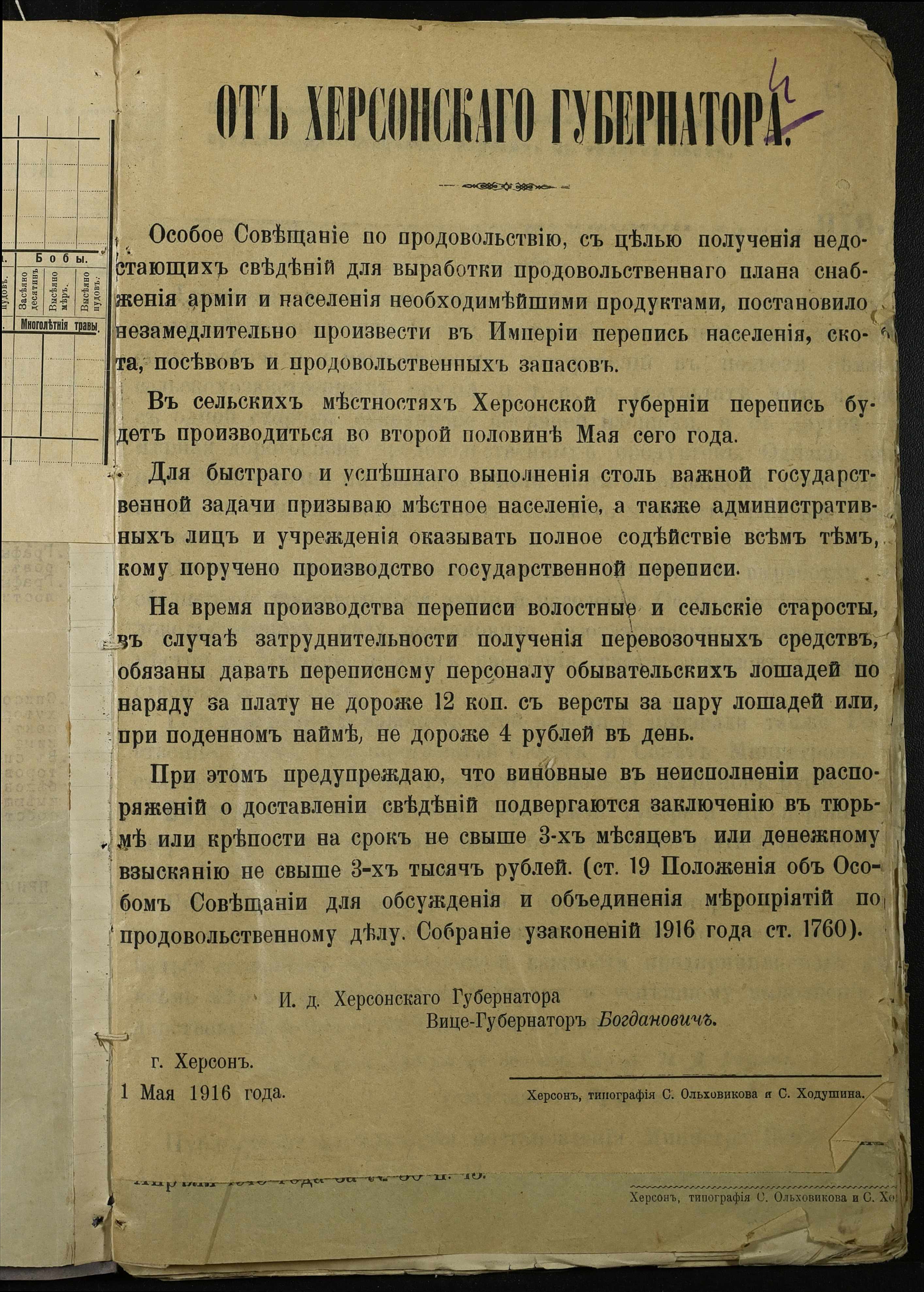 • • • • Справа № 235 “Звернення Херсонського губернатора та розпорядження Херсонської повітової управи про проведення перепису населення, худоби, посівів та продовольчих запасів, списки домогосподарств сільських товариств волості станом на 10 травня 1916 року”
