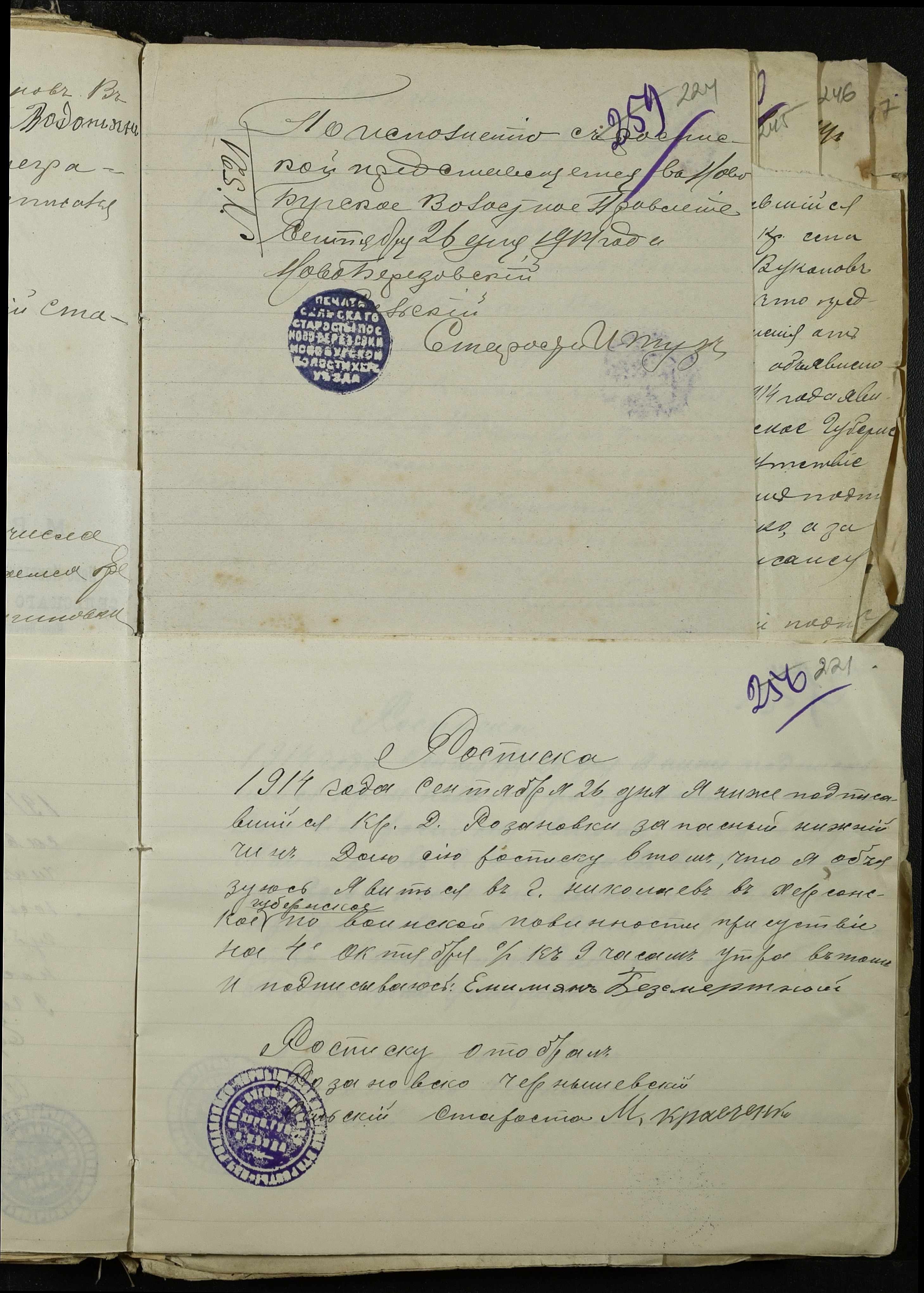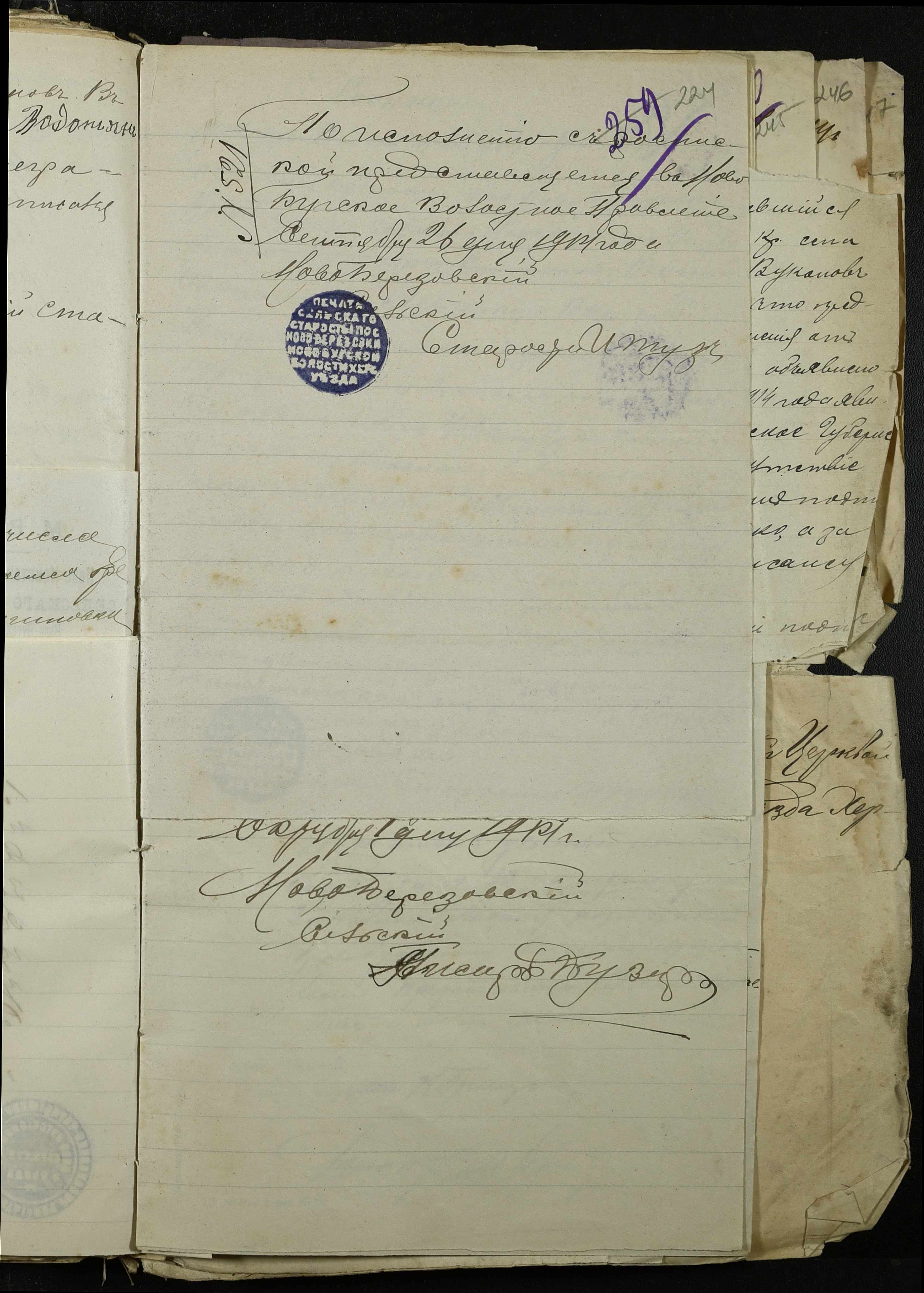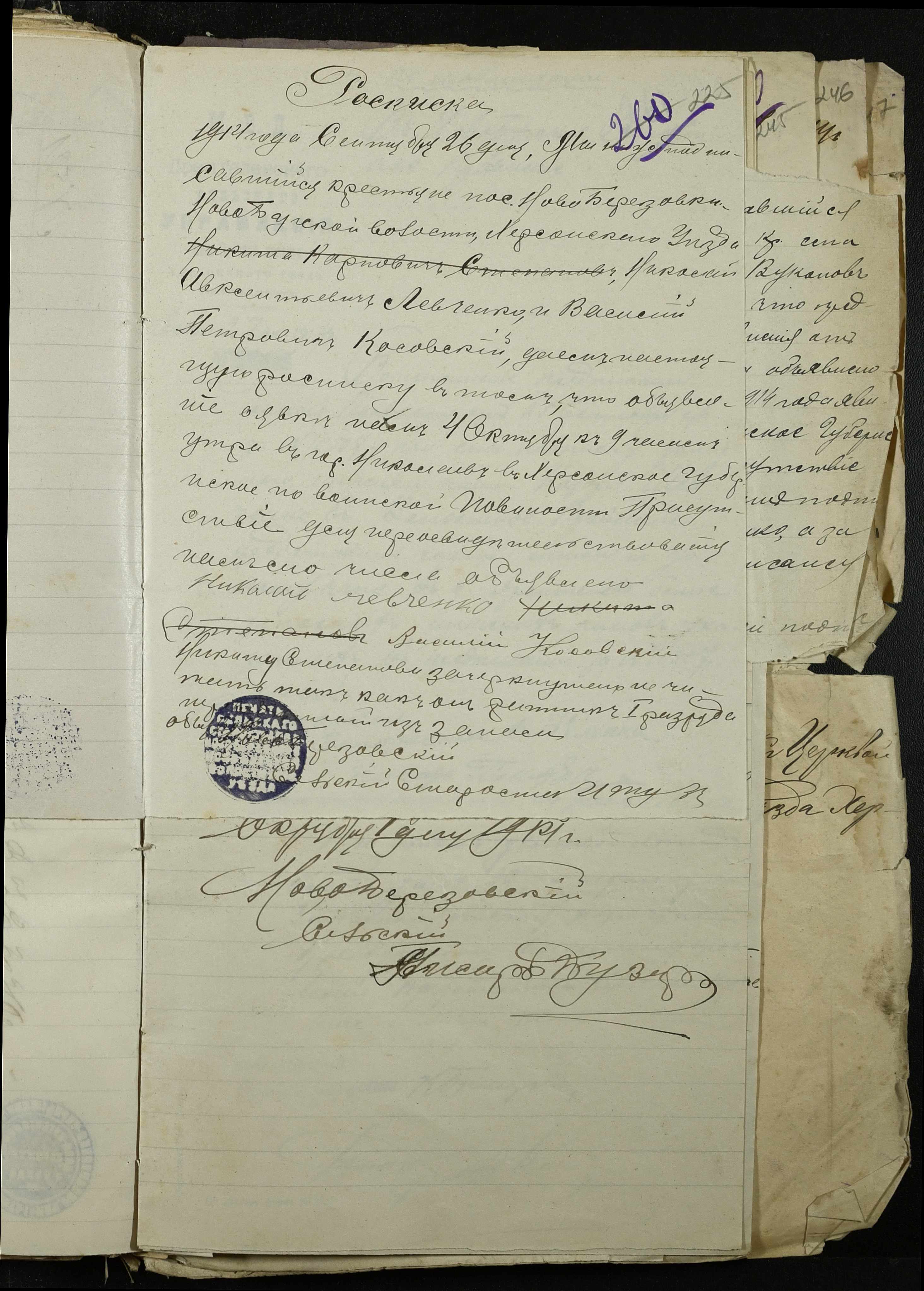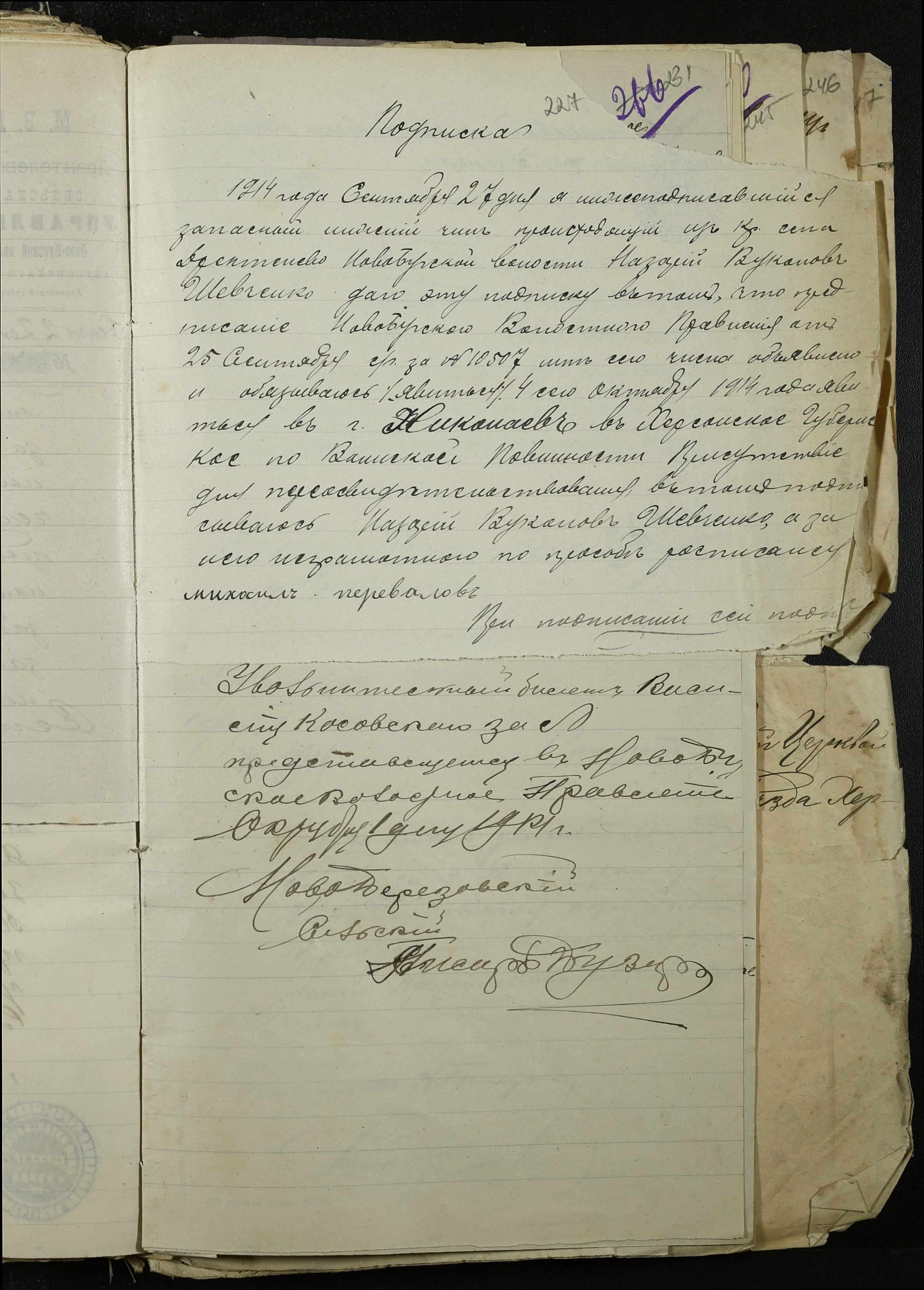 • • • • Справа № 236 “Розпорядження Херсонського повітового з військової повинності присутствія та листування з ним про порядок обліку військовозобов’язаних осіб, рапорти сільських старост, посімейні списки мобілізованих ратників, витяги з метричних книг про народження військово-зобов’язаних, присуди сільських сходів про затвердження списків осіб, покликаних в армію у 1914 році”