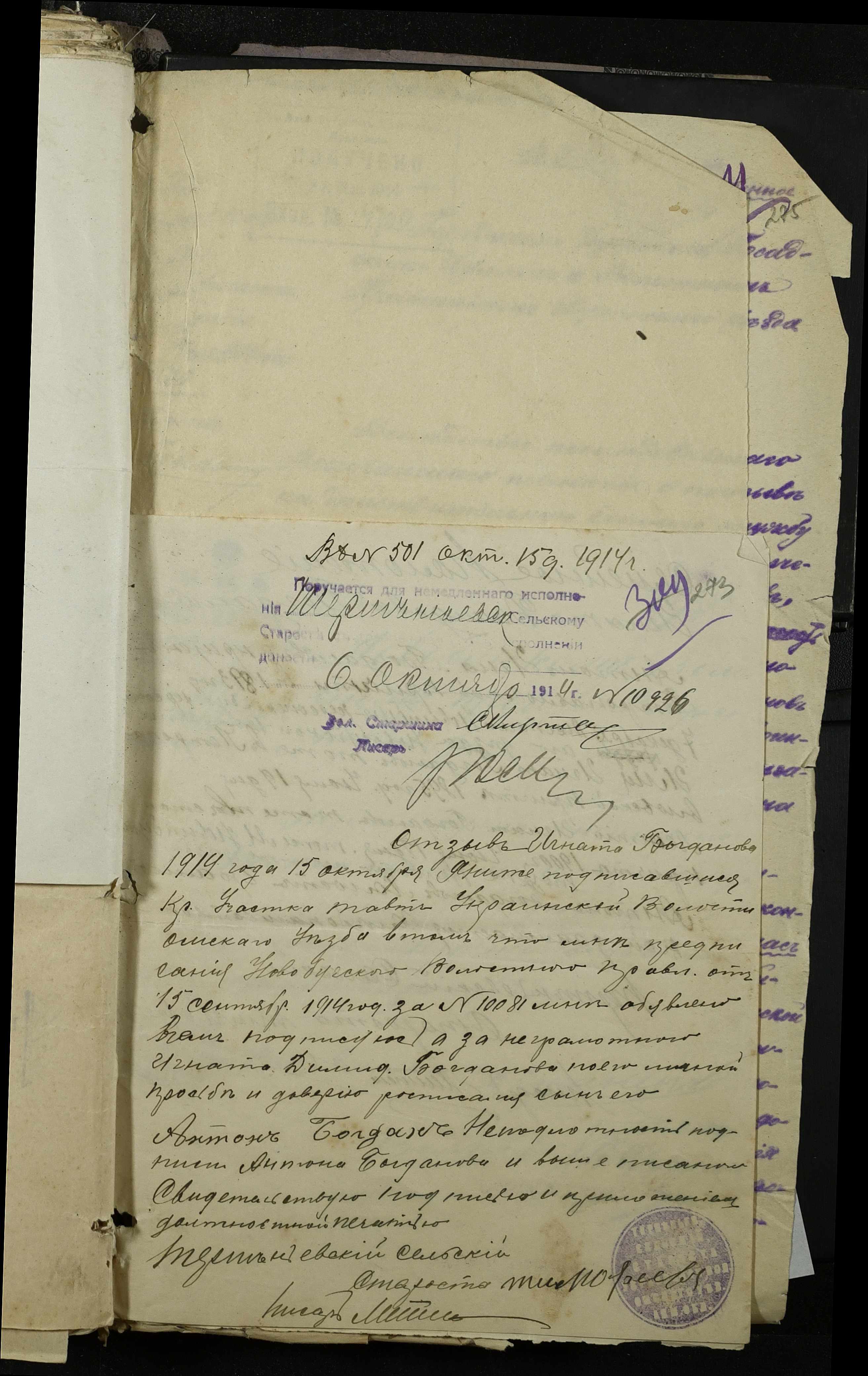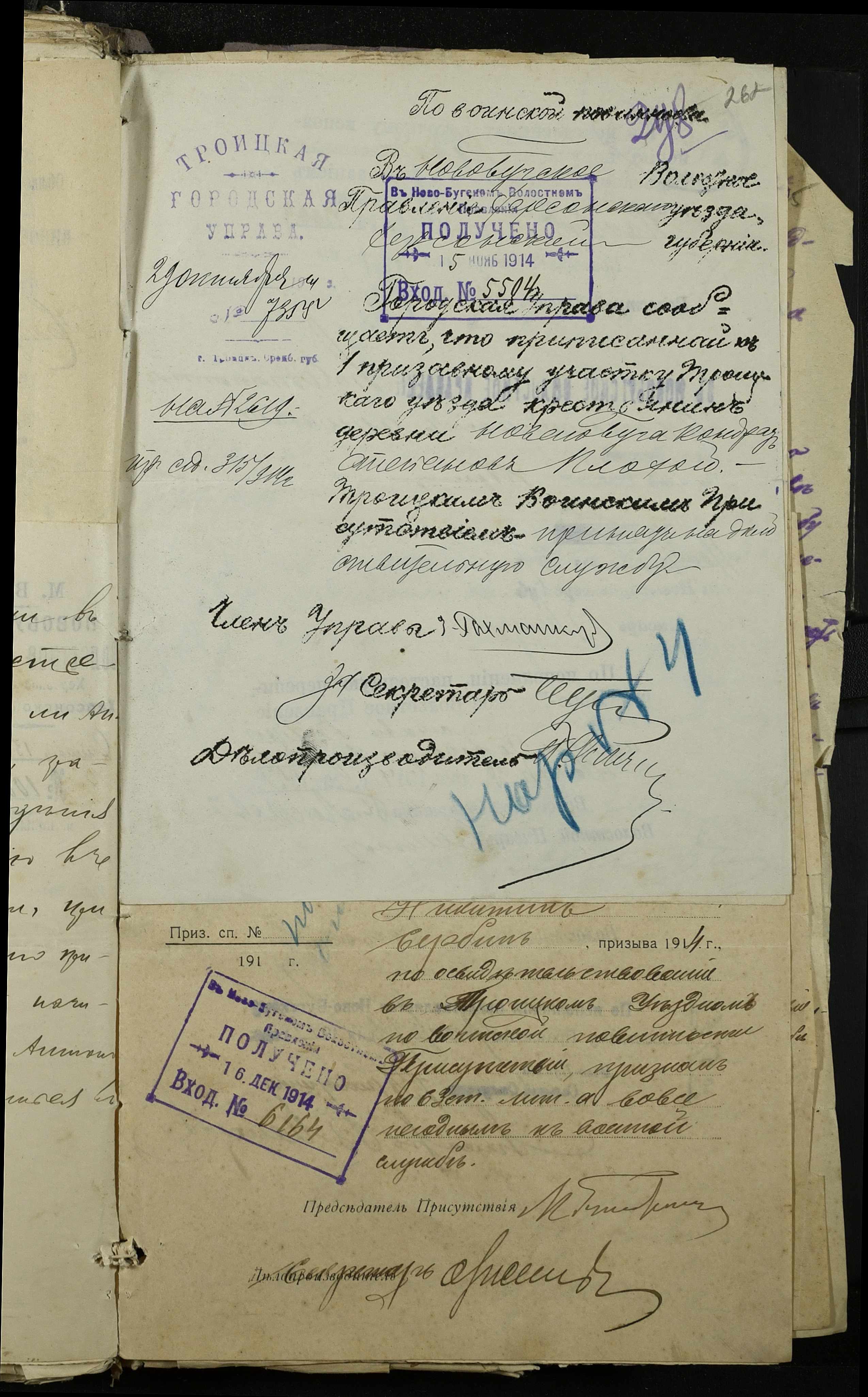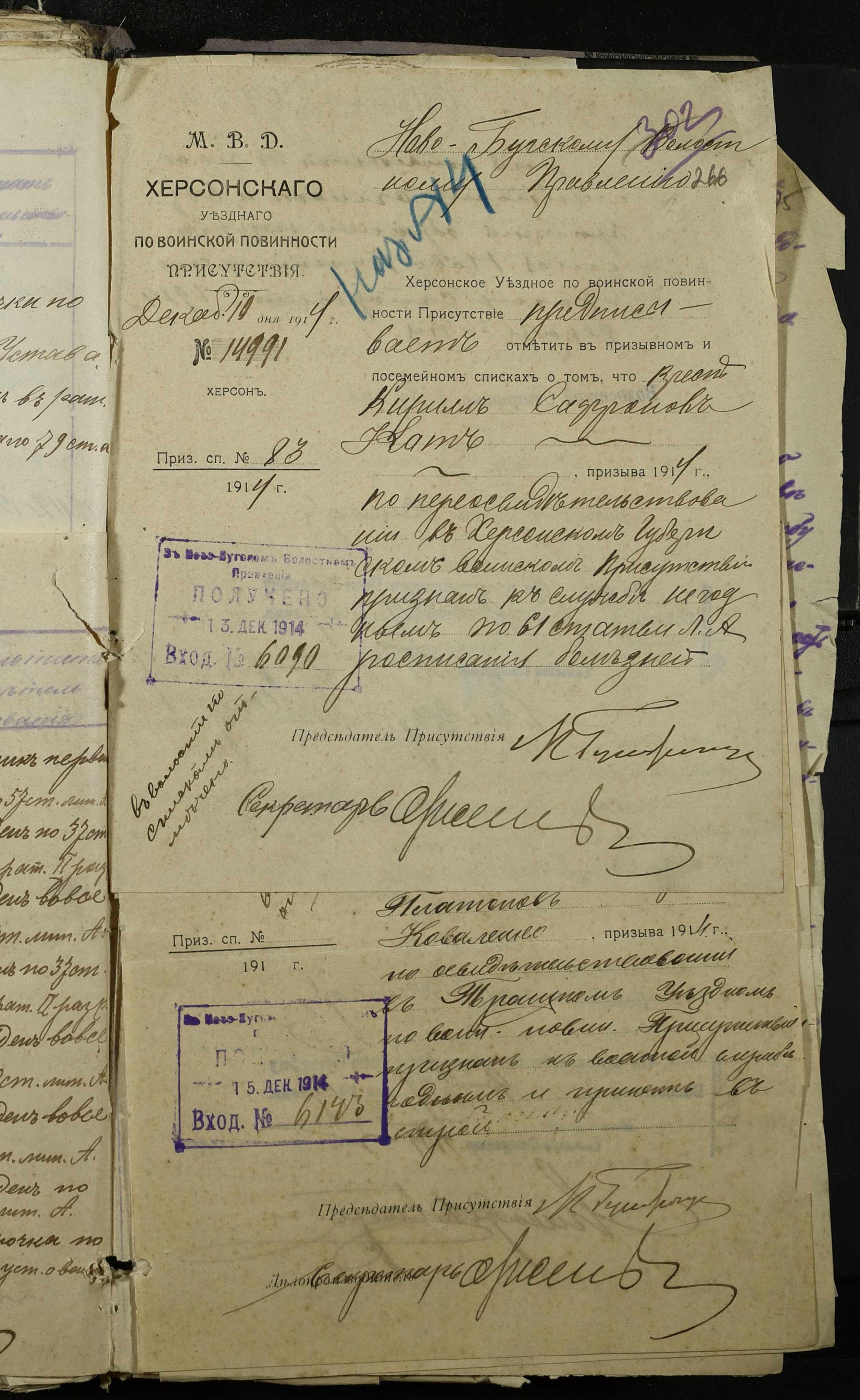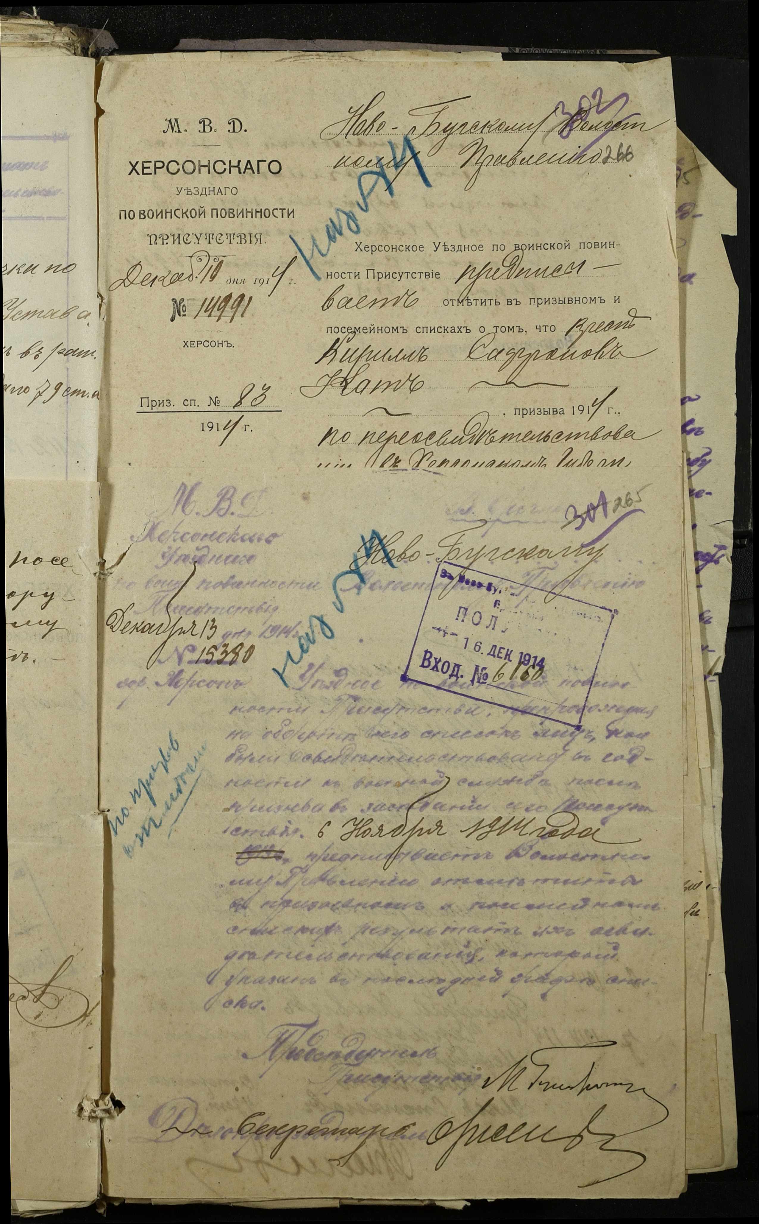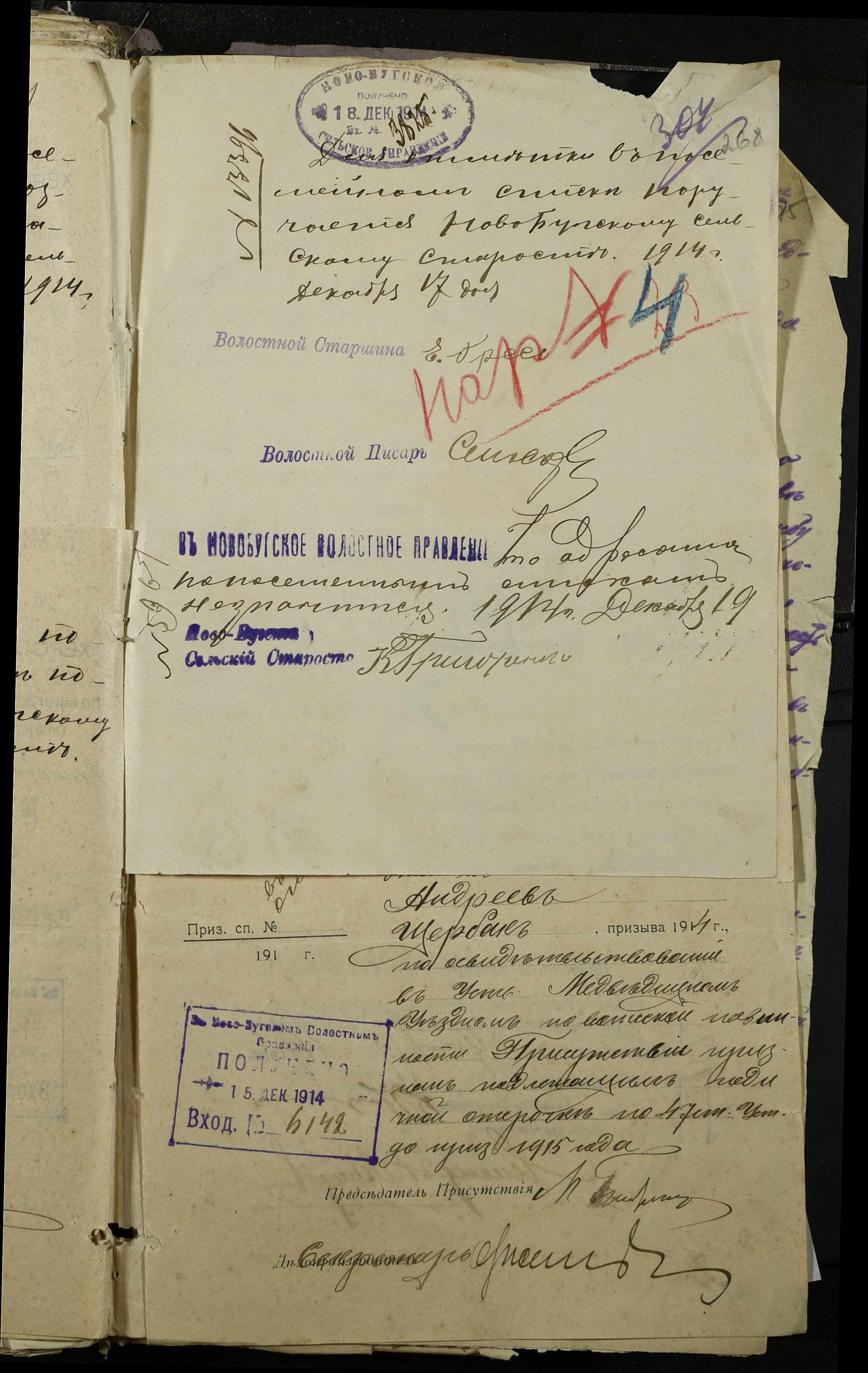 • • • • Справа № 236 “Розпорядження Херсонського повітового з військової повинності присутствія та листування з ним про порядок обліку військовозобов’язаних осіб, рапорти сільських старост, посімейні списки мобілізованих ратників, витяги з метричних книг про народження військово-зобов’язаних, присуди сільських сходів про затвердження списків осіб, покликаних в армію у 1914 році”
