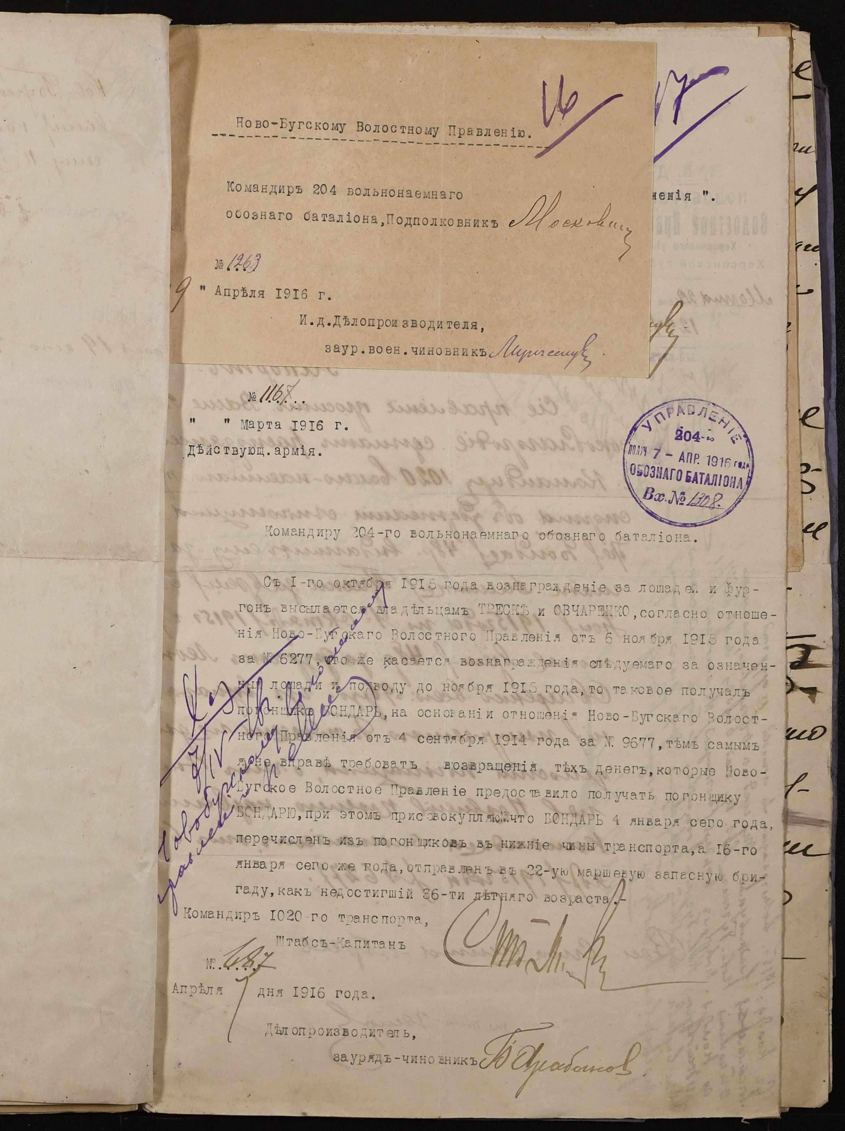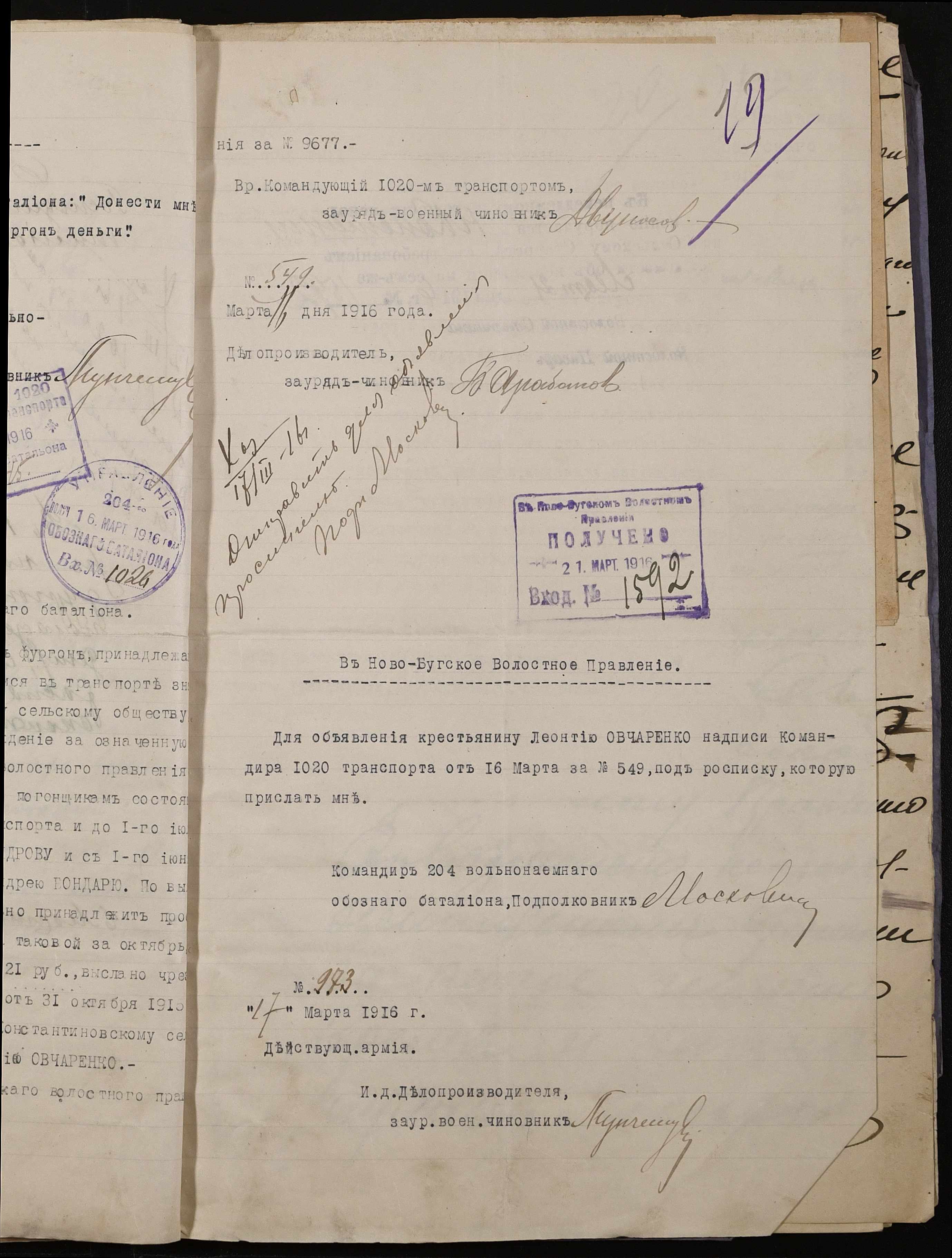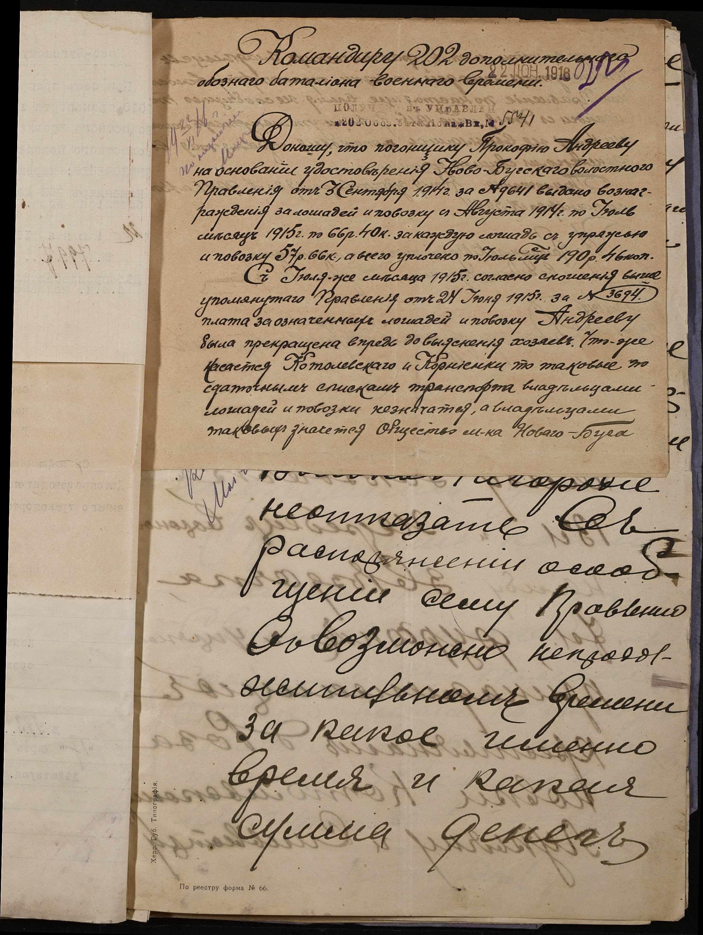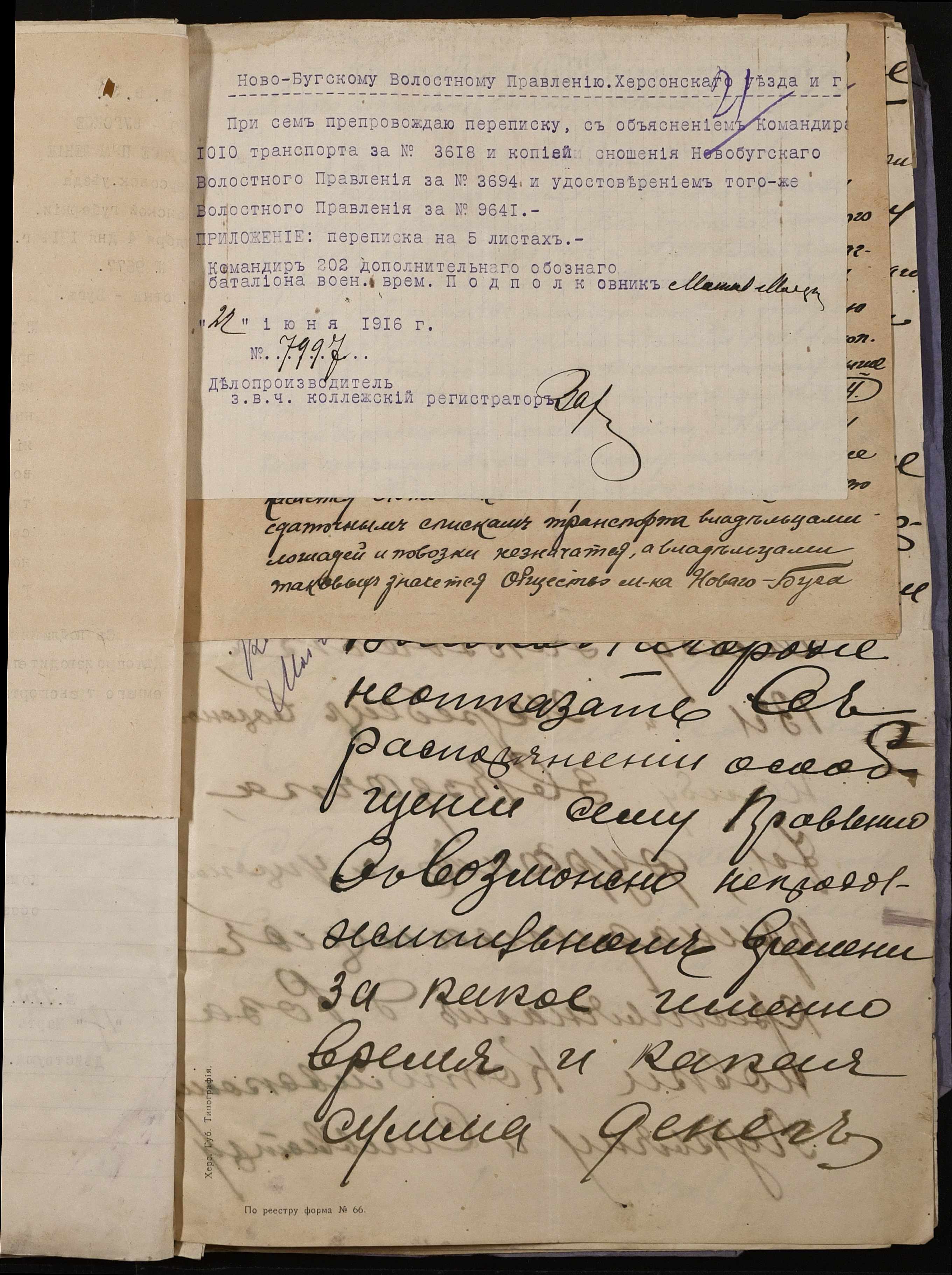 • • • • Справа № 242 “Обіжник Херсонського губернатора та листування з командуванням 202-го та 204-го обозних батальйонів, 1020-го допоміжного транспорту про порядок залучення та оплати вільнонайманого транспорту та погоничів для потреб армії”