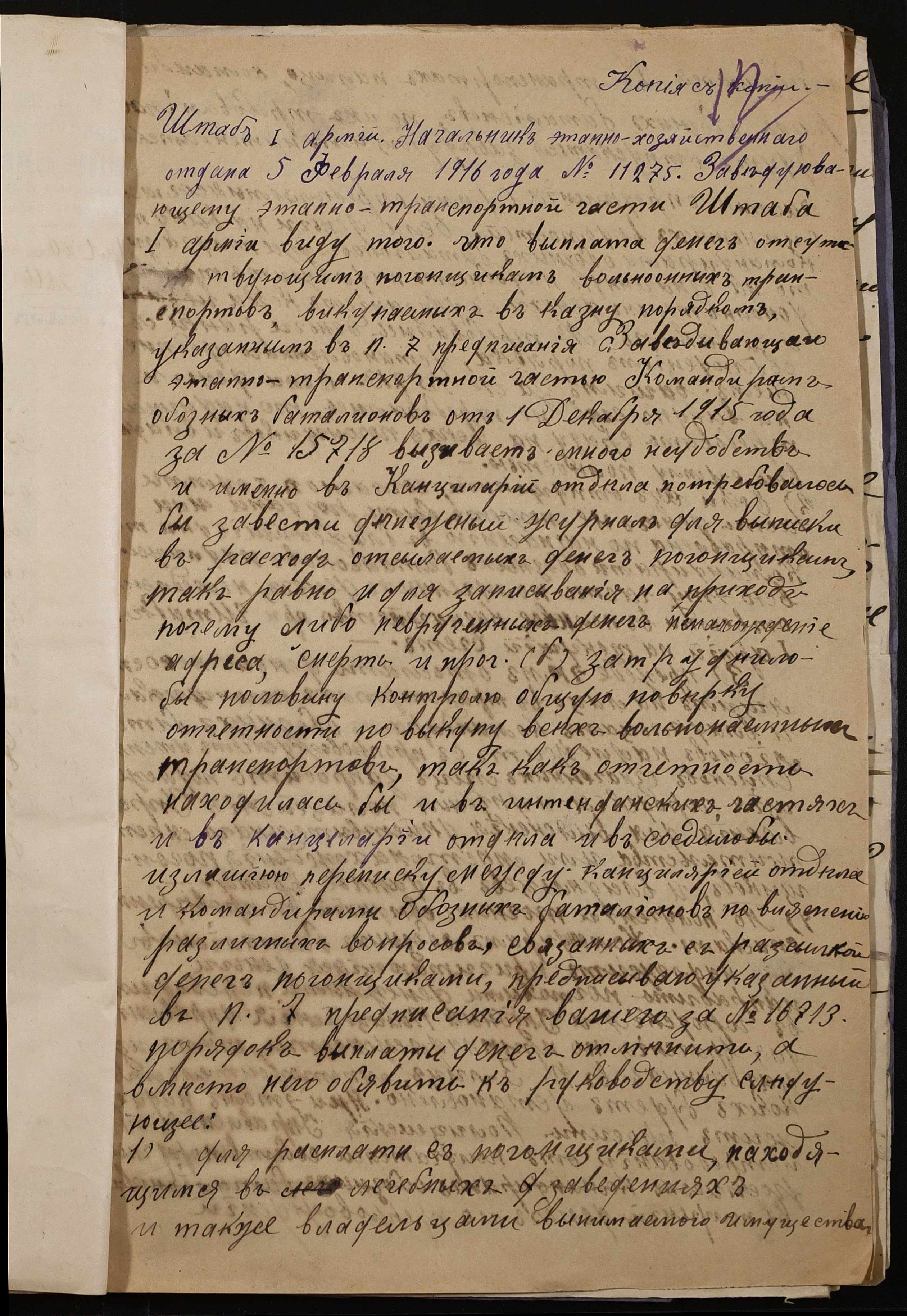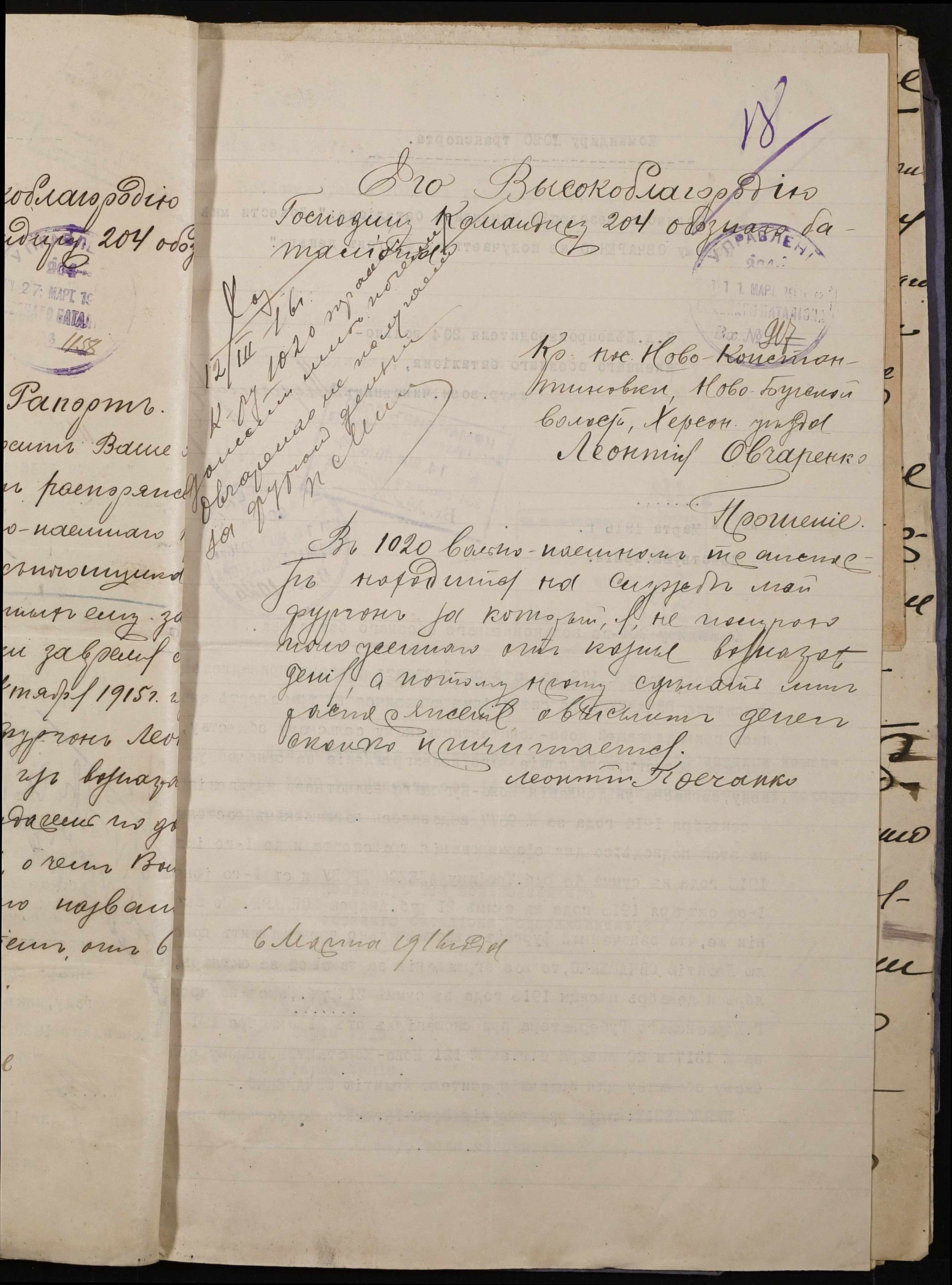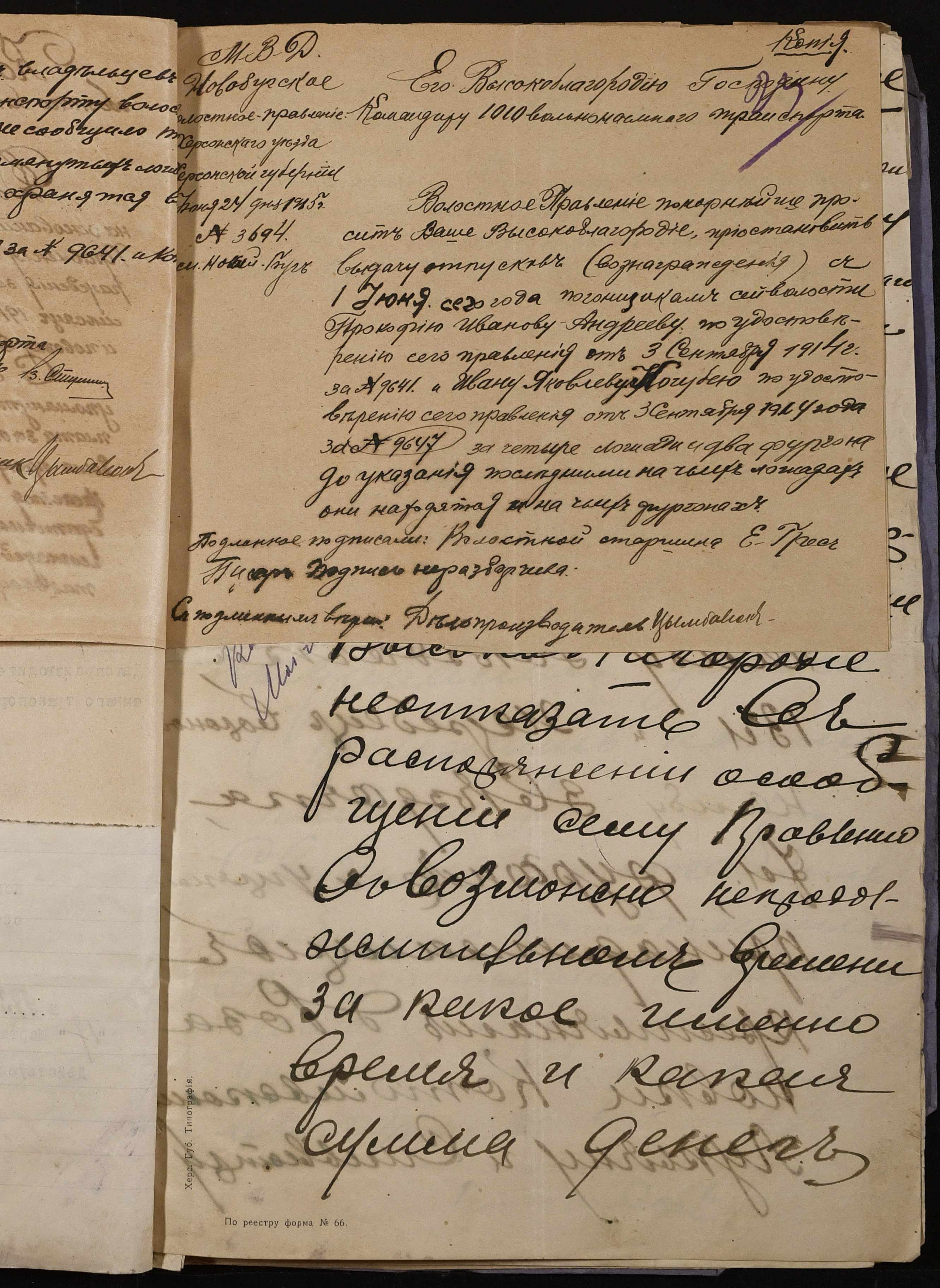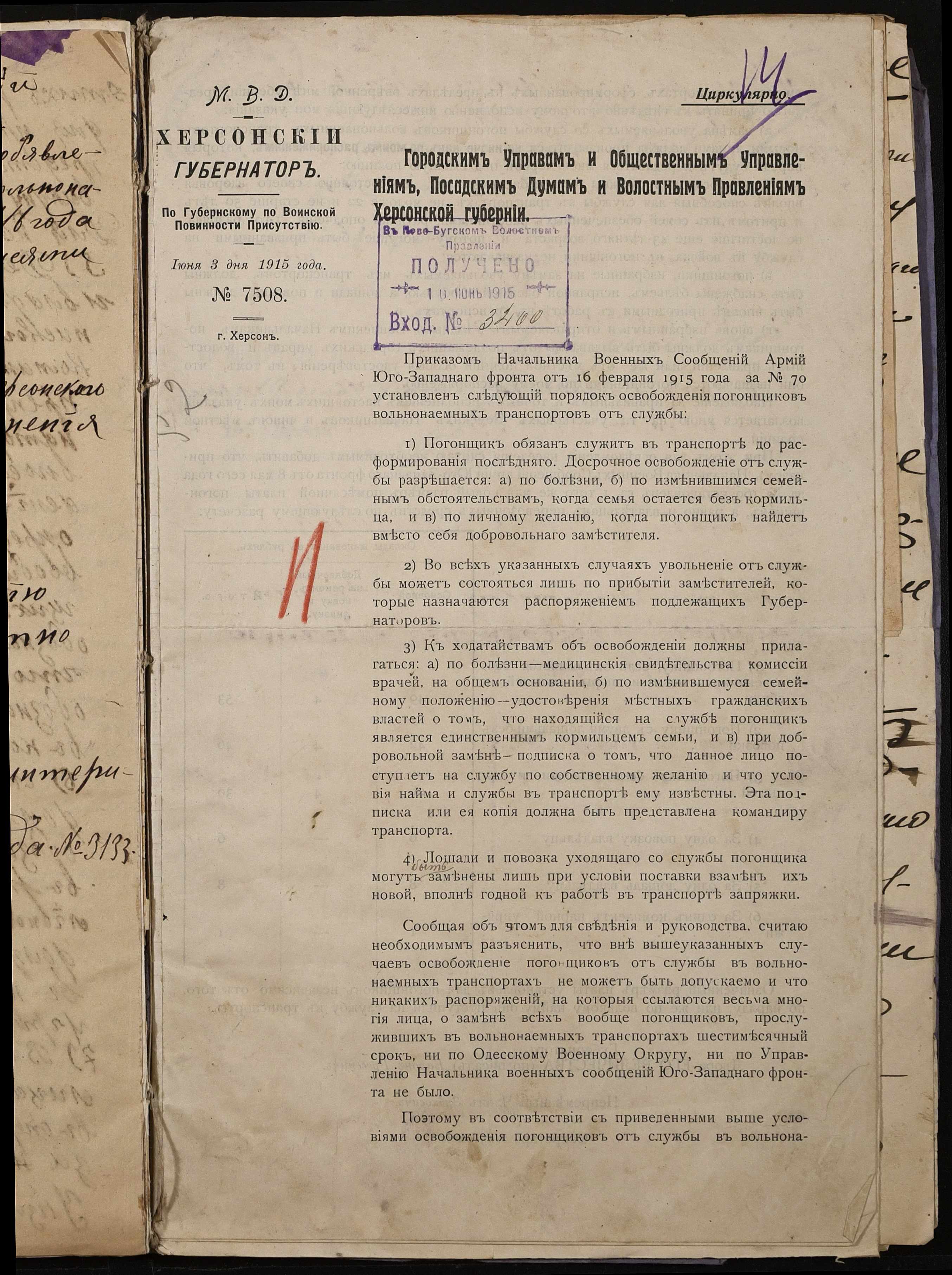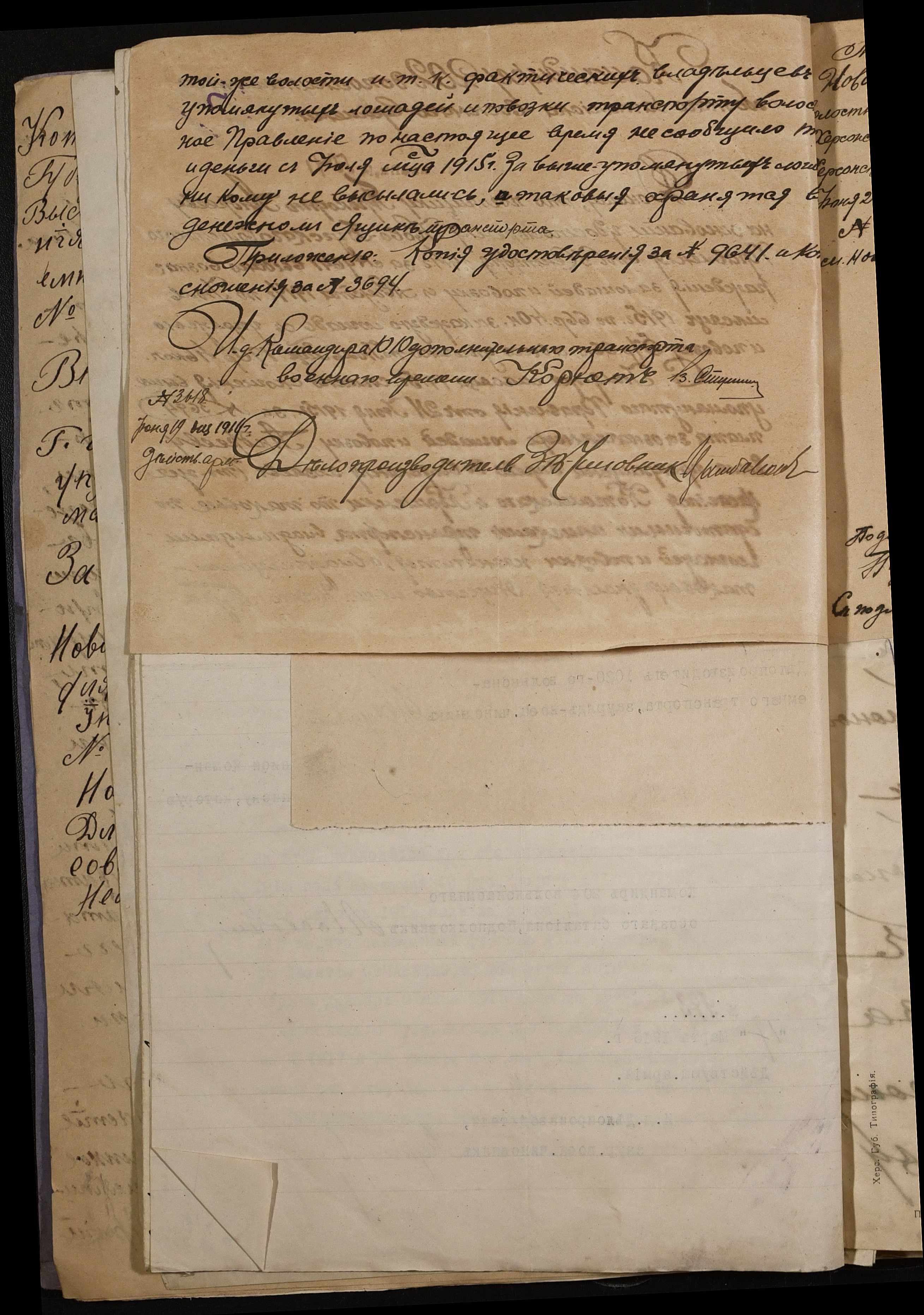 • • • • Справа № 242 “Обіжник Херсонського губернатора та листування з командуванням 202-го та 204-го обозних батальйонів, 1020-го допоміжного транспорту про порядок залучення та оплати вільнонайманого транспорту та погоничів для потреб армії”