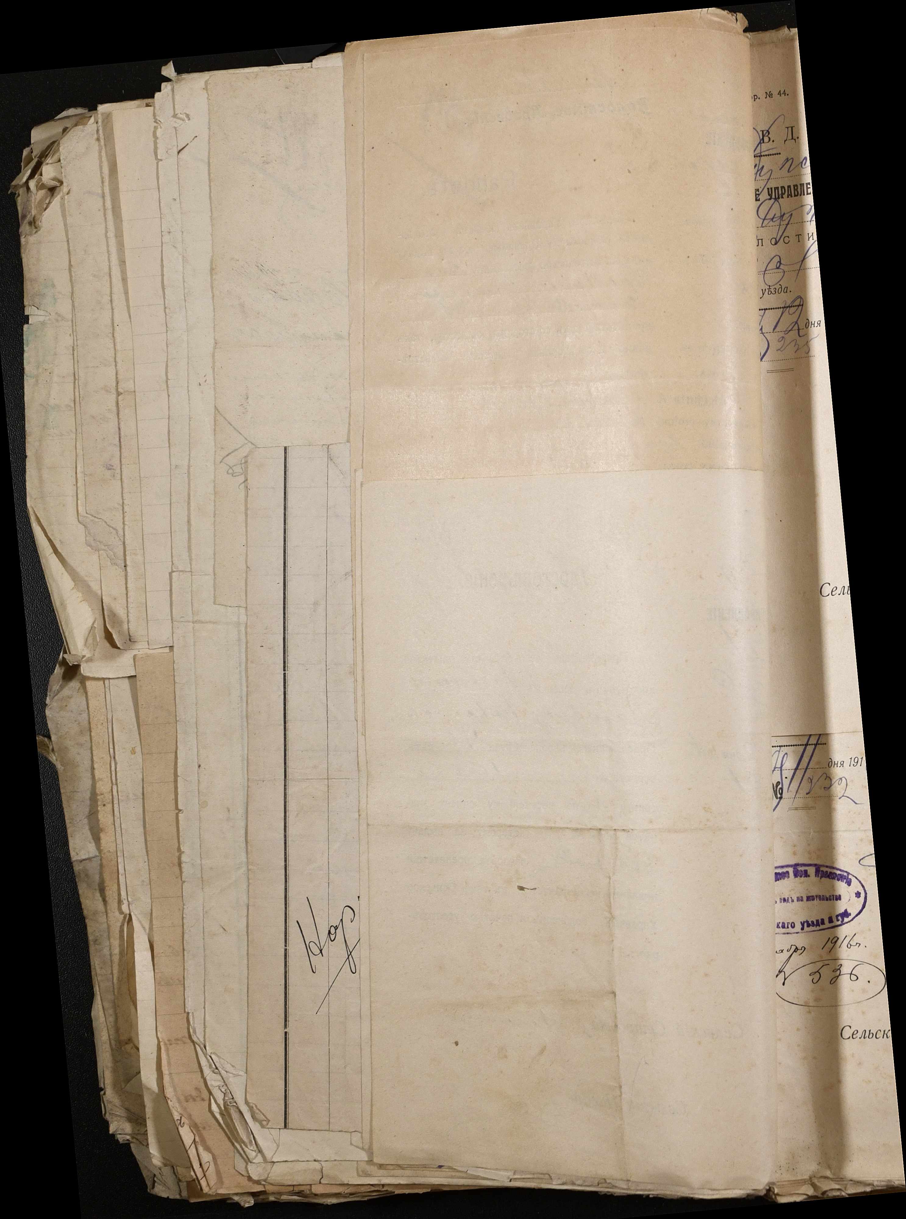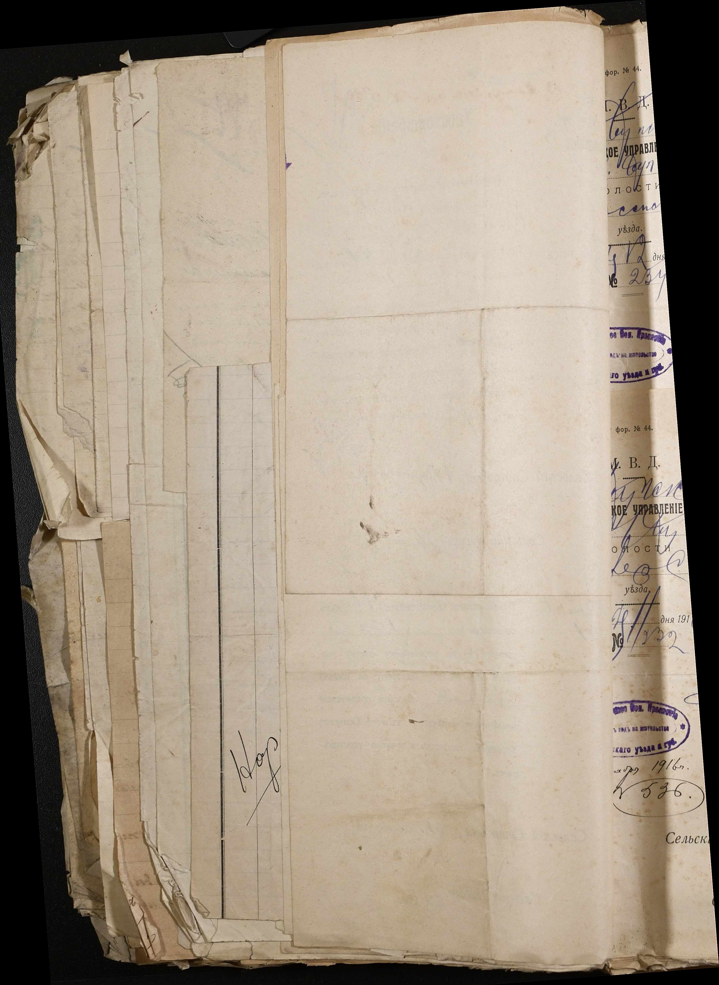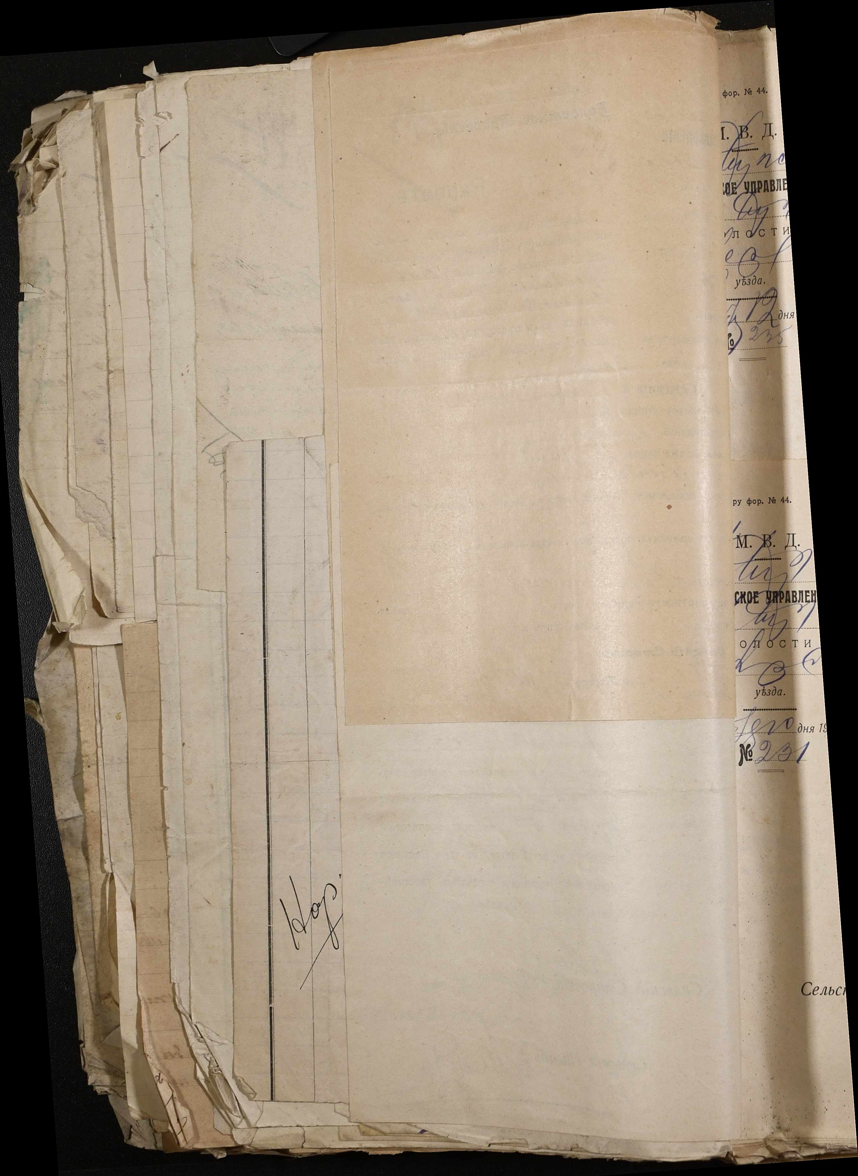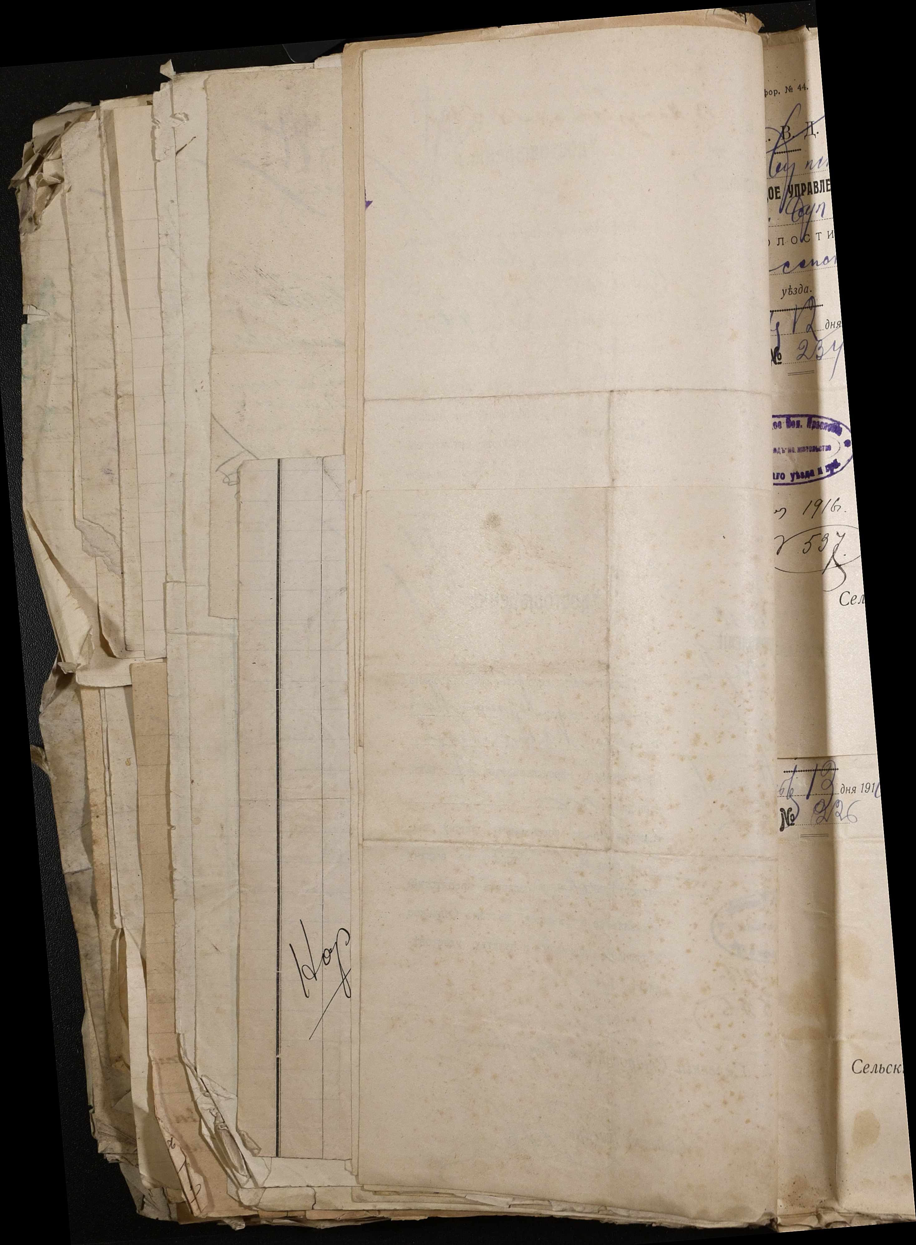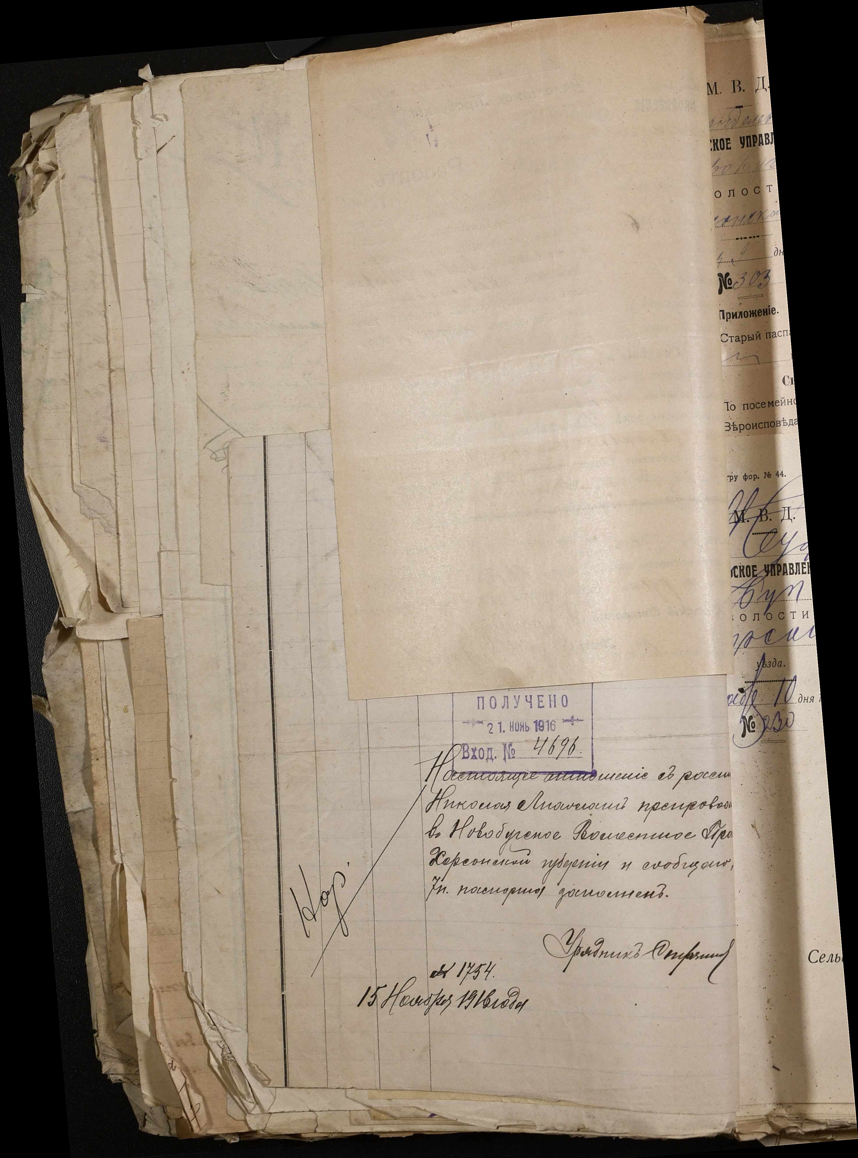 • • • • Справа № 243 “Відомості волосного правління про витрачені паспортні книжки у 1914-1915 роках, заяви та прохання громадян про видачу їм паспортів, листування з сільськими управліннями, рапорти та посвідчення, надані громадянам для отримання паспортів, посімейні списки”