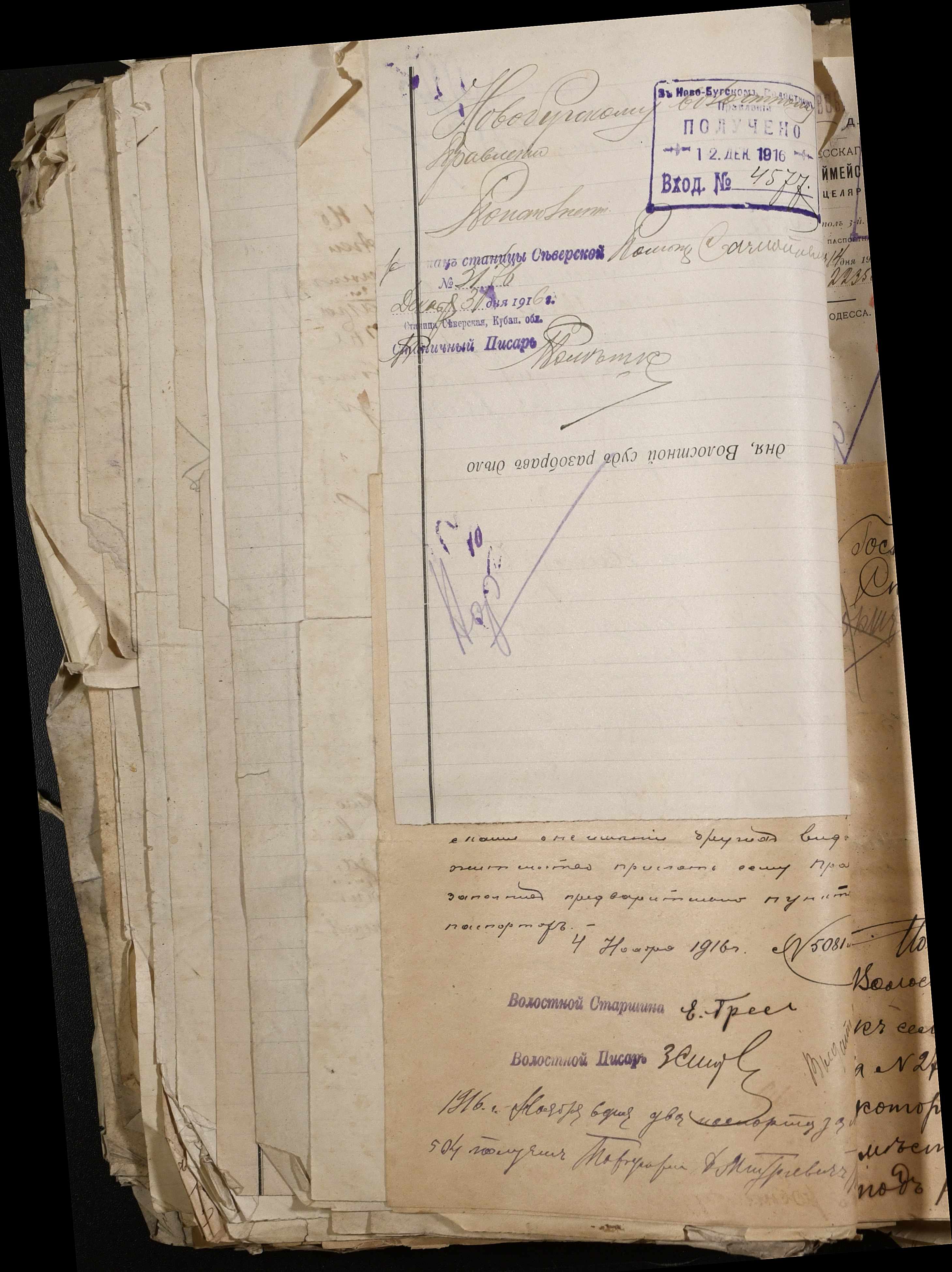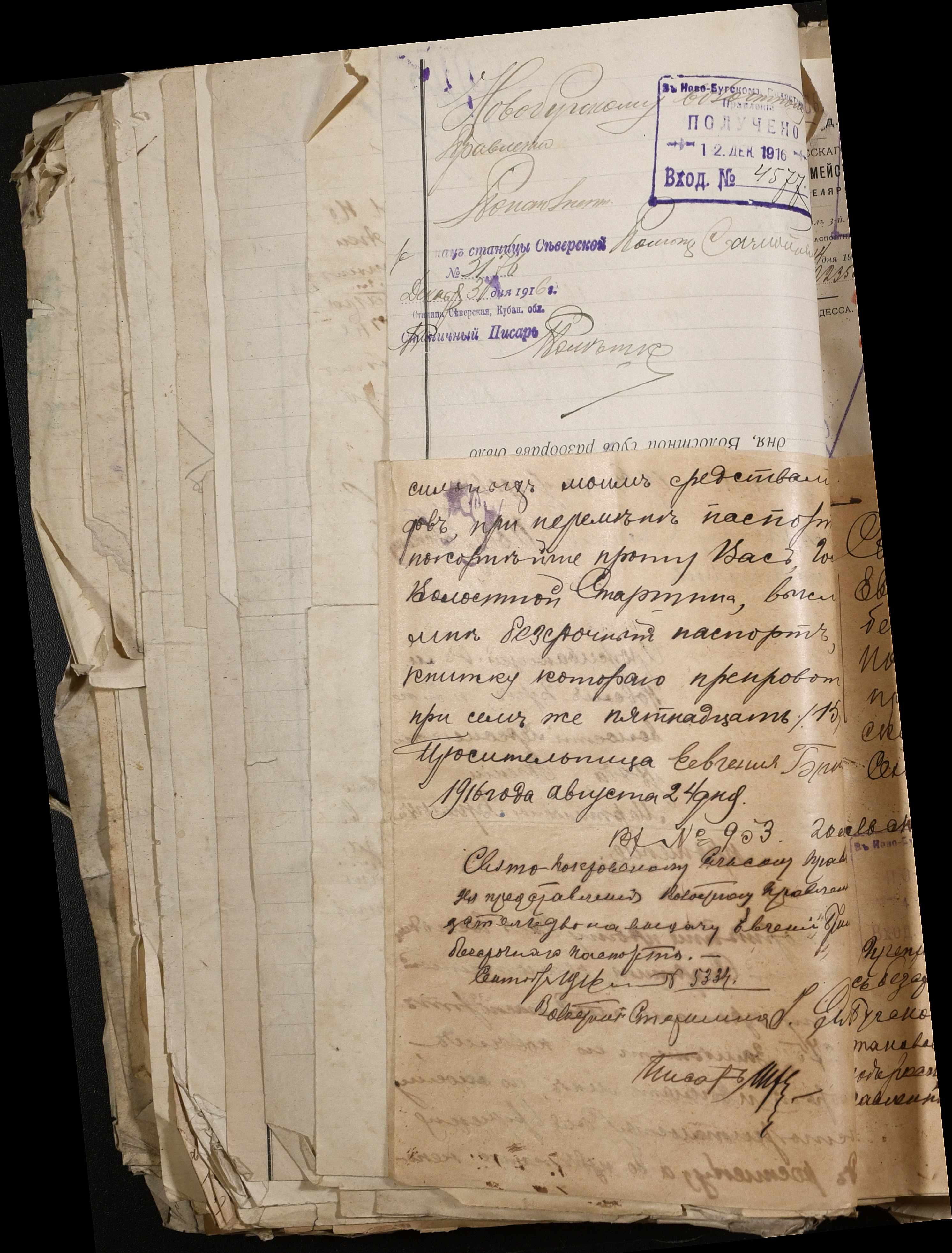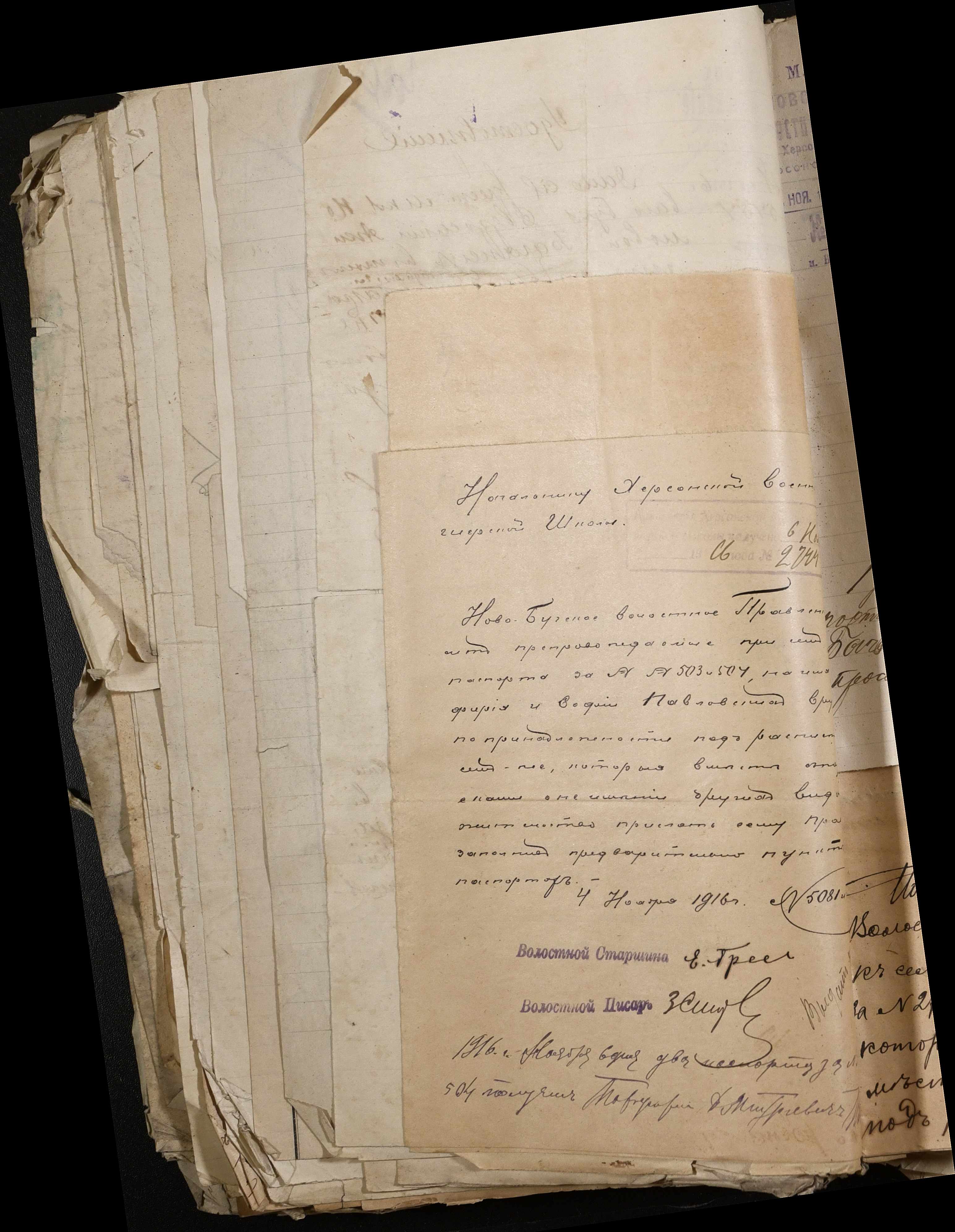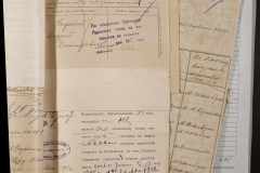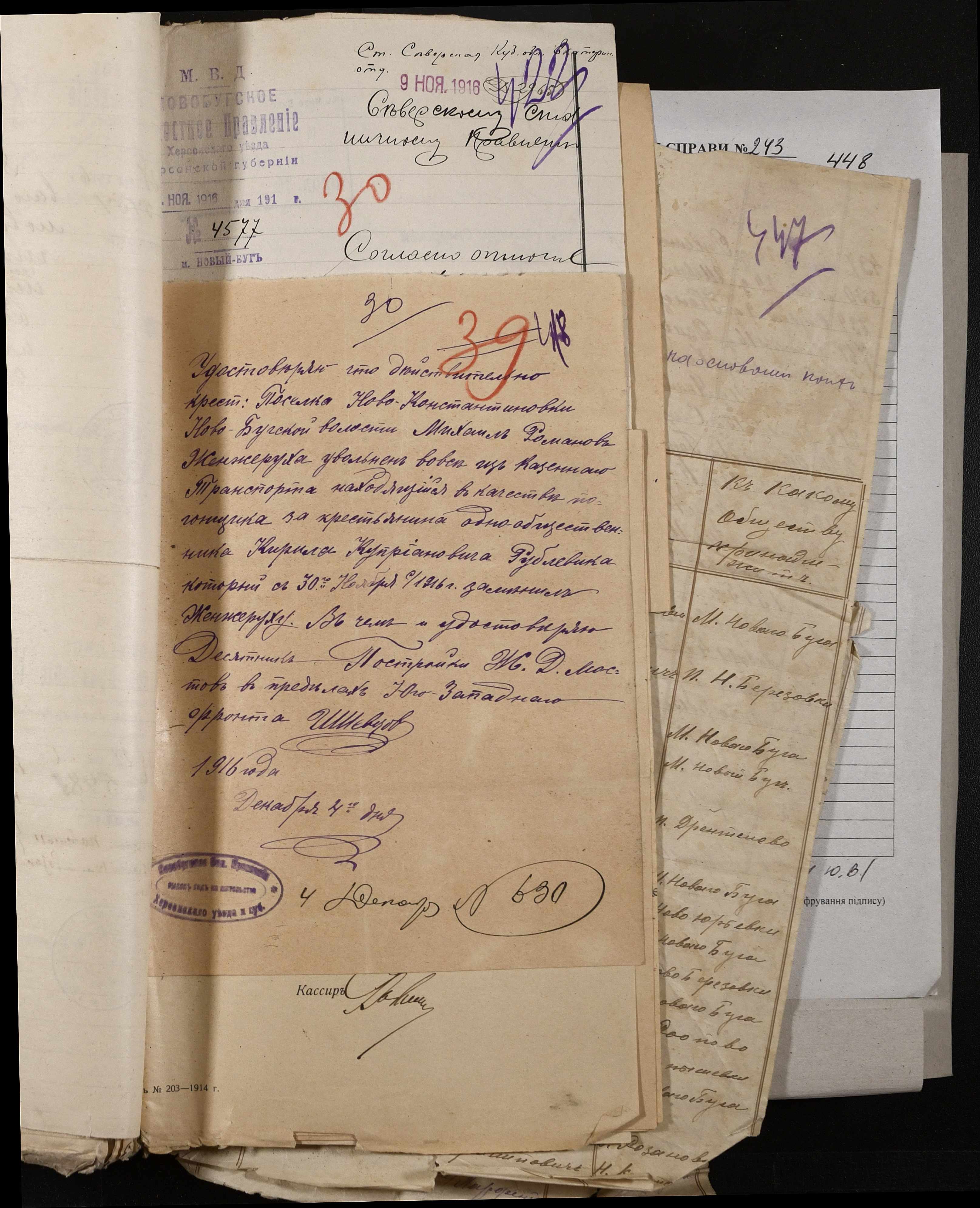 • • • • Справа № 243 “Відомості волосного правління про витрачені паспортні книжки у 1914-1915 роках, заяви та прохання громадян про видачу їм паспортів, листування з сільськими управліннями, рапорти та посвідчення, надані громадянам для отримання паспортів, посімейні списки”