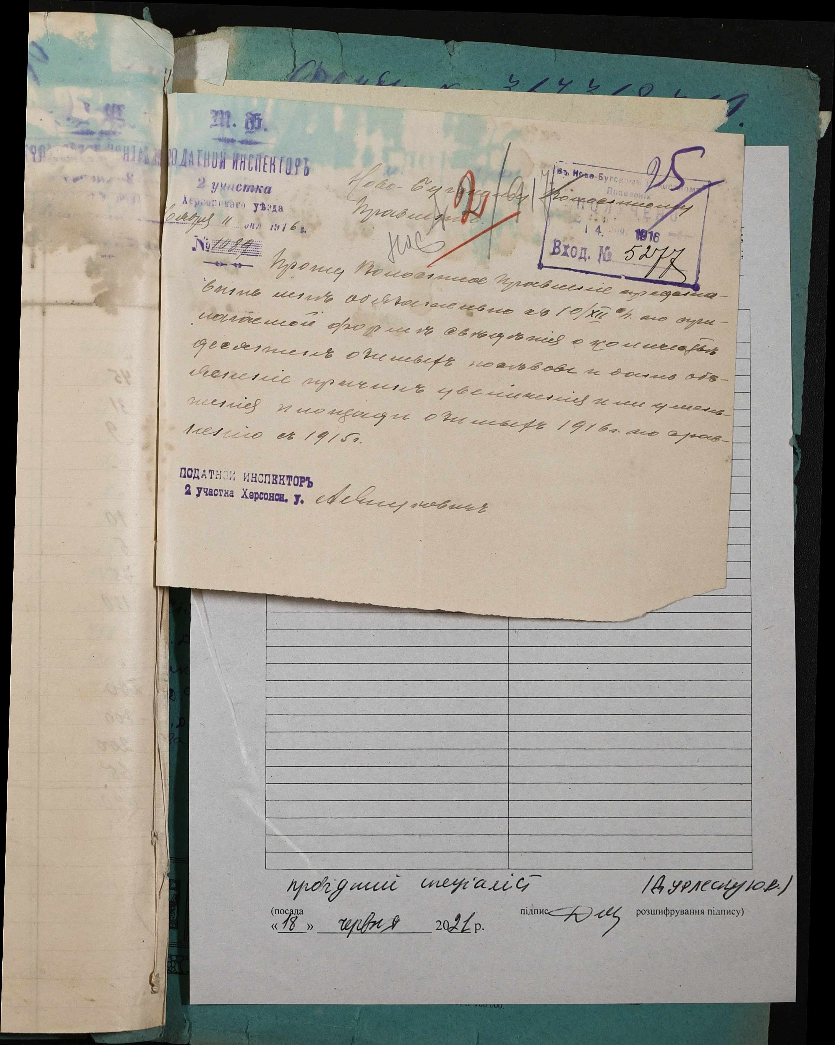 • • • • Справа № 244 “Припис Херсонських повітових земського начальника та податкового інспектора про проведення обліку площ, що засіваються селянами, рапорти та зведення сільських управлінь про кількість селянських озимих посівів”
