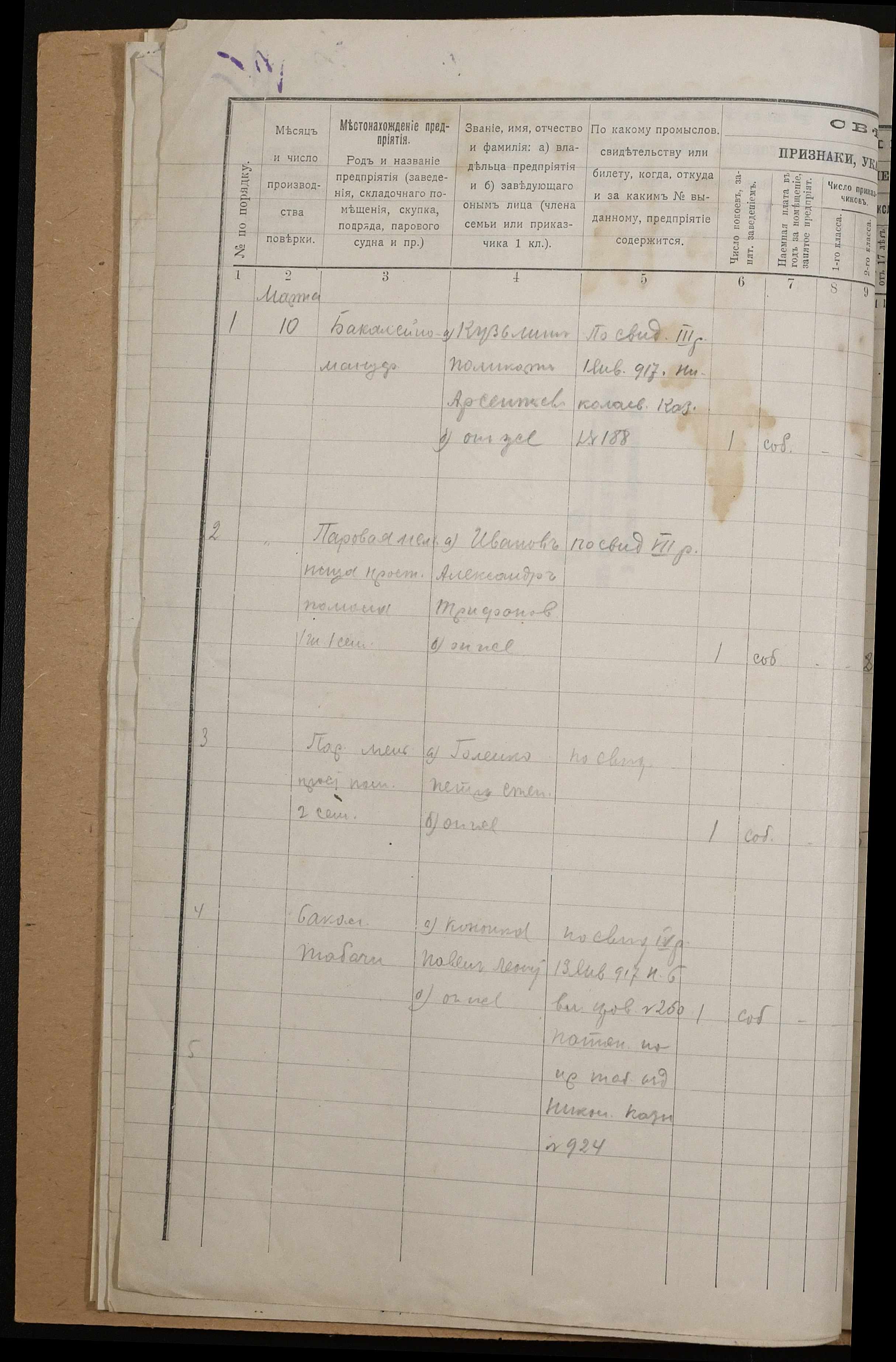• • • • Справа № 245 “Припис податного інспектора 2-ої дільниці Херсонського повіту про проведення перевірки торговельних та промислових підприємств та приватної промислової діяльності у волості; журнал перевірки за 1916 рік”