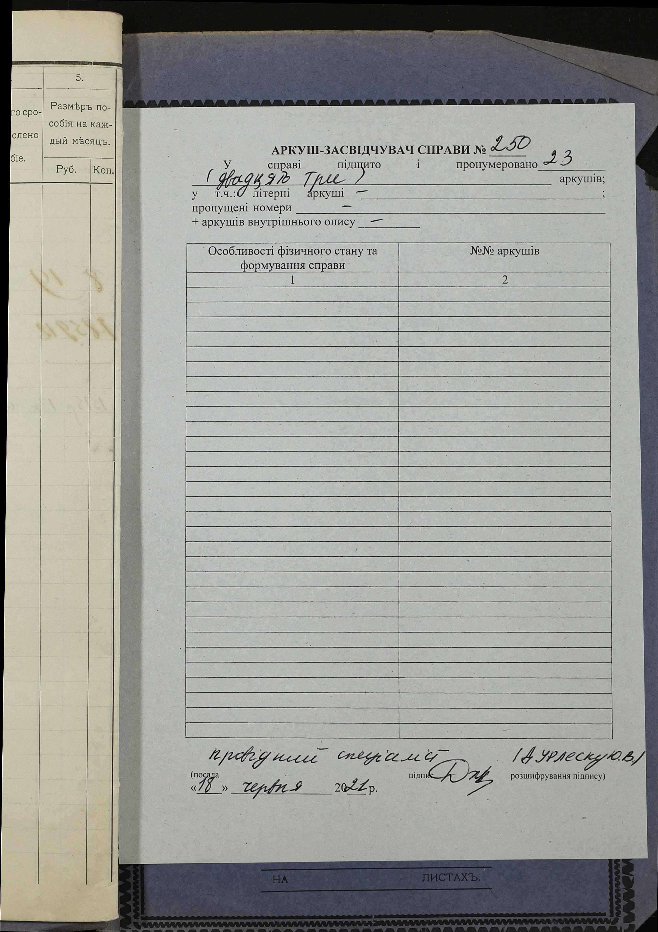 • • • • Справа № 250 “Роздаткова відомість для отримання продовольчої допомоги родинами нижніх військових чинів та ратників, призваних по 9-ій мобілізації 01 лютого 1916 року”
