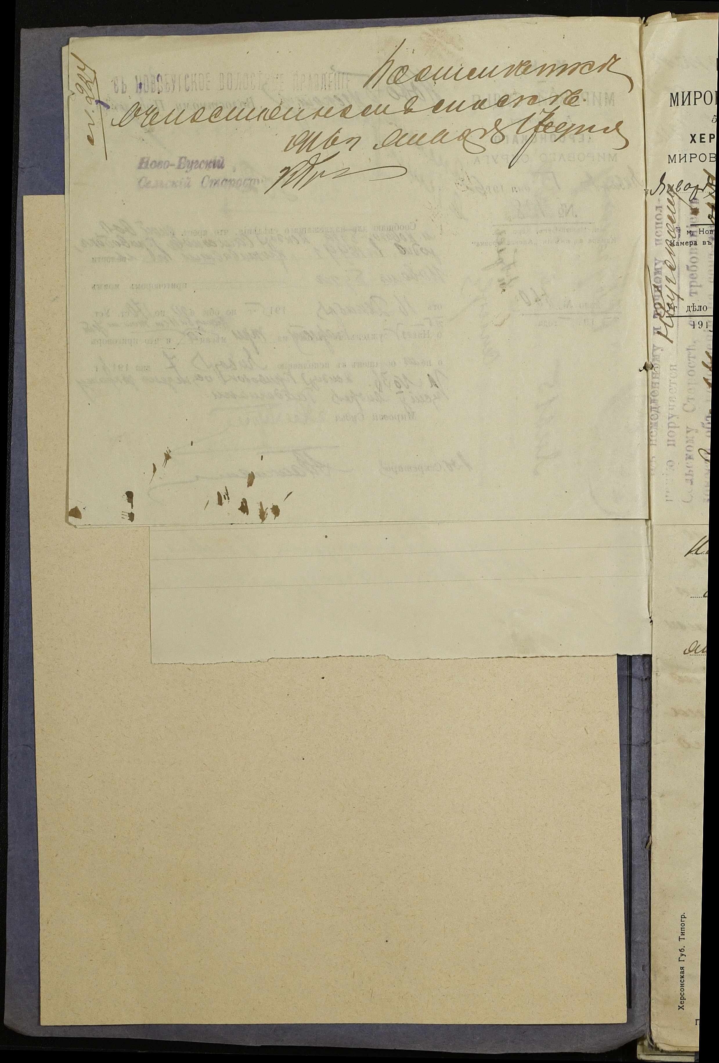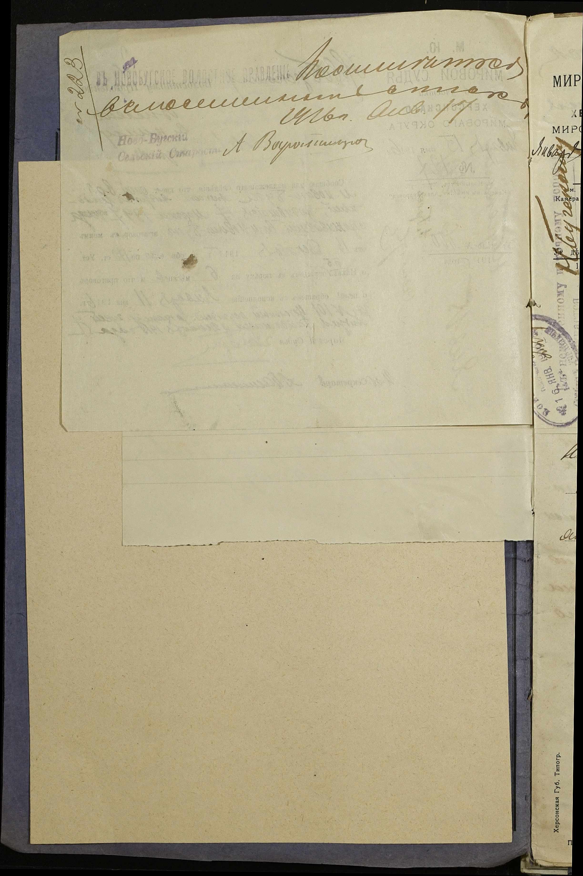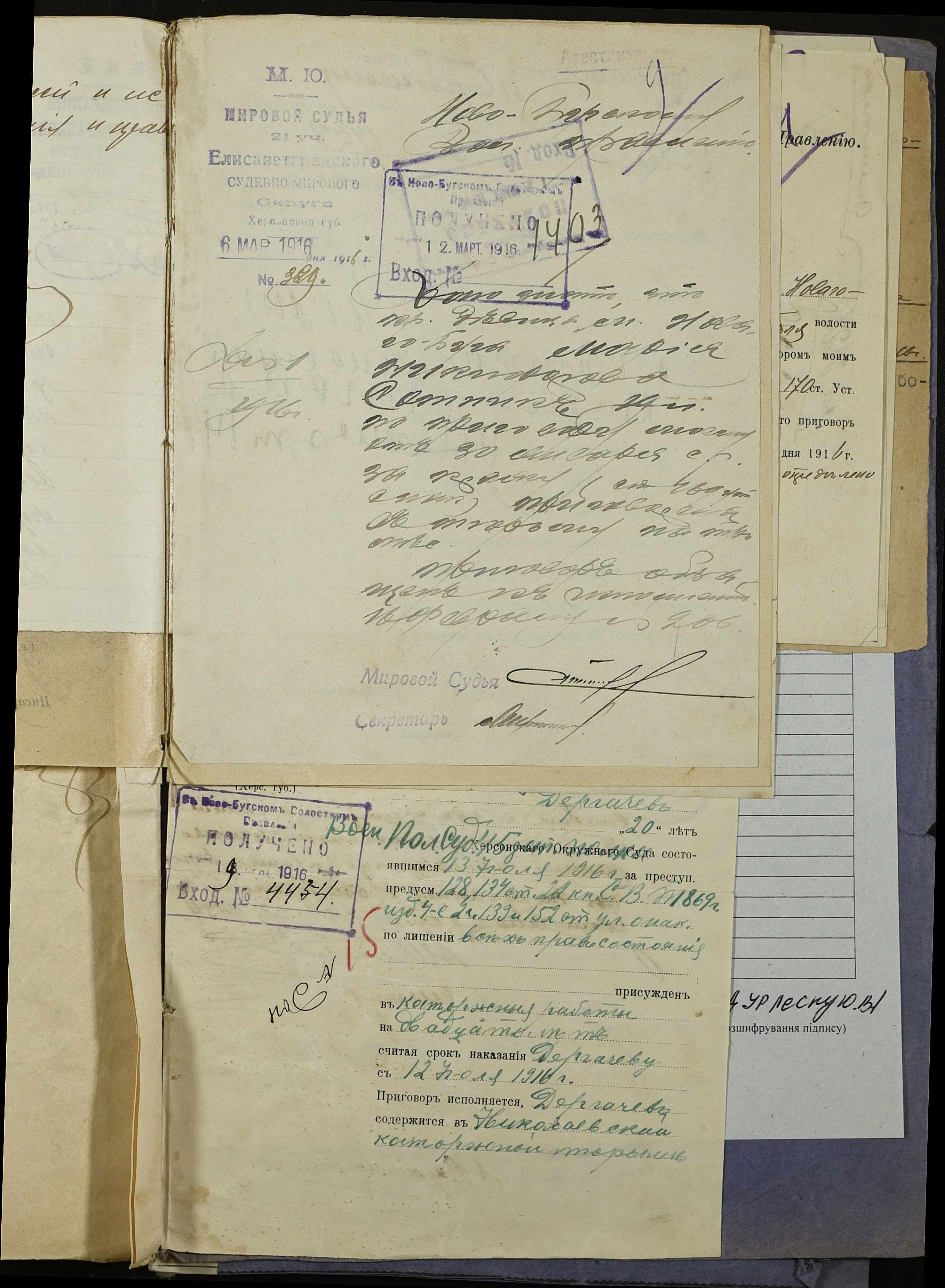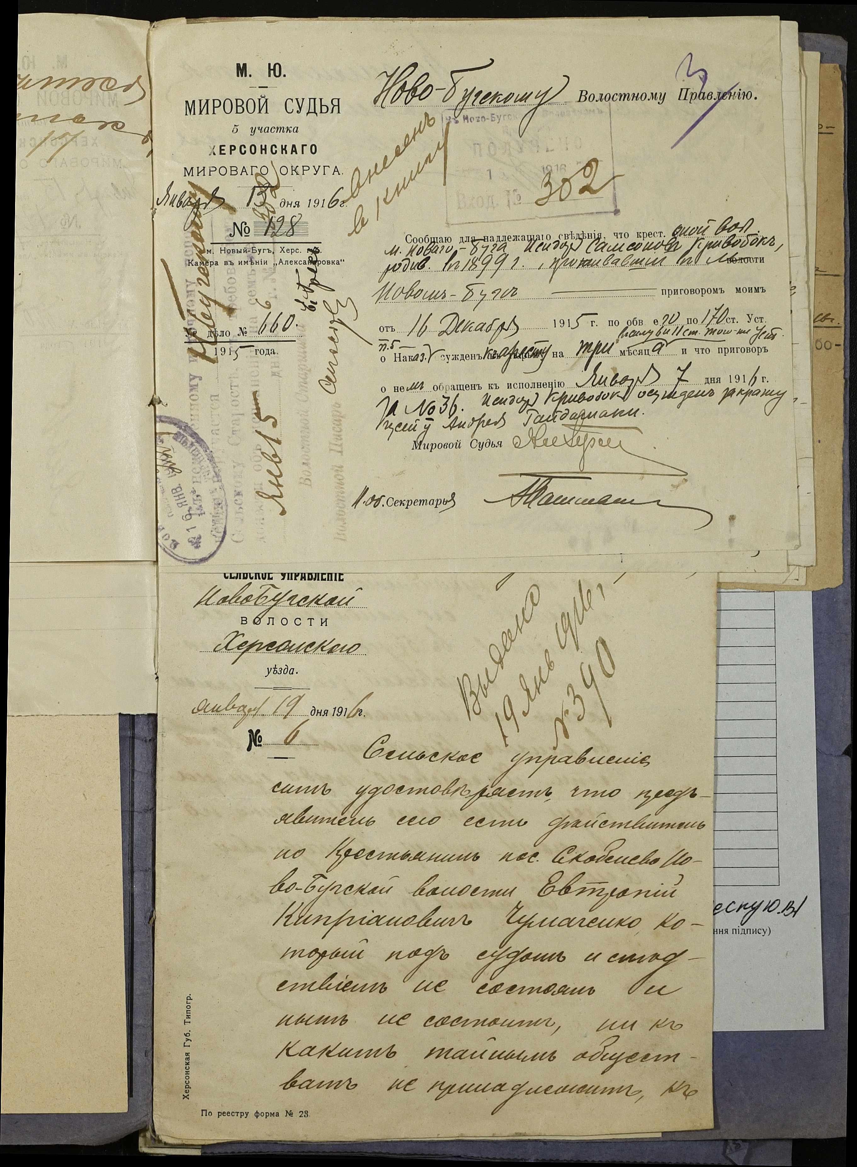 • • • • Справа № 252 “Повідомлення мирового судді 5-ої дільниці Херсонського мирового округу про засудження до тюремного ув’язнення селян м. Новий Буг Цегельного А.А., Кривобока І.С., Брусника С.І. та інш.”