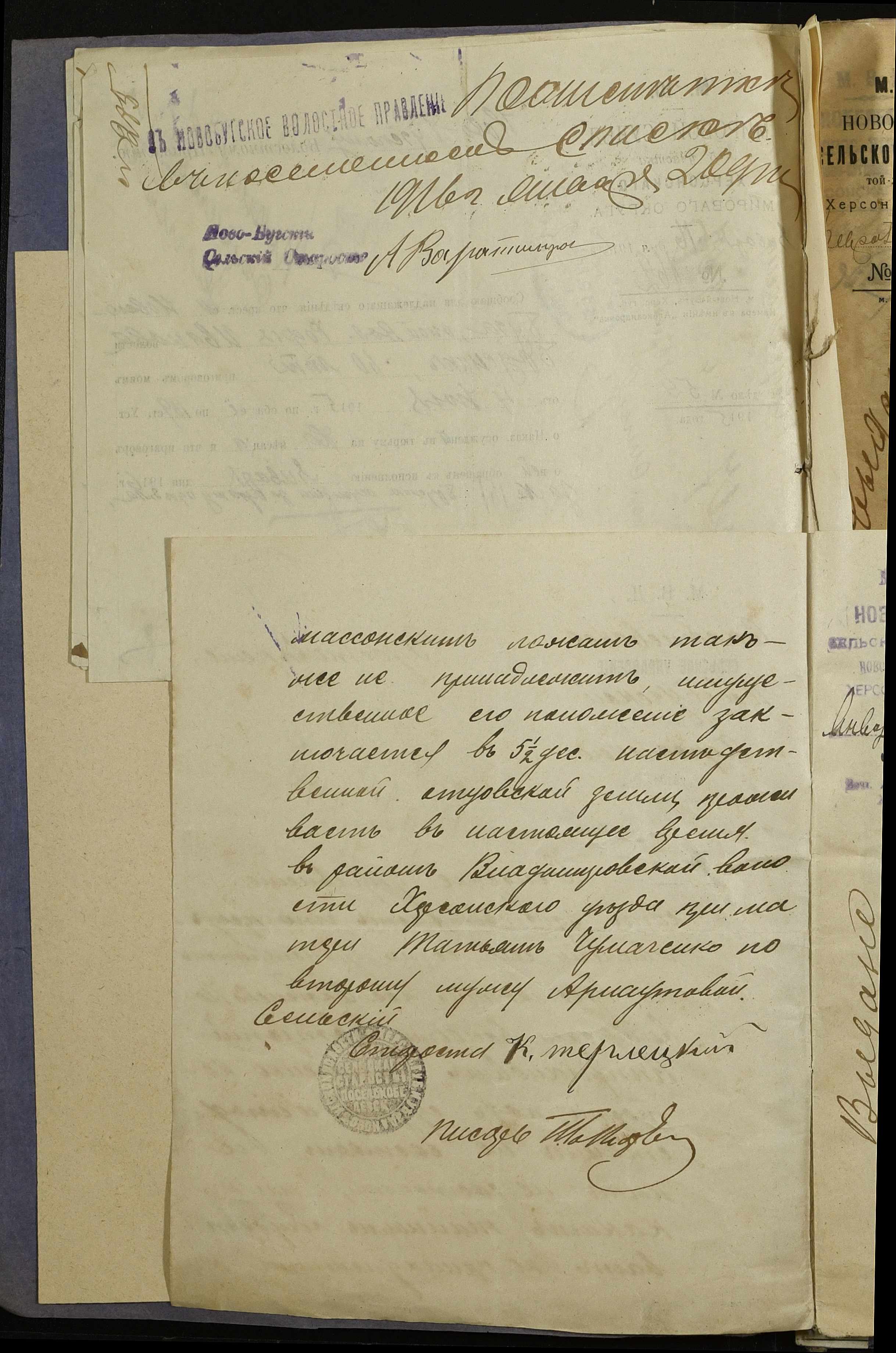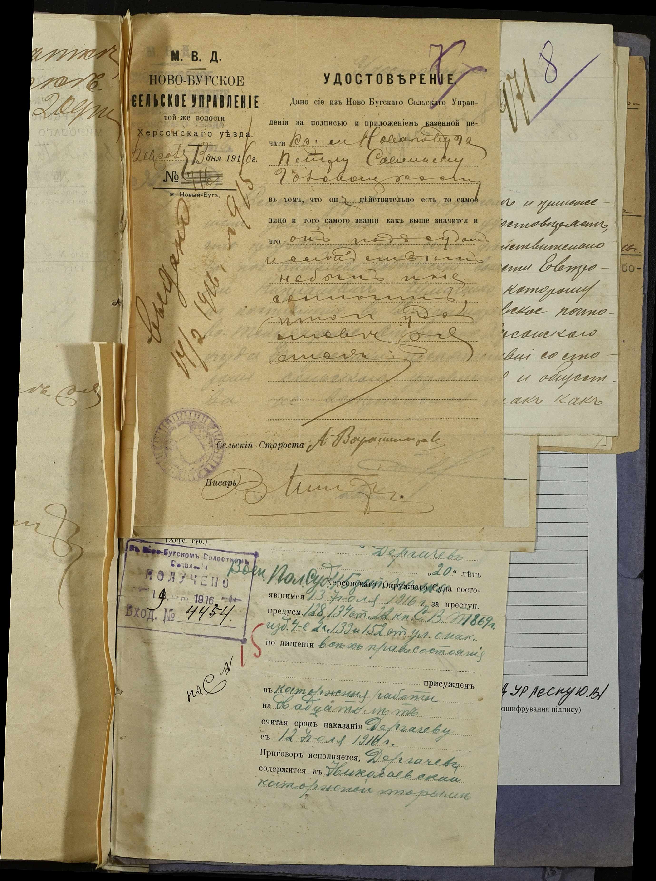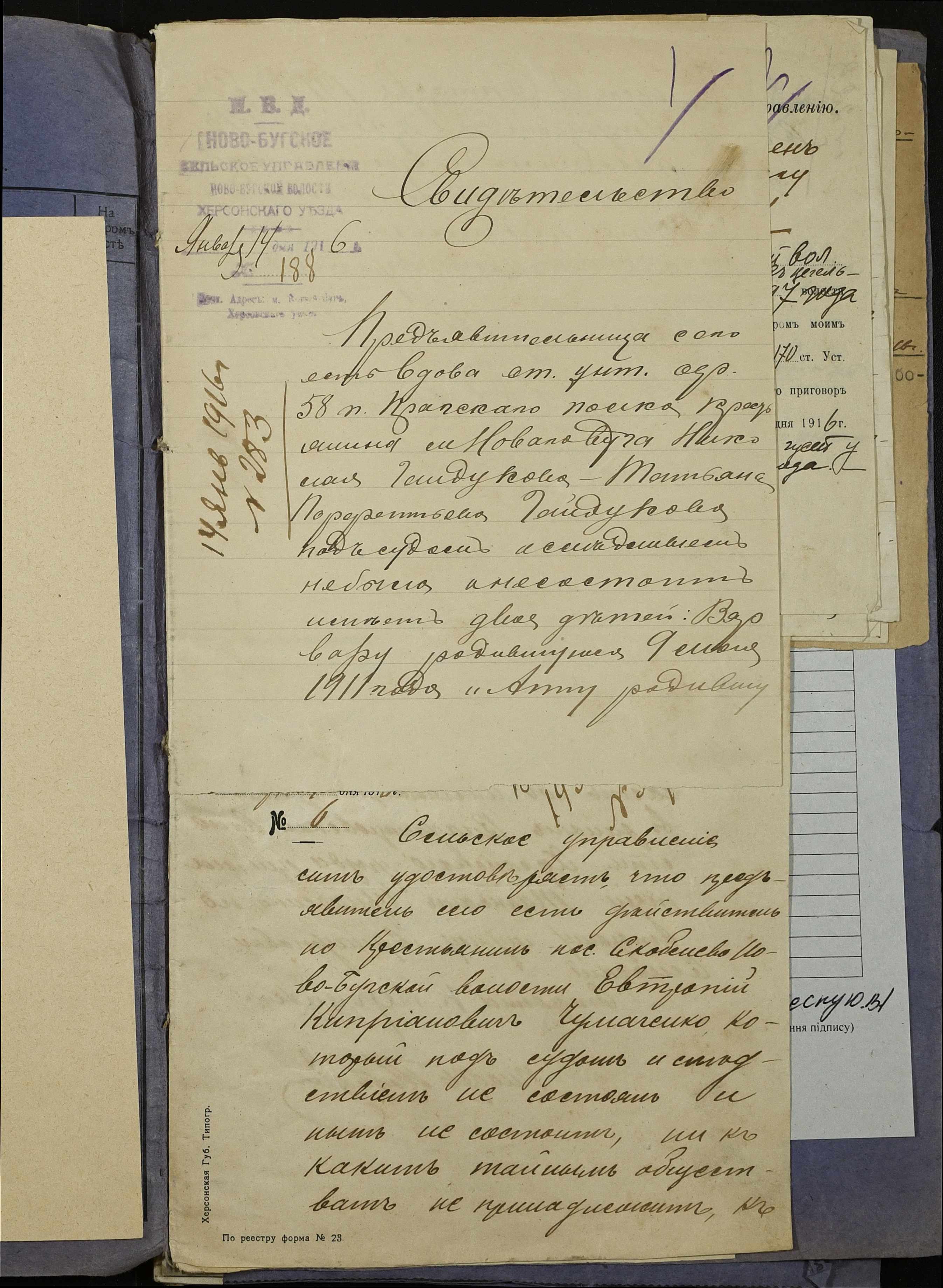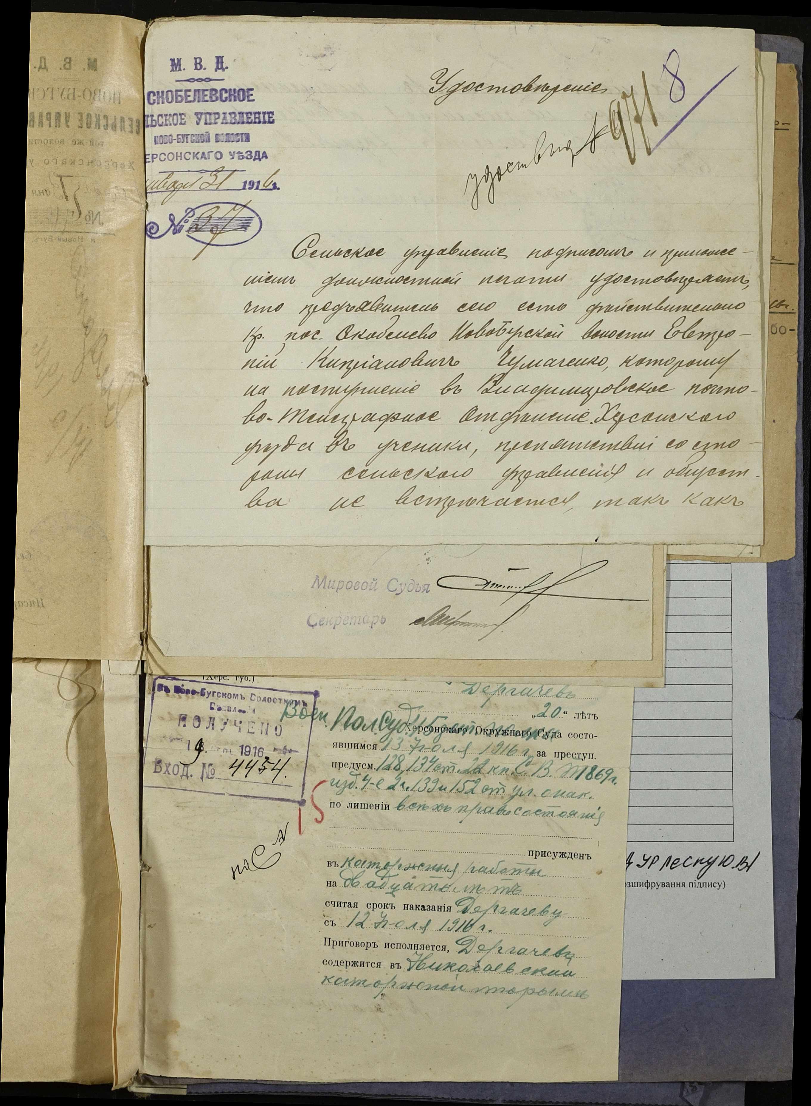 • • • • Справа № 252 “Повідомлення мирового судді 5-ої дільниці Херсонського мирового округу про засудження до тюремного ув’язнення селян м. Новий Буг Цегельного А.А., Кривобока І.С., Брусника С.І. та інш.”