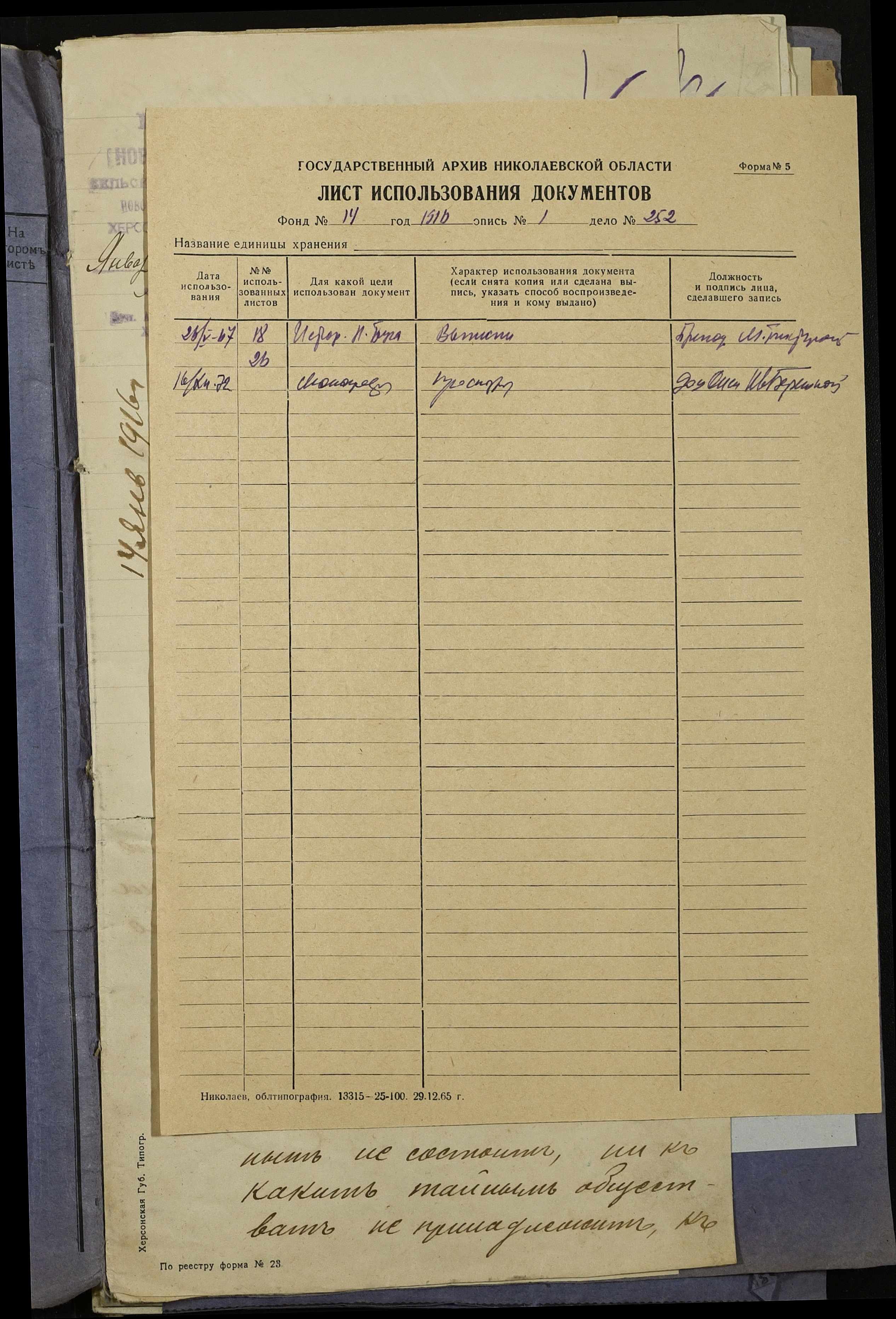 Фонд 14 / Опис 1 / Справа 252
