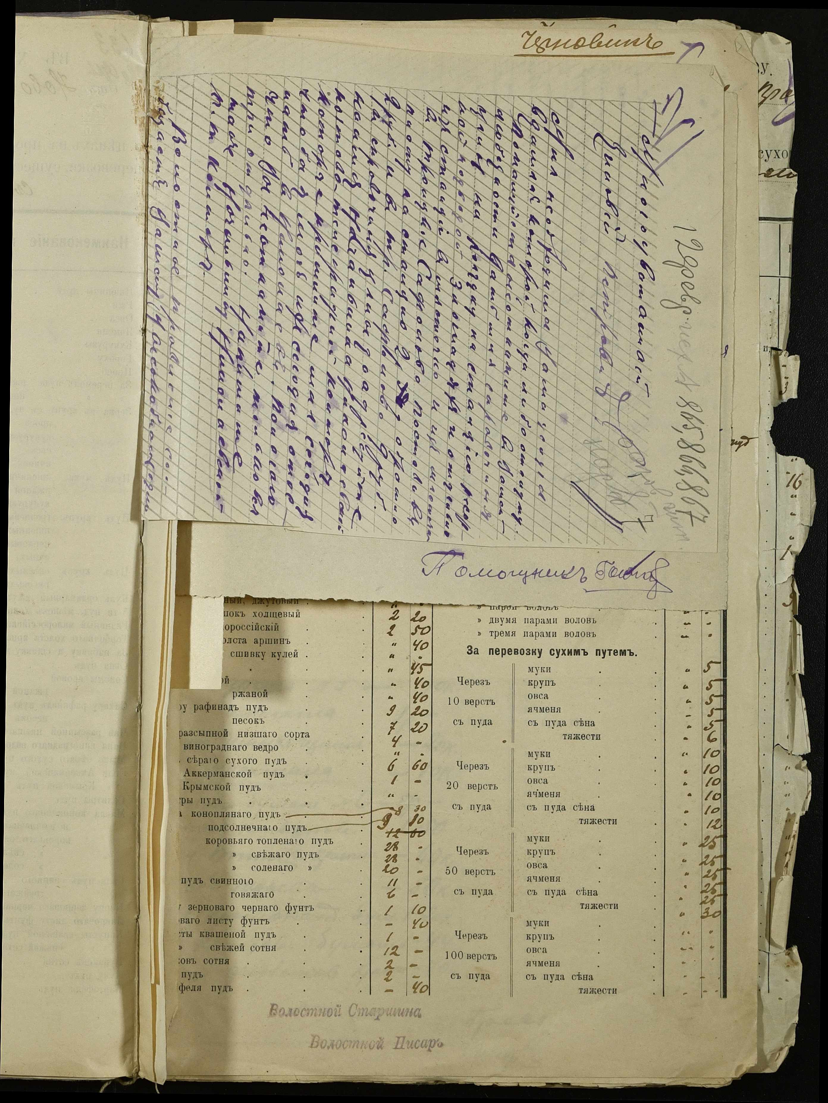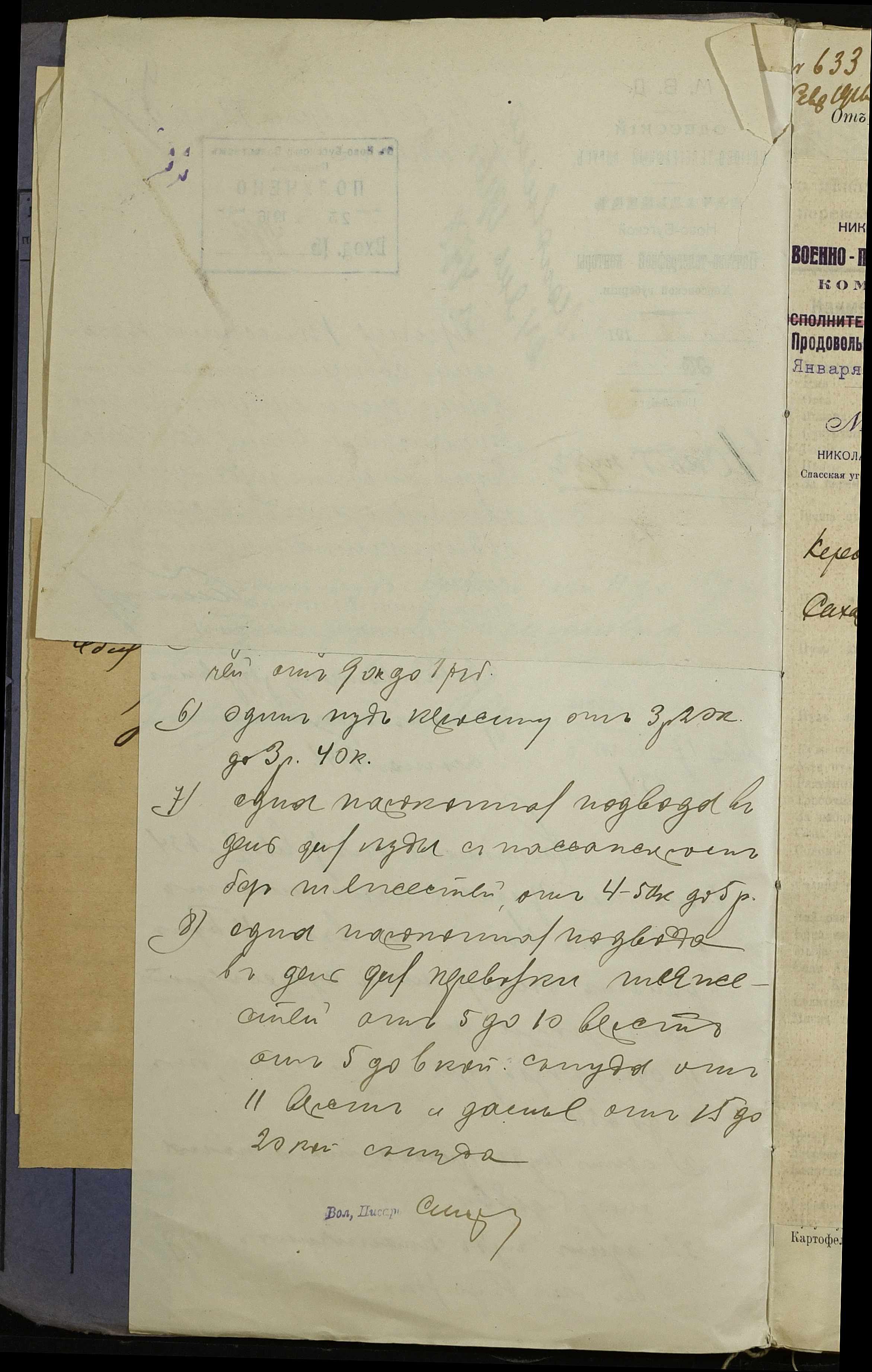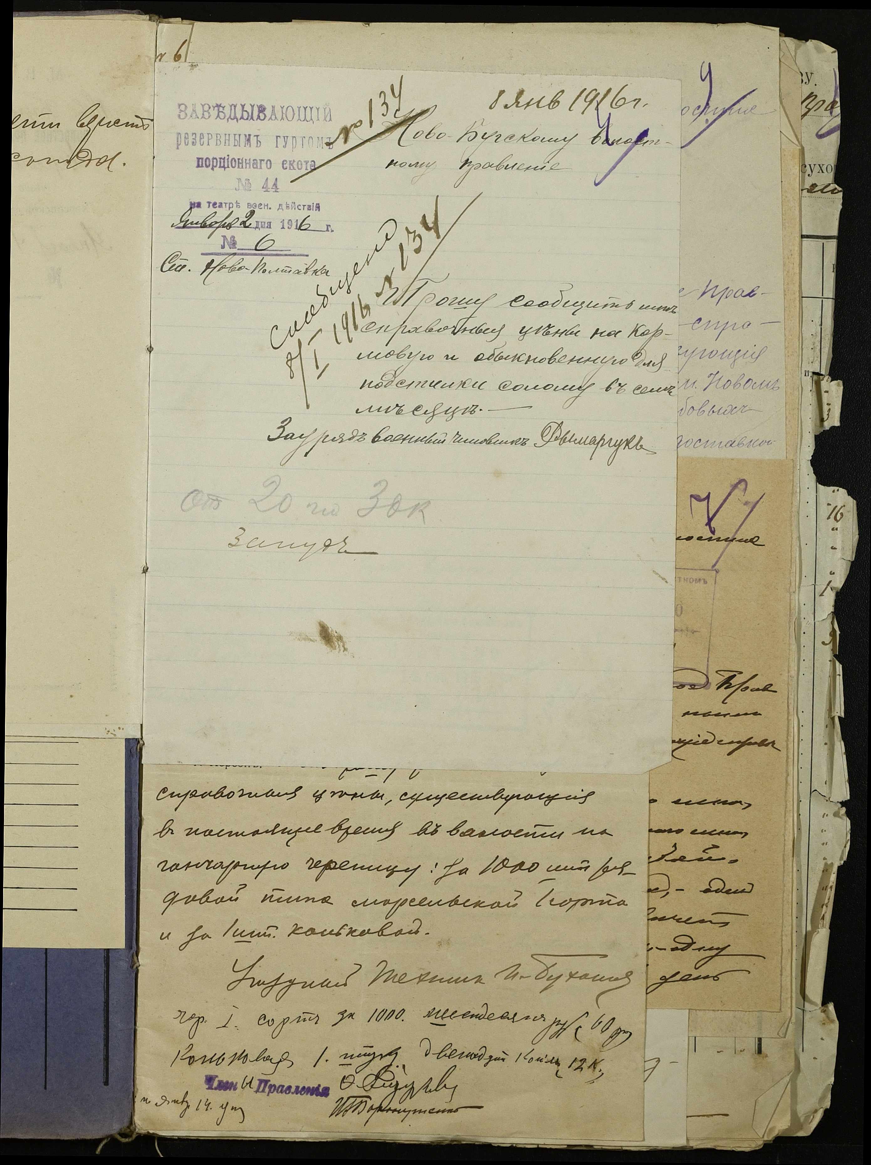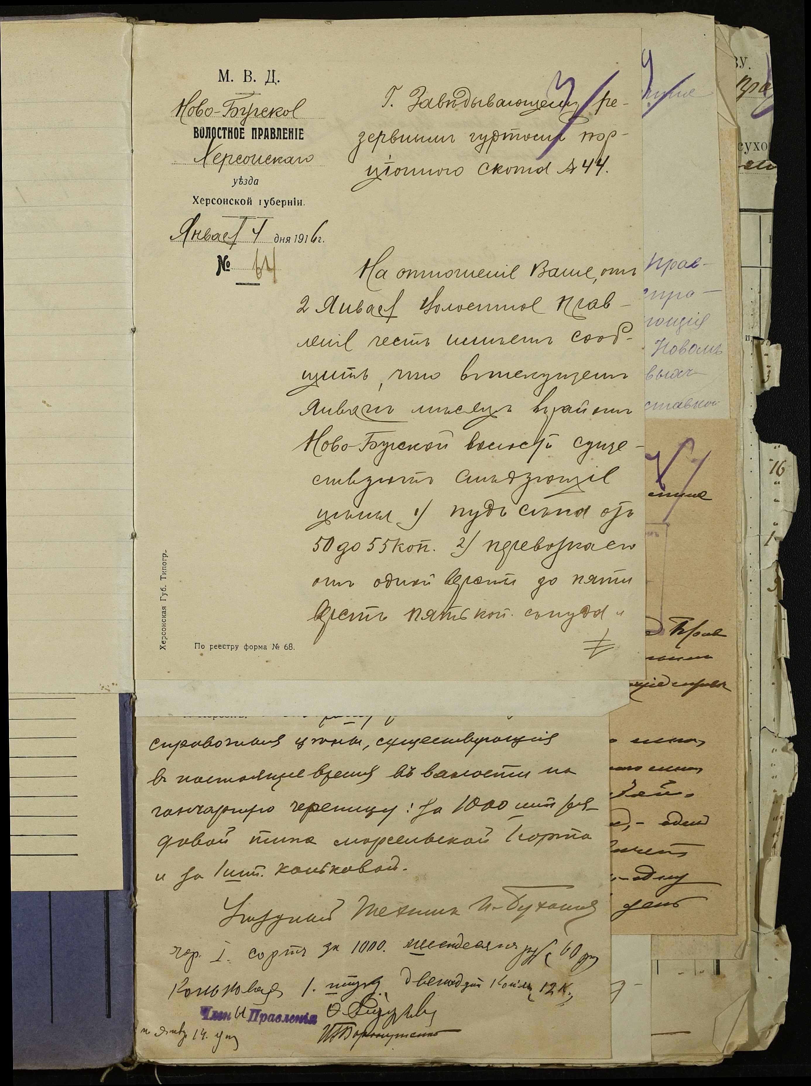 • • • • Справа № 254 “Листування з поштово-телеграфною конторою, завідувачем резервним гуртом порційної худоби, з продовольчим відділом та іншими установами про ціни на продовольство та фураж, відомості про ціни на провіант, фураж та інші припаси, про сухопутні перевезення у волості”