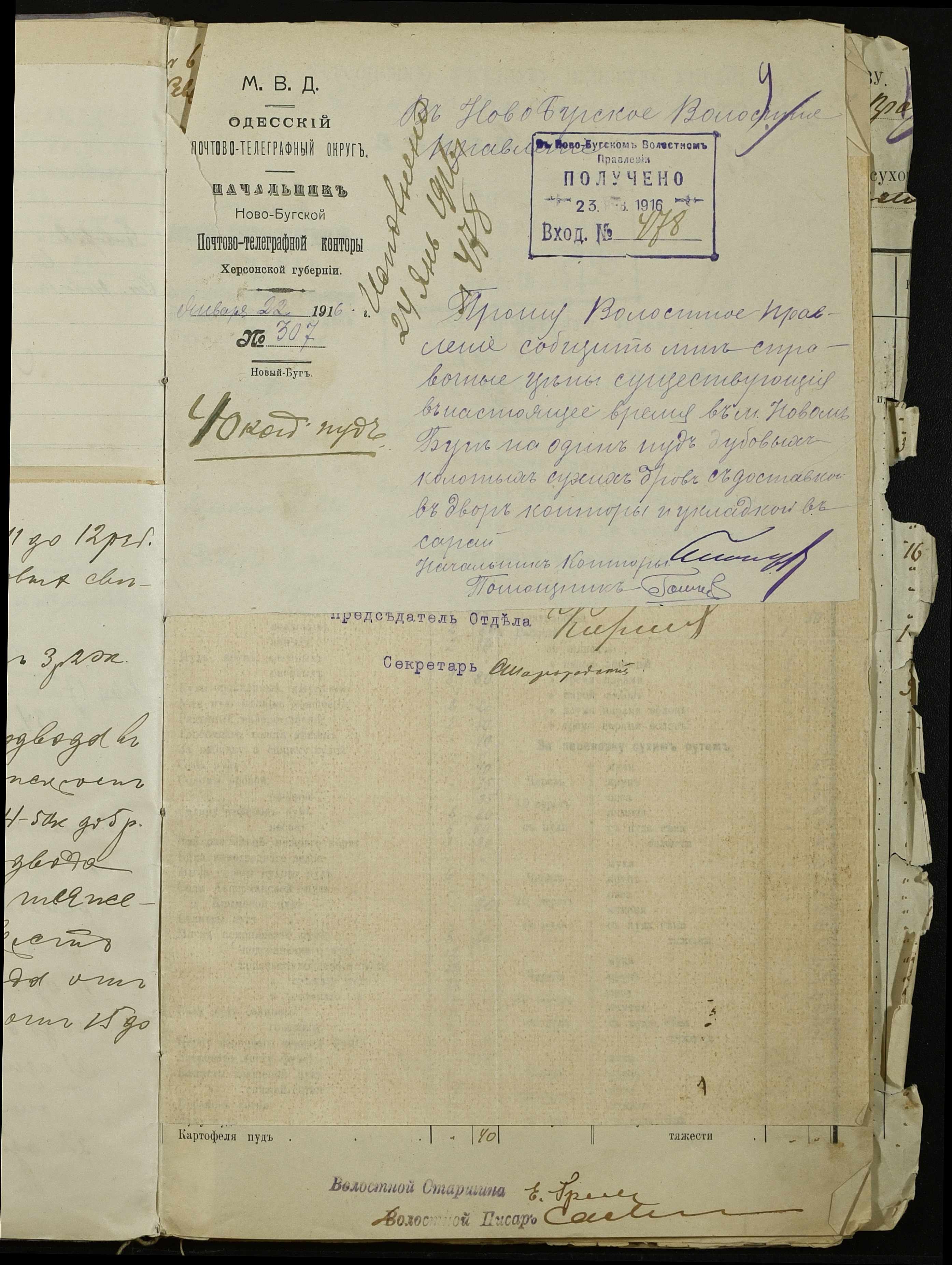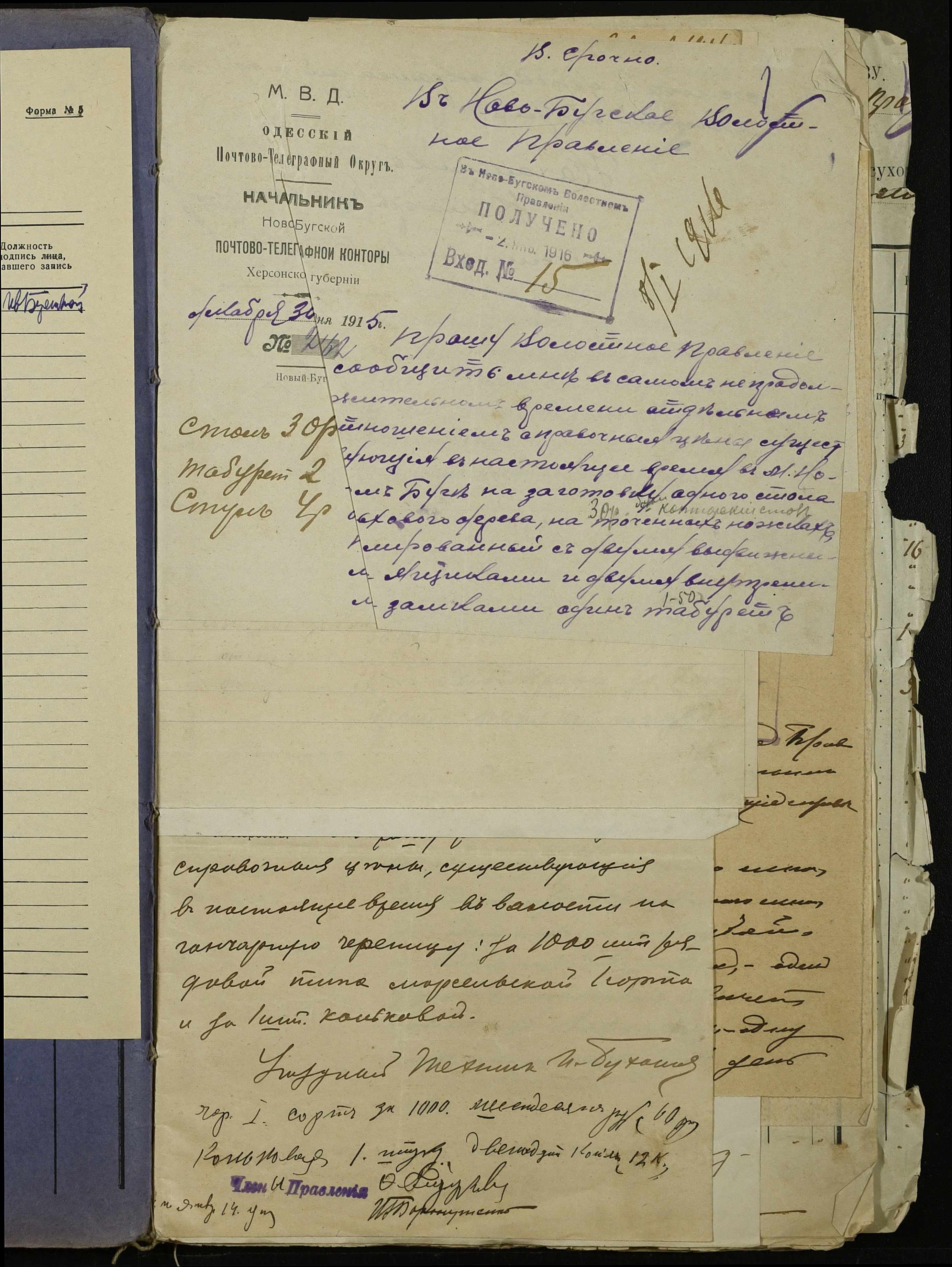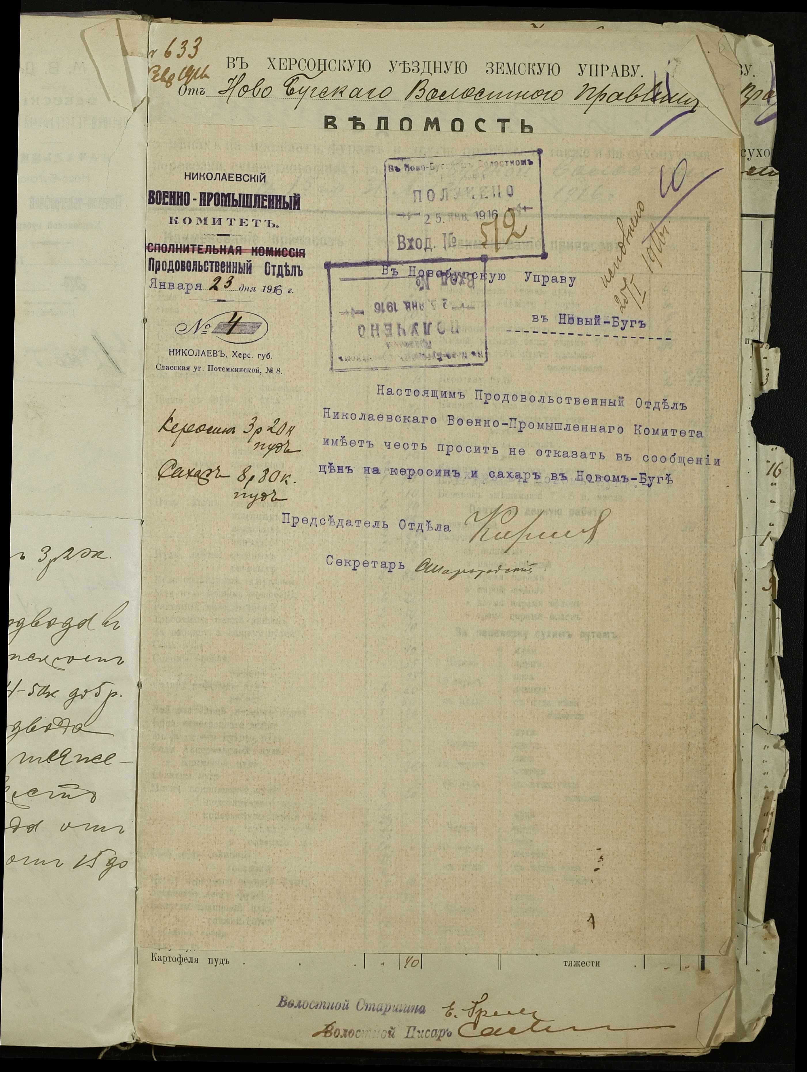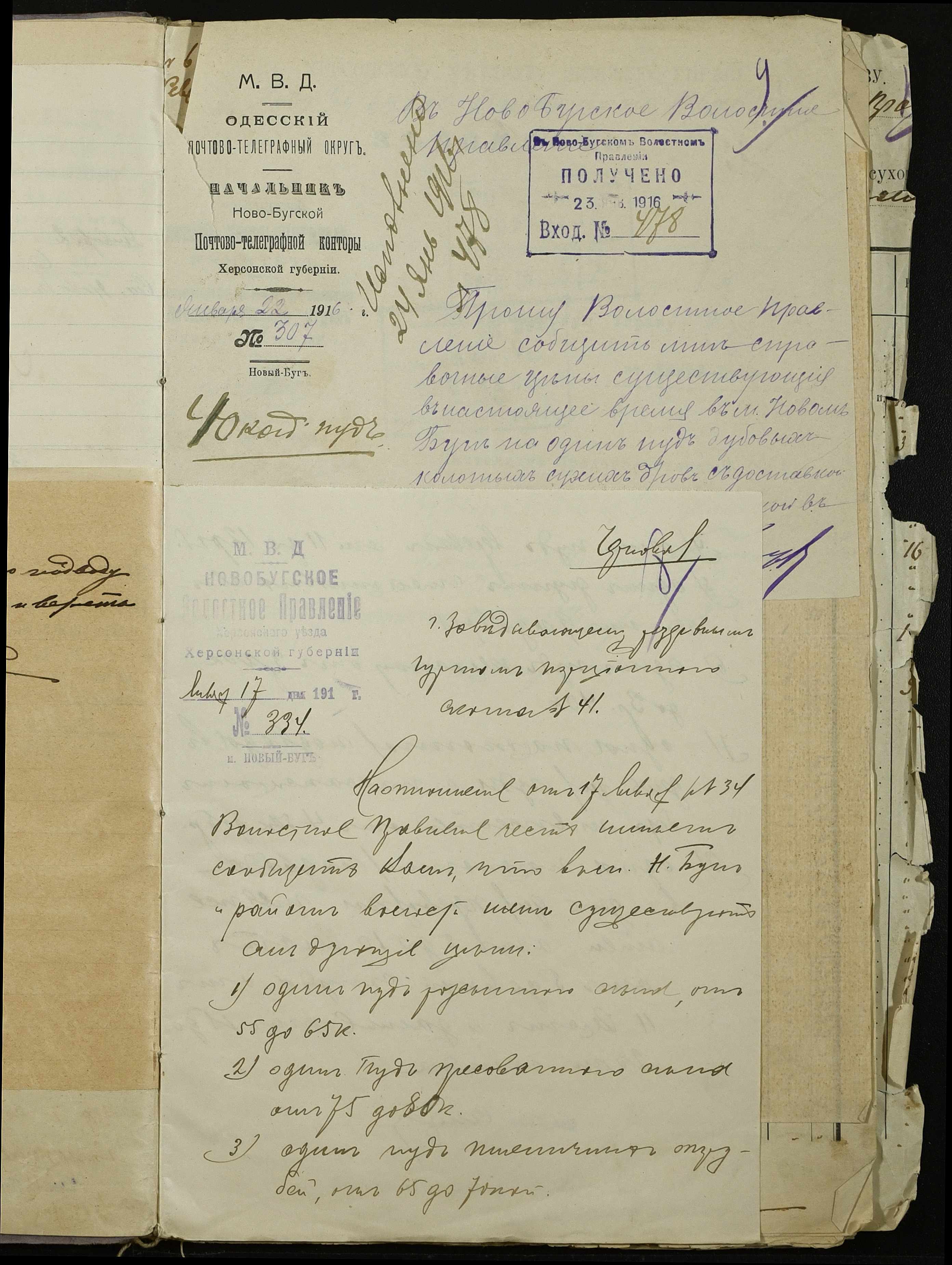 • • • • Справа № 254 “Листування з поштово-телеграфною конторою, завідувачем резервним гуртом порційної худоби, з продовольчим відділом та іншими установами про ціни на продовольство та фураж, відомості про ціни на провіант, фураж та інші припаси, про сухопутні перевезення у волості”