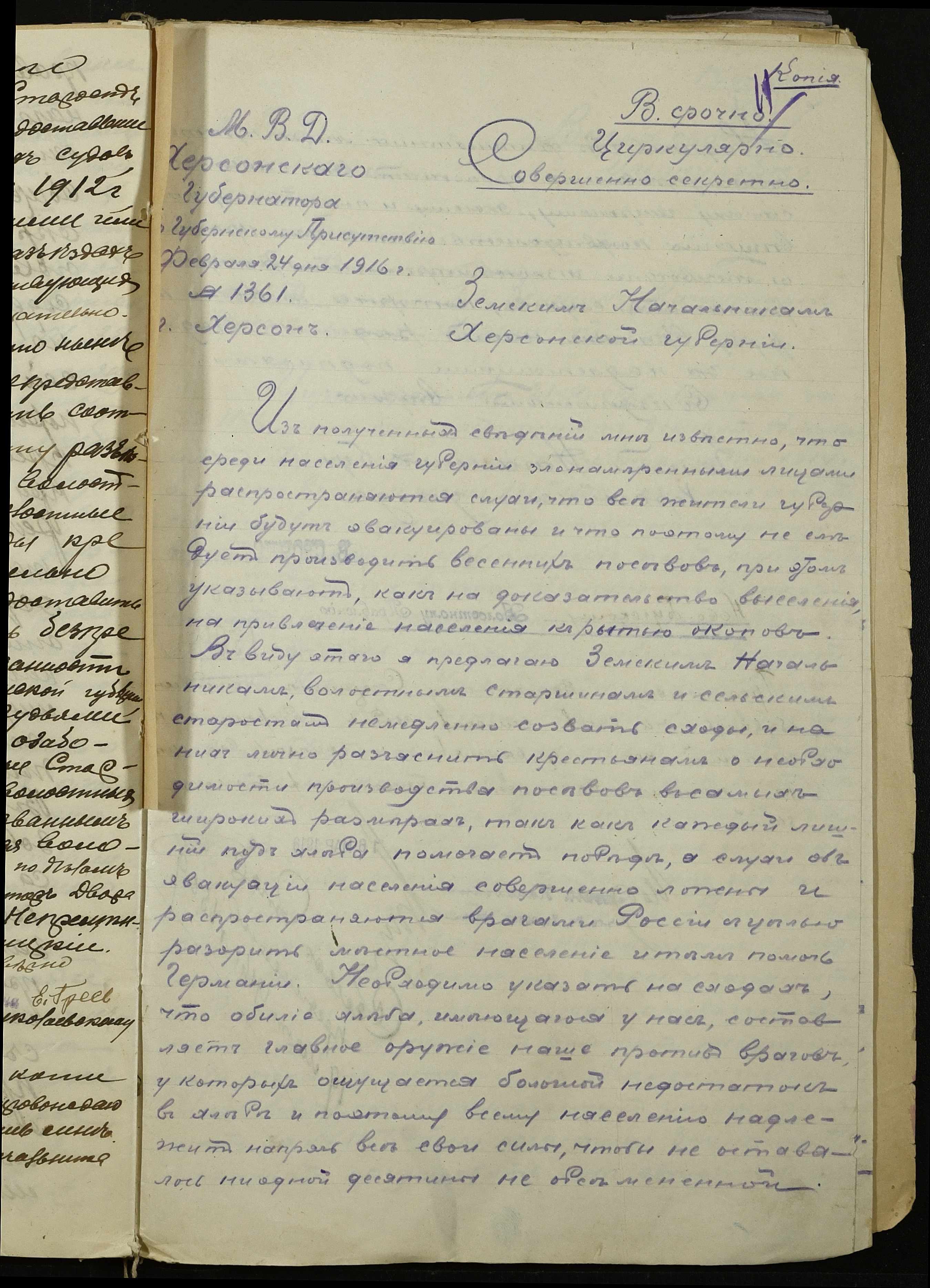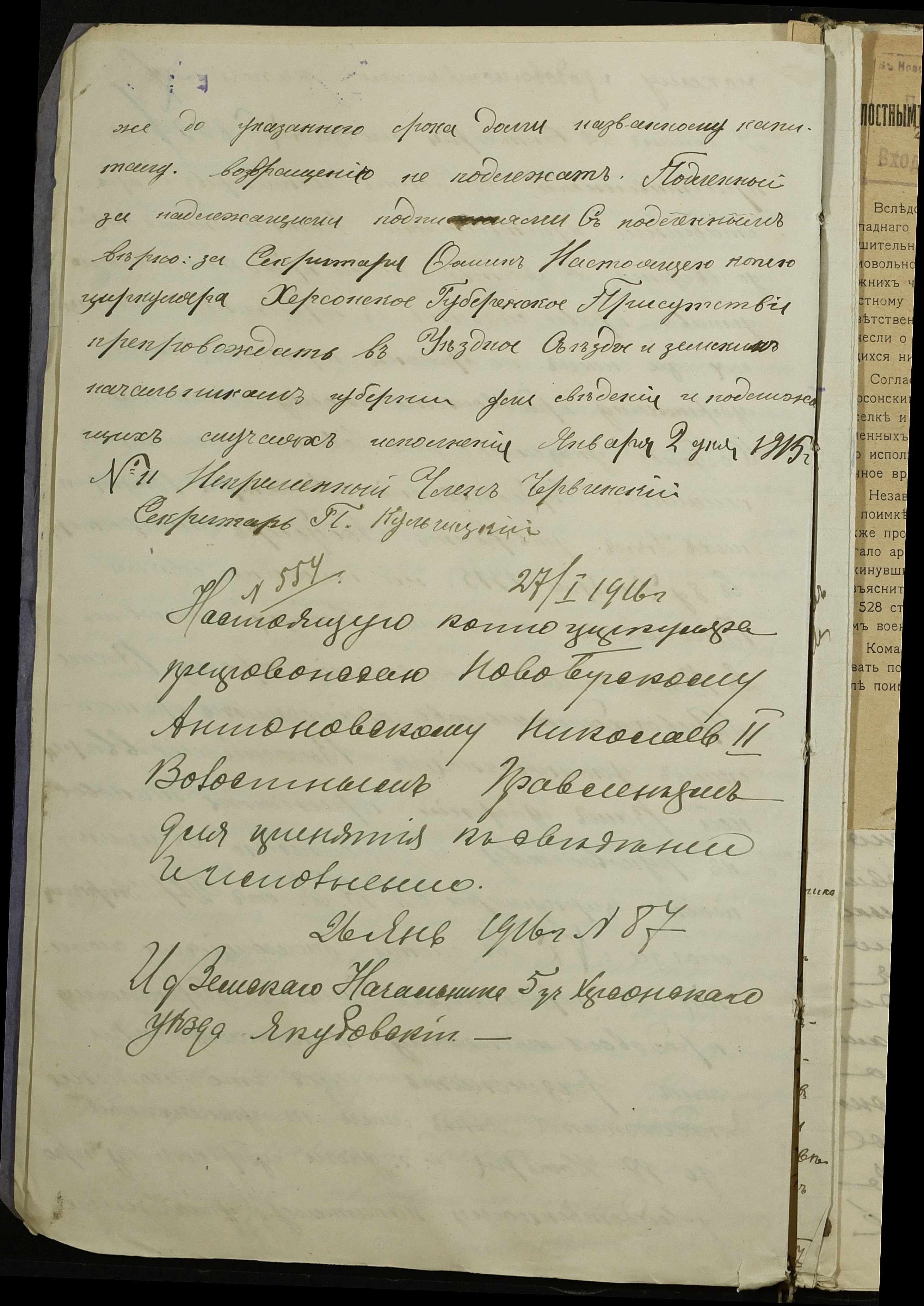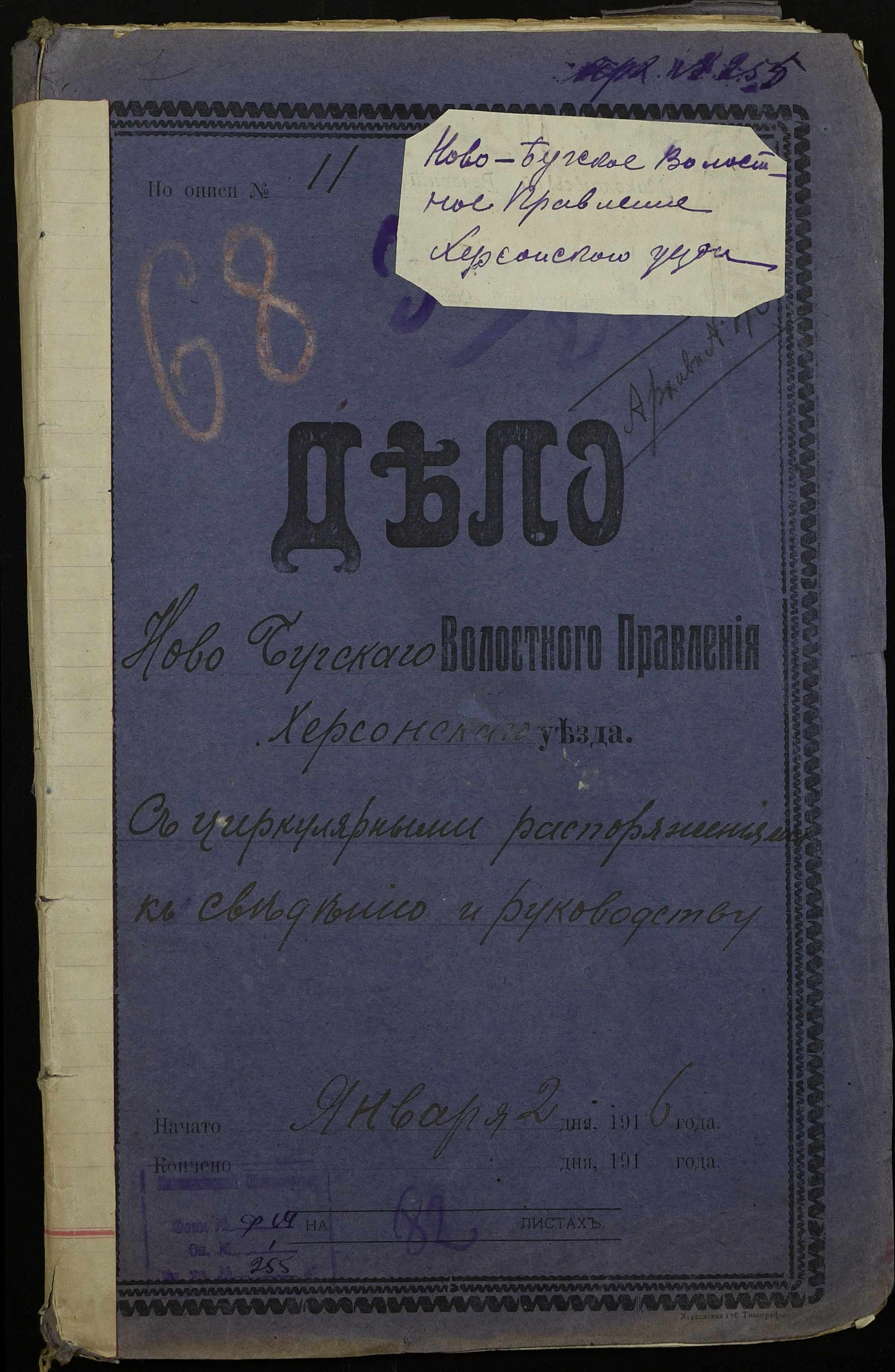 • • • • Справа № 255 “Обіжники правлячого Сенату, міністерств юстиції, фінансів, торгівлі та промисловості, Херсонських губернатора та повітової управи про впорядкування торгівлі особами іудейського походження та іноземними підданими, про продовольче постачання армії та переселенців, боротьбу з бродяжництвом”