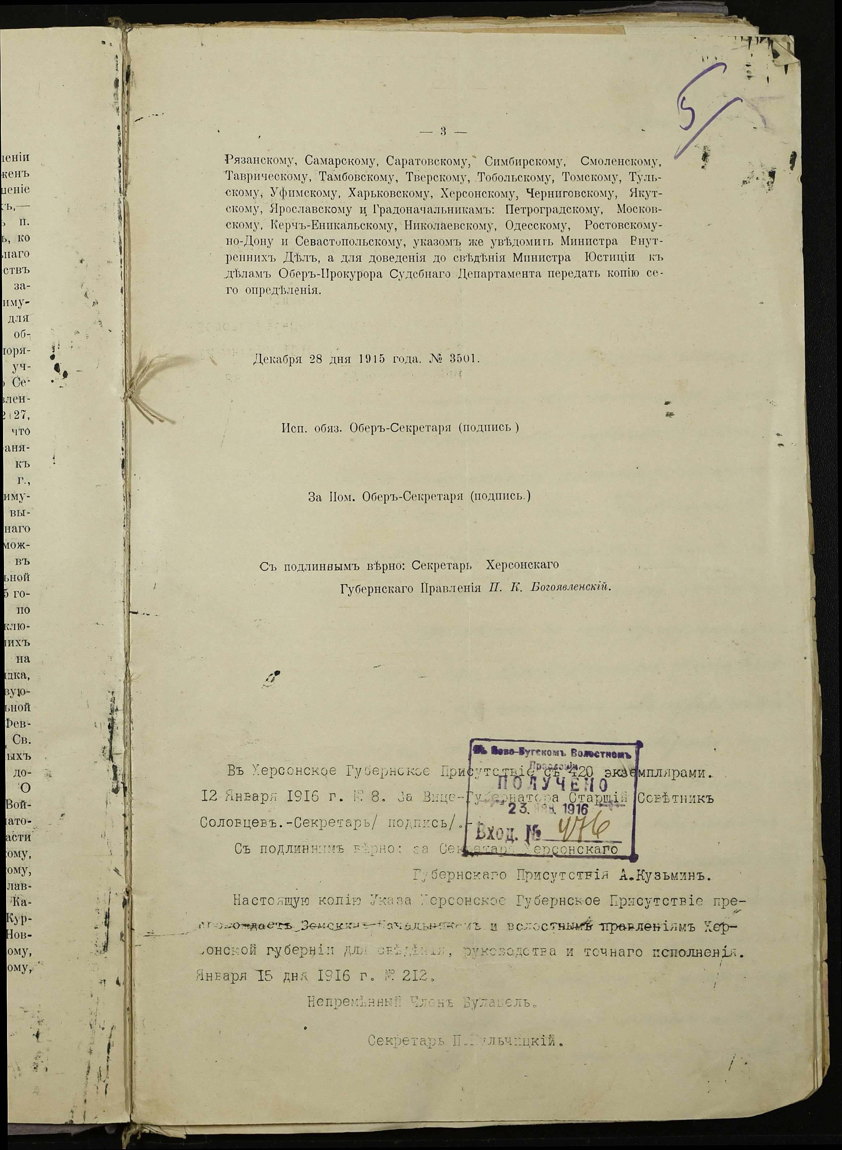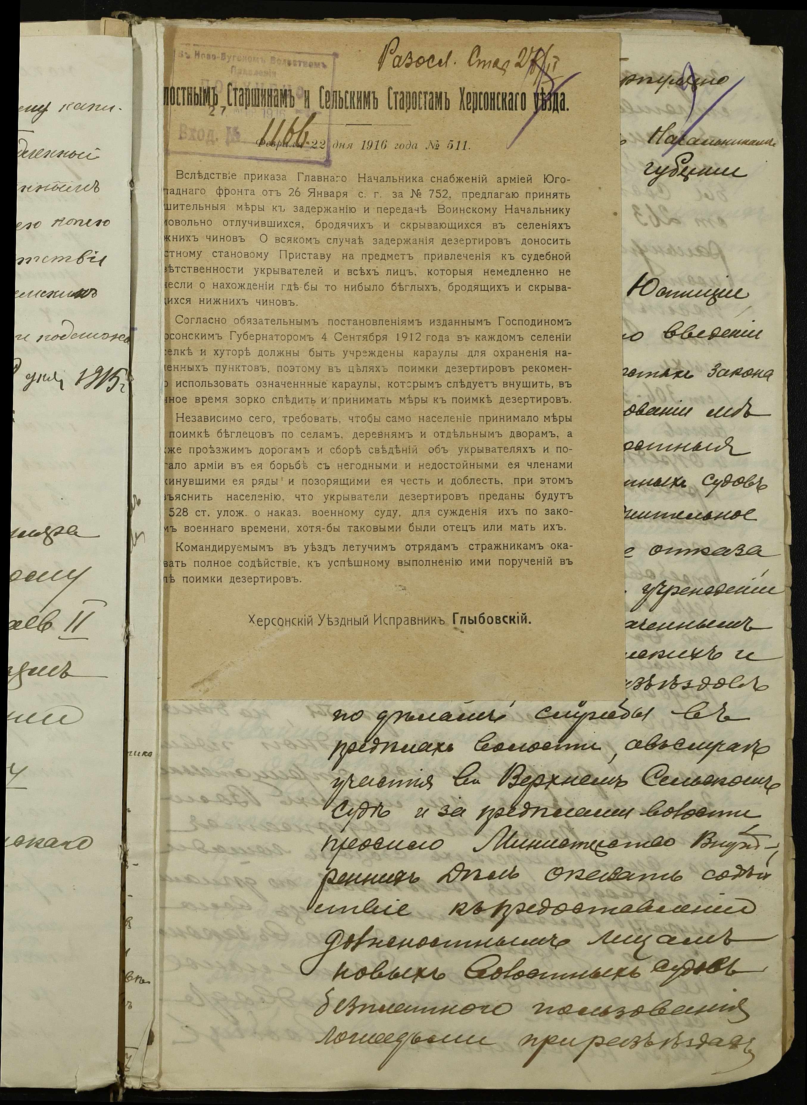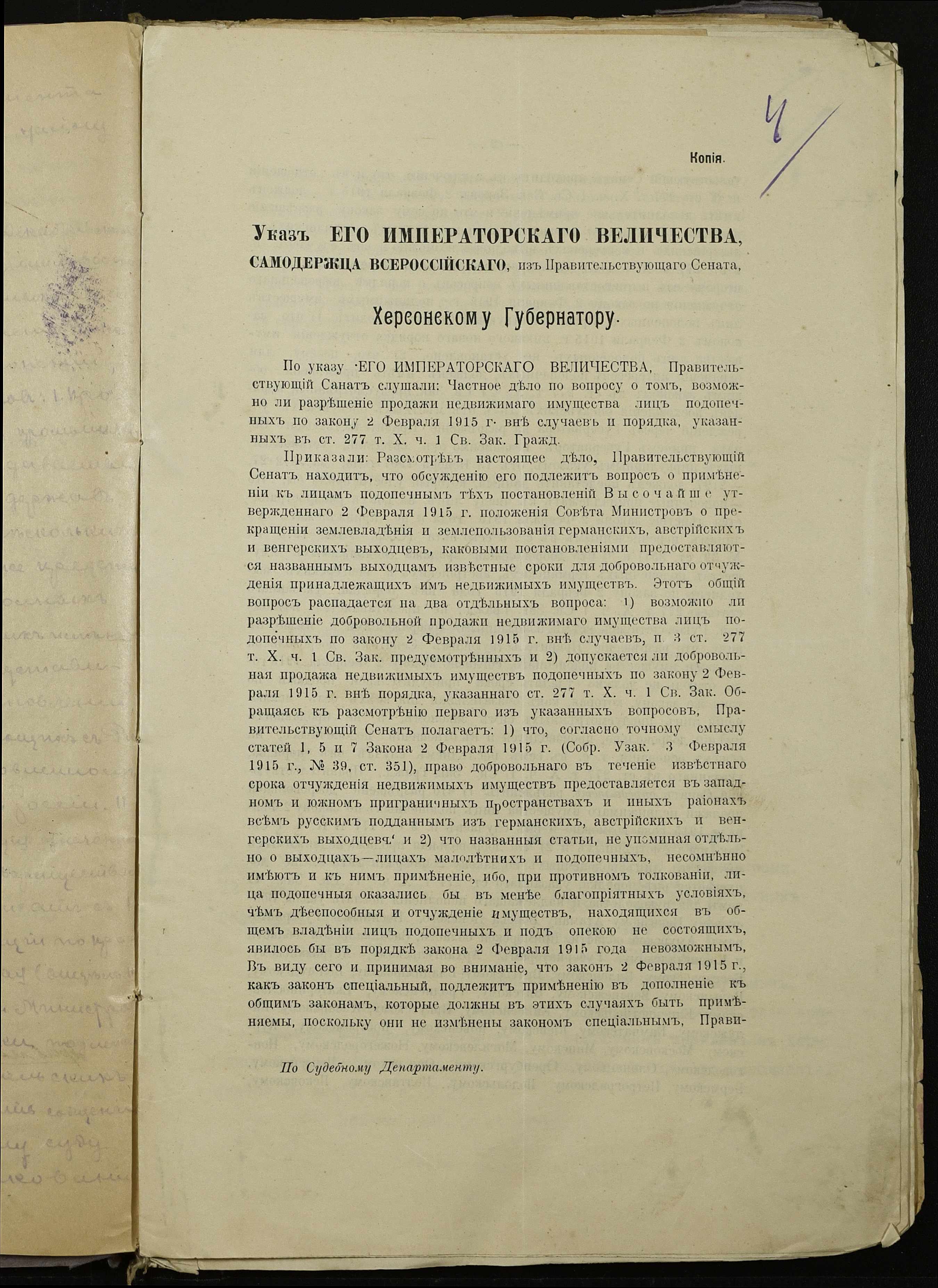 • • • • Справа № 255 “Обіжники правлячого Сенату, міністерств юстиції, фінансів, торгівлі та промисловості, Херсонських губернатора та повітової управи про впорядкування торгівлі особами іудейського походження та іноземними підданими, про продовольче постачання армії та переселенців, боротьбу з бродяжництвом”