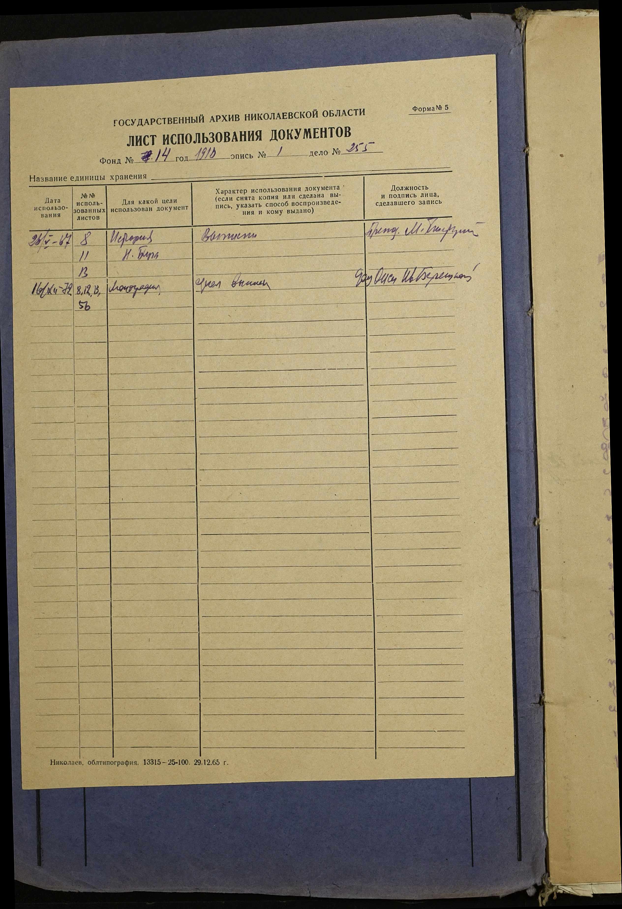 Фонд 14 / Опис 1 / Справа 255