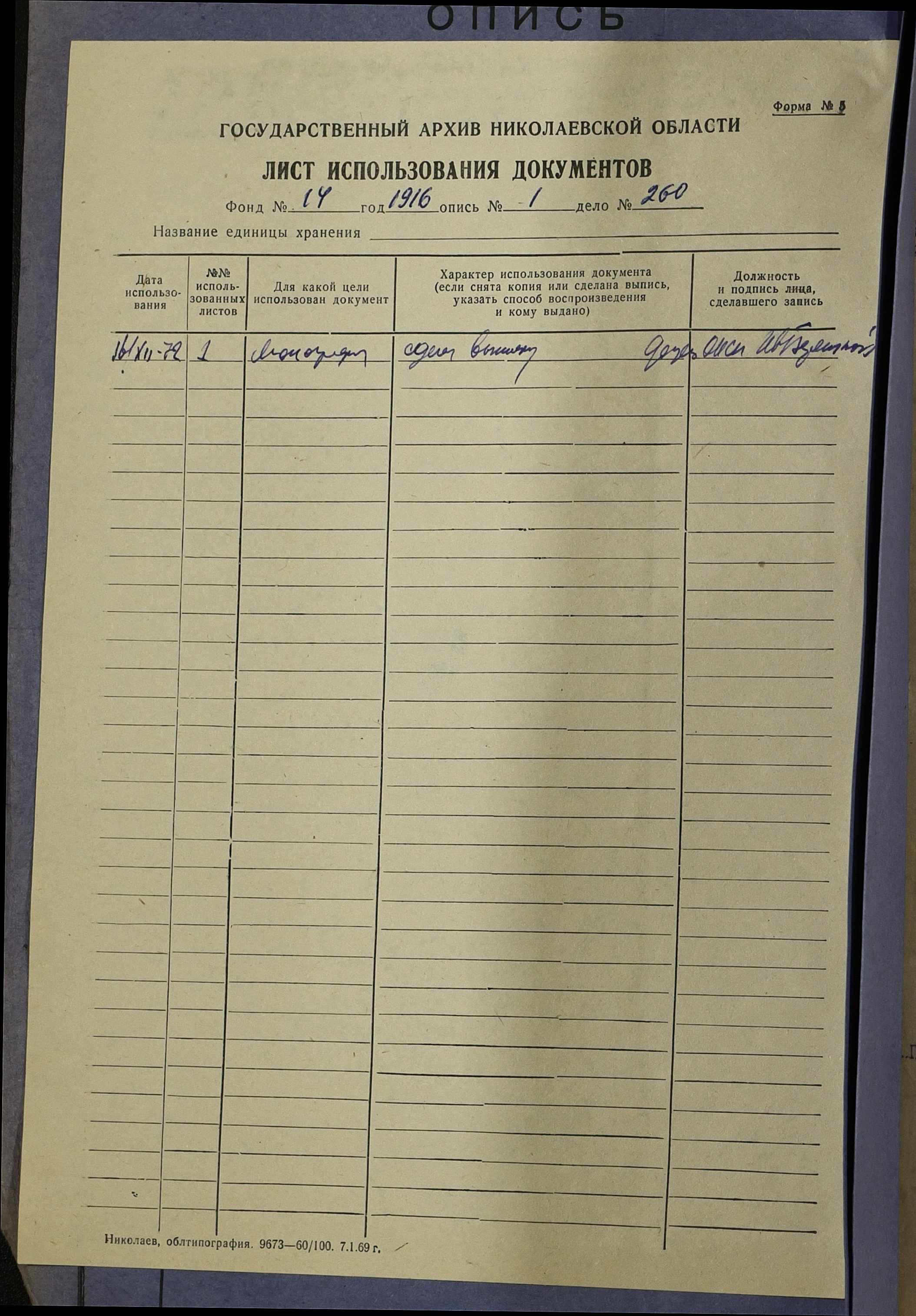 Фонд 14 / Опис 1 / Справа 260