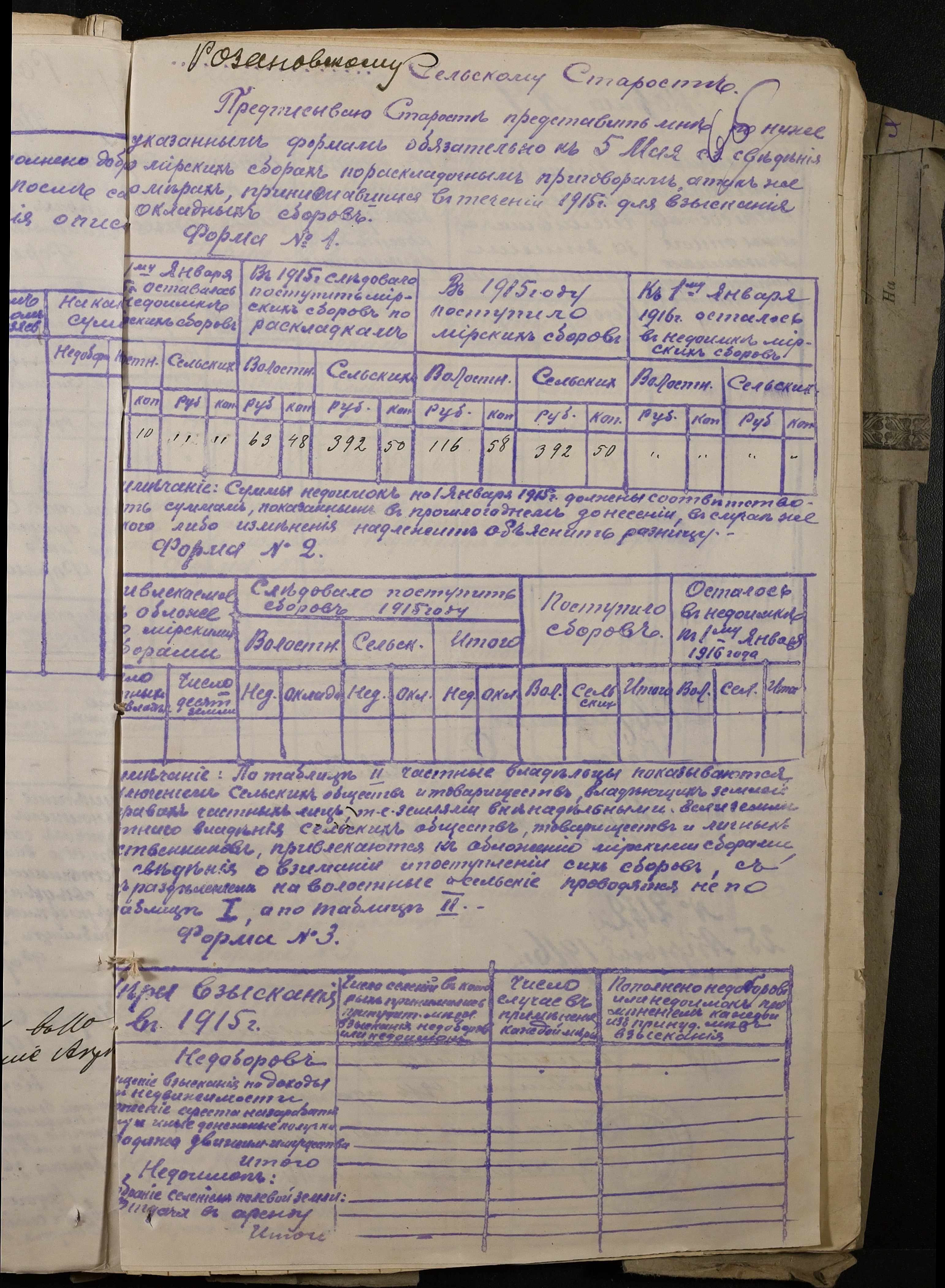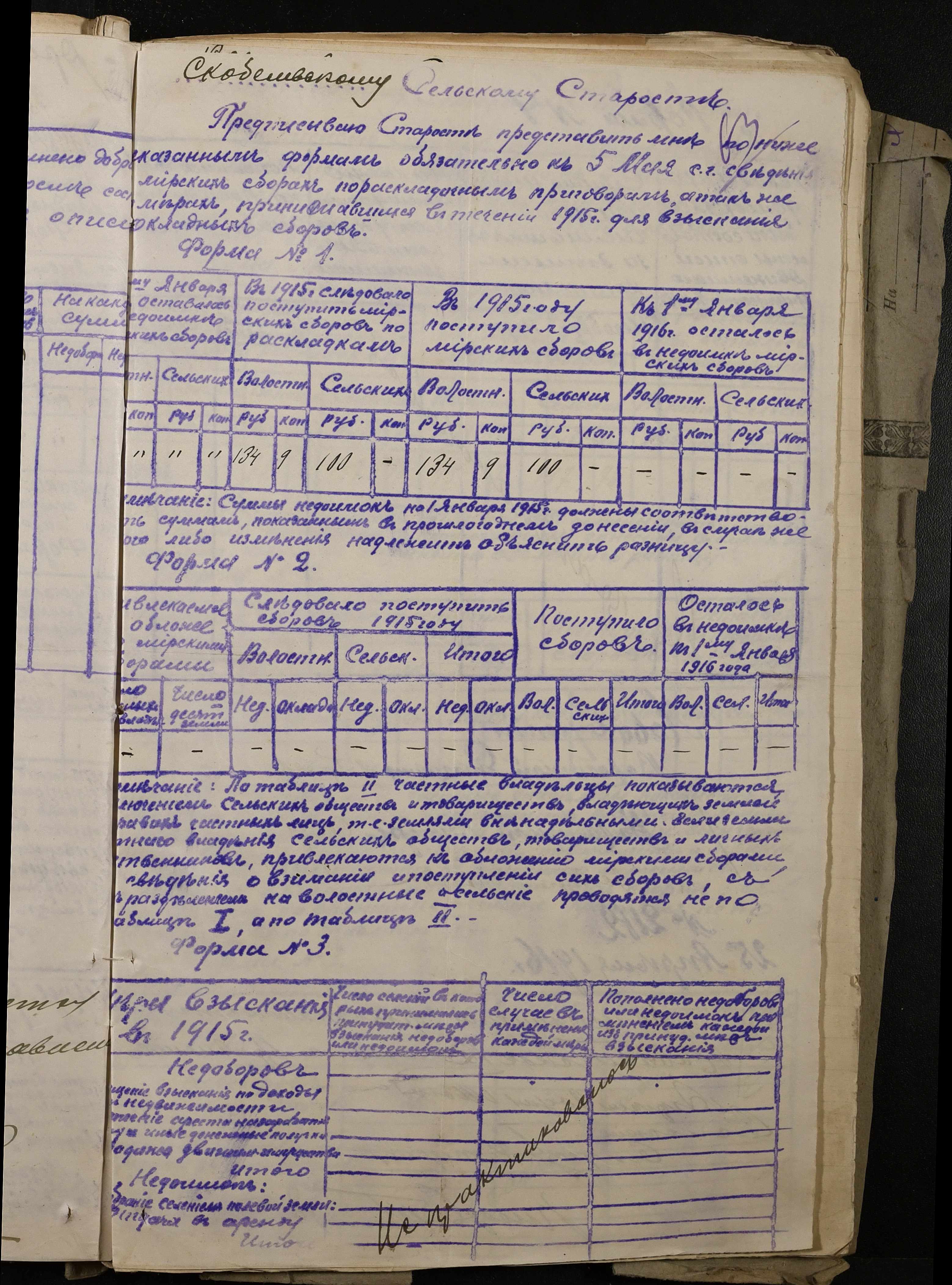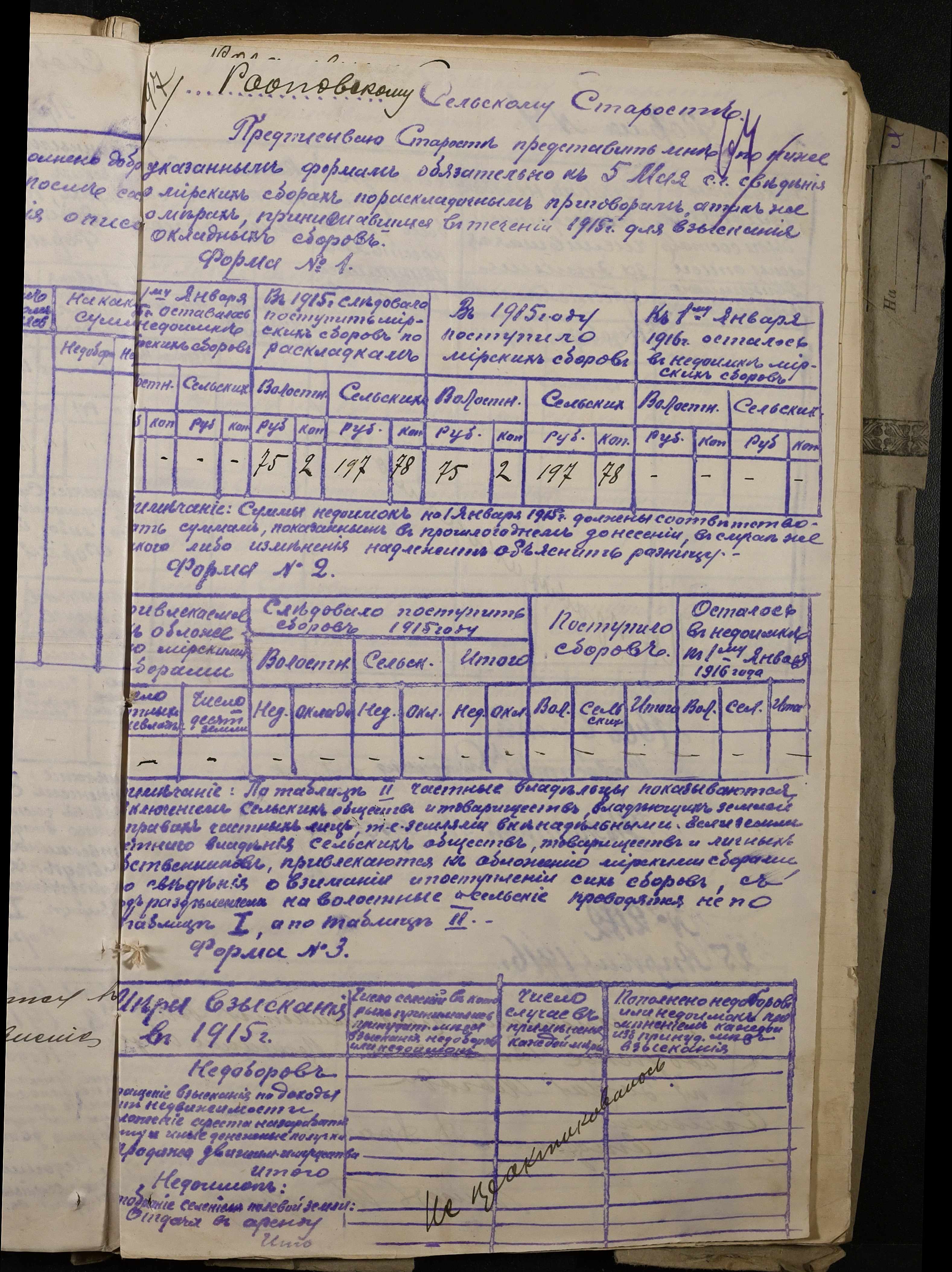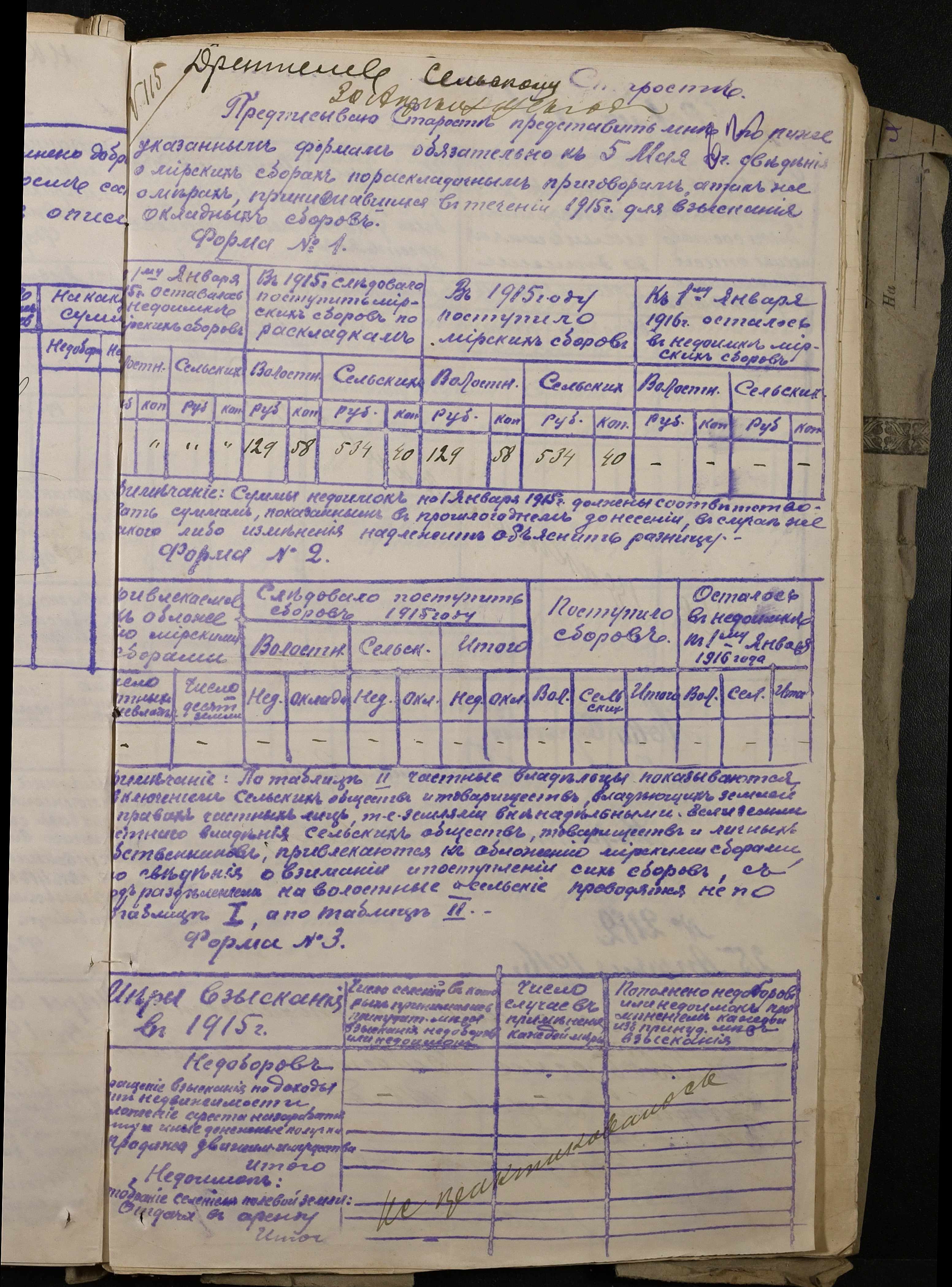 • • • • Справа № 266 “Листування з Херсонським повітовим податним інспектором та сільськими старостами волості про стан мирських зборів, присуди та розкладкові збори сільських товариств волості, звітні відомості про надходження мирських зборів, страхових платежів та казенних земських зборів по сільських товариствах волості”