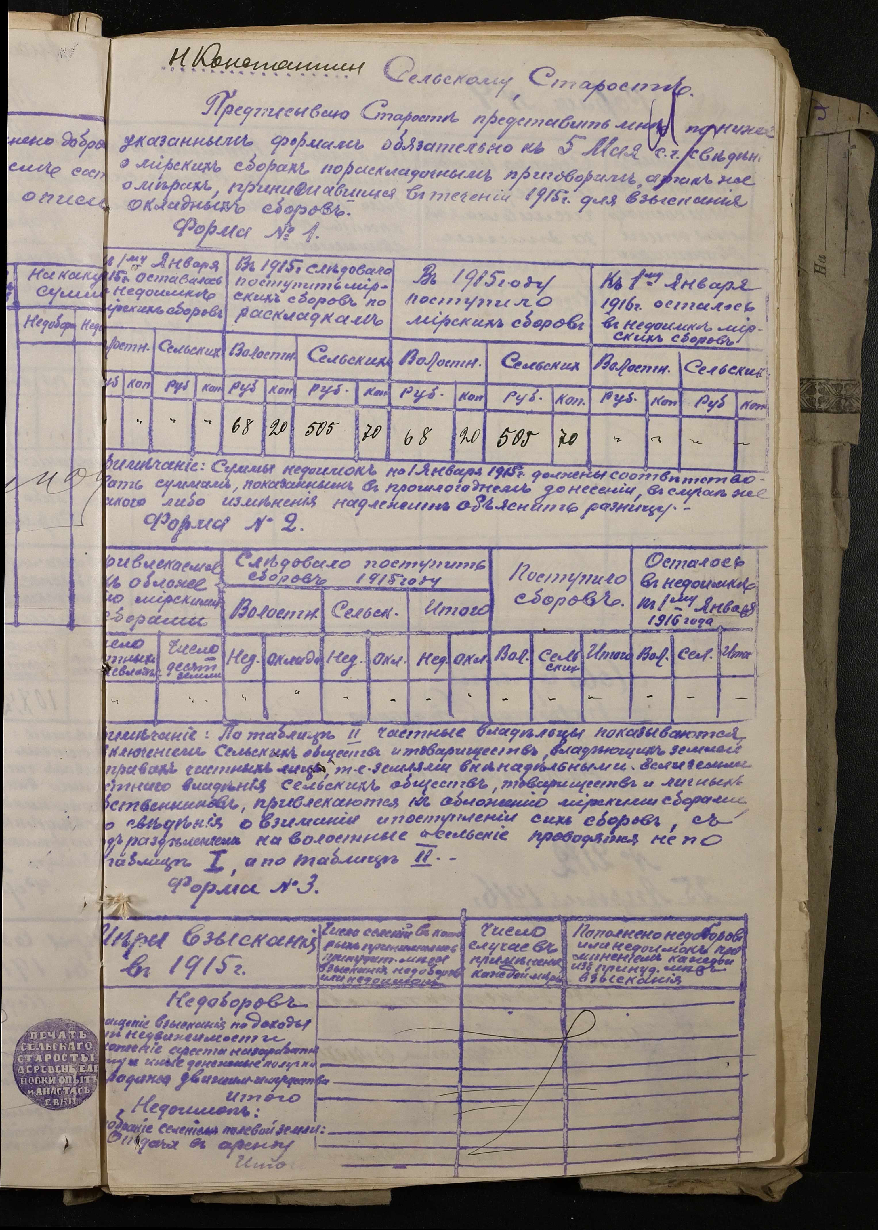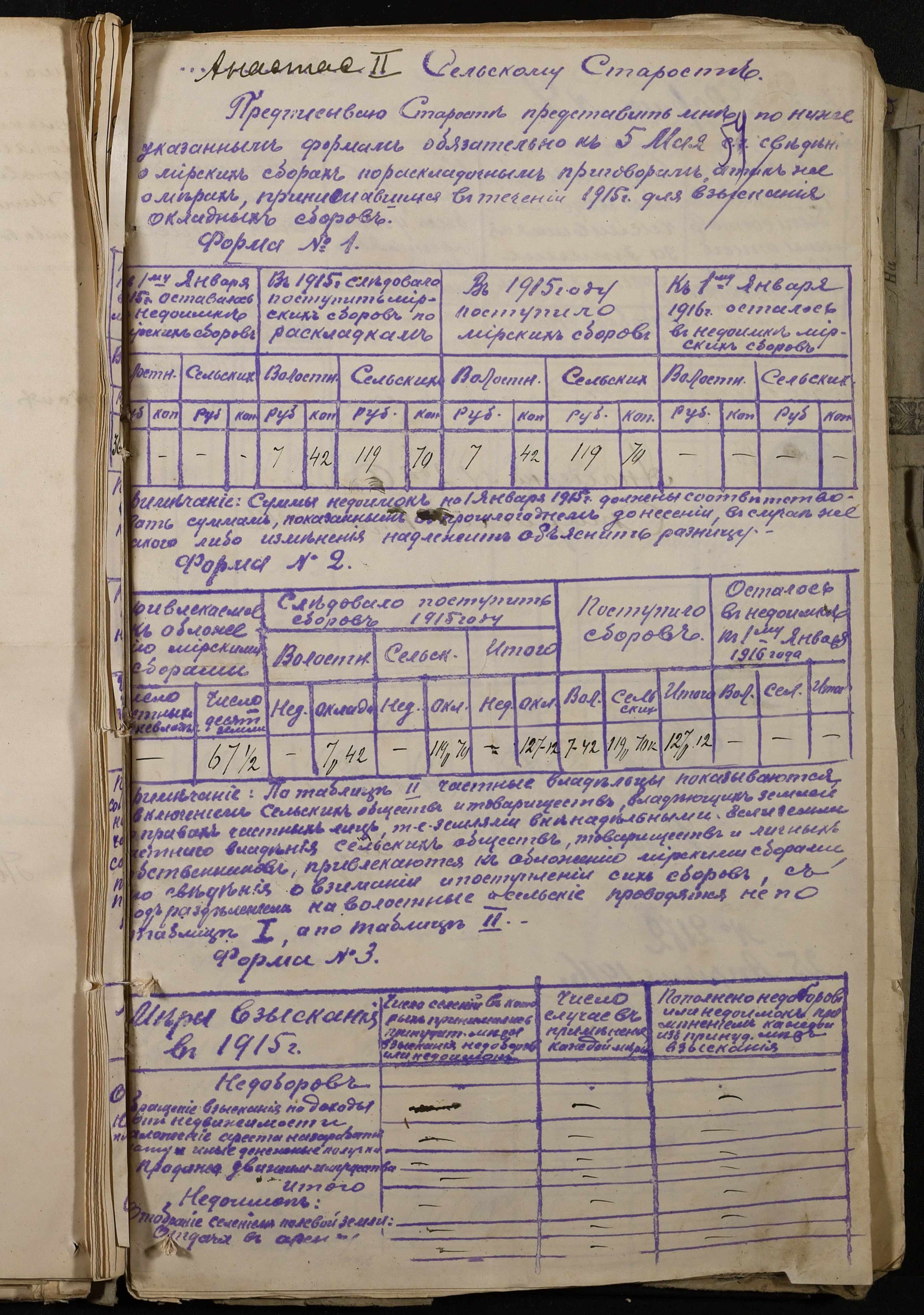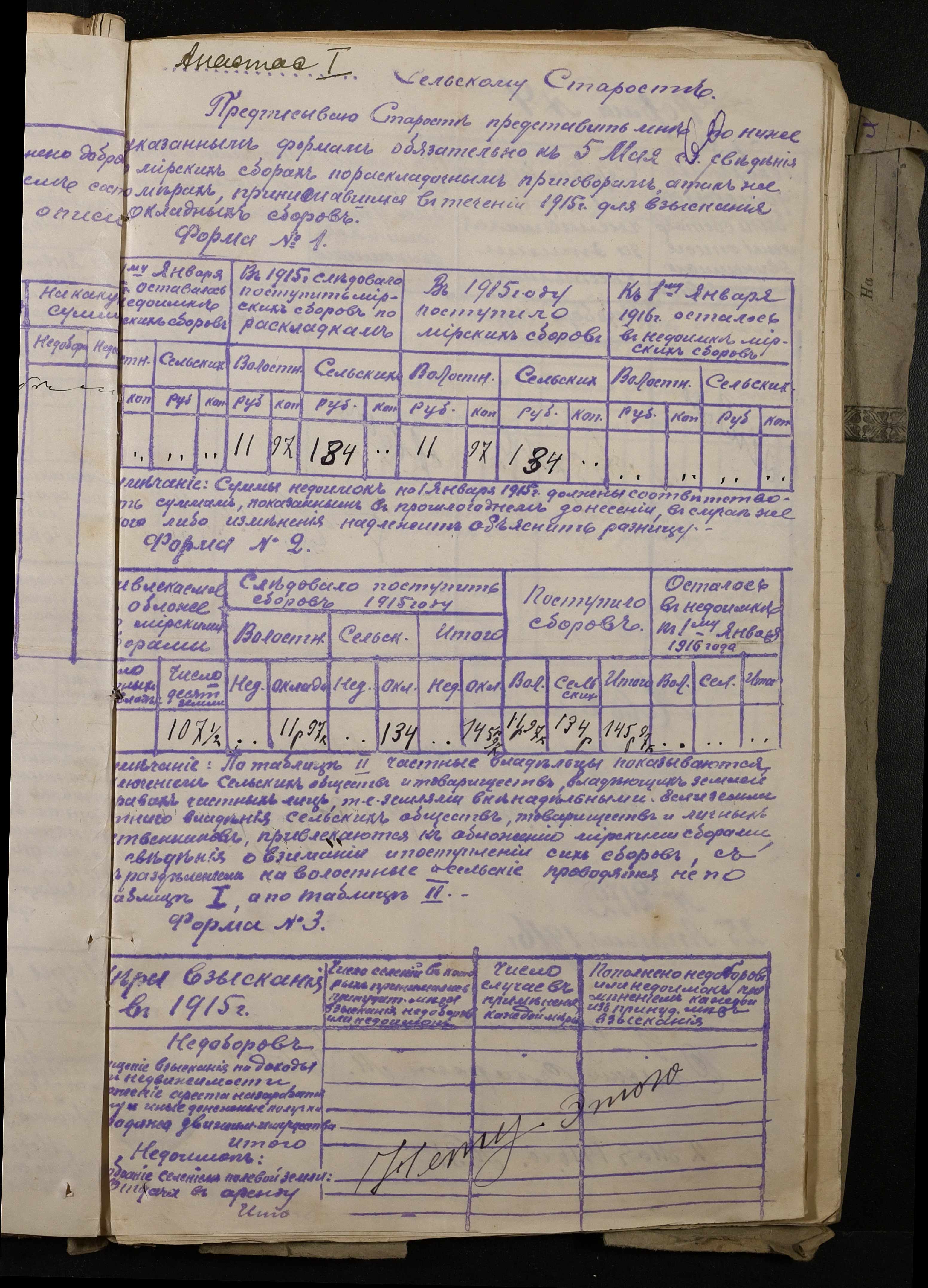 • • • • Справа № 266 “Листування з Херсонським повітовим податним інспектором та сільськими старостами волості про стан мирських зборів, присуди та розкладкові збори сільських товариств волості, звітні відомості про надходження мирських зборів, страхових платежів та казенних земських зборів по сільських товариствах волості”
