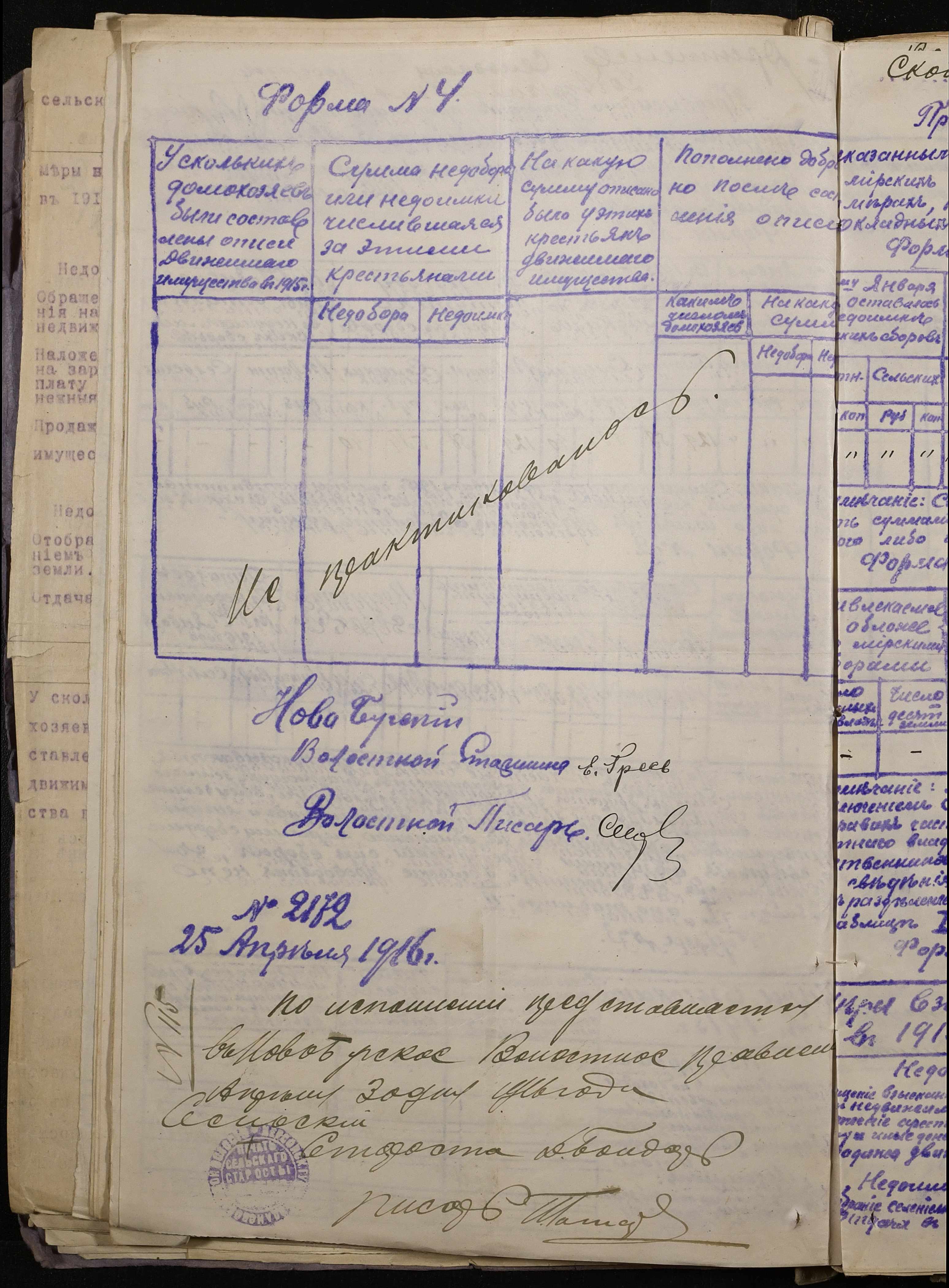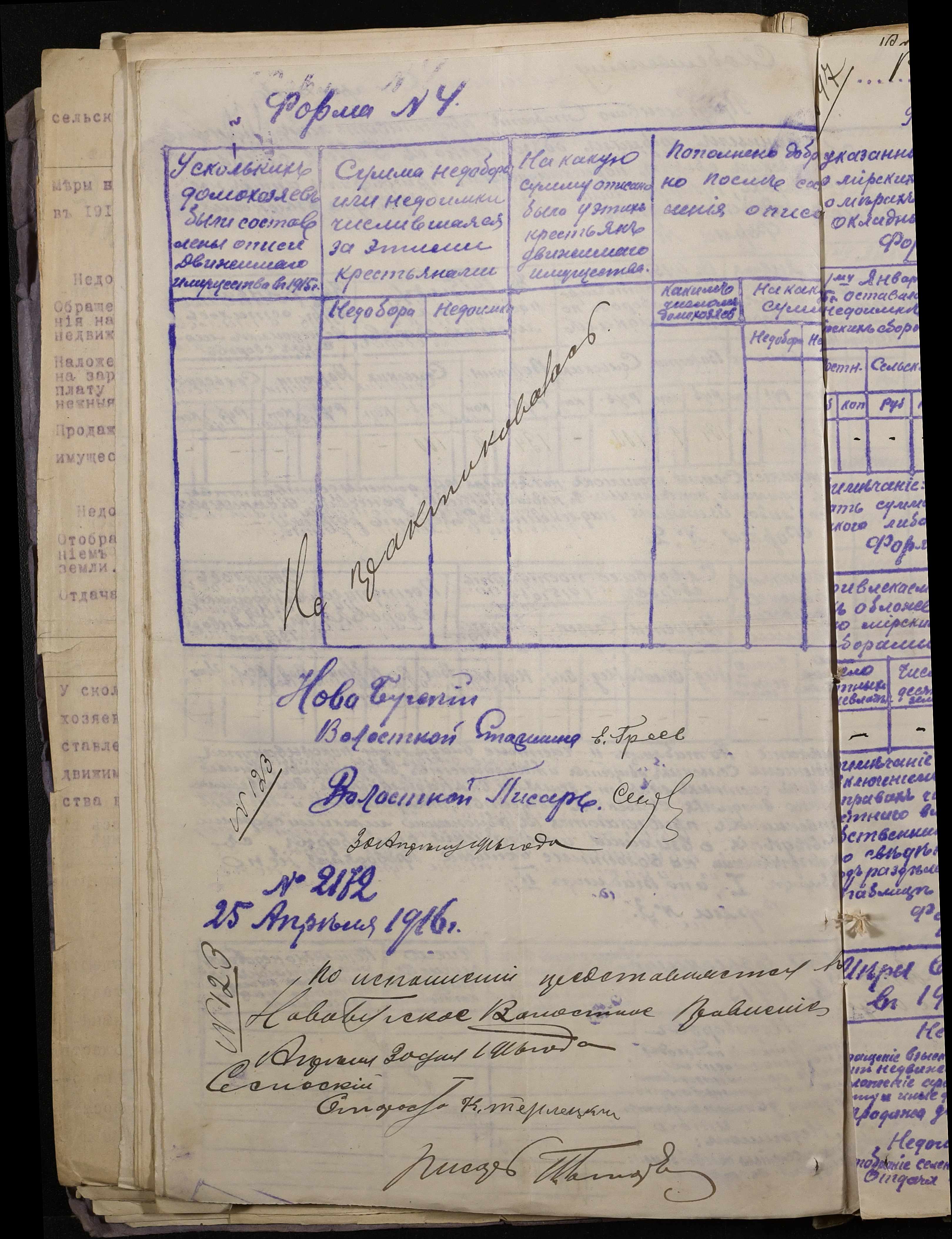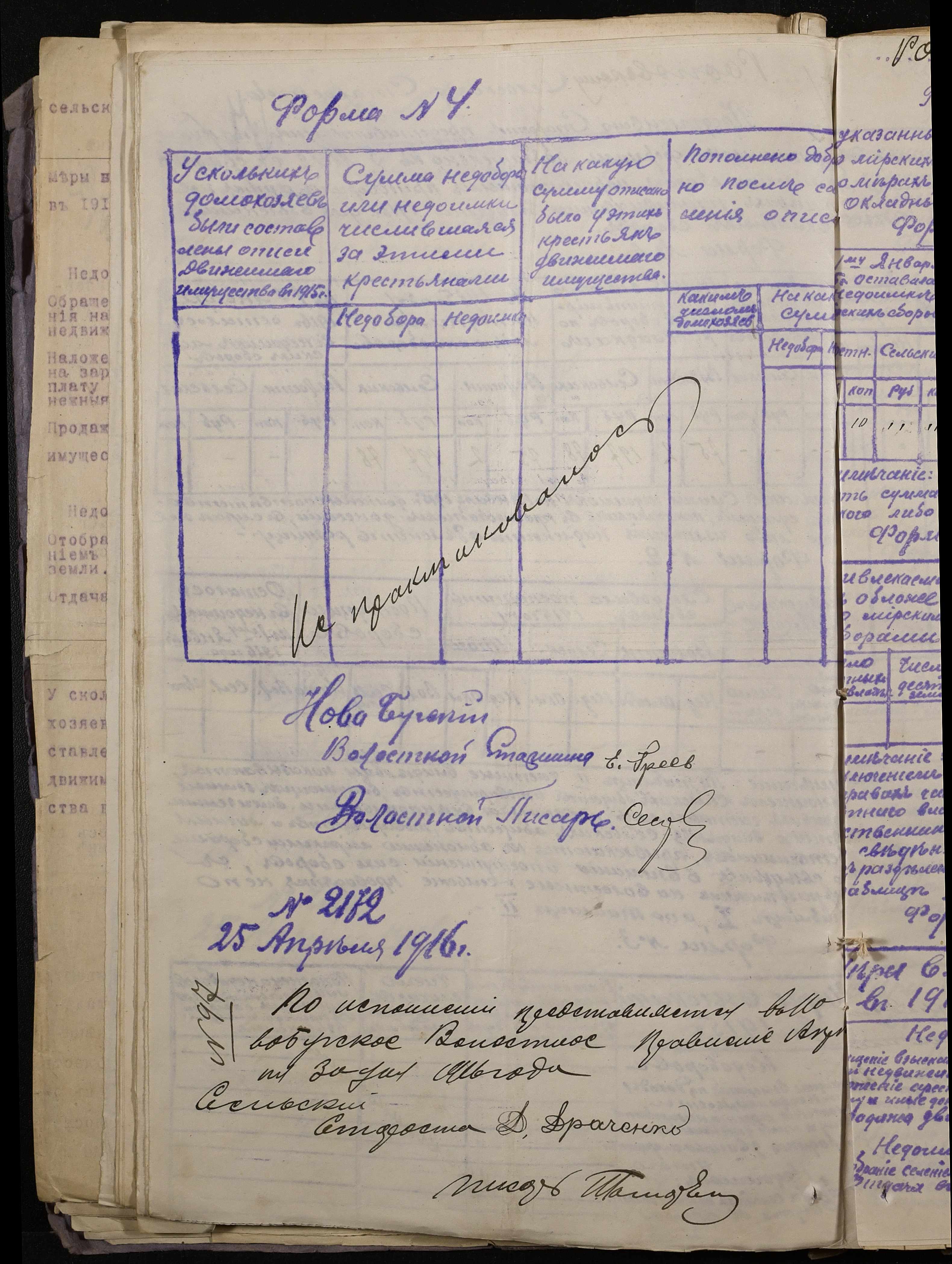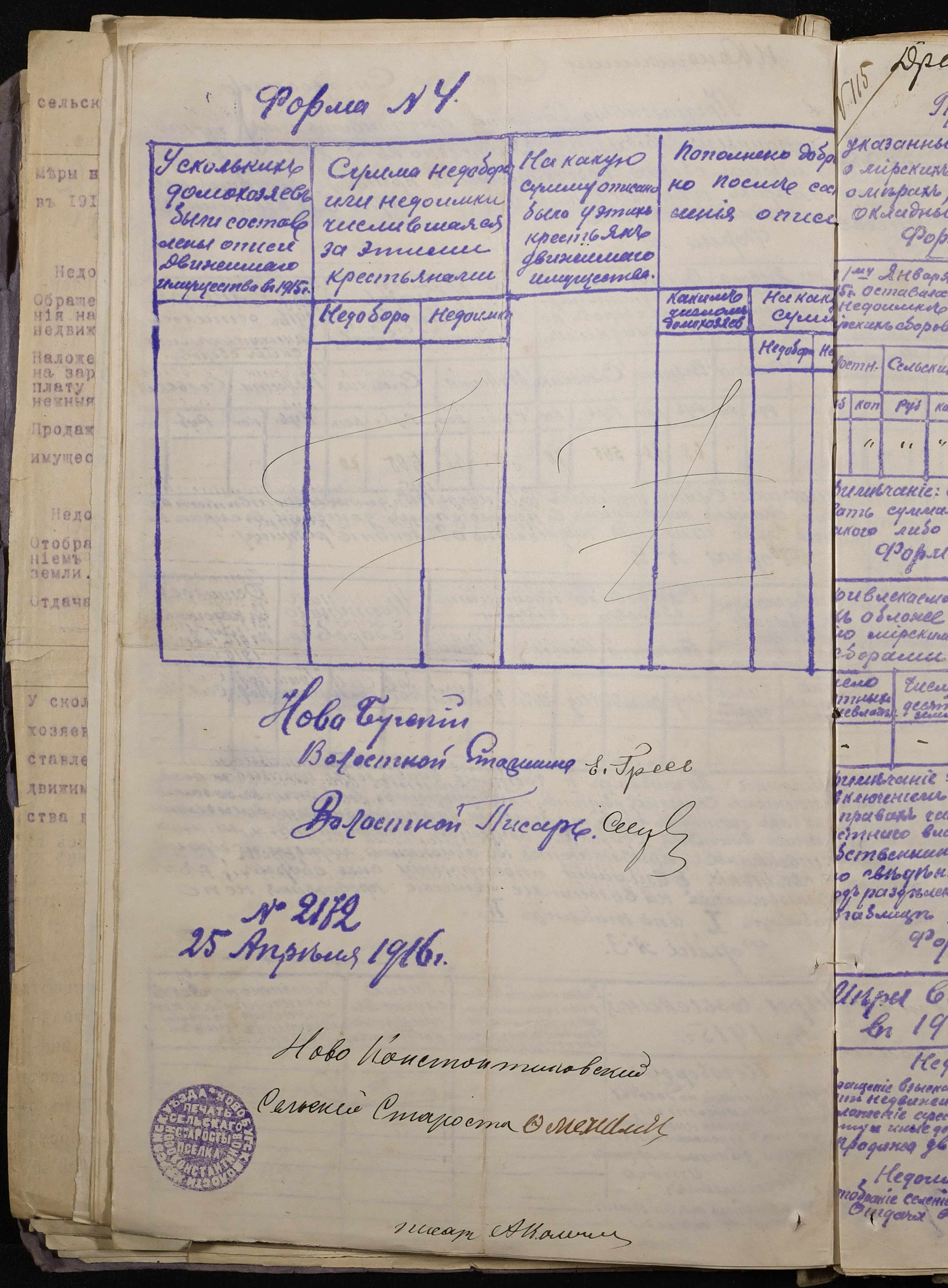 • • • • Справа № 266 “Листування з Херсонським повітовим податним інспектором та сільськими старостами волості про стан мирських зборів, присуди та розкладкові збори сільських товариств волості, звітні відомості про надходження мирських зборів, страхових платежів та казенних земських зборів по сільських товариствах волості”