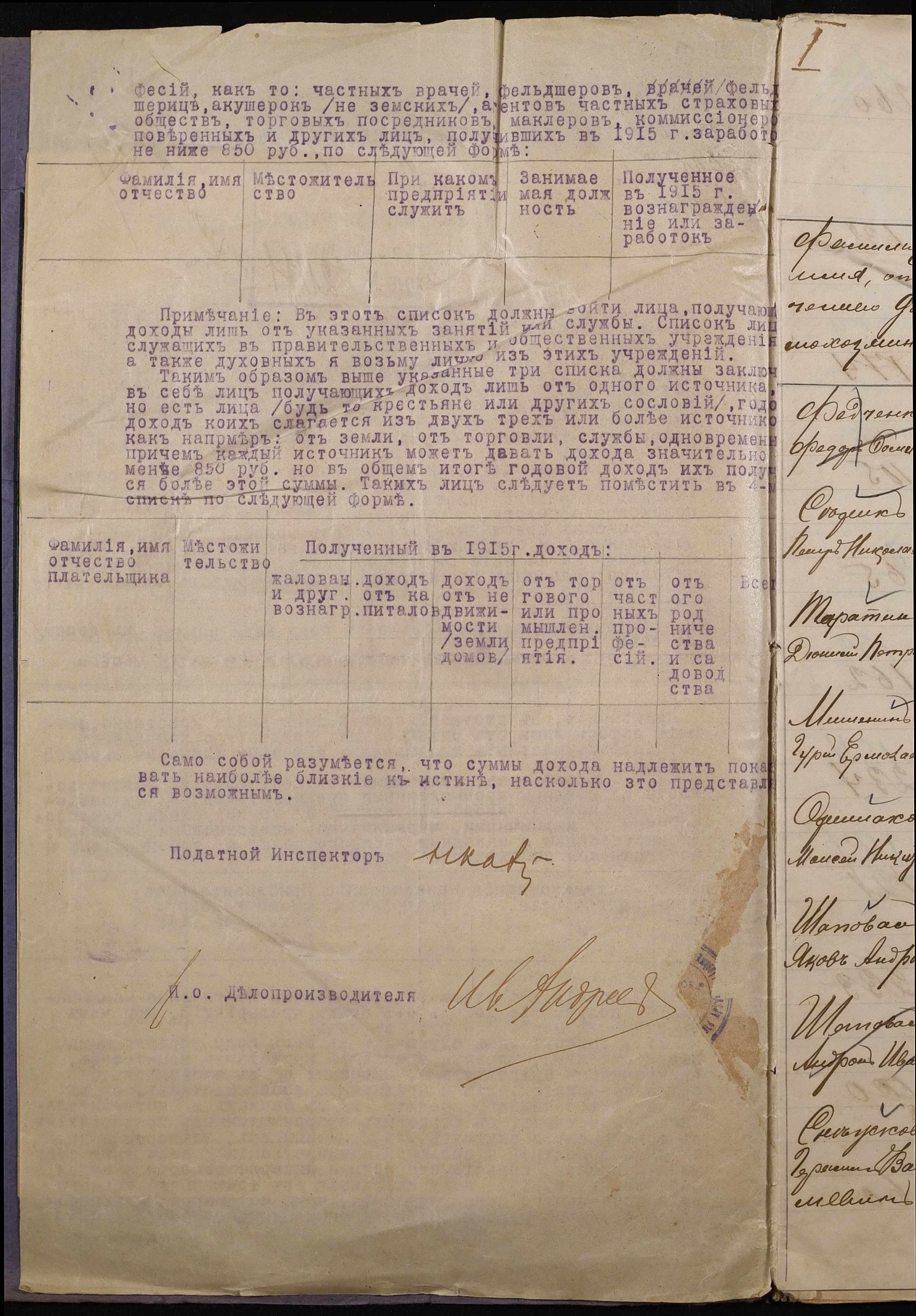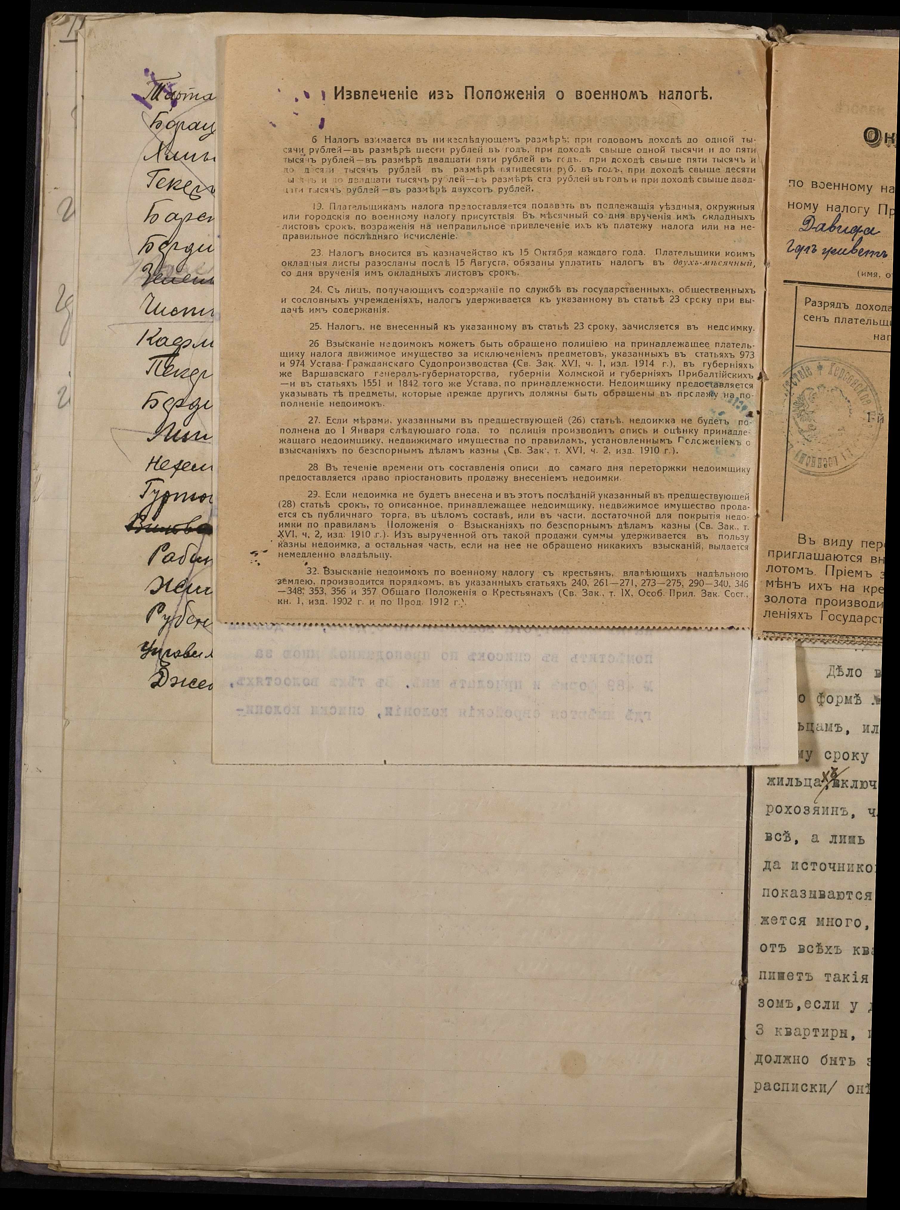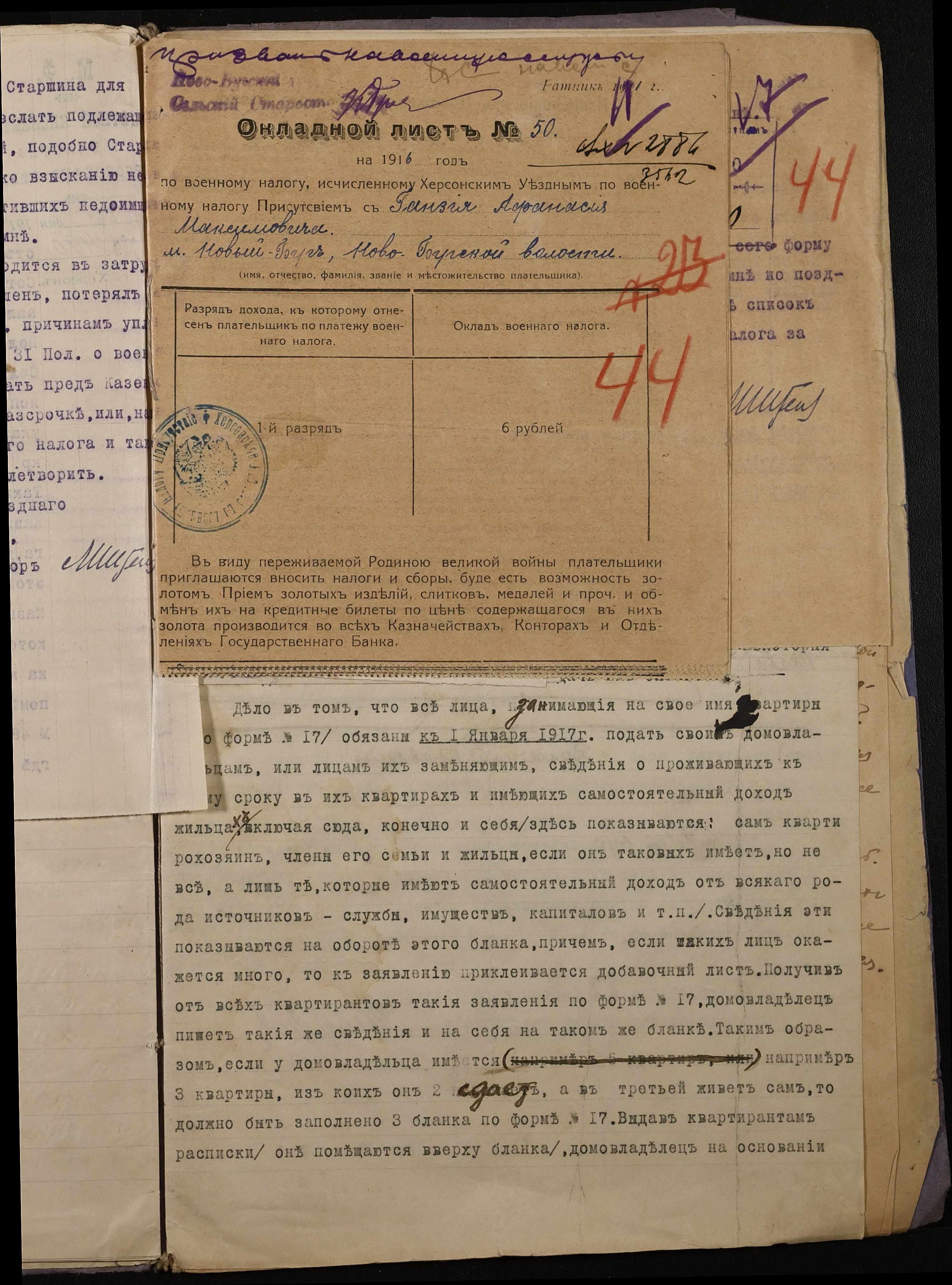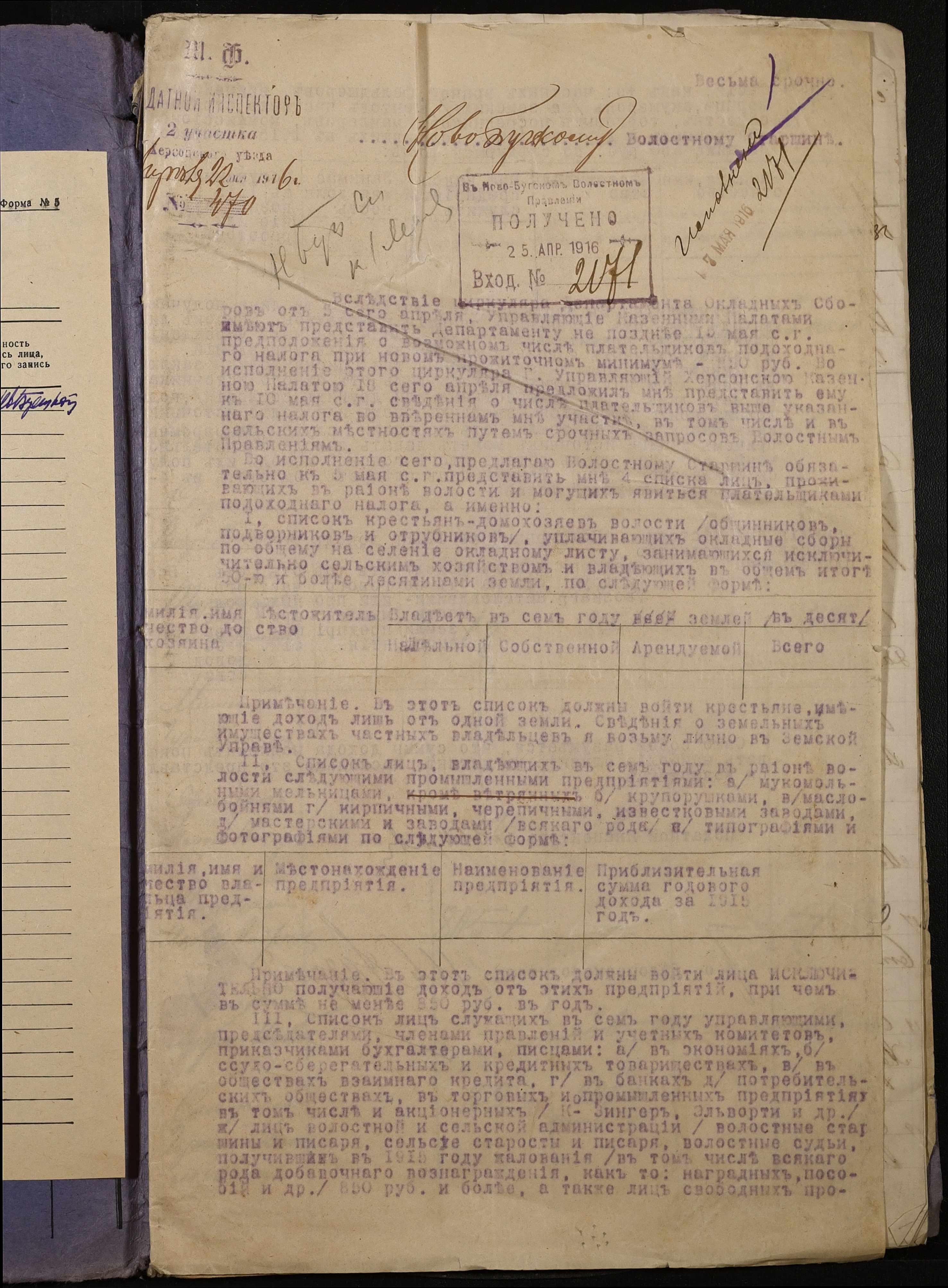 • • • • Справа № 267 “Обіжник Херсонського податного інспектора та листування з ним про порядок та строки стягнення податку на прибуток з населення волості, списки платників податків, окладні листи”