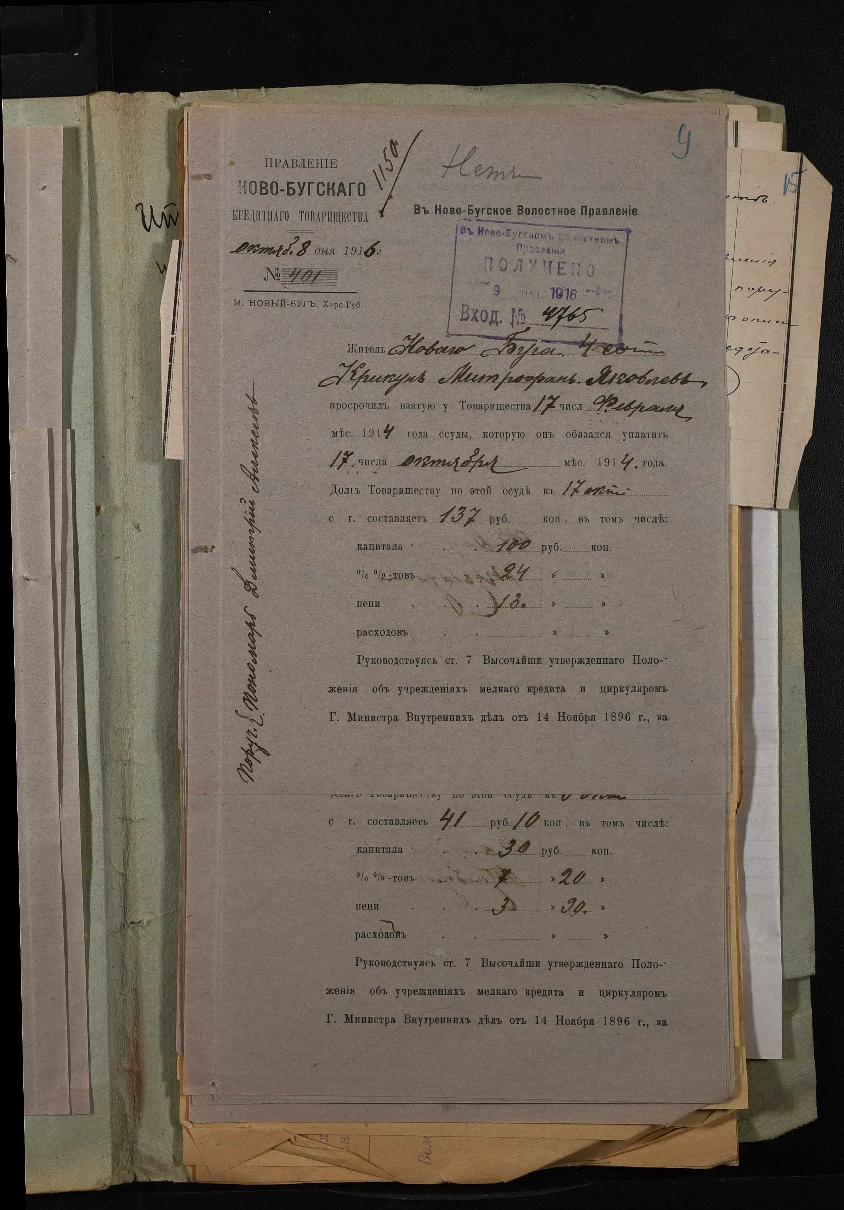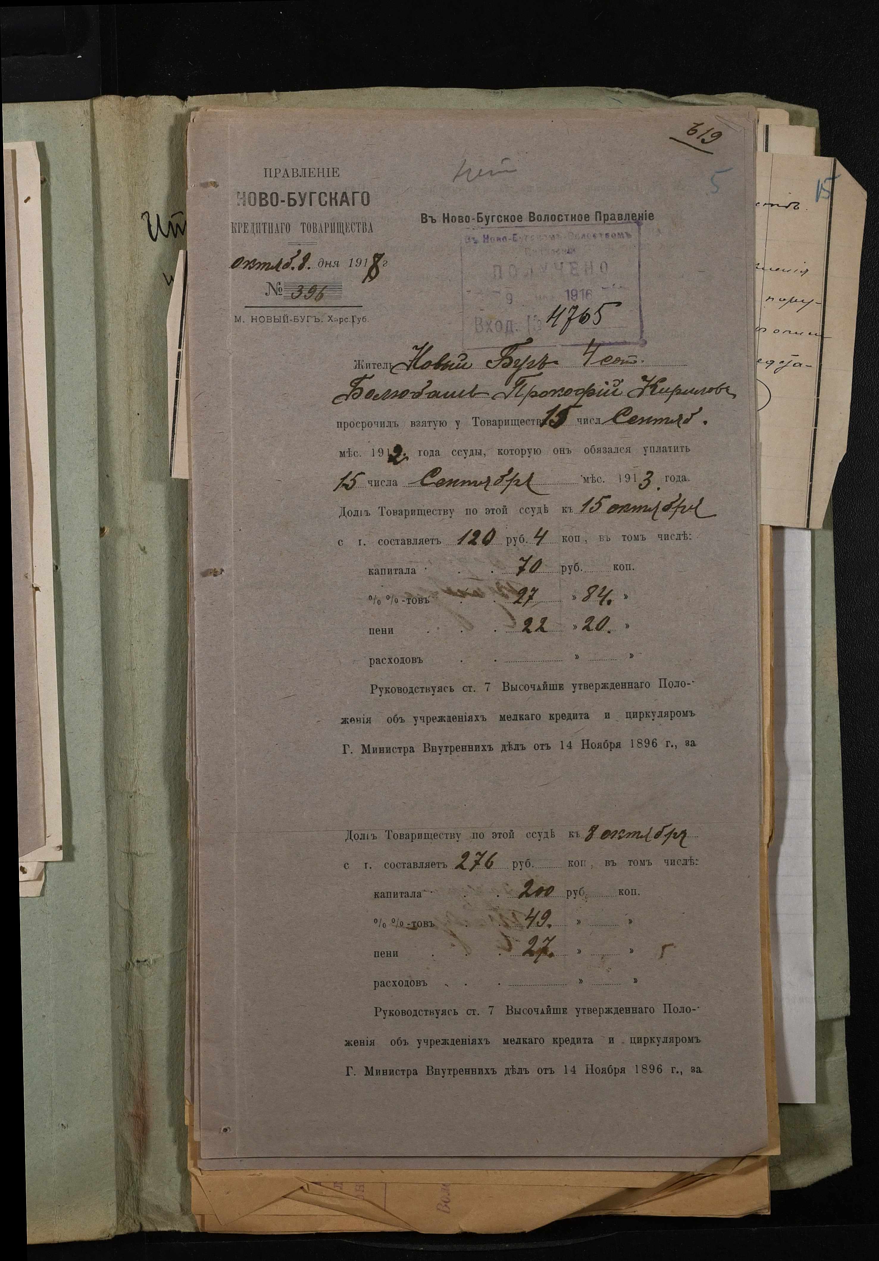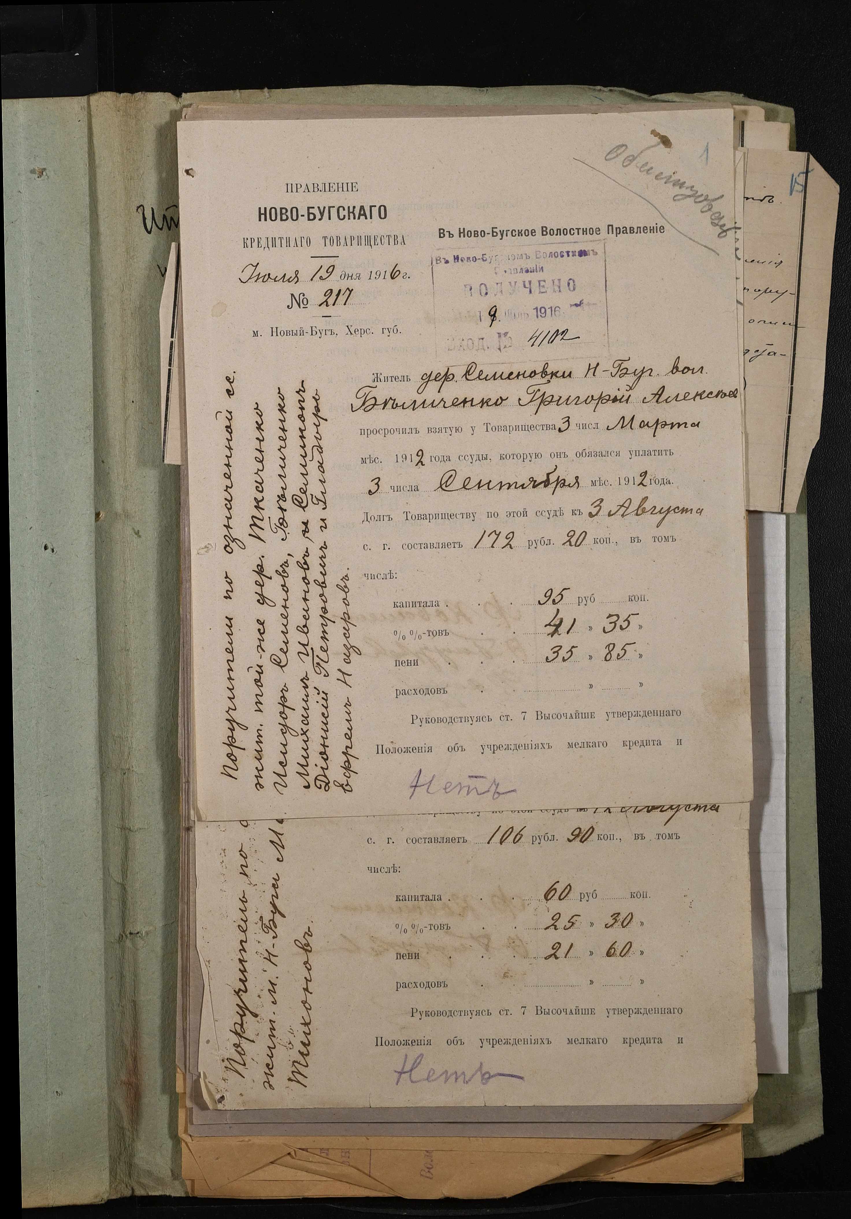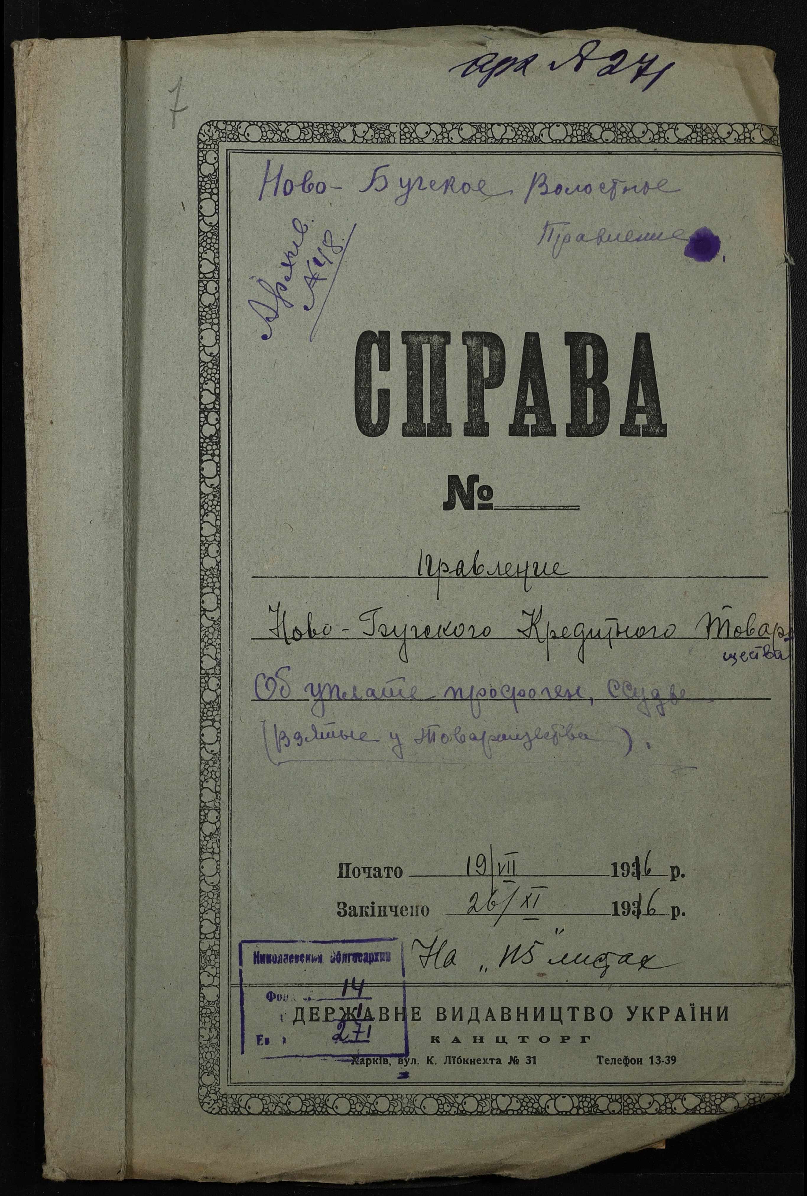 • • • • Справа № 271 “Приписи правління Новобузького кредитного товариства про проведення опису майна селян, які не виплатили отриманої у товариства позики”