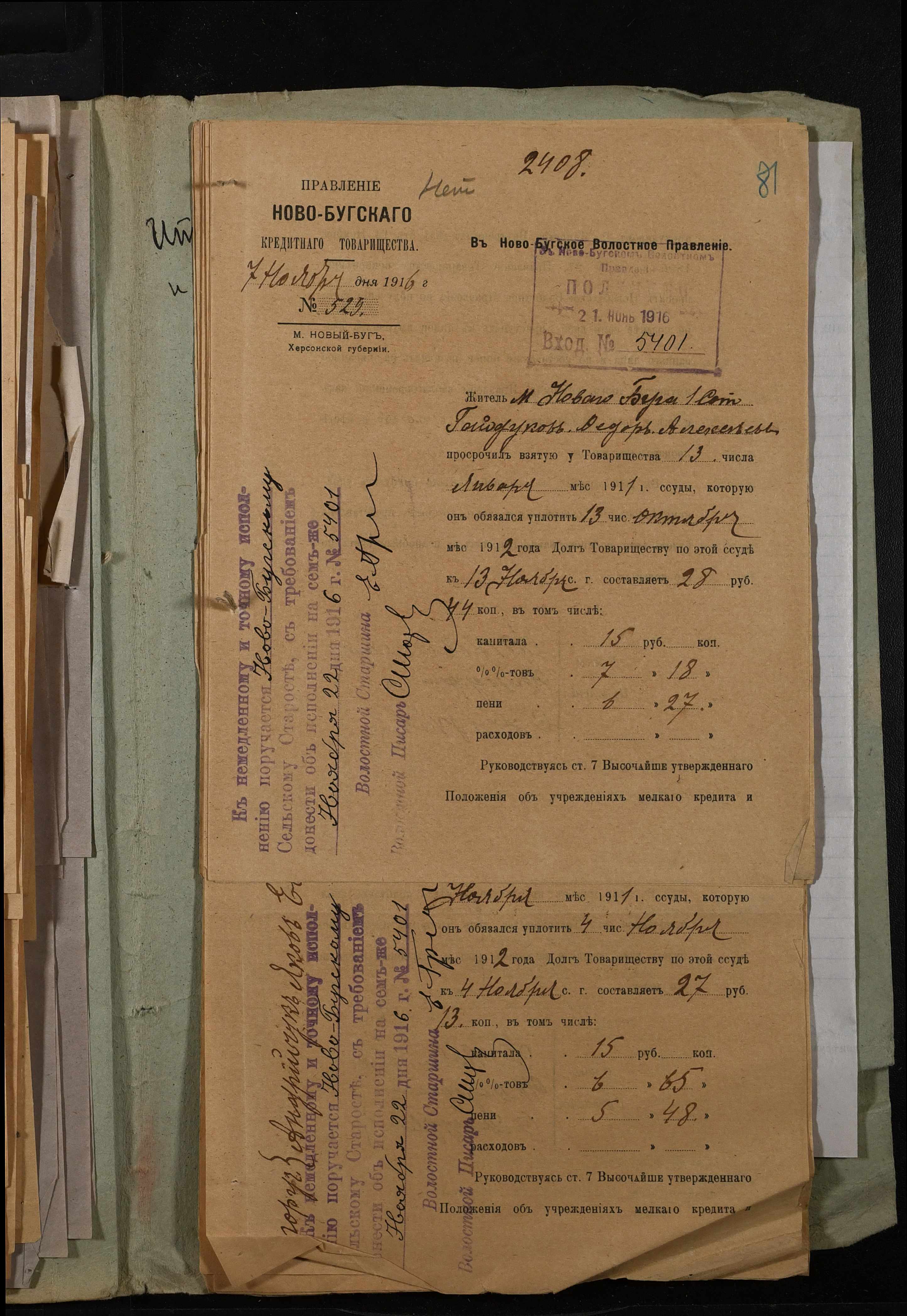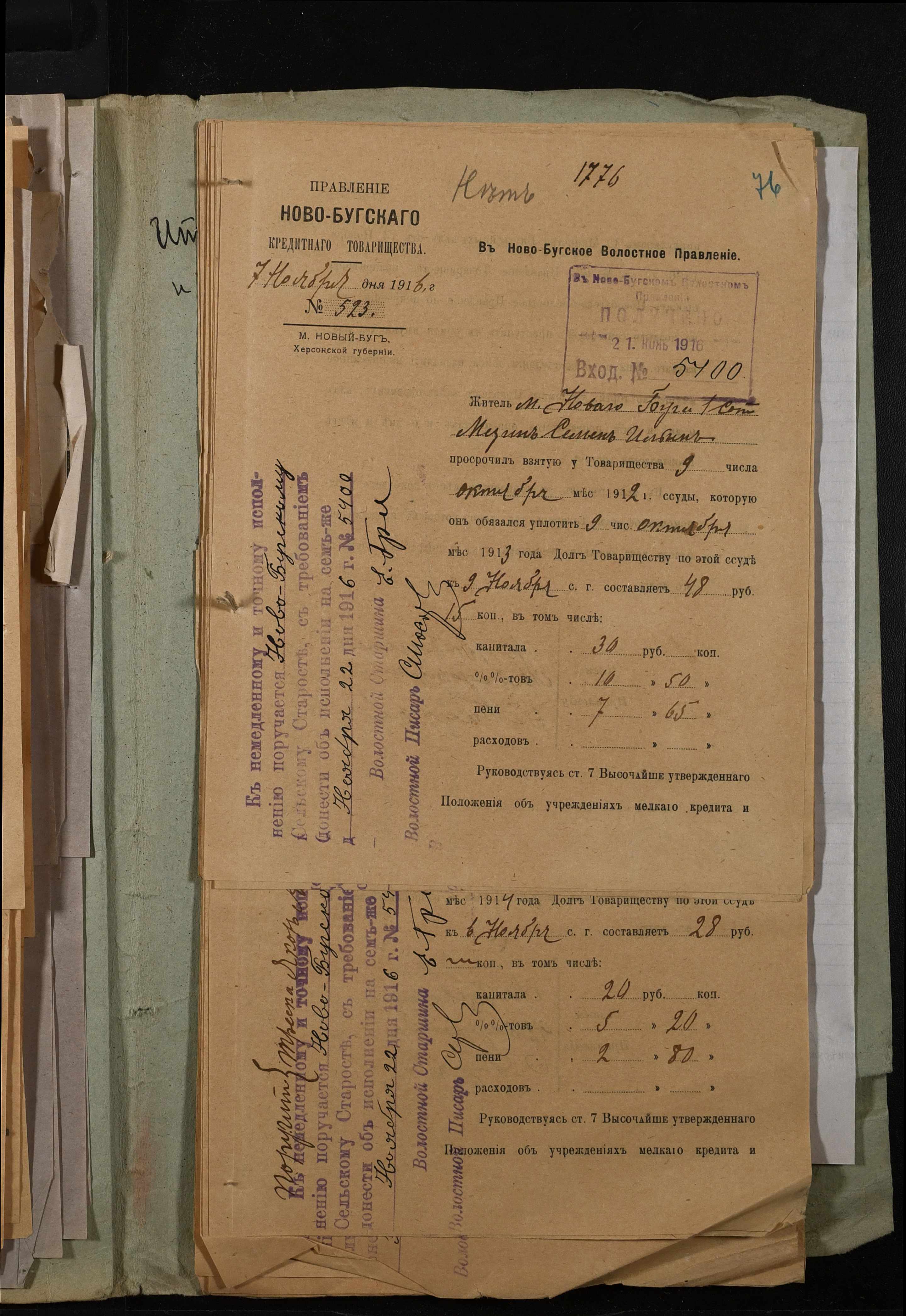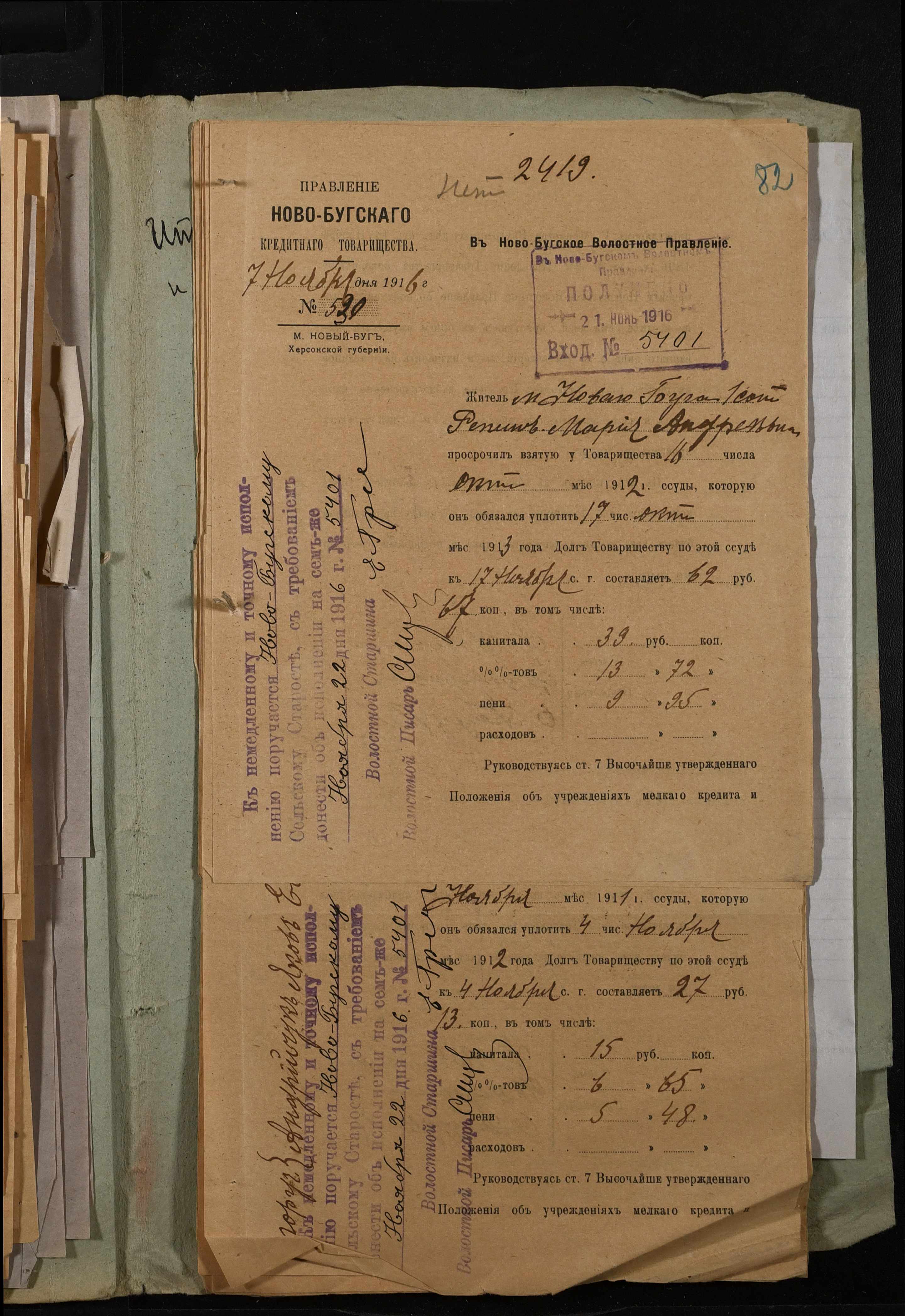 • • • • Справа № 271 “Приписи правління Новобузького кредитного товариства про проведення опису майна селян, які не виплатили отриманої у товариства позики”