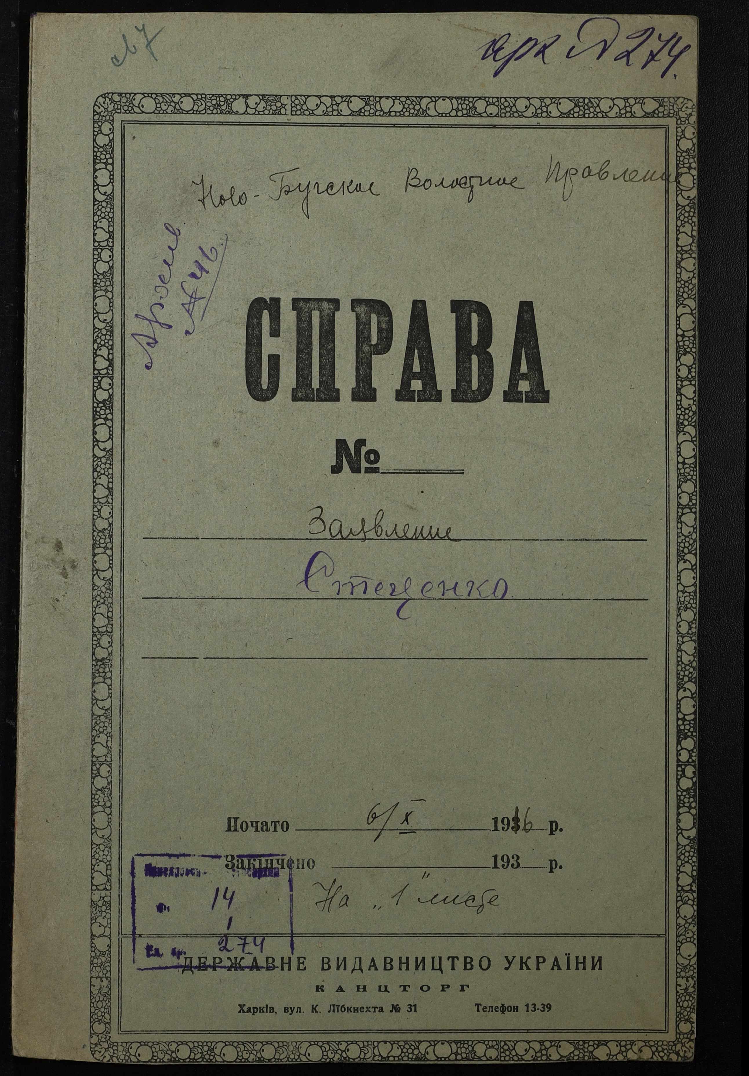 ◦ ◦ Фонд № 14 “Новобузьке волосне правління”
