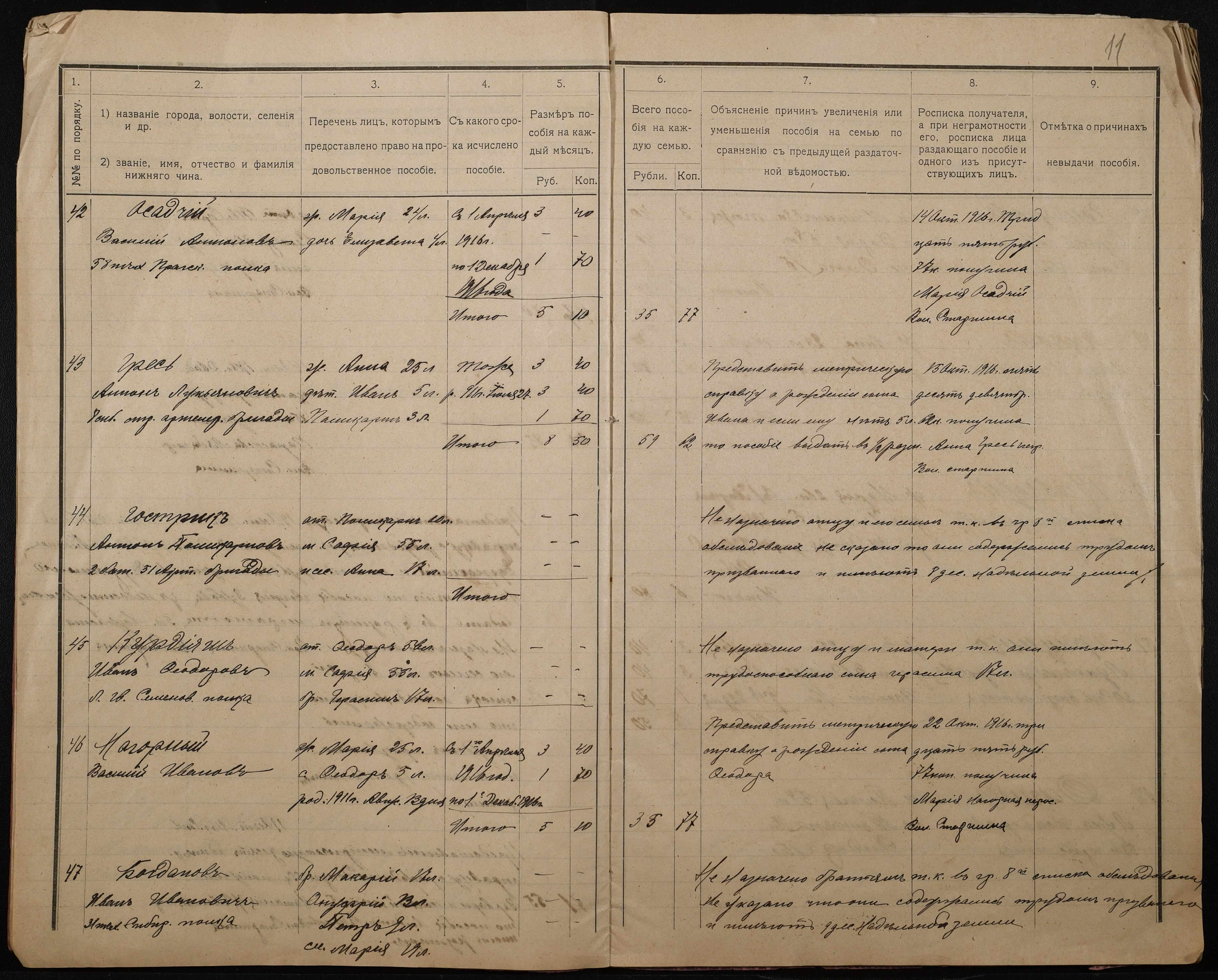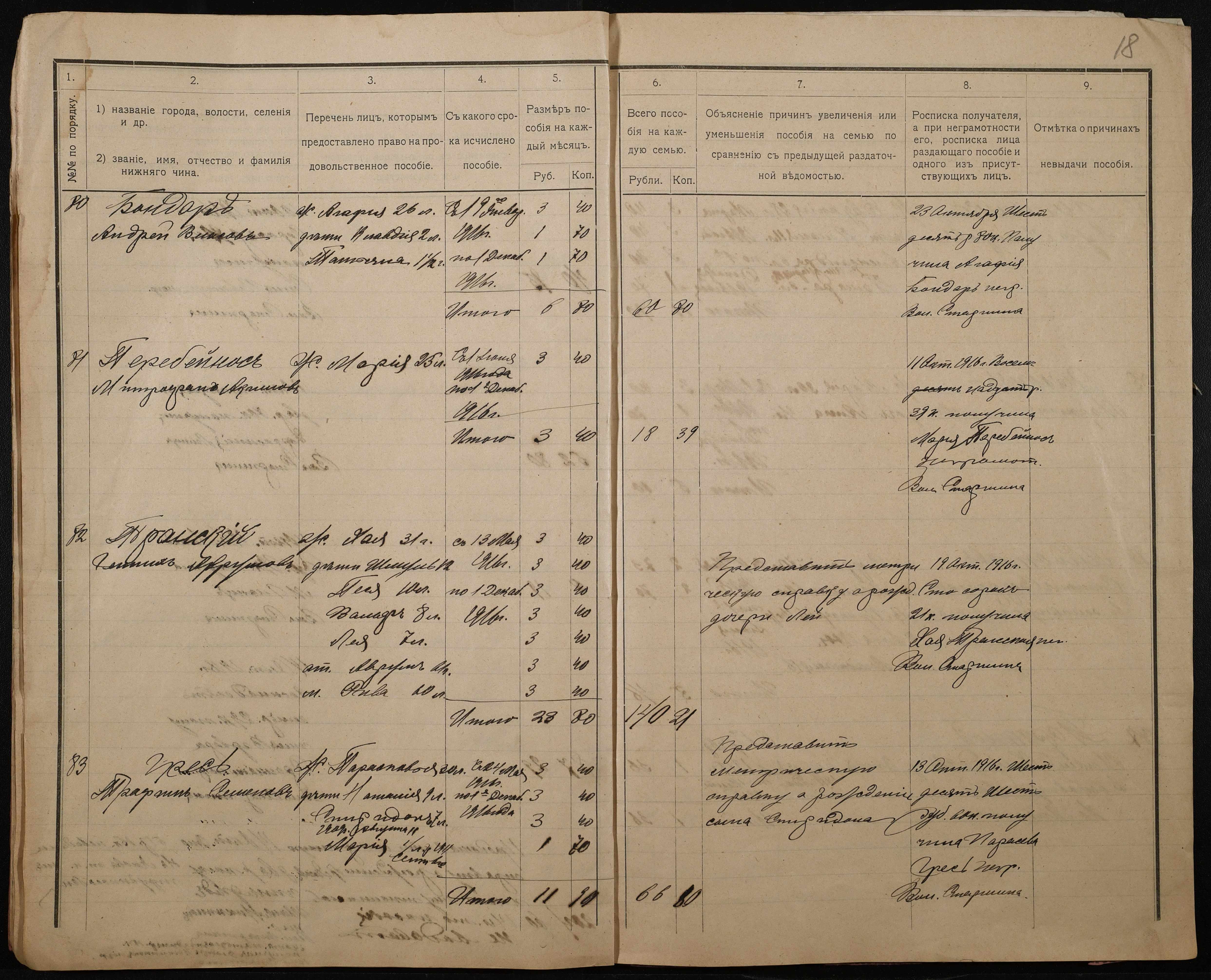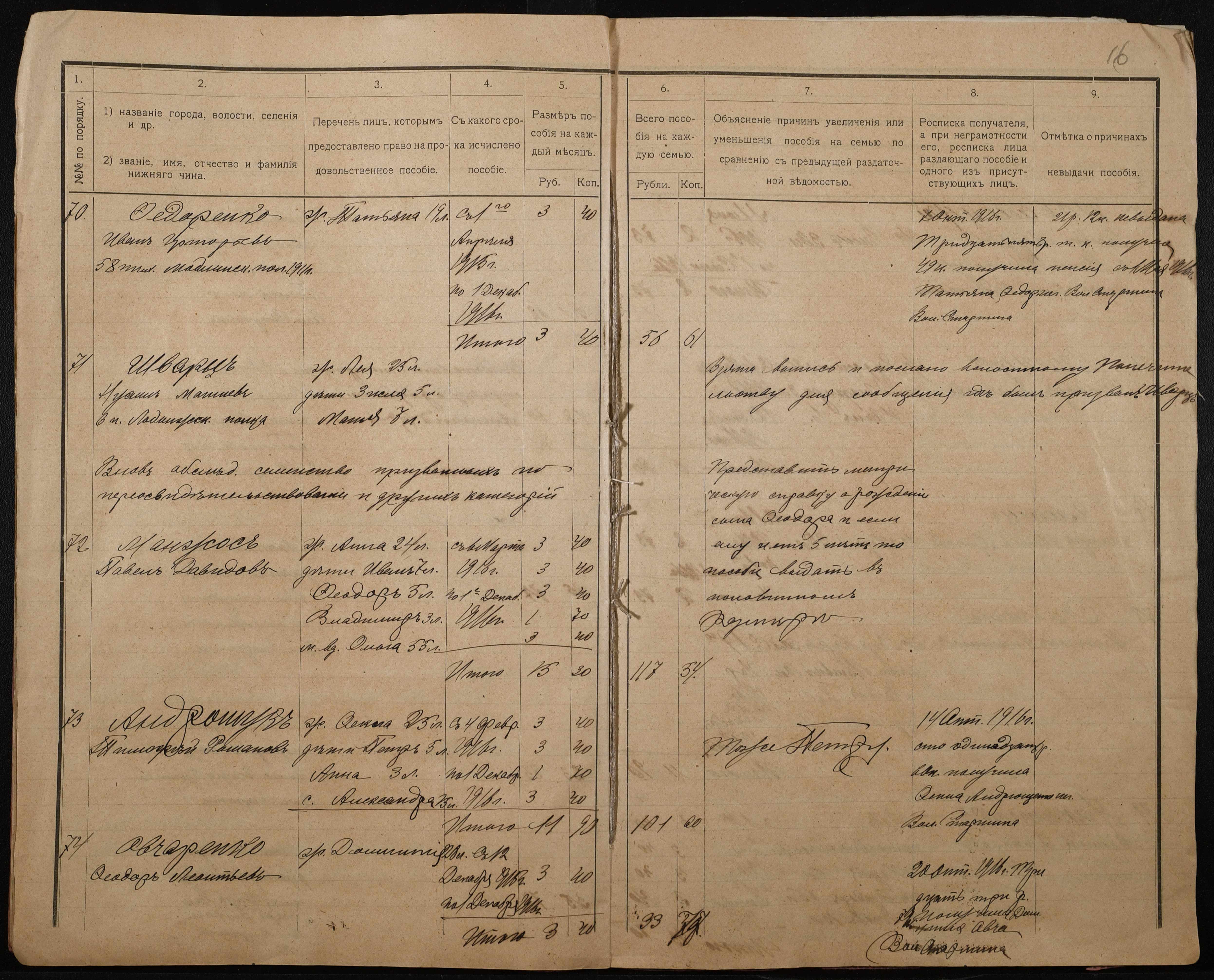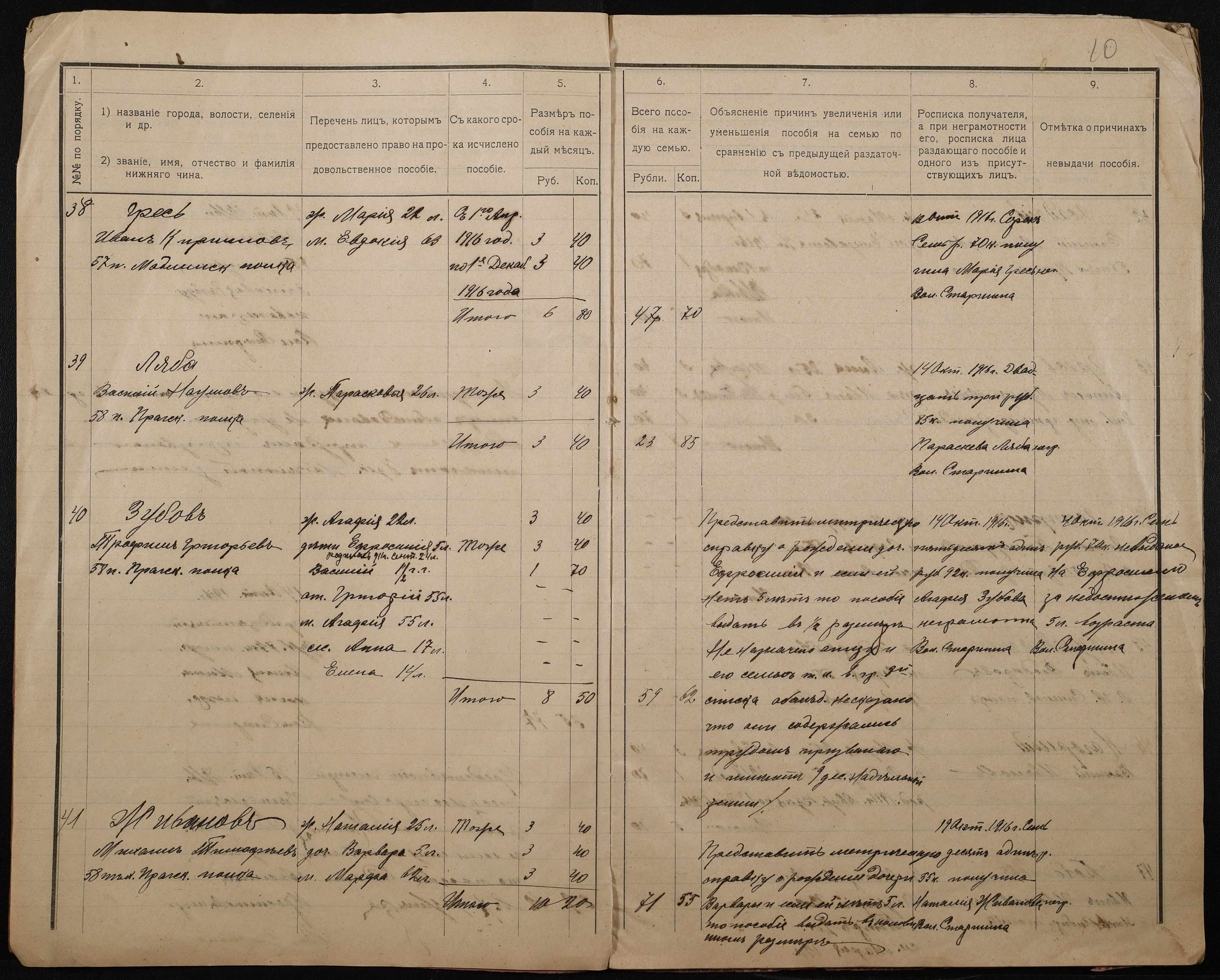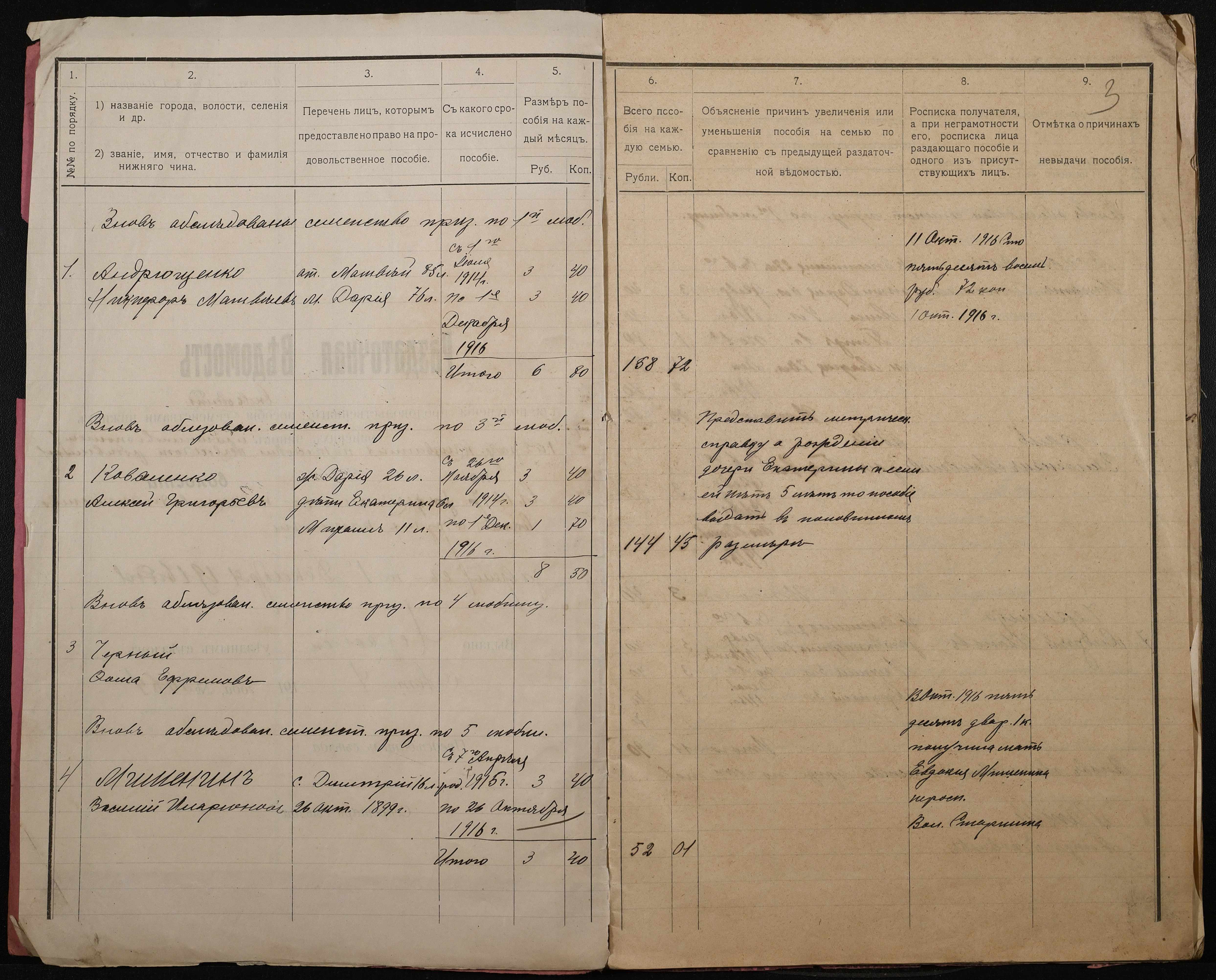 • • • • Справа № 276 “Роздаткові відомості на отримання продовольчої допомоги родинам нижніх військових чинів, покликаних по мобілізації 04 жовтня 1916 року”