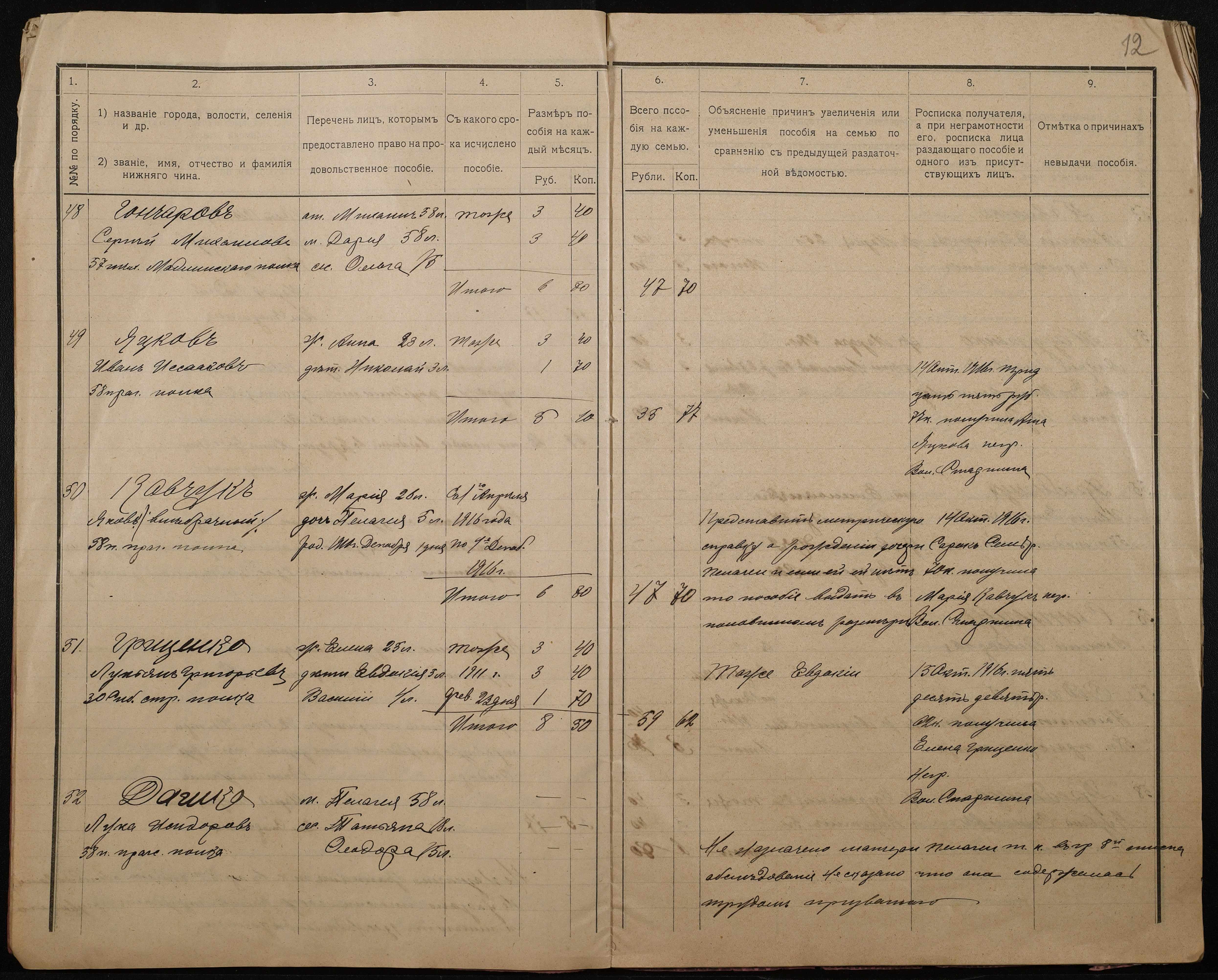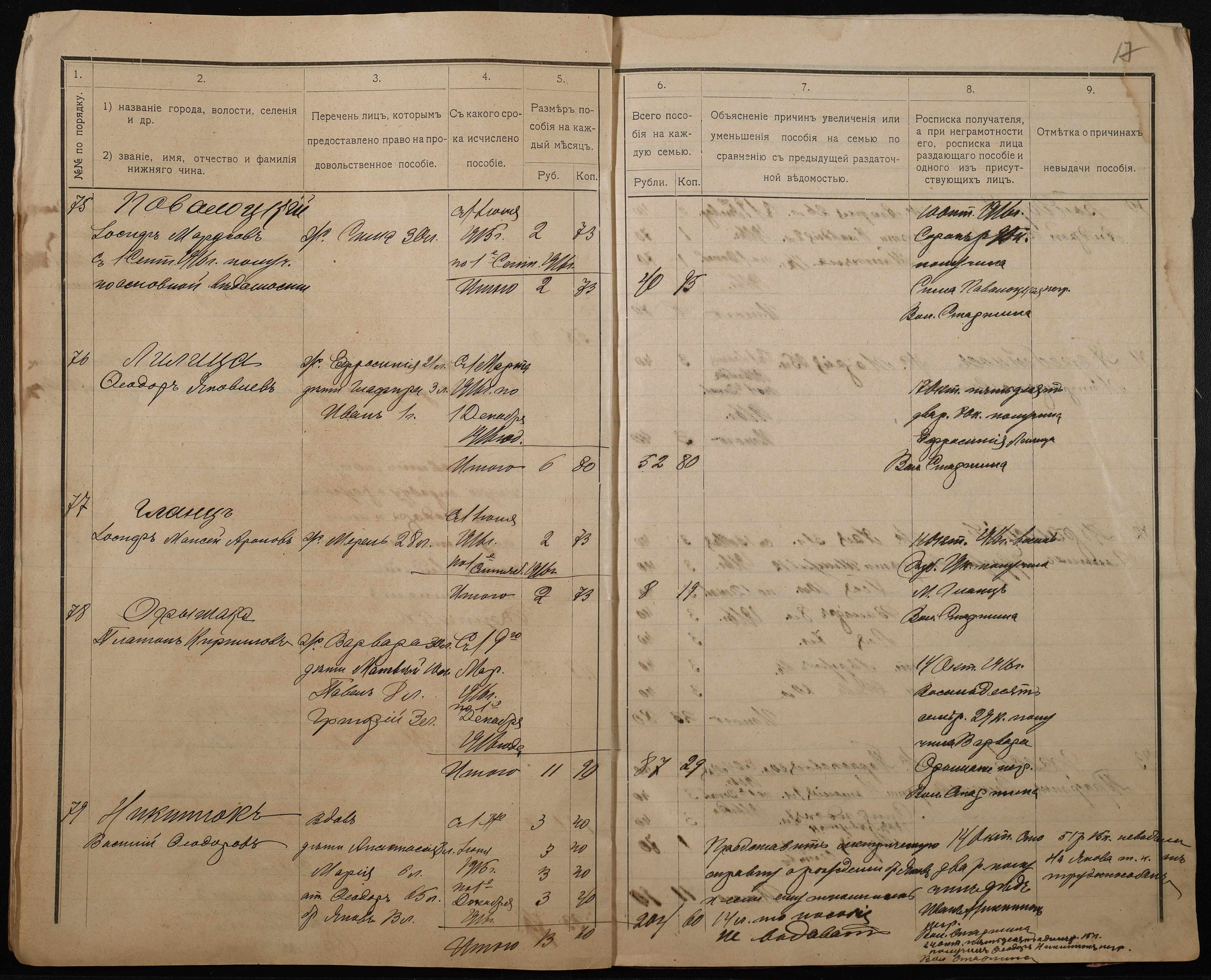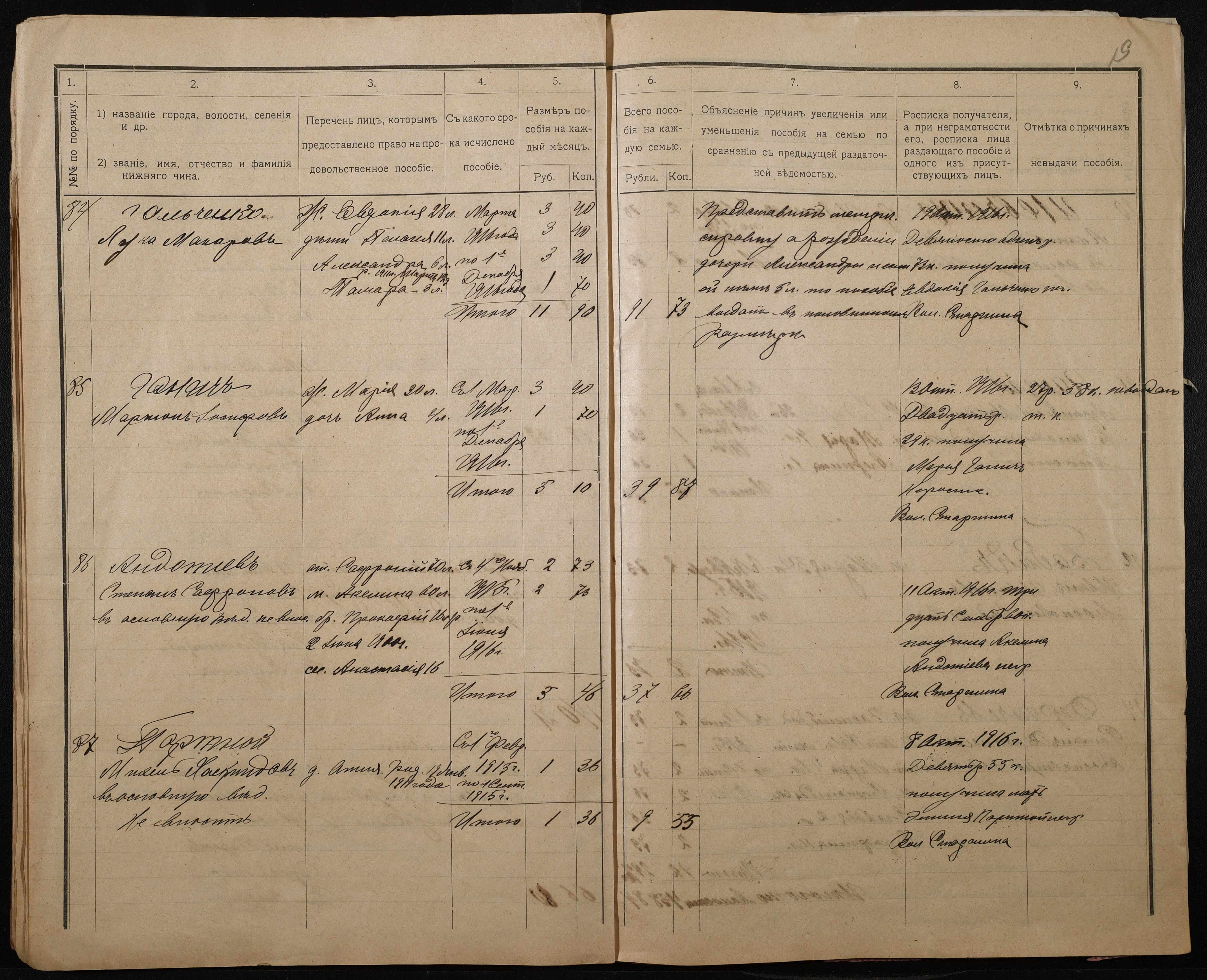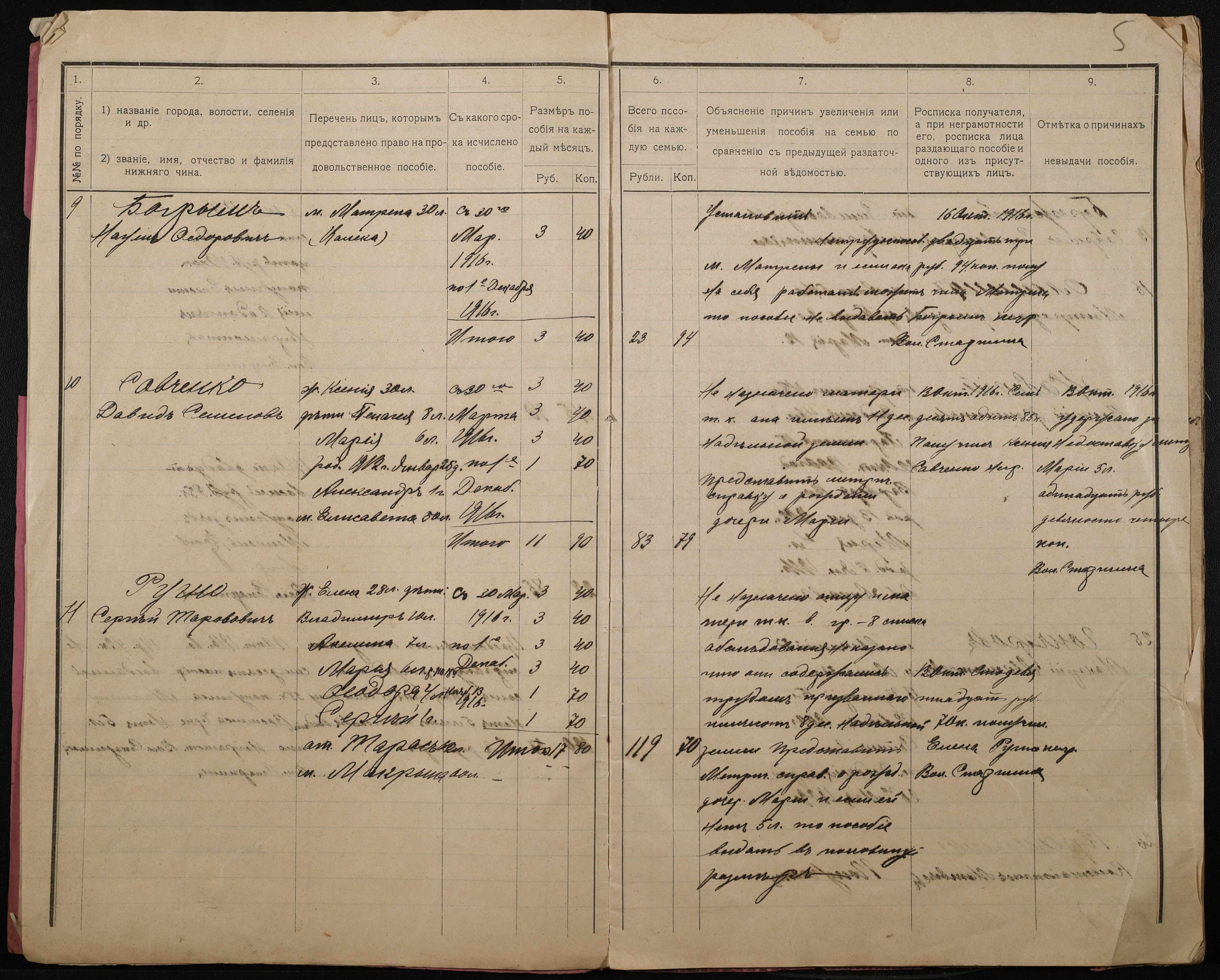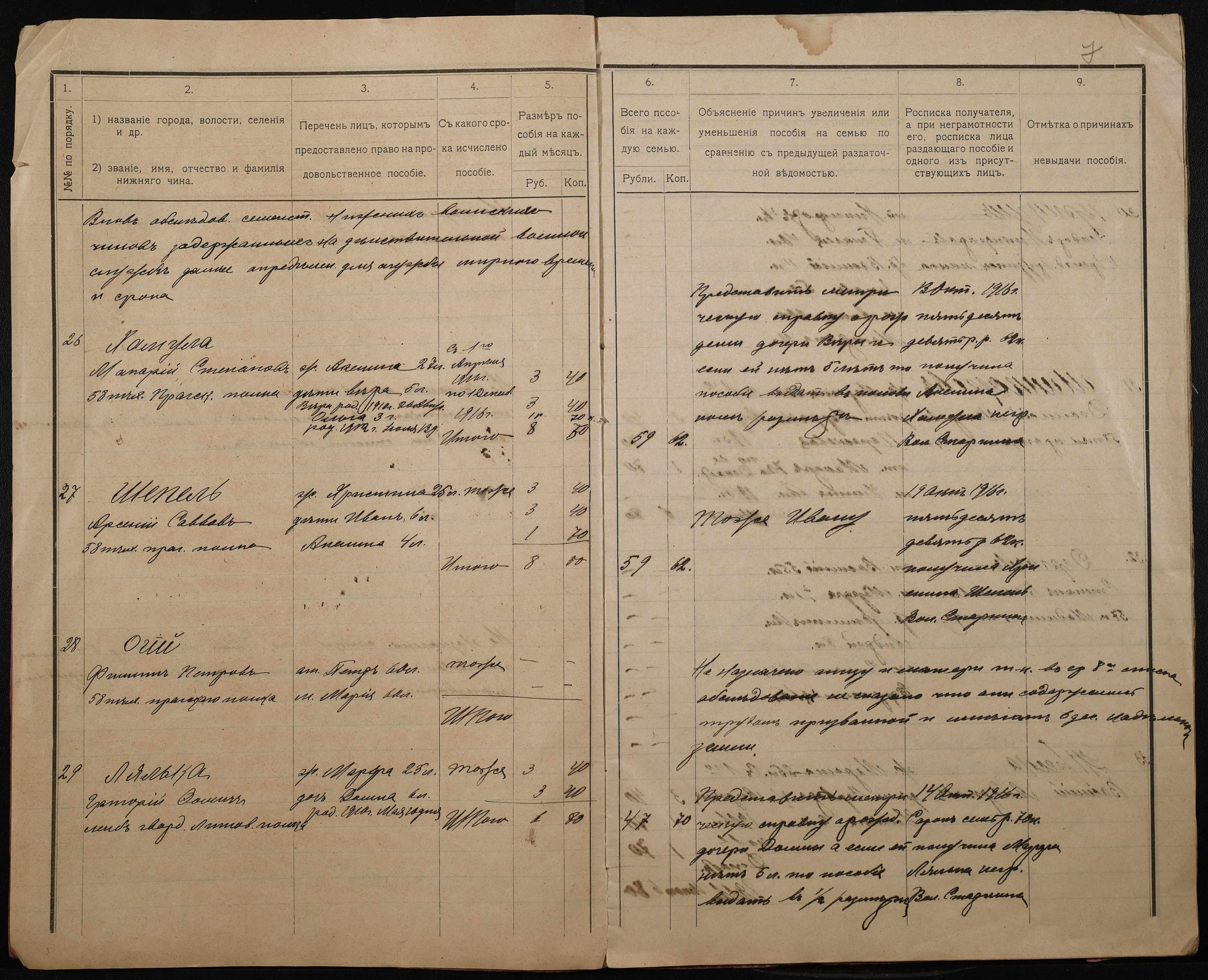 • • • • Справа № 276 “Роздаткові відомості на отримання продовольчої допомоги родинам нижніх військових чинів, покликаних по мобілізації 04 жовтня 1916 року”