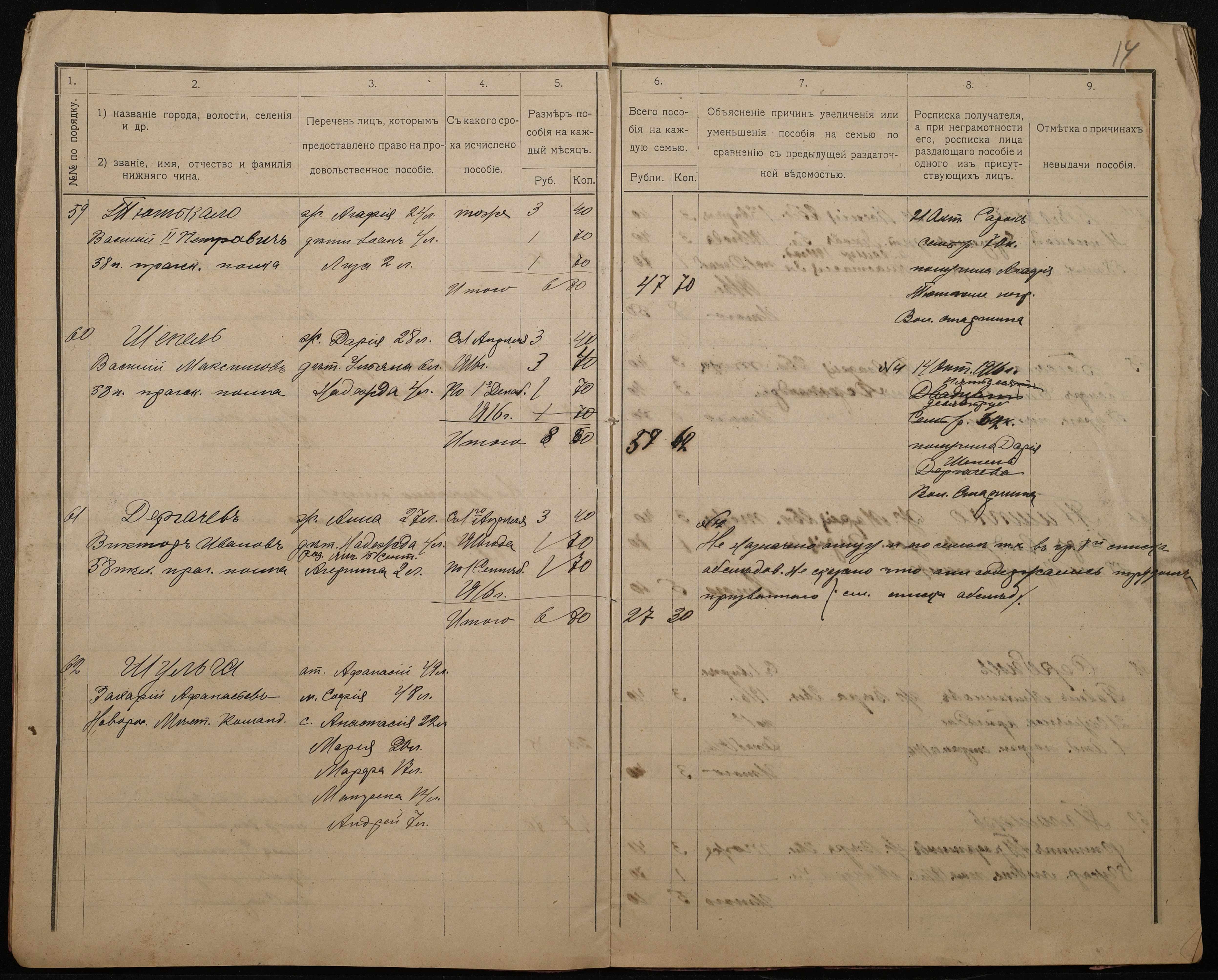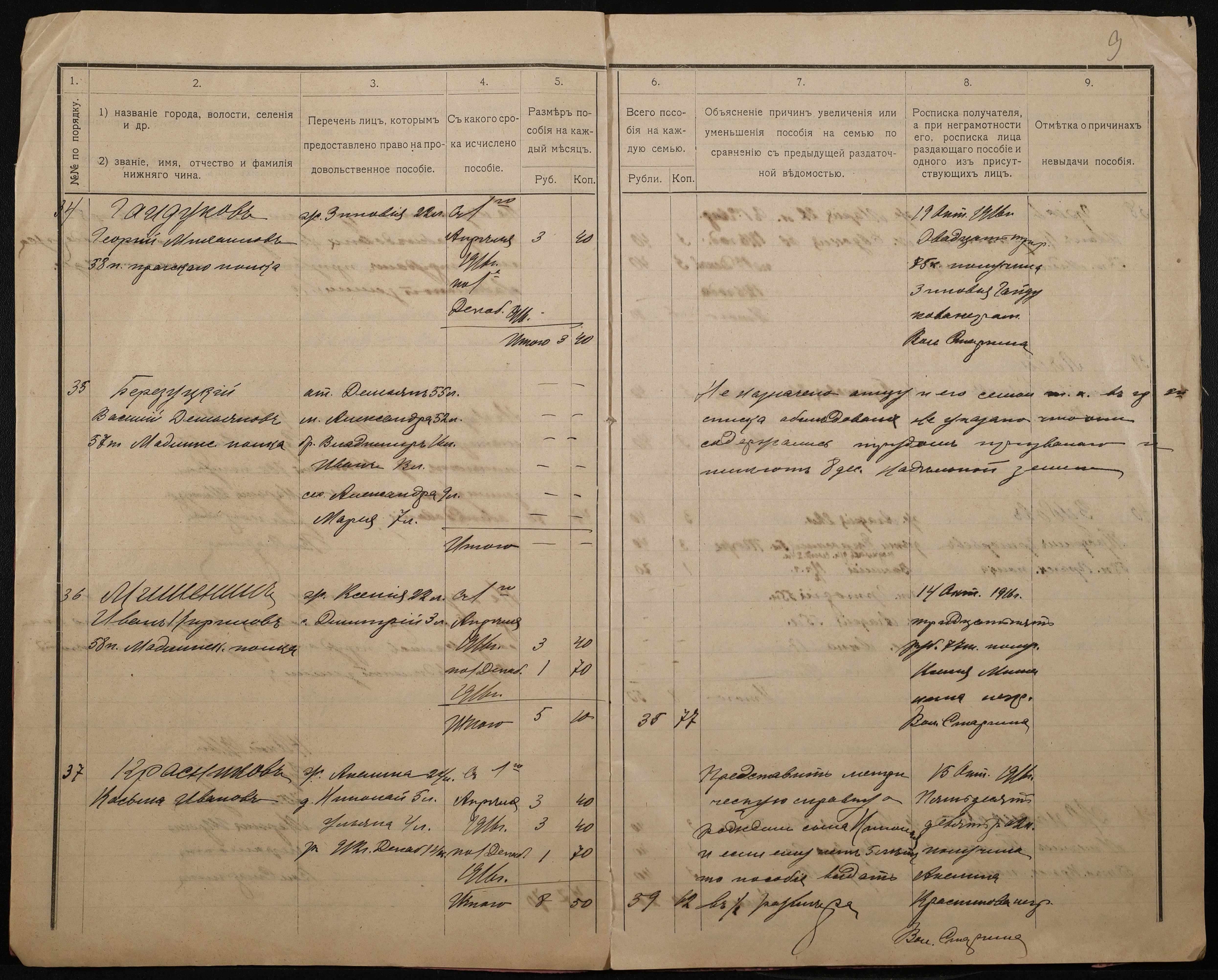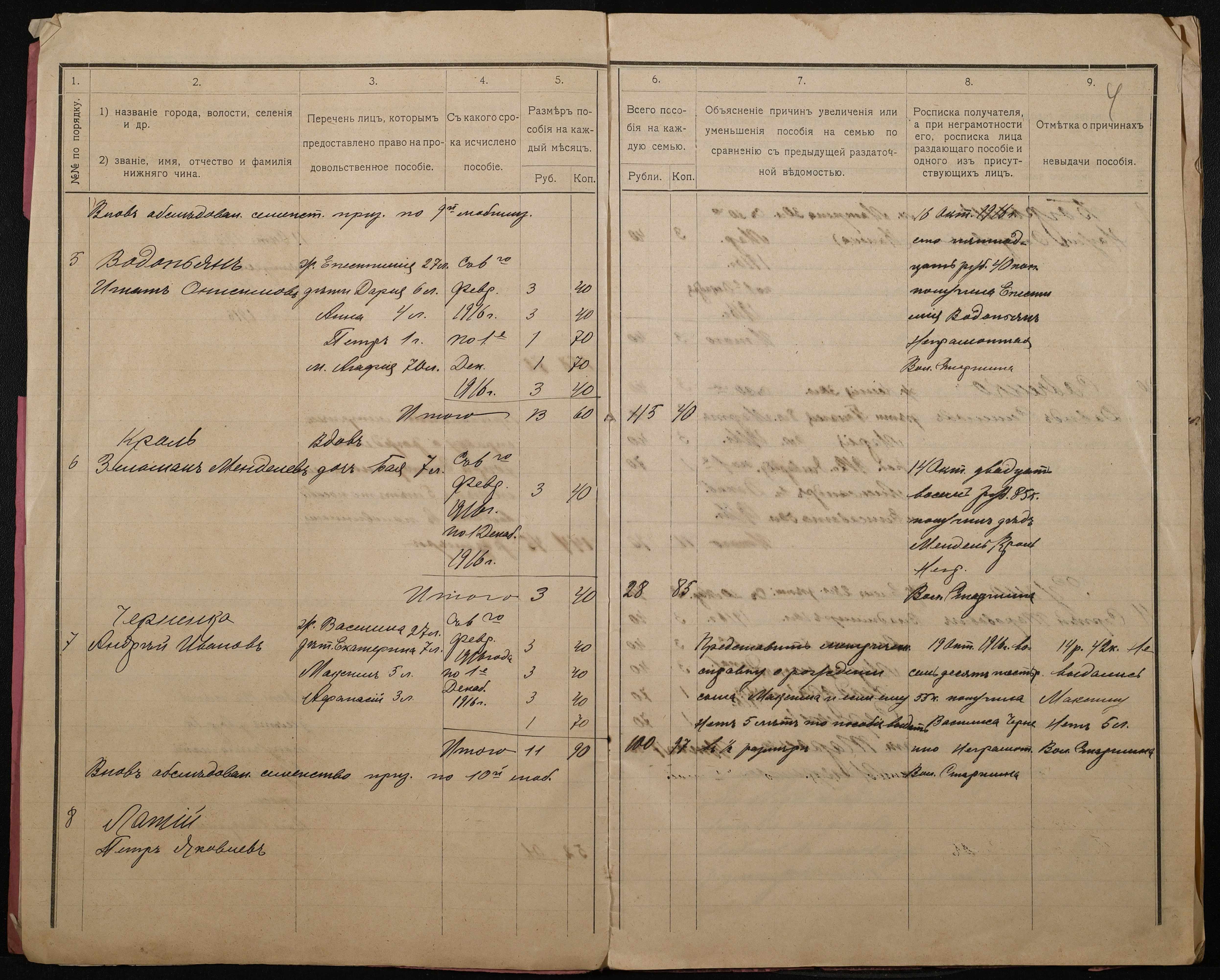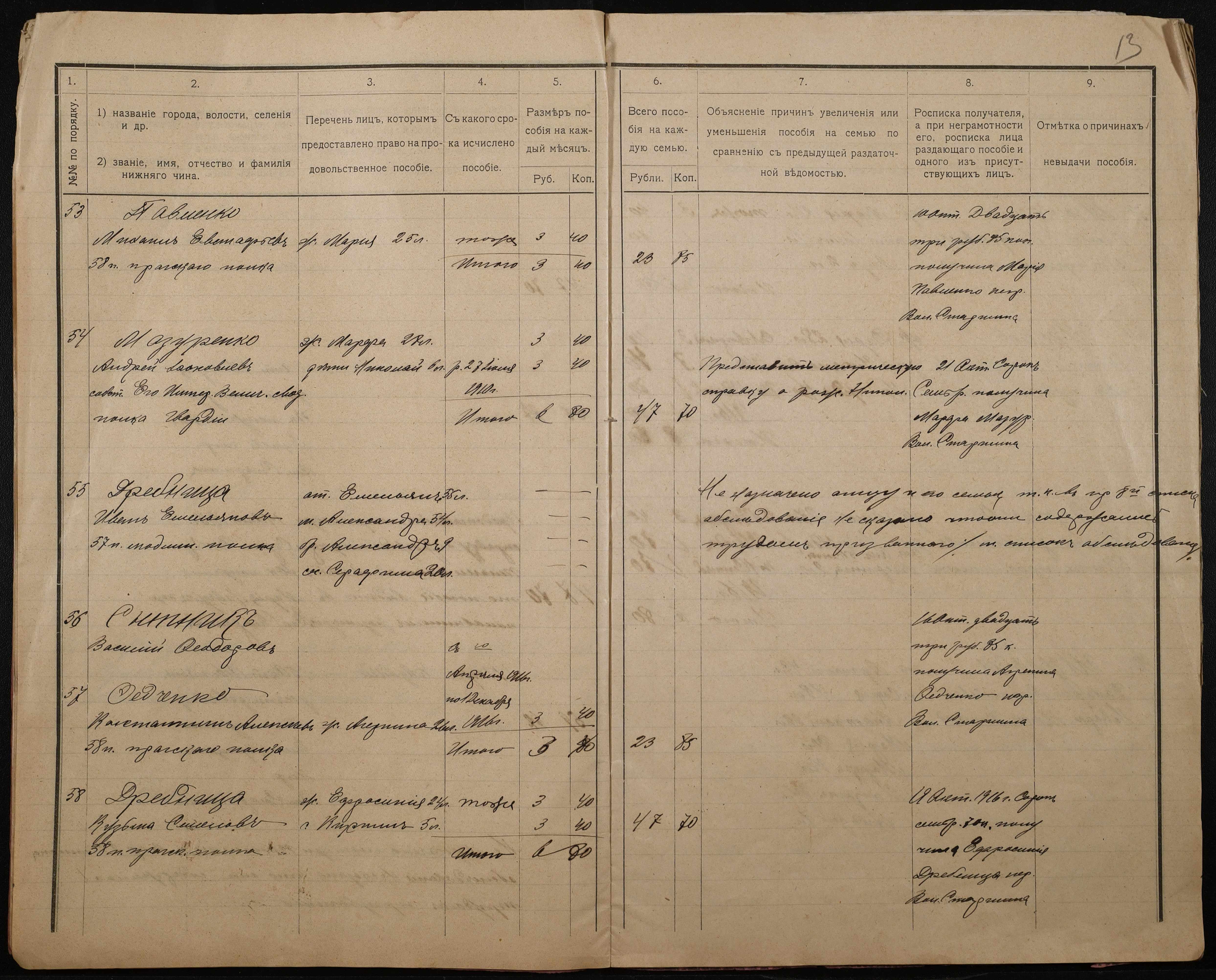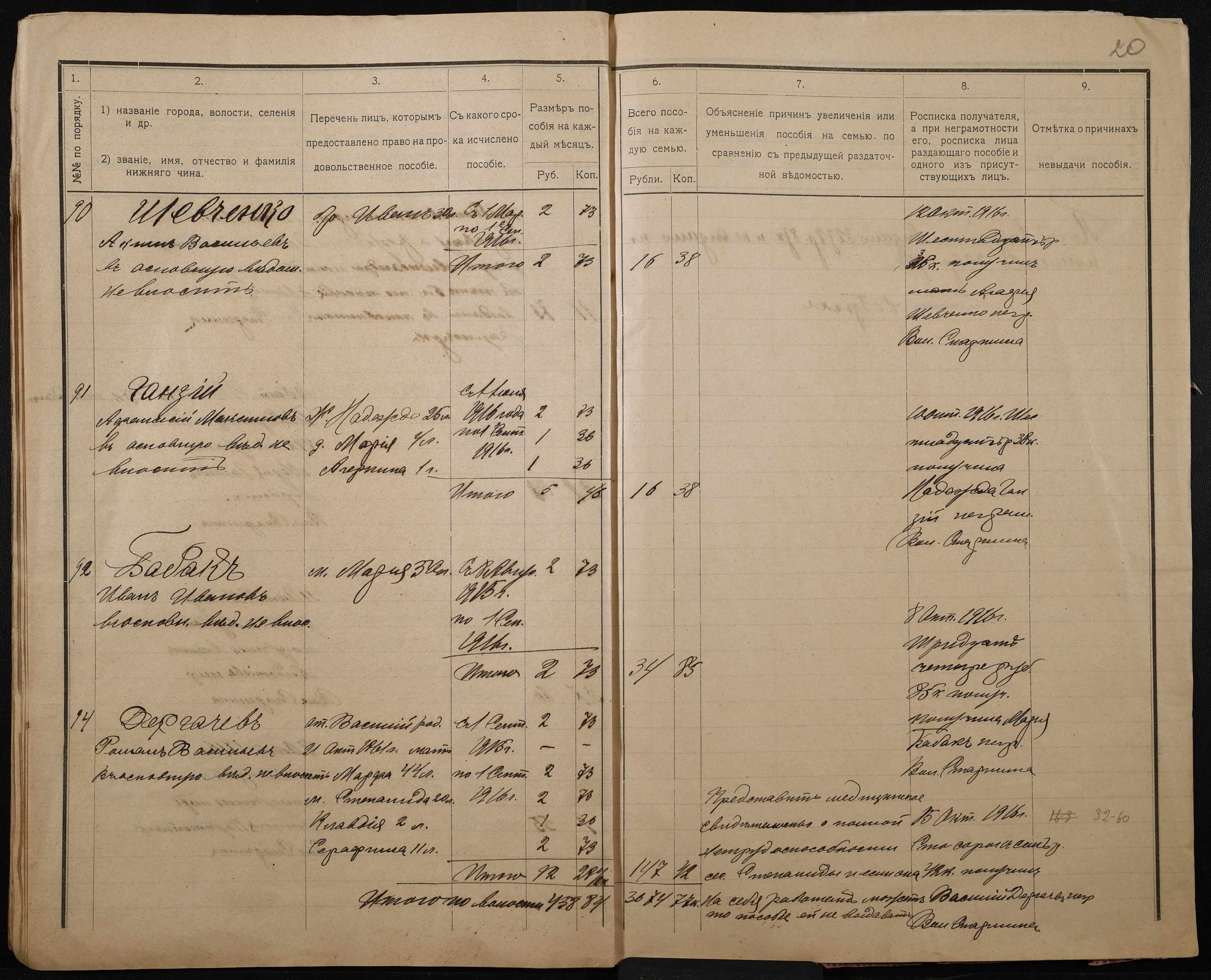 • • • • Справа № 276 “Роздаткові відомості на отримання продовольчої допомоги родинам нижніх військових чинів, покликаних по мобілізації 04 жовтня 1916 року”