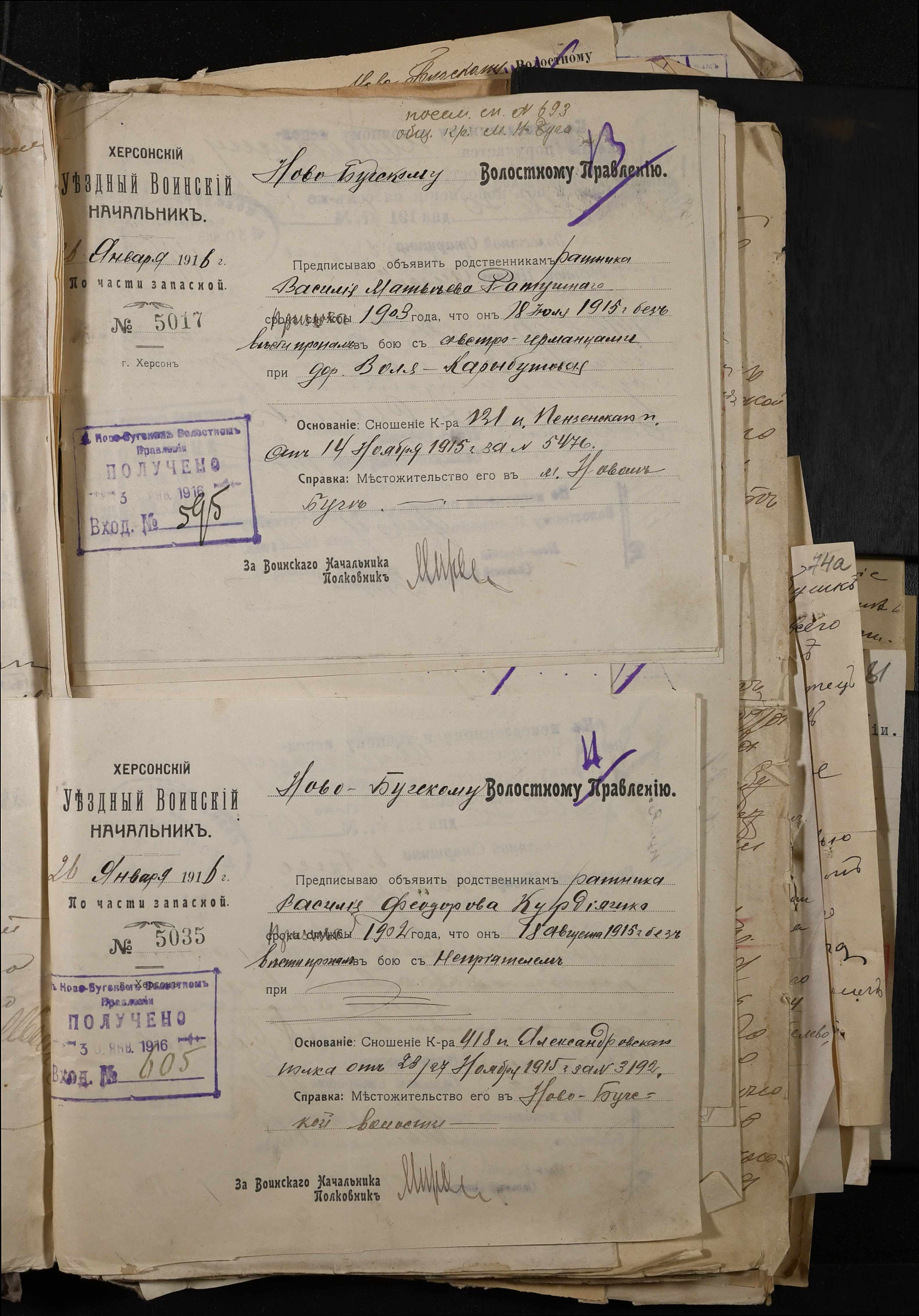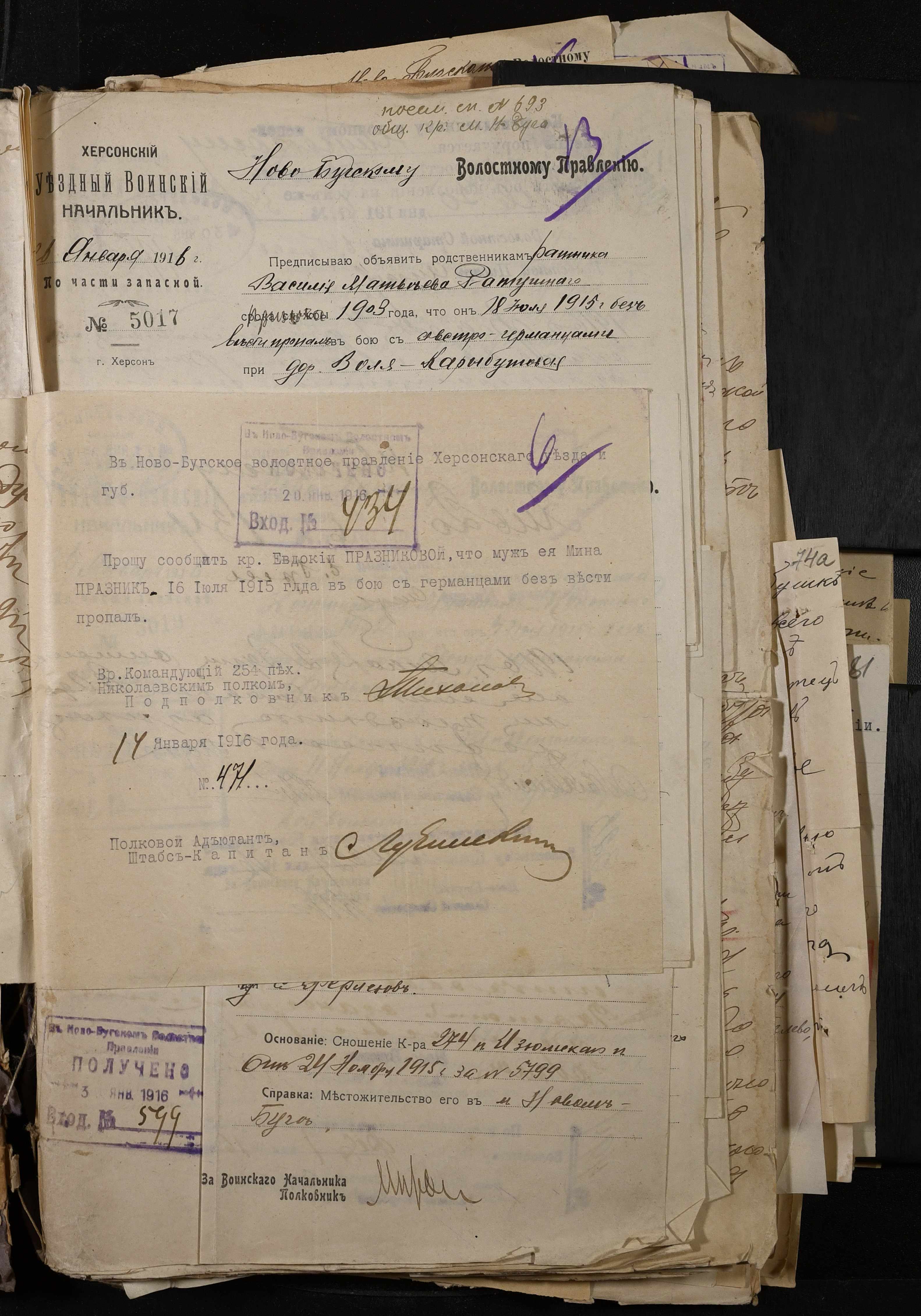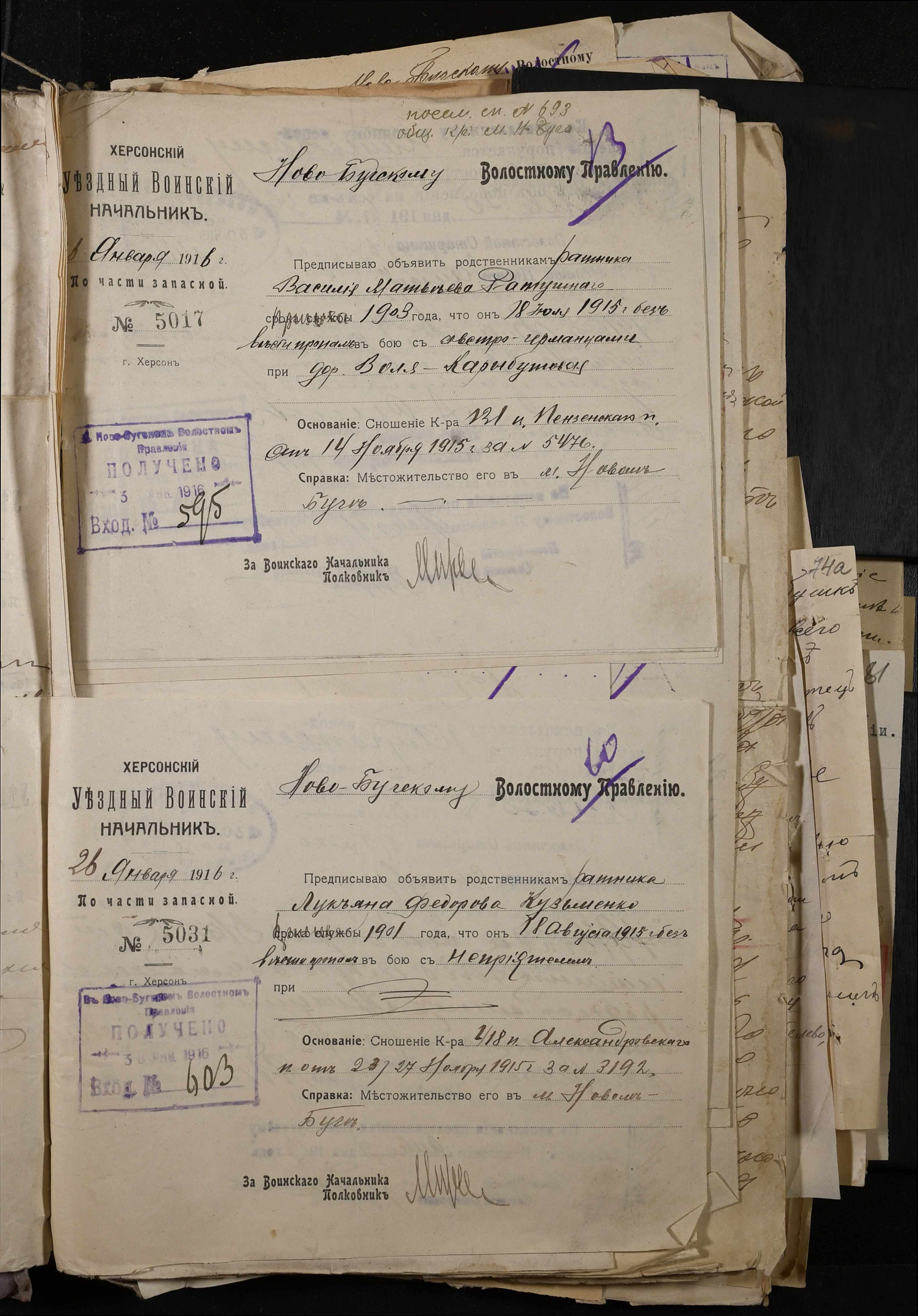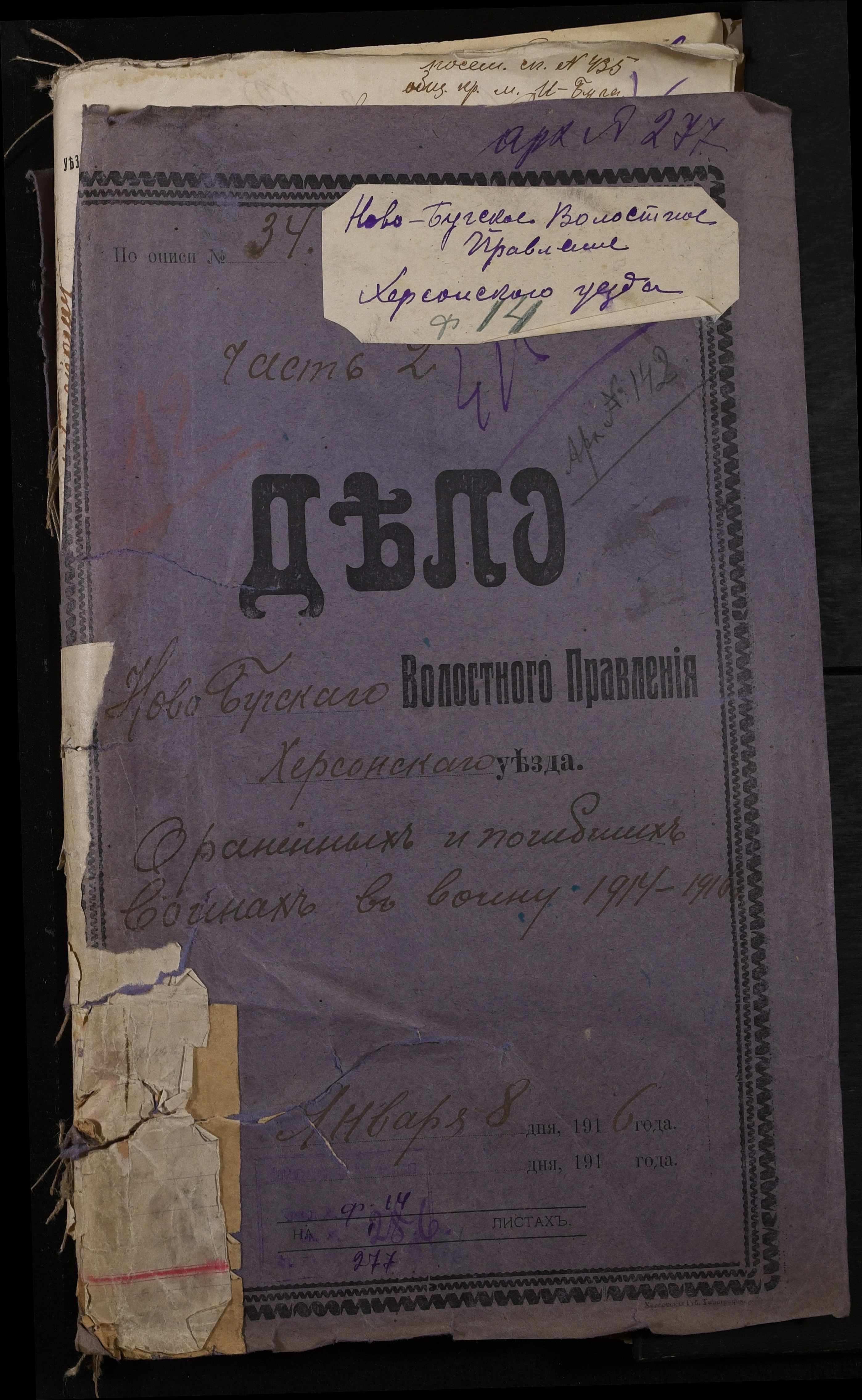 • • • • Справа № 277 “Повідомлення Херсонського повітового військового начальника про вбитих, зниклих безвісти під час війни військовослужбовців, мобілізо-ваних із населених пунктів волості”