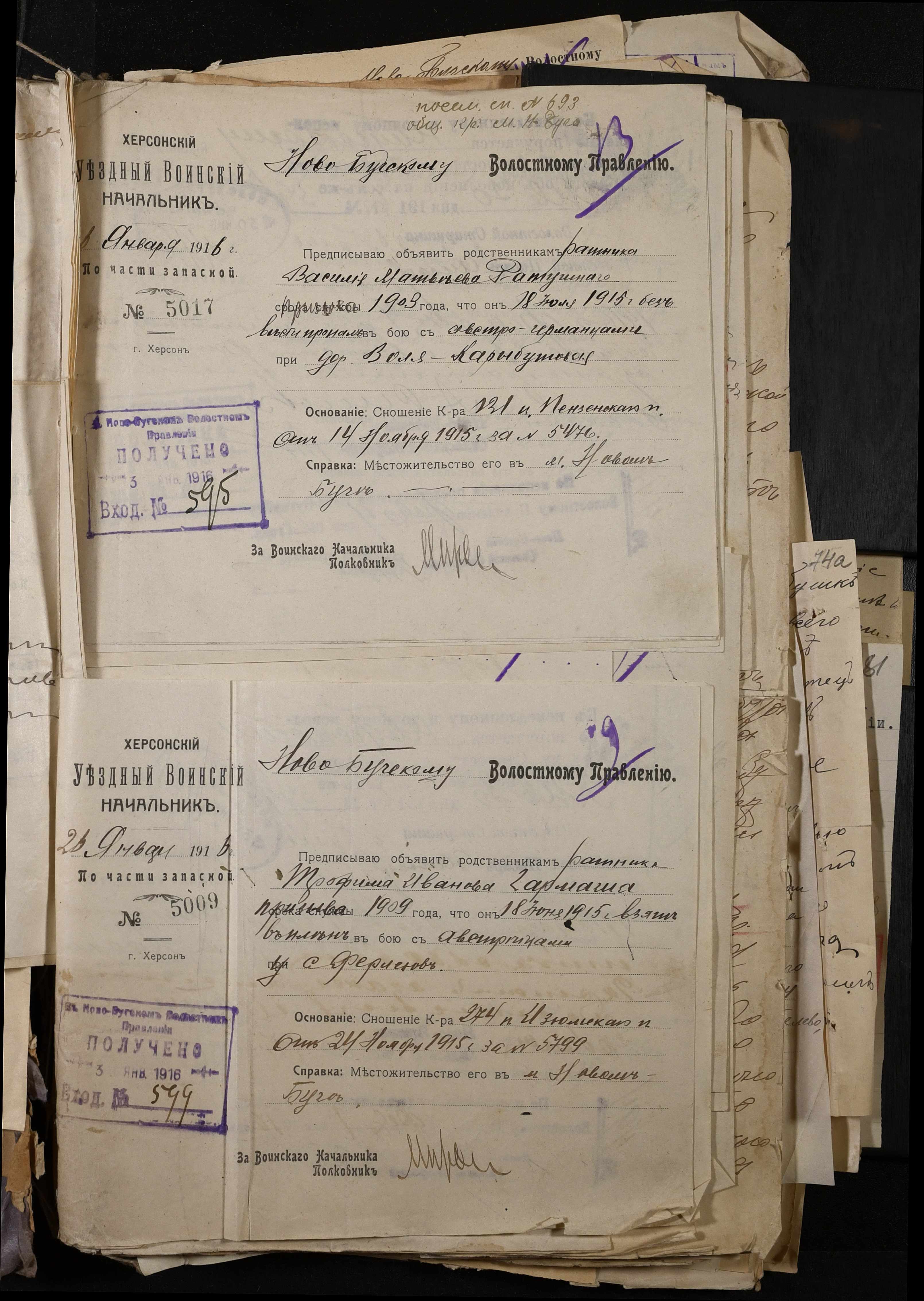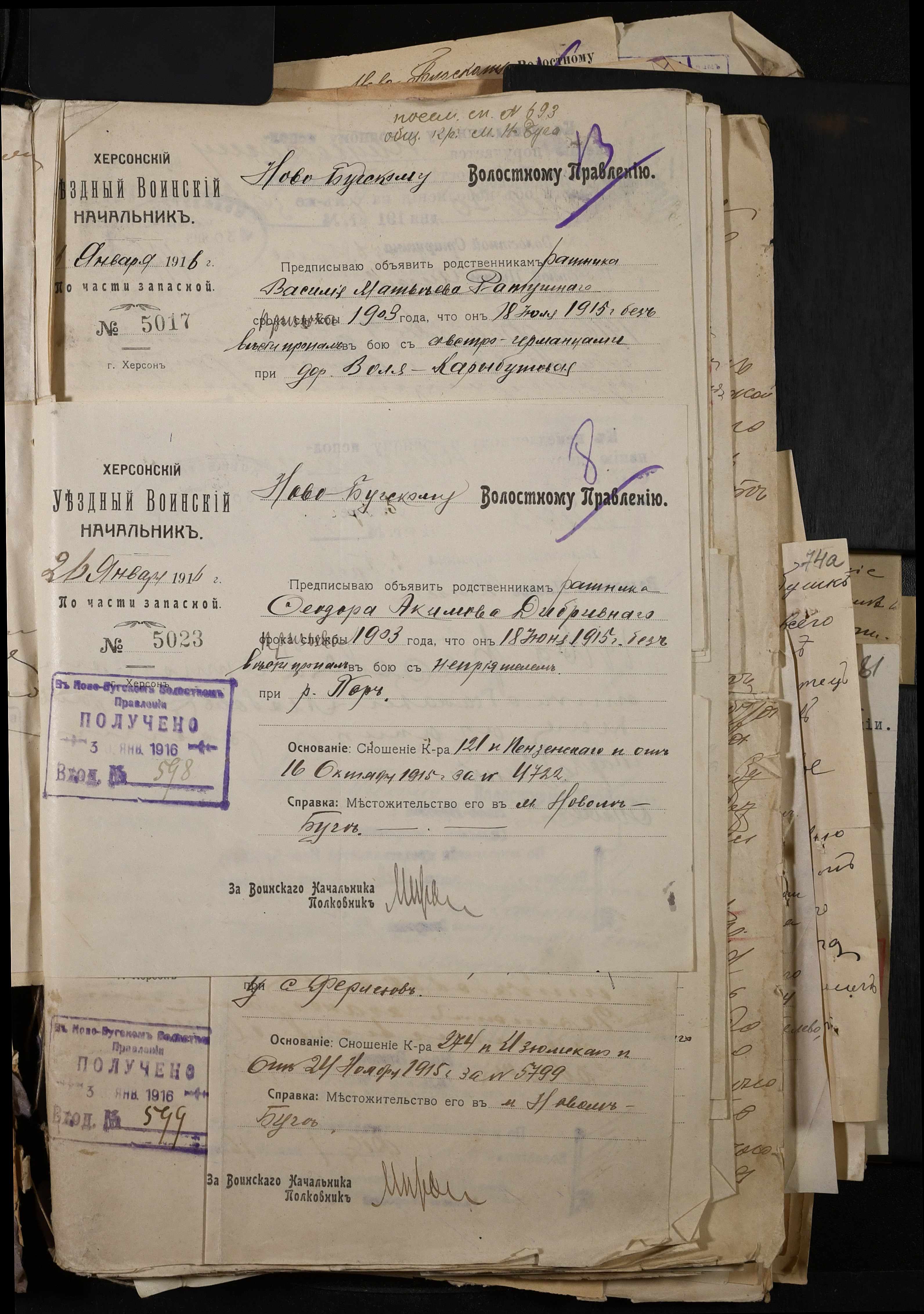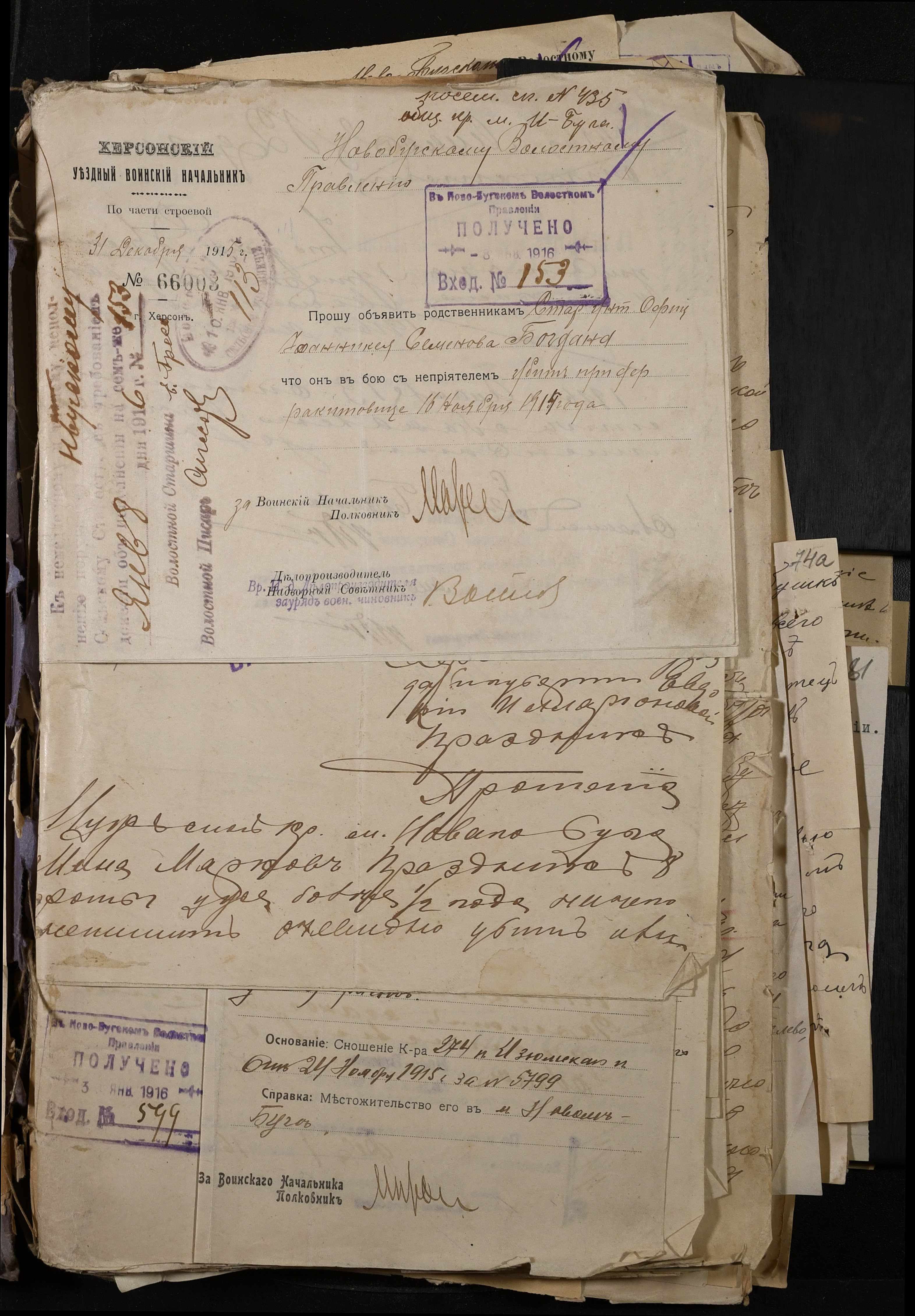 • • • • Справа № 277 “Повідомлення Херсонського повітового військового начальника про вбитих, зниклих безвісти під час війни військовослужбовців, мобілізо-ваних із населених пунктів волості”