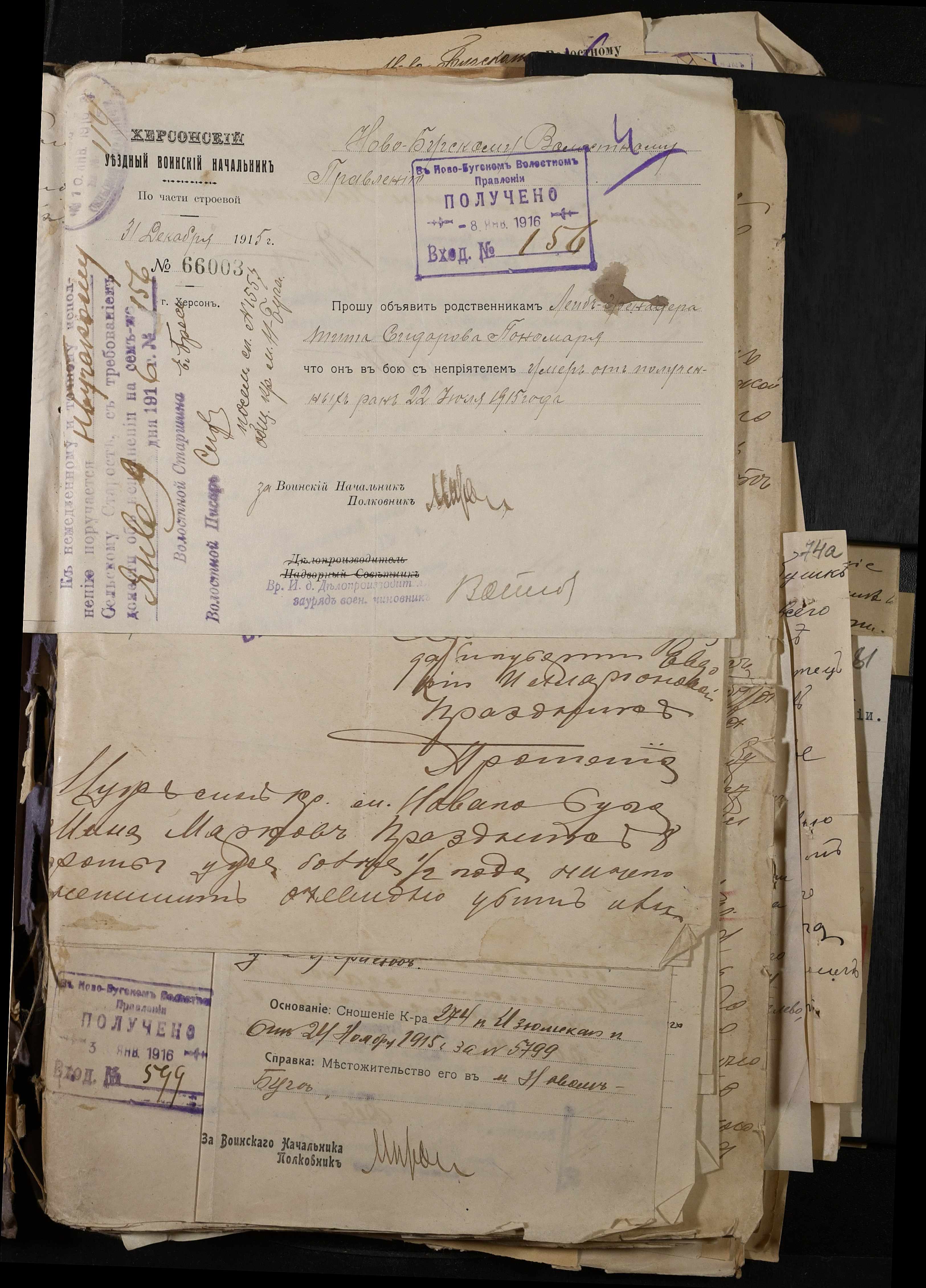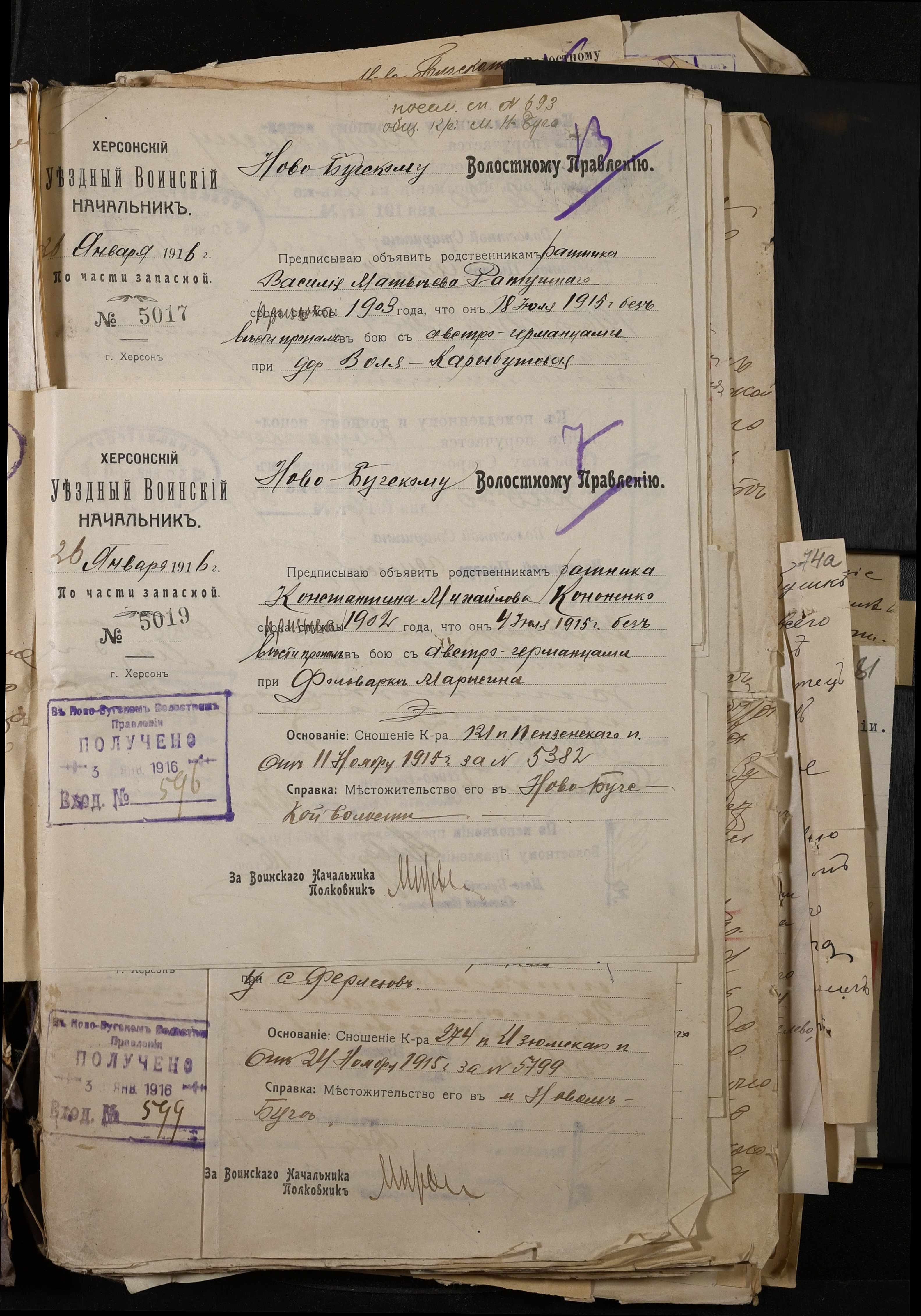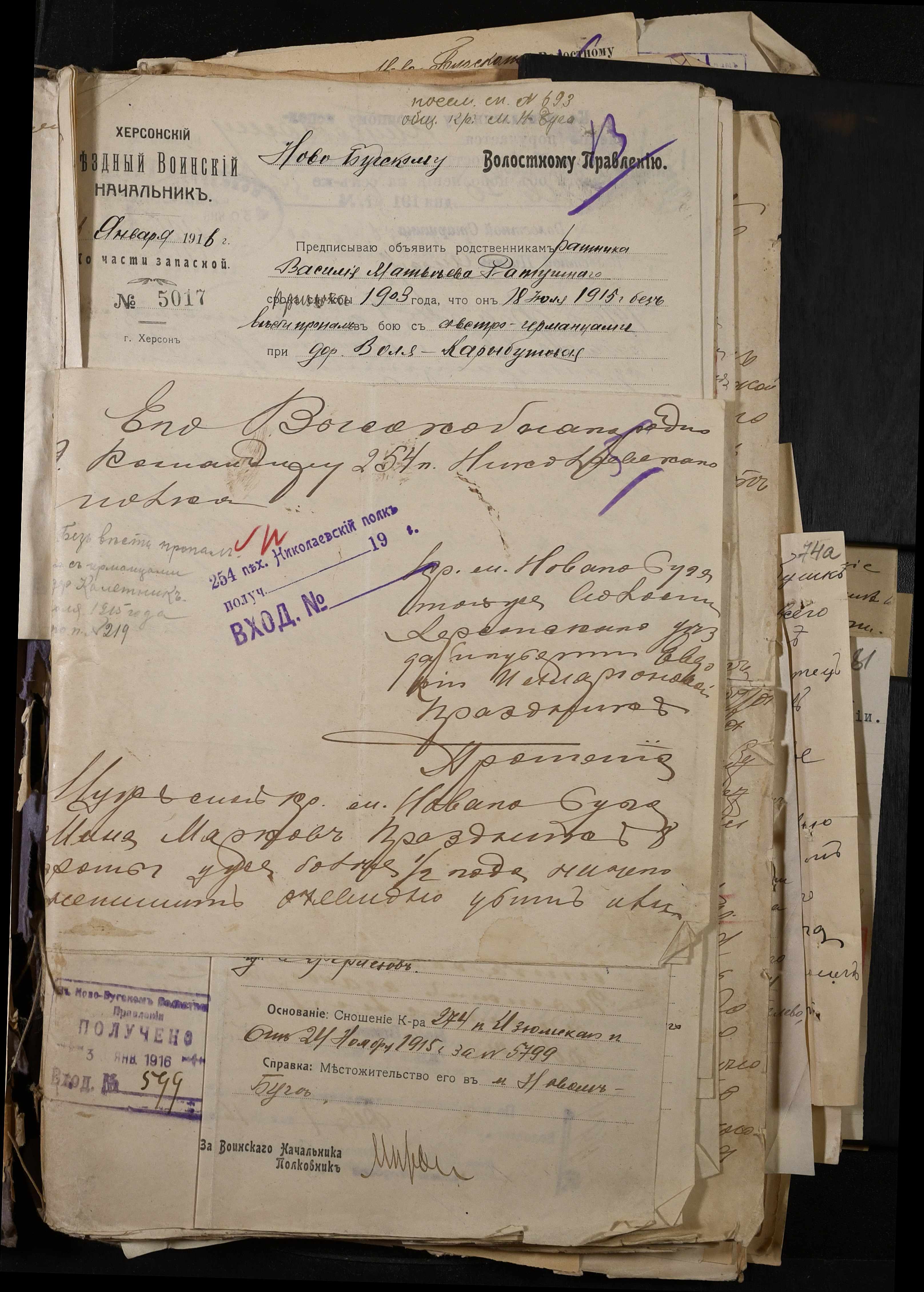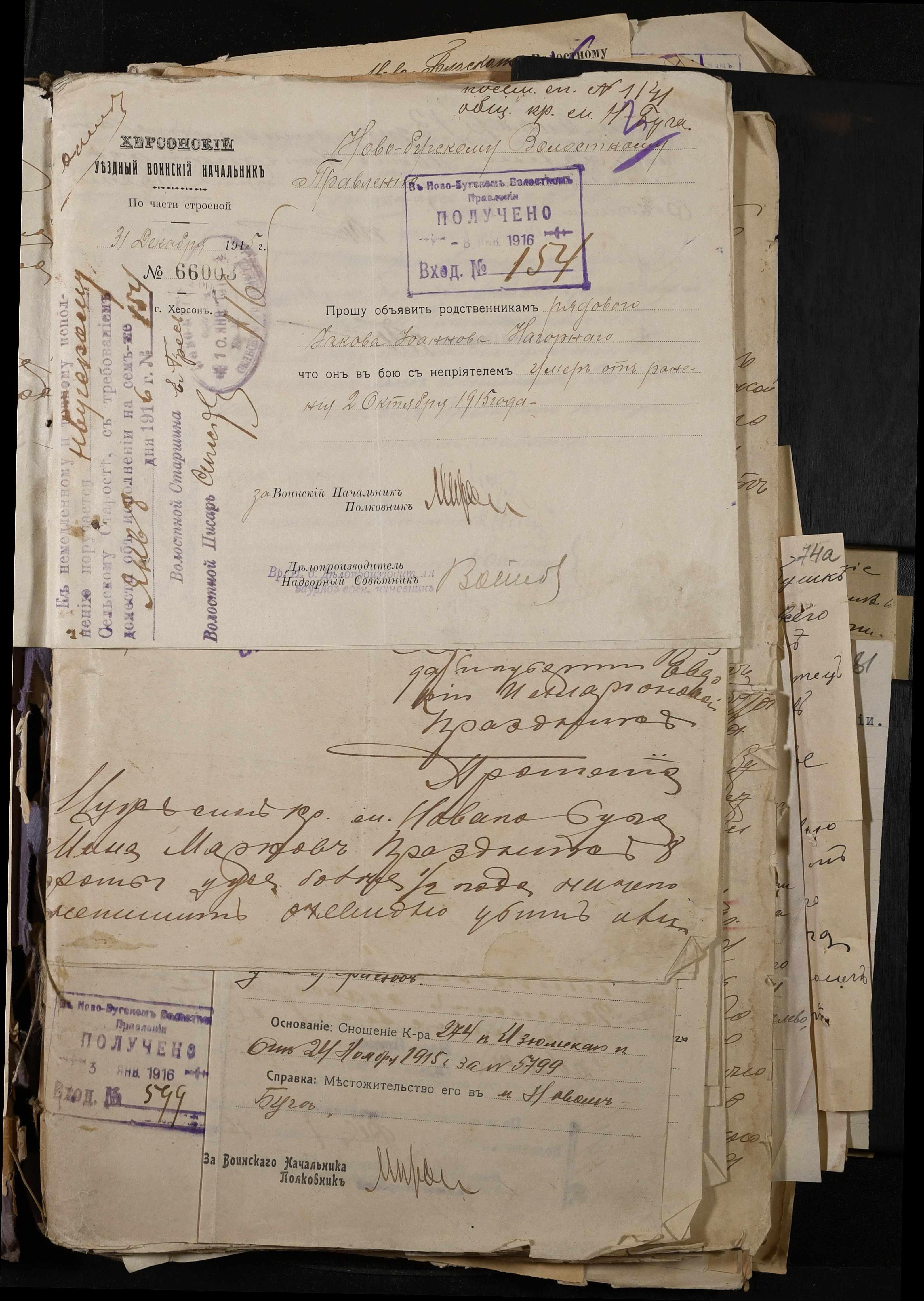 • • • • Справа № 277 “Повідомлення Херсонського повітового військового начальника про вбитих, зниклих безвісти під час війни військовослужбовців, мобілізо-ваних із населених пунктів волості”