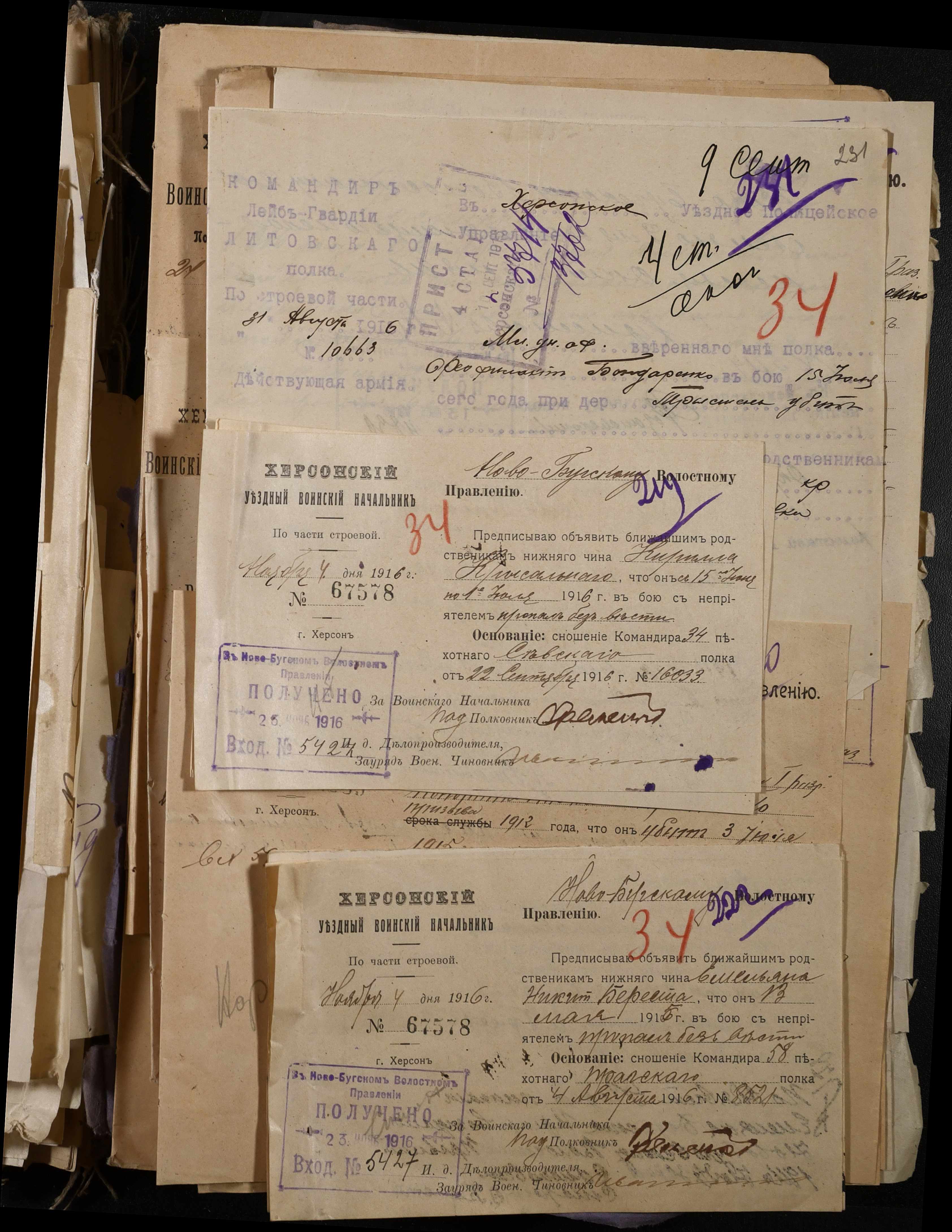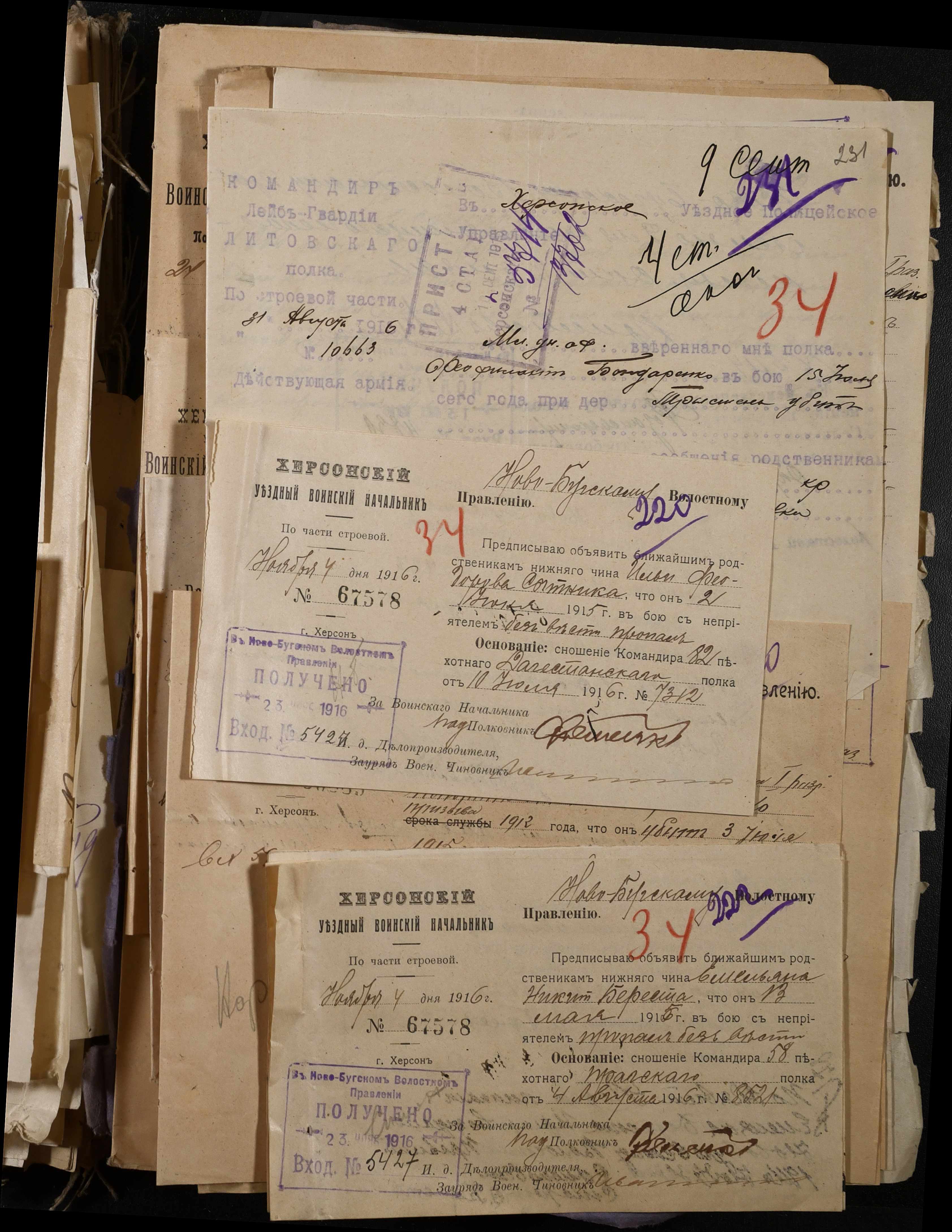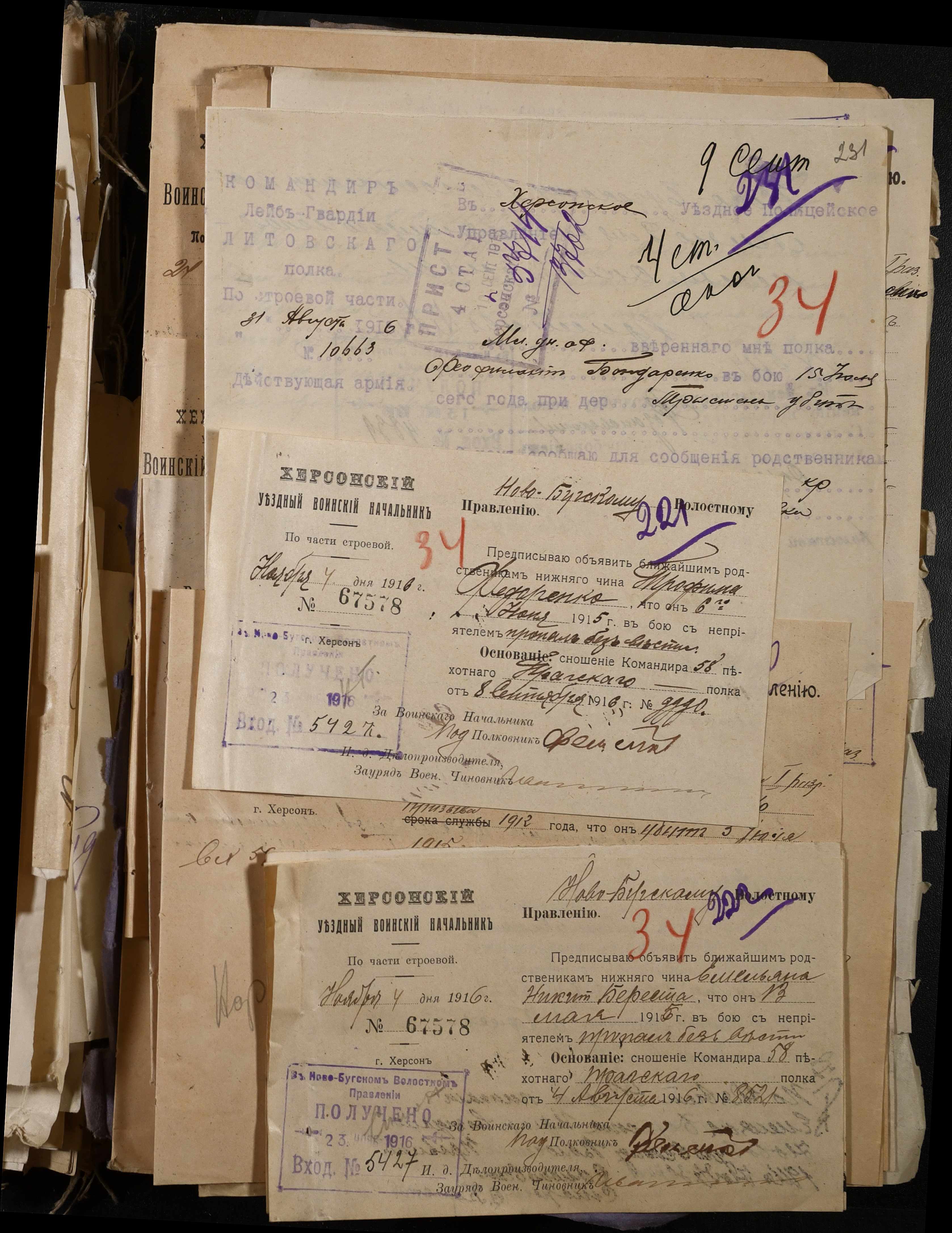 • • • • Справа № 277 “Повідомлення Херсонського повітового військового начальника про вбитих, зниклих безвісти під час війни військовослужбовців, мобілізо-ваних із населених пунктів волості”
