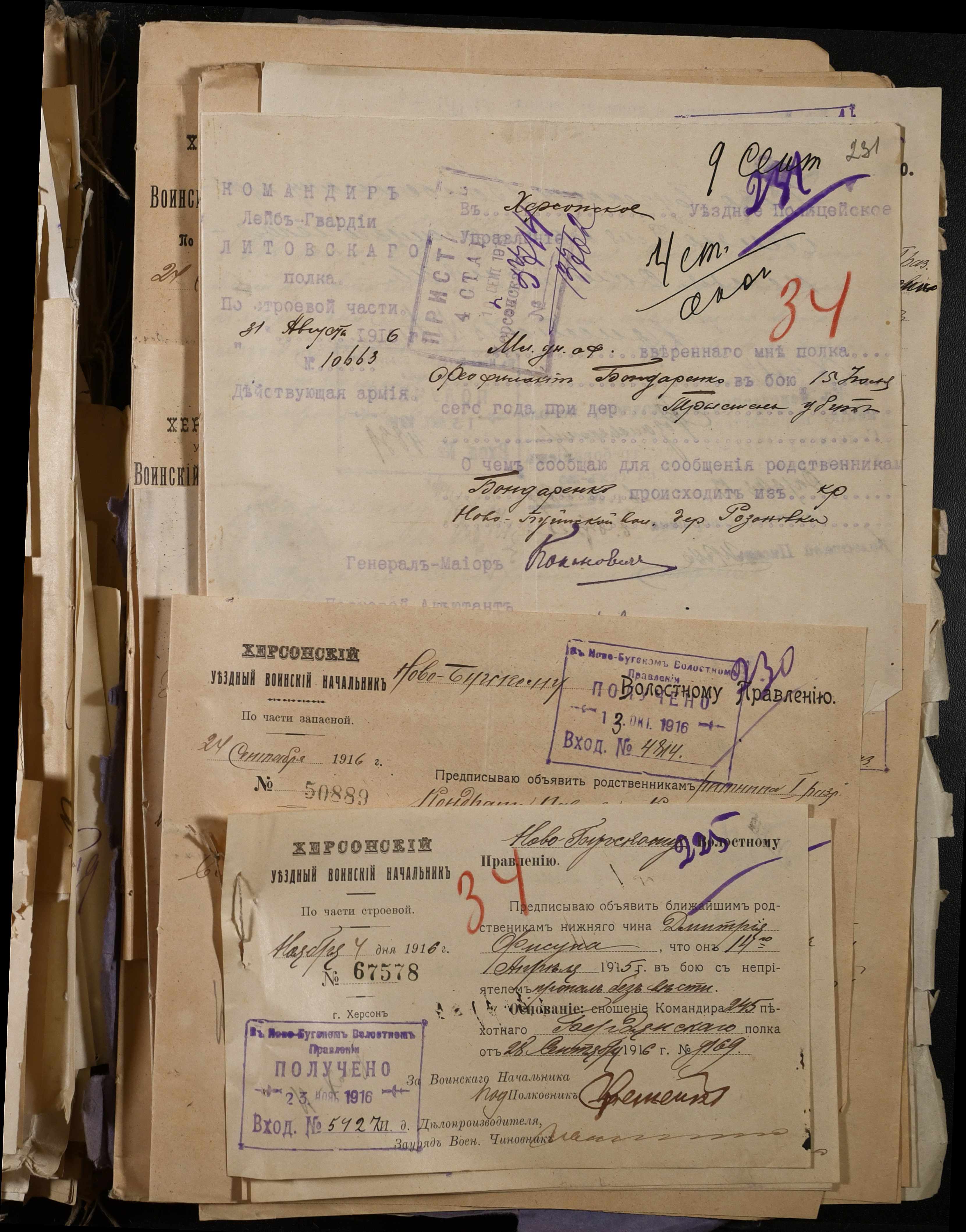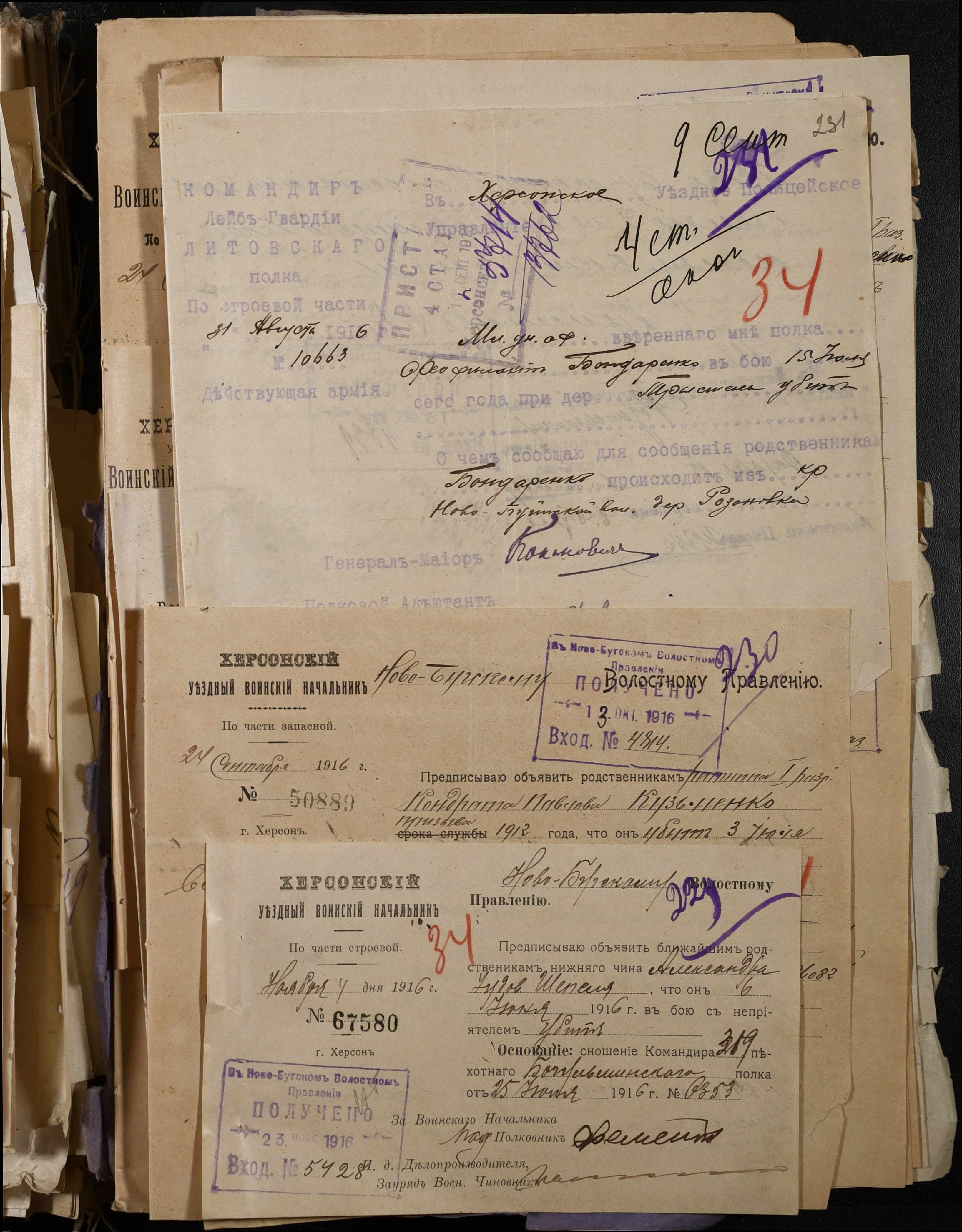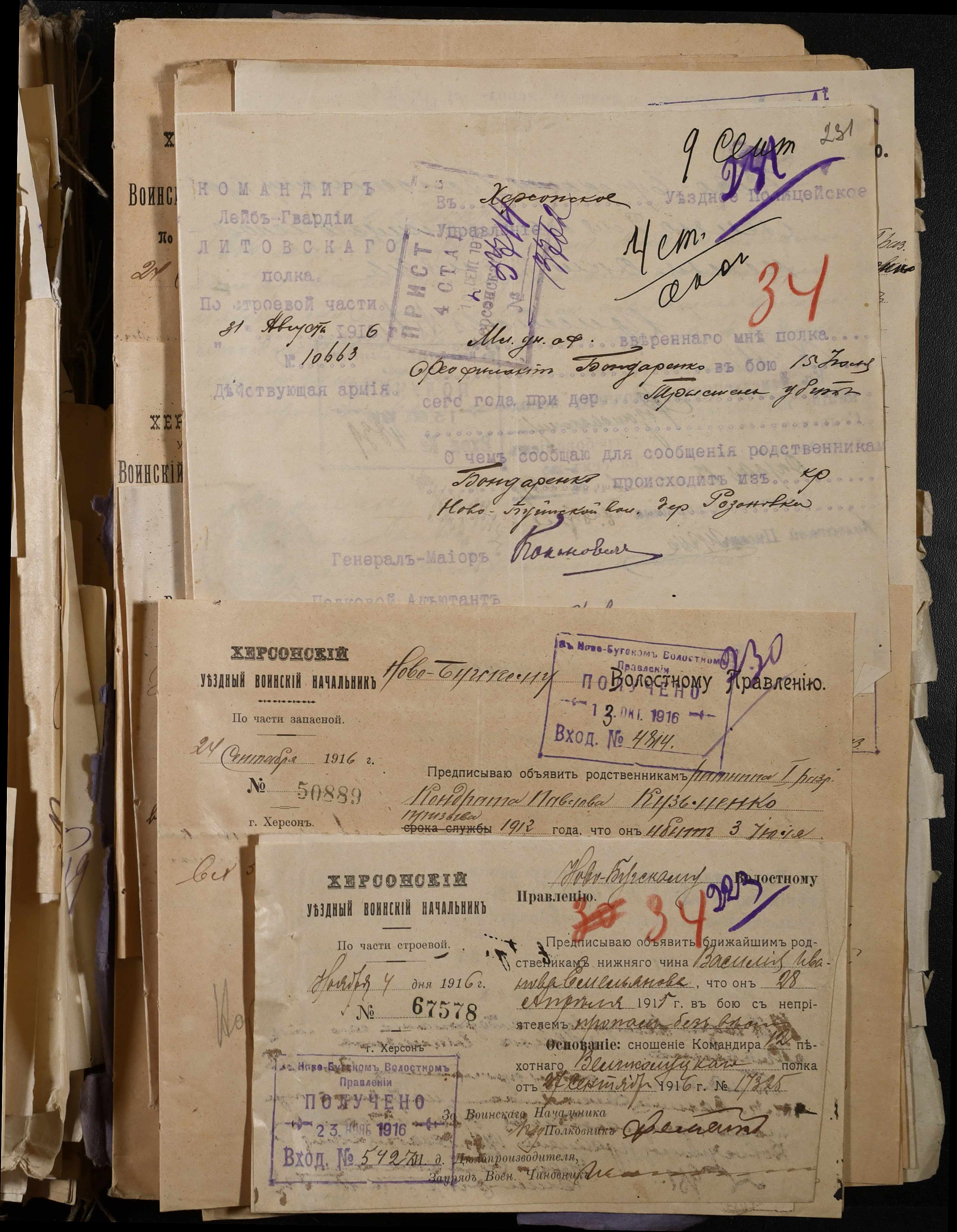 • • • • Справа № 277 “Повідомлення Херсонського повітового військового начальника про вбитих, зниклих безвісти під час війни військовослужбовців, мобілізо-ваних із населених пунктів волості”