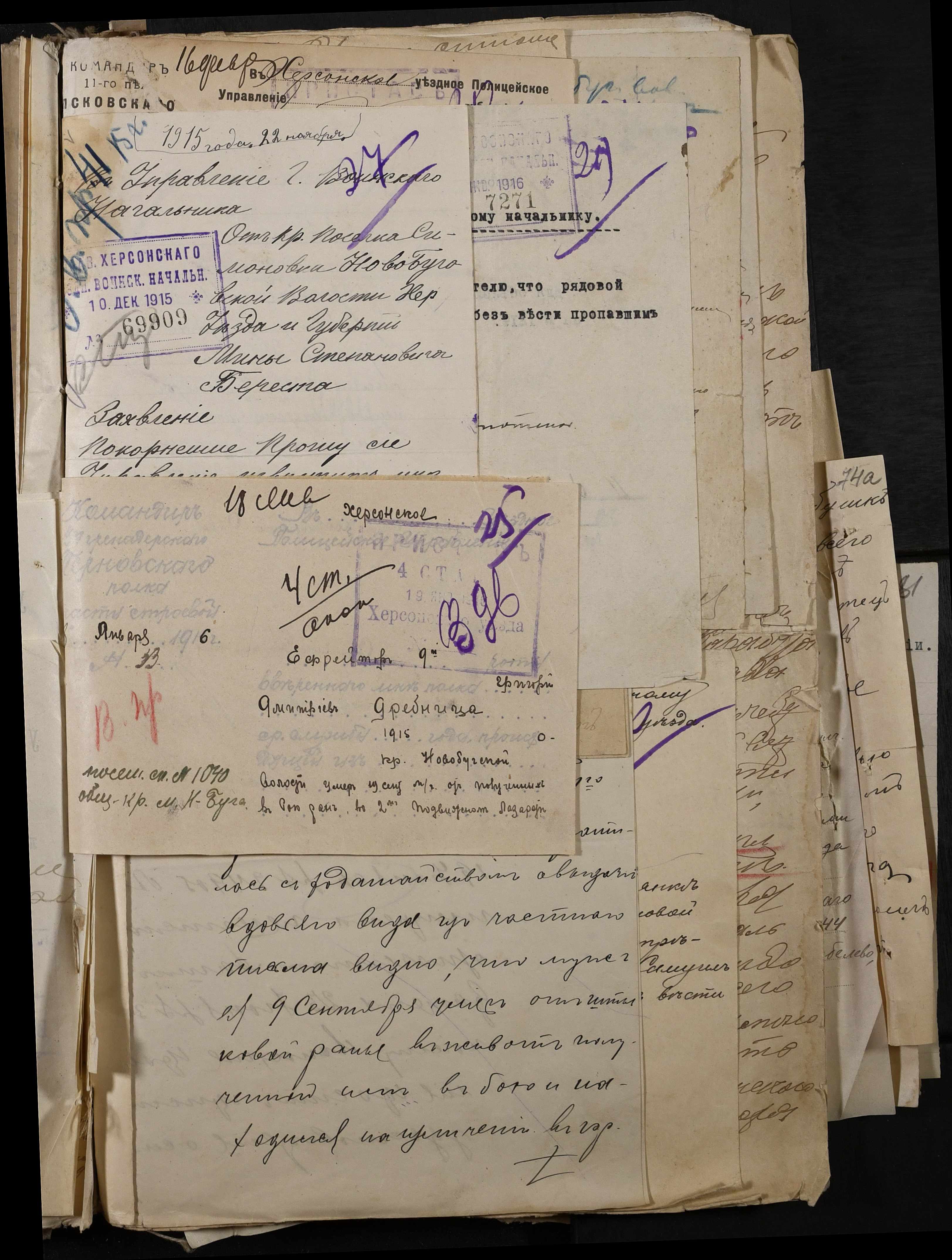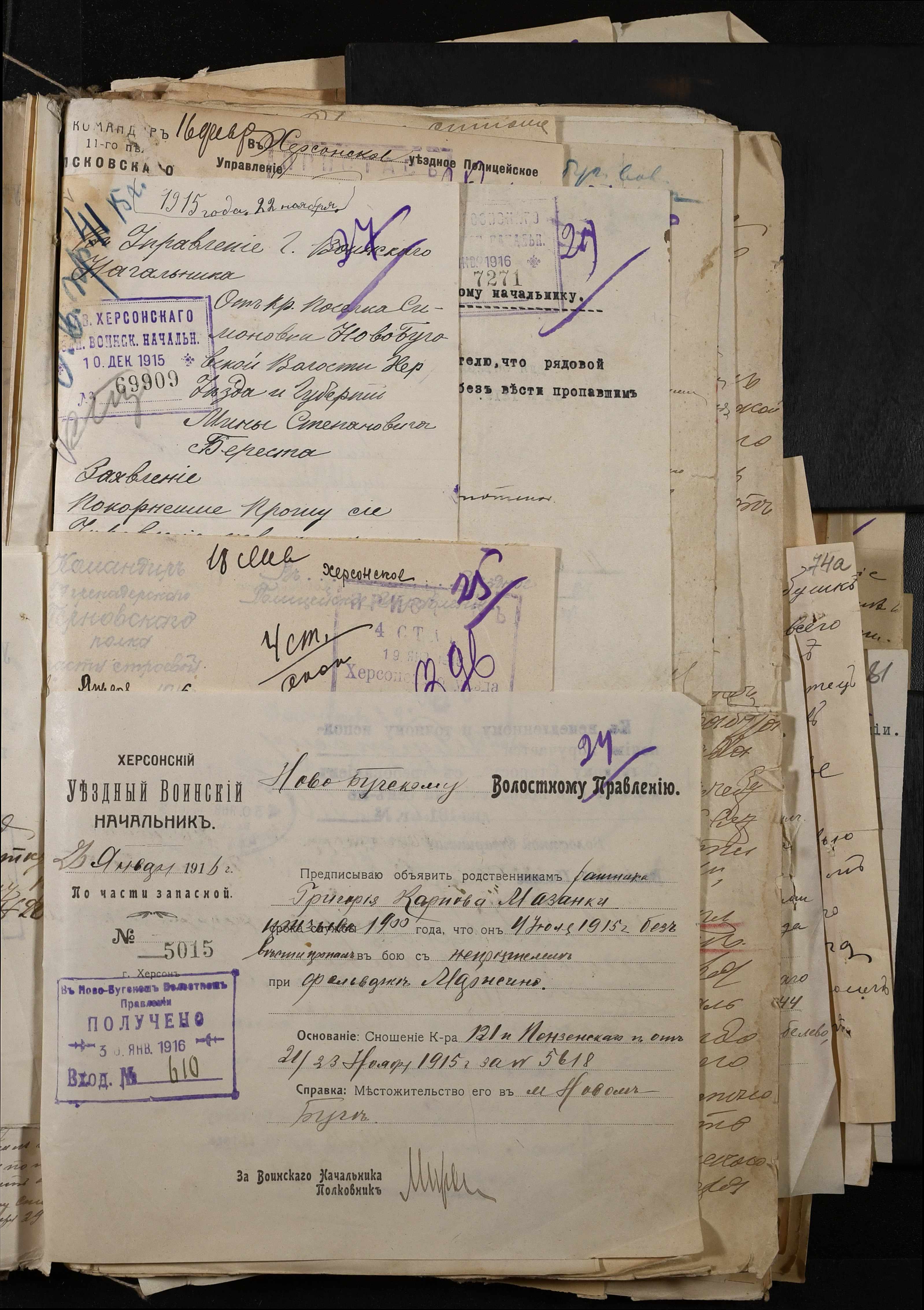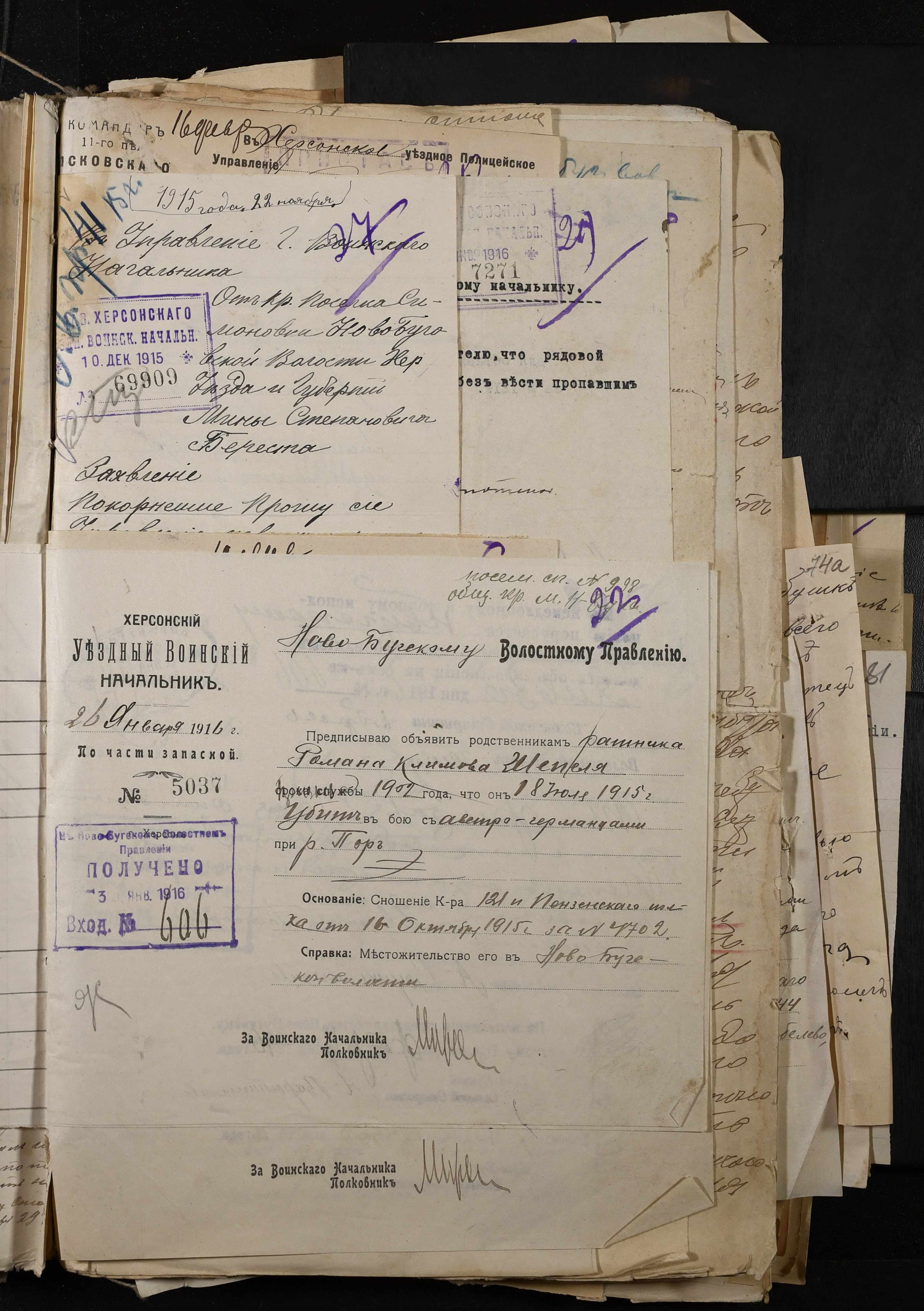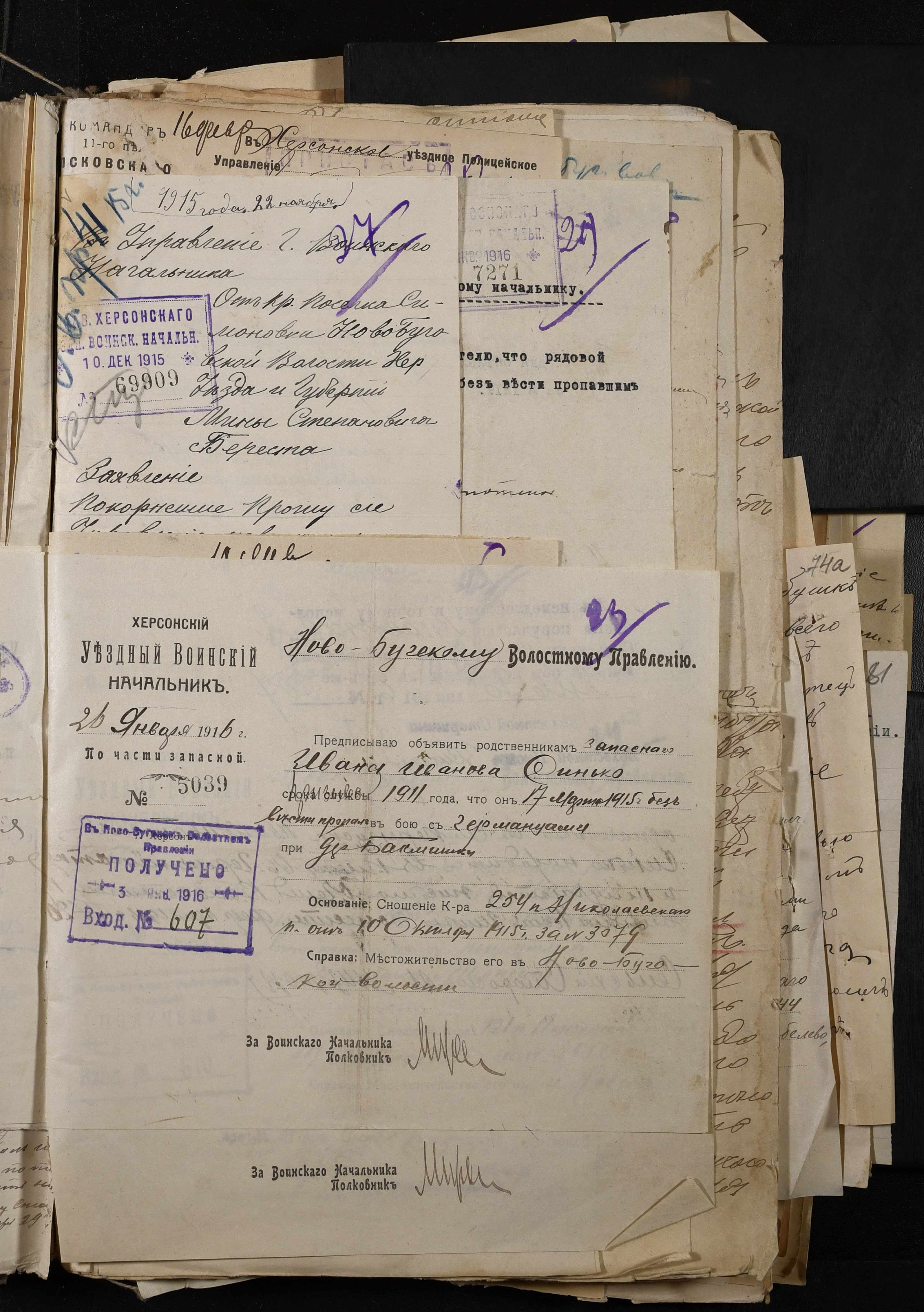 • • • • Справа № 277 “Повідомлення Херсонського повітового військового начальника про вбитих, зниклих безвісти під час війни військовослужбовців, мобілізо-ваних із населених пунктів волості”
