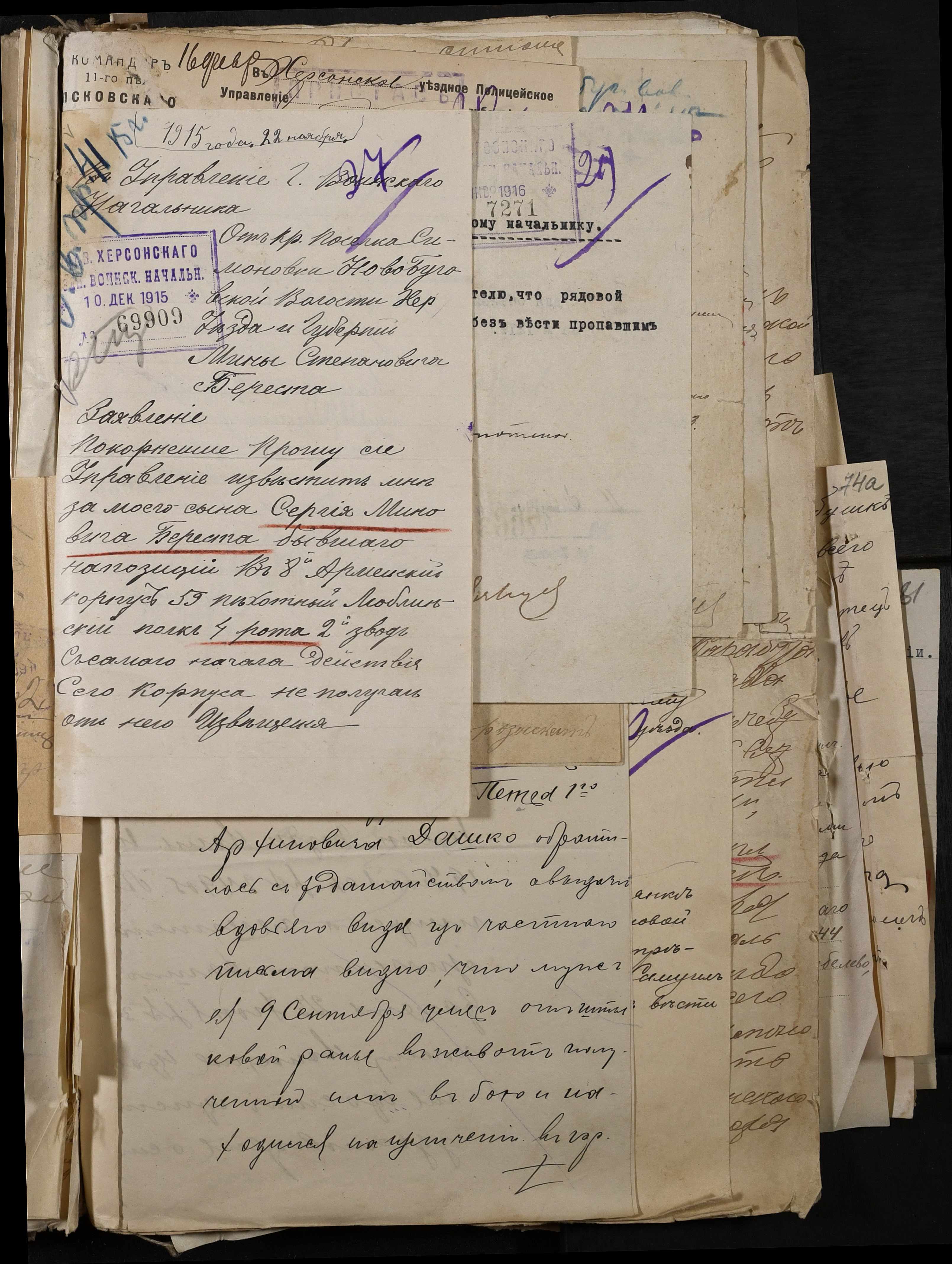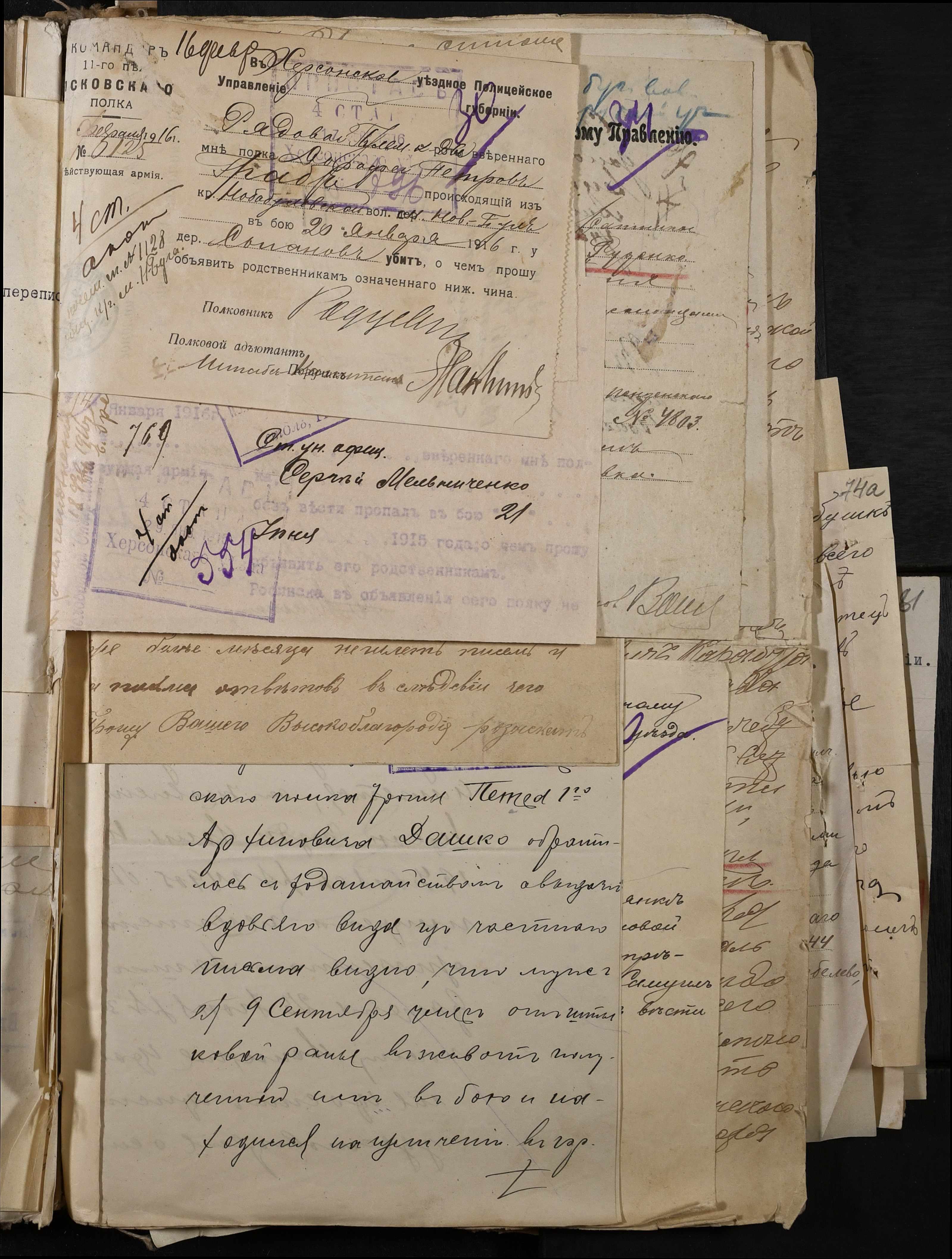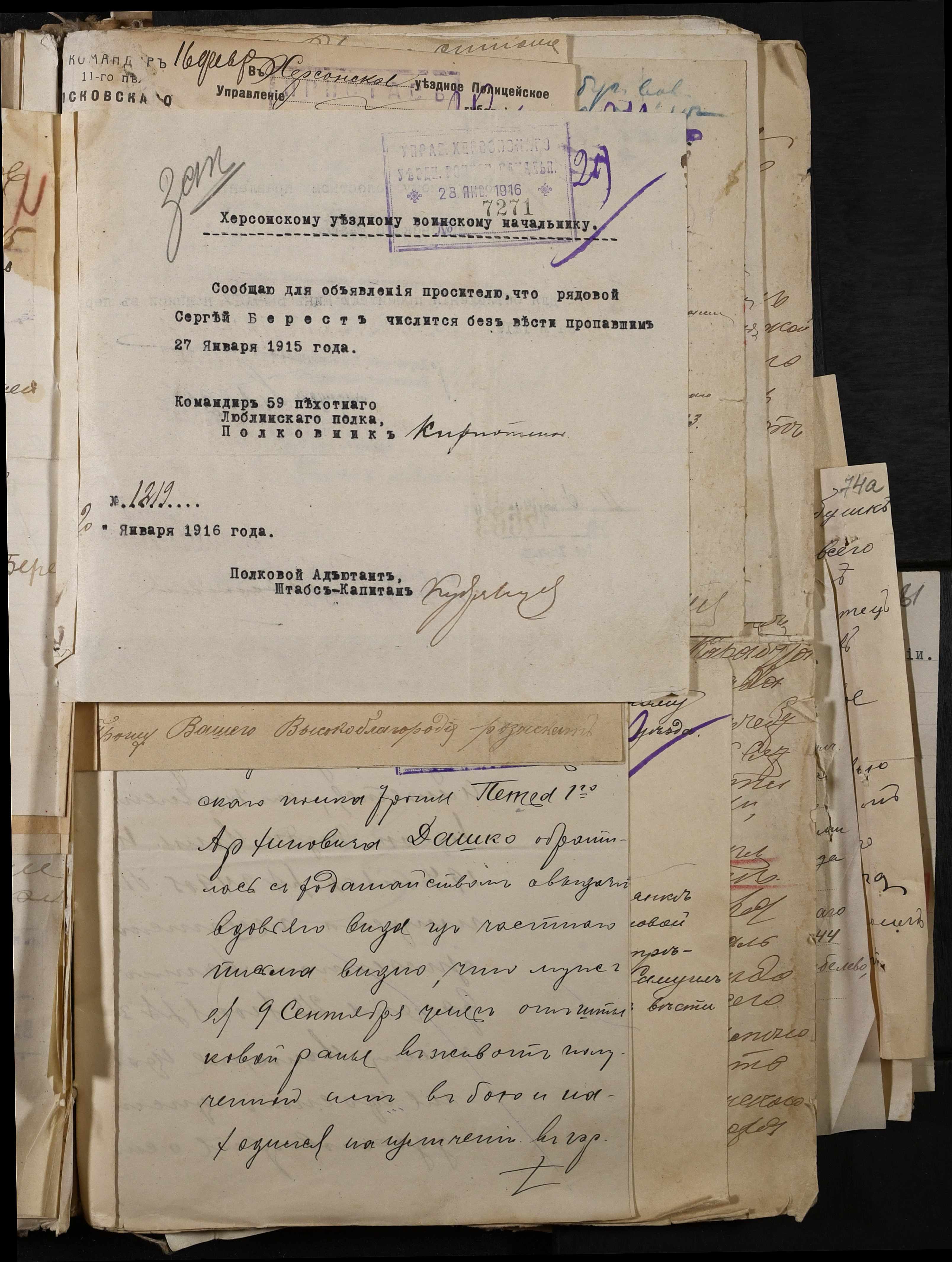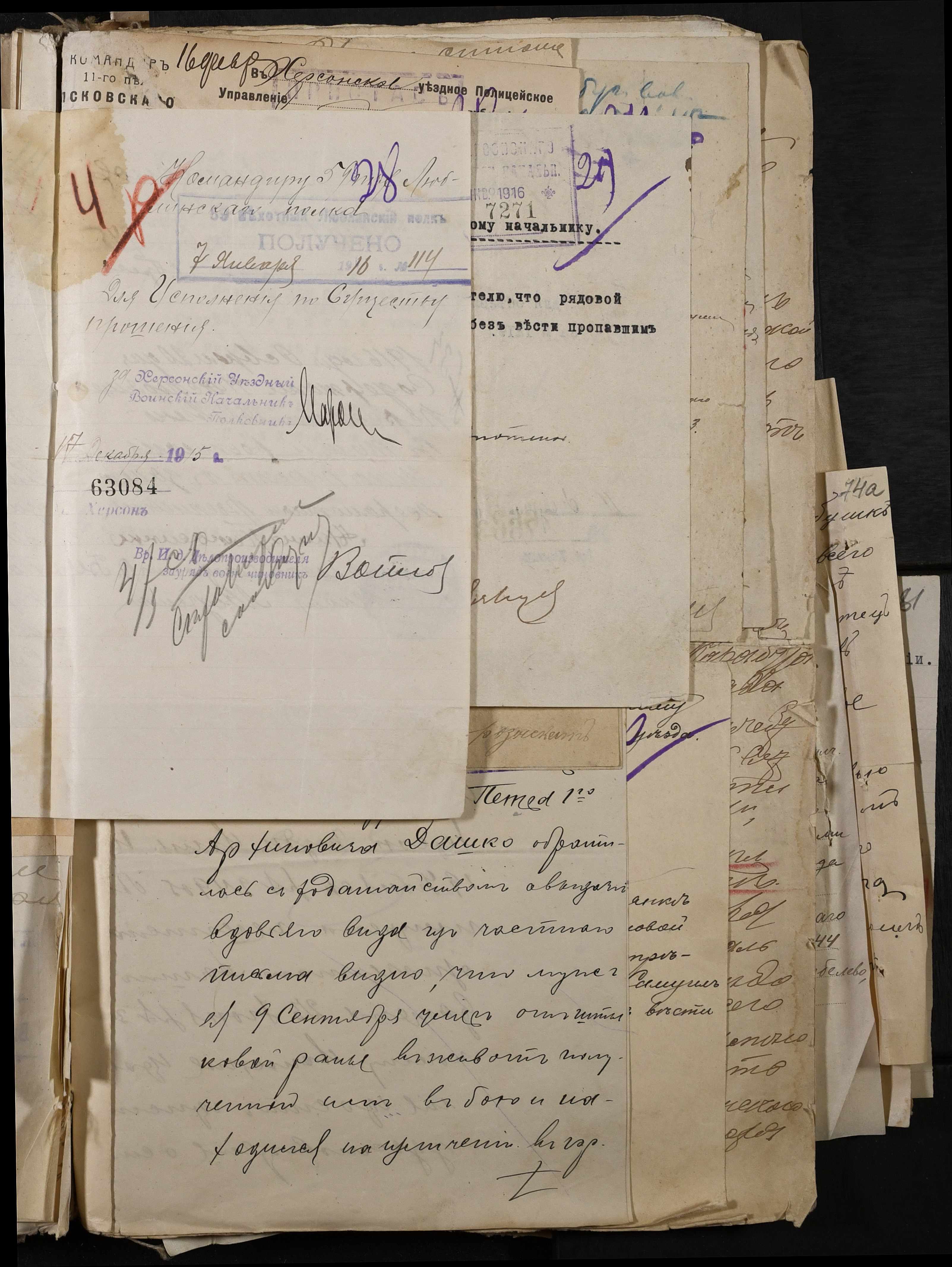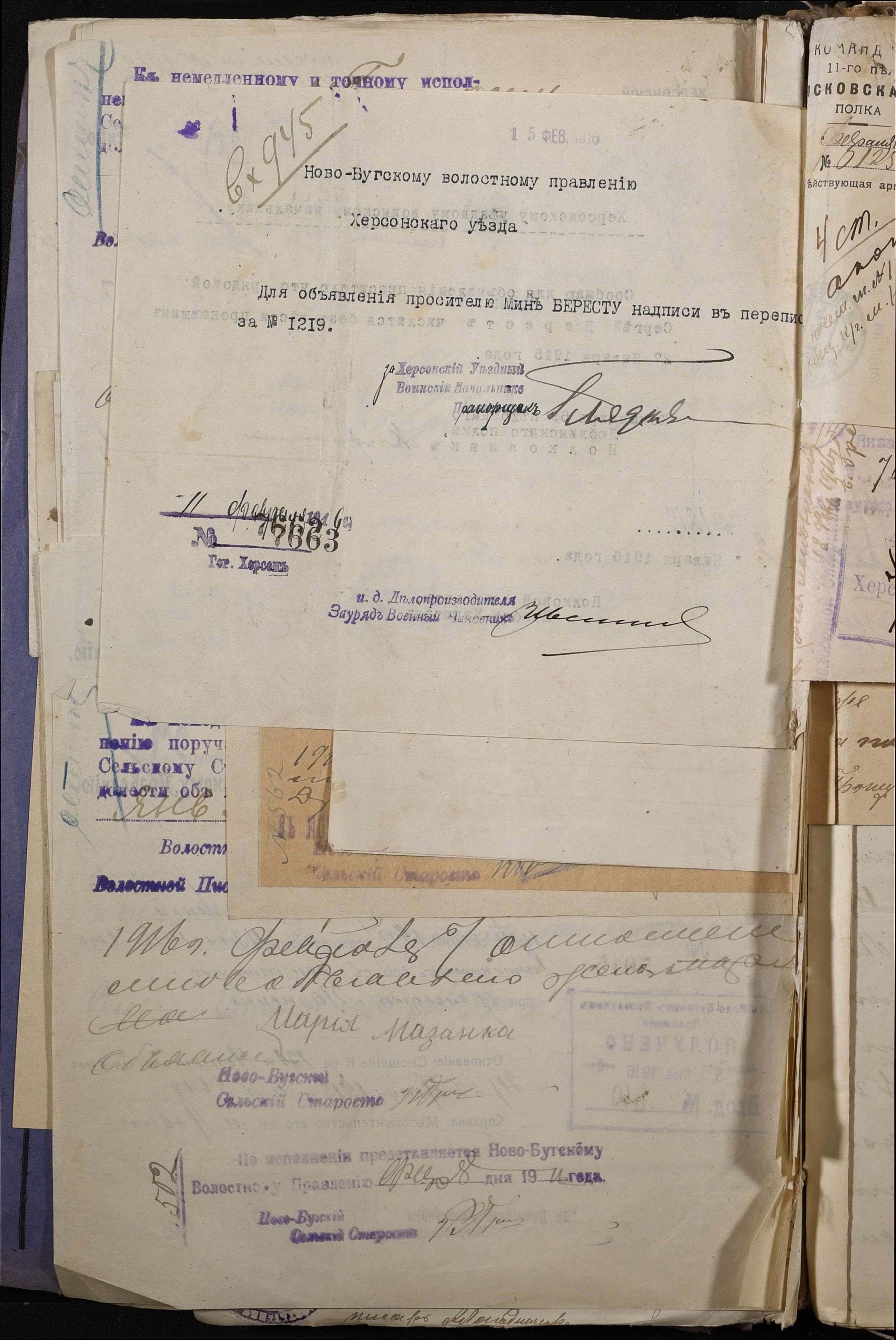• • • • Справа № 277 “Повідомлення Херсонського повітового військового начальника про вбитих, зниклих безвісти під час війни військовослужбовців, мобілізо-ваних із населених пунктів волості”