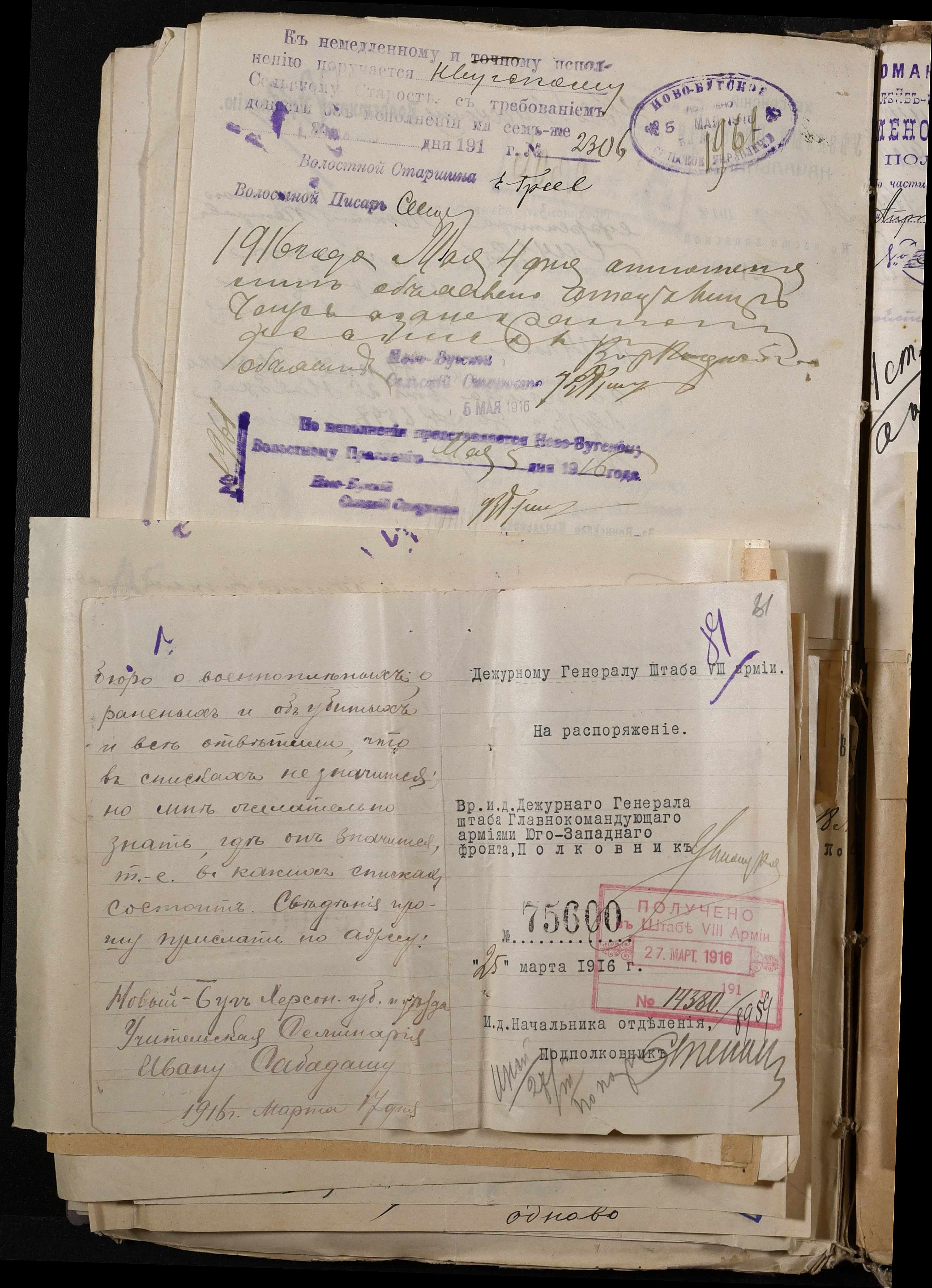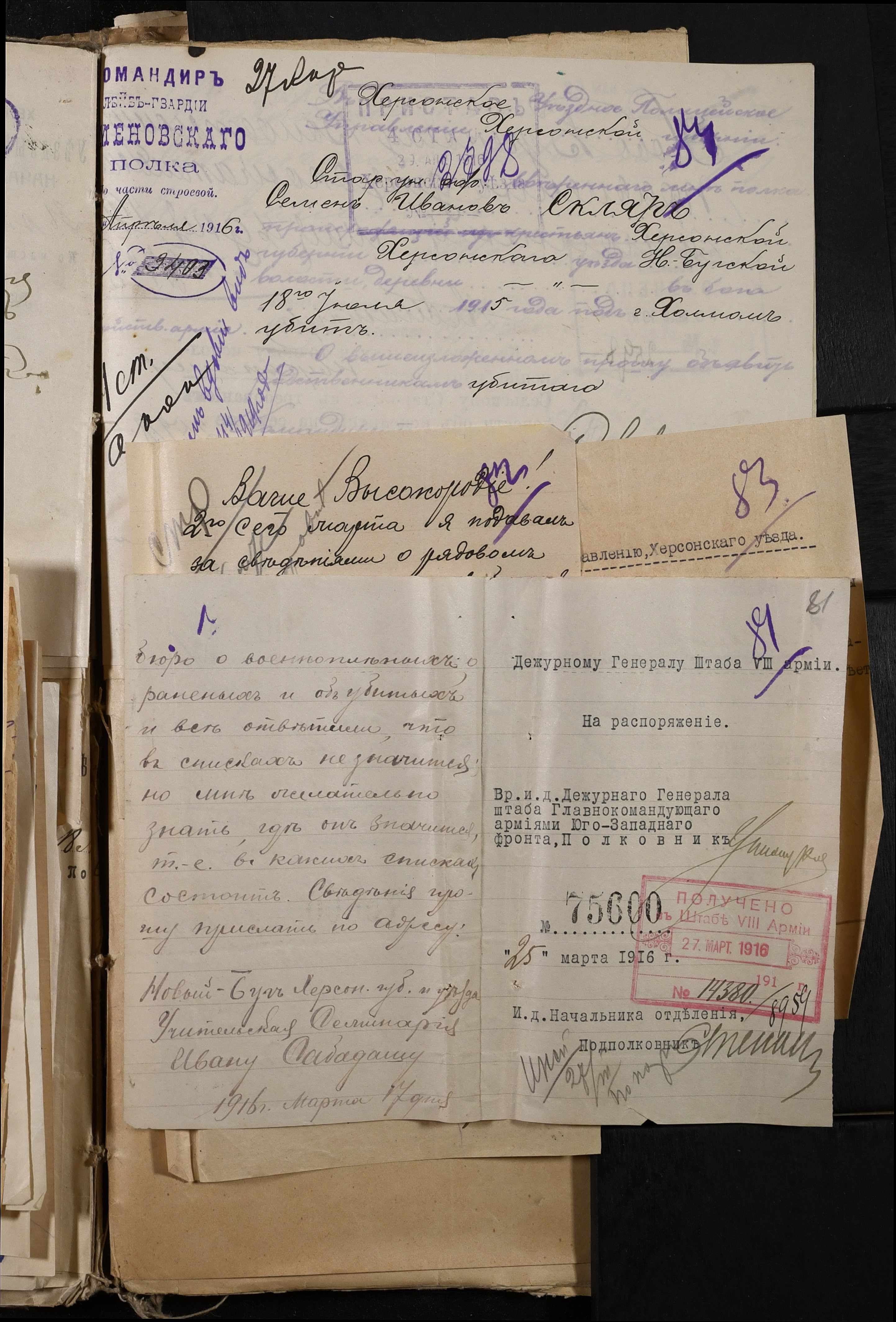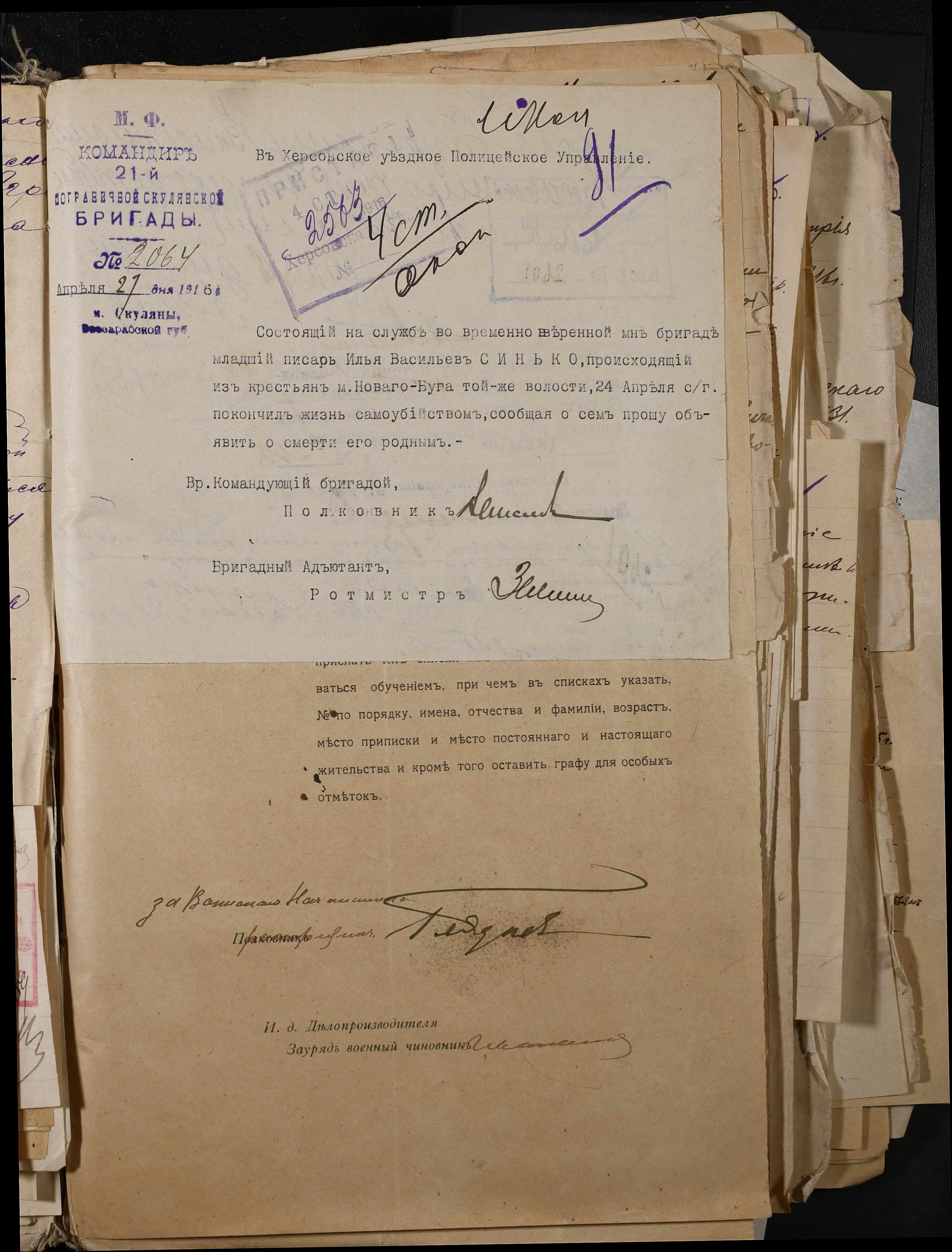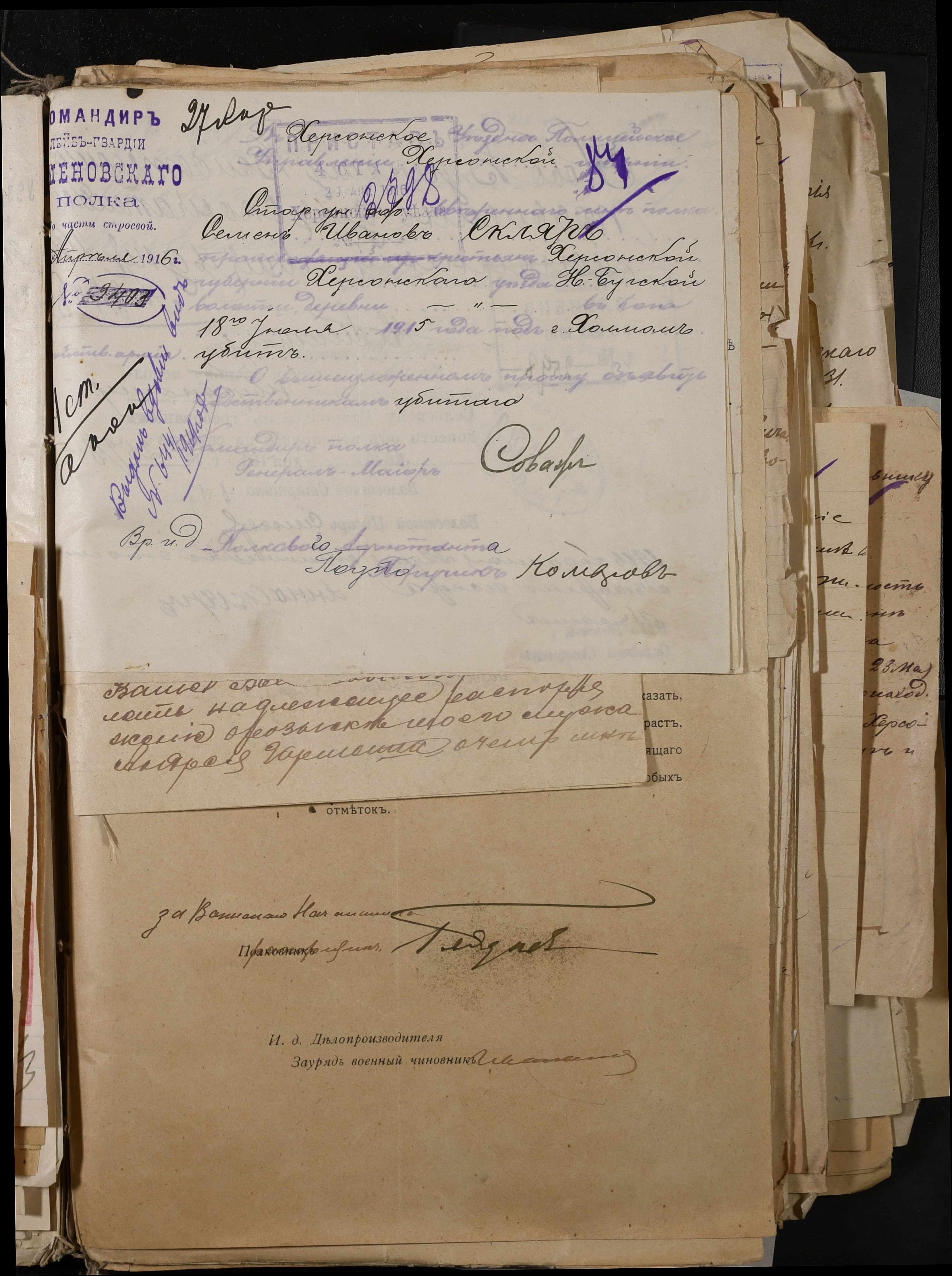 • • • • Справа № 277 “Повідомлення Херсонського повітового військового начальника про вбитих, зниклих безвісти під час війни військовослужбовців, мобілізо-ваних із населених пунктів волості”