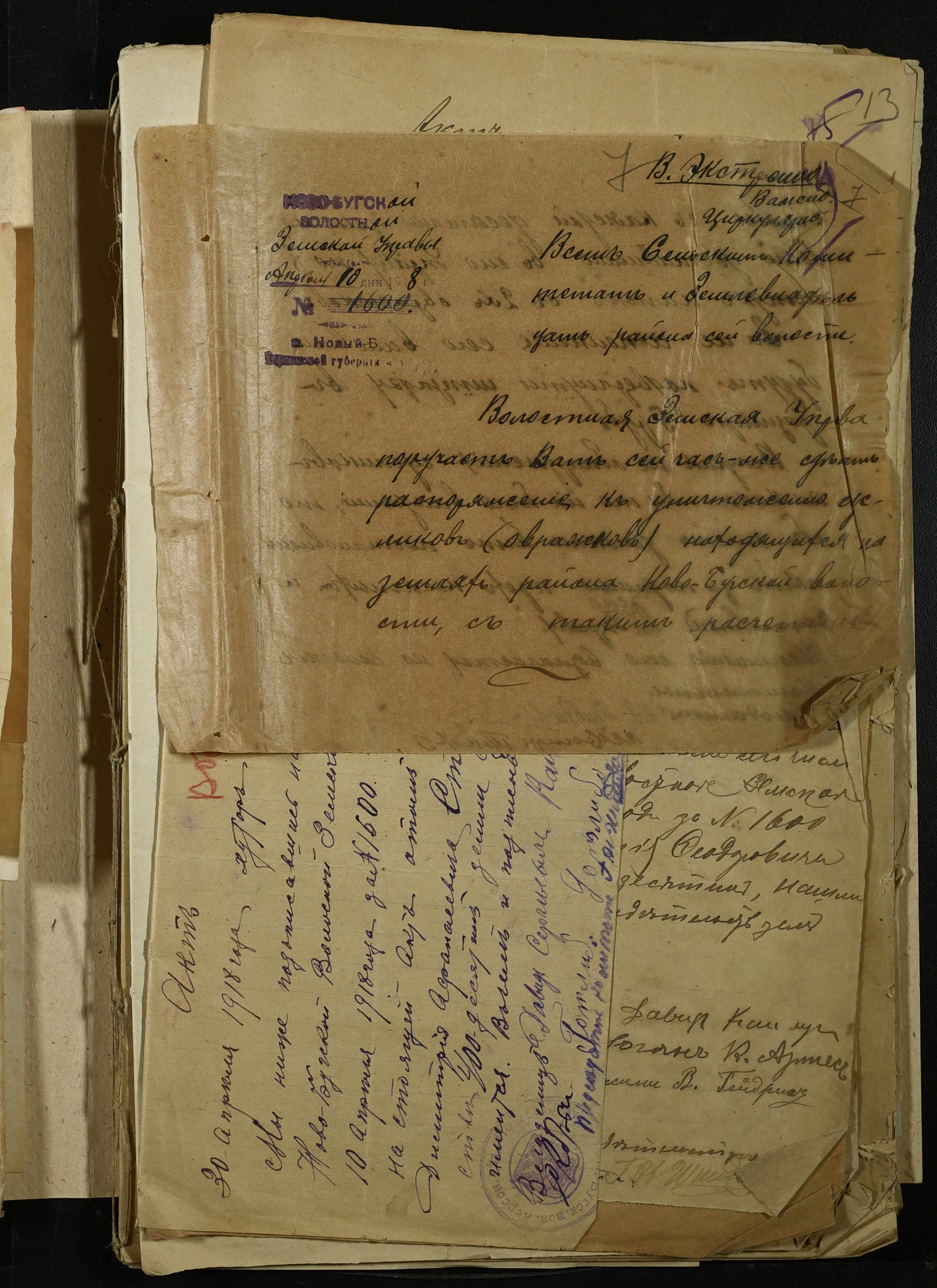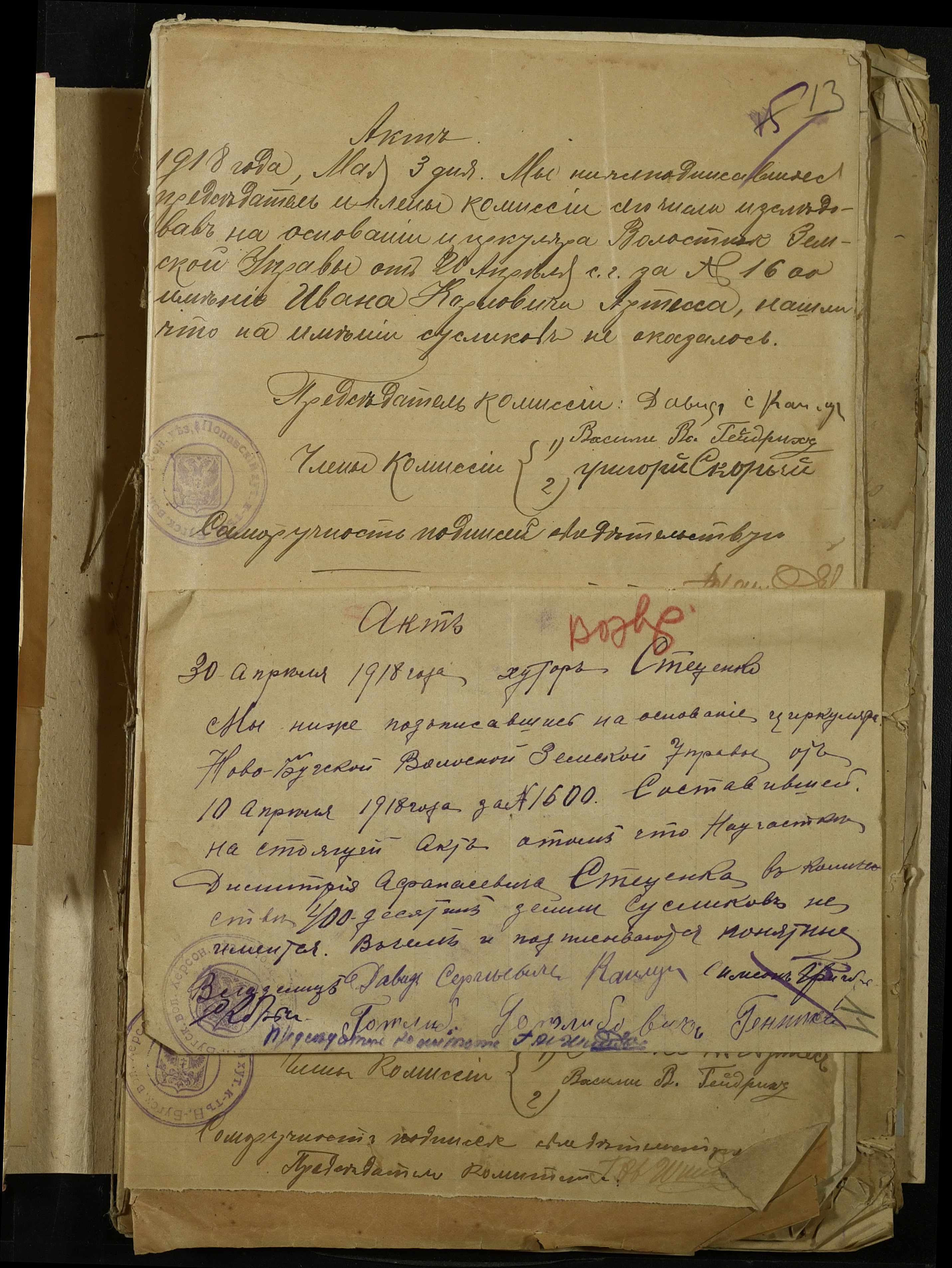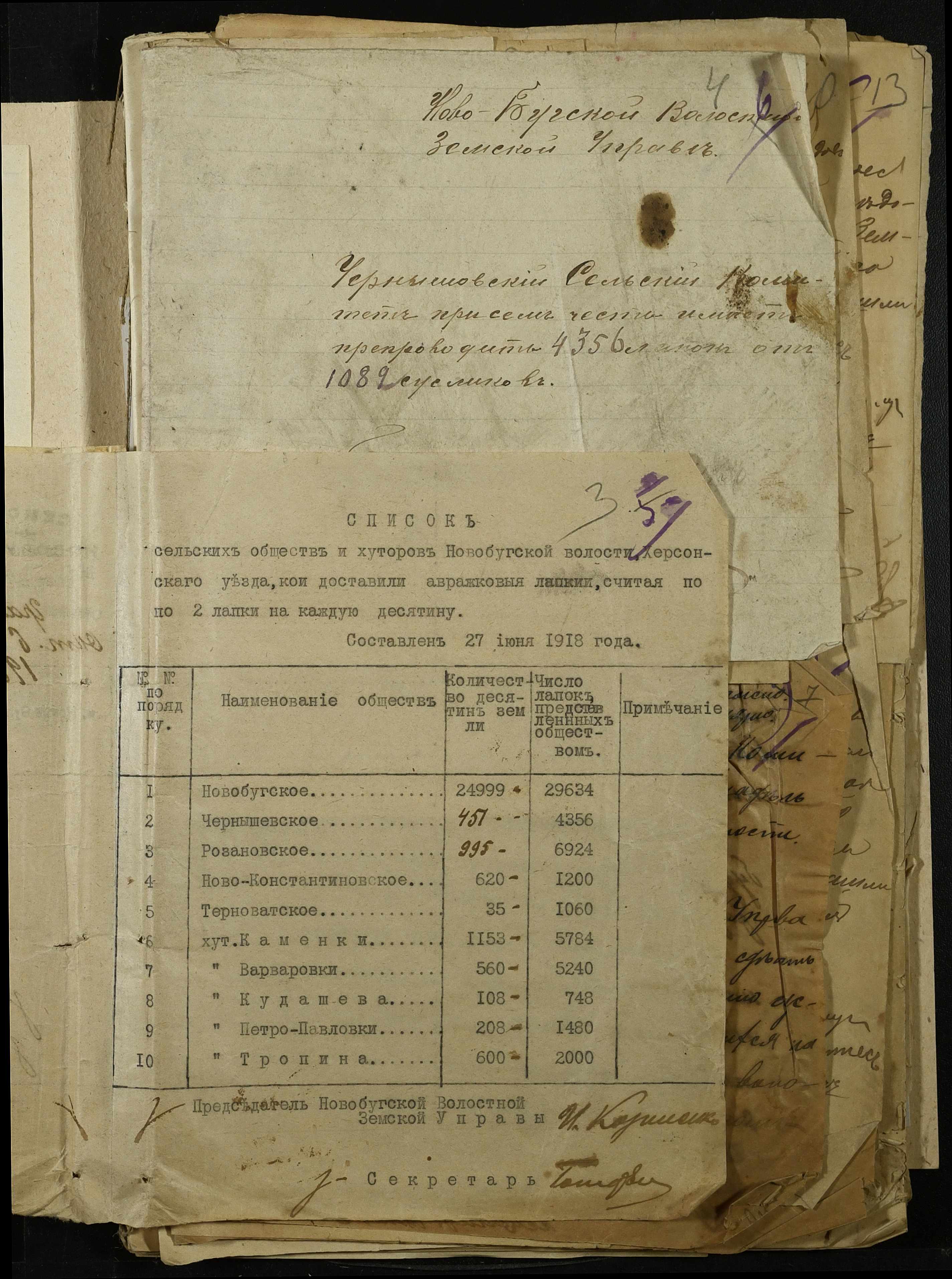• • • • Справа № 341 “Розпорядження Херсонської земської управи та листування з нею про стан та заходи боротьби з ховрахами, список осіб, які здали лапки знищених ховрахів, протокол та акт огляду полів, звільнених від ховрахів”