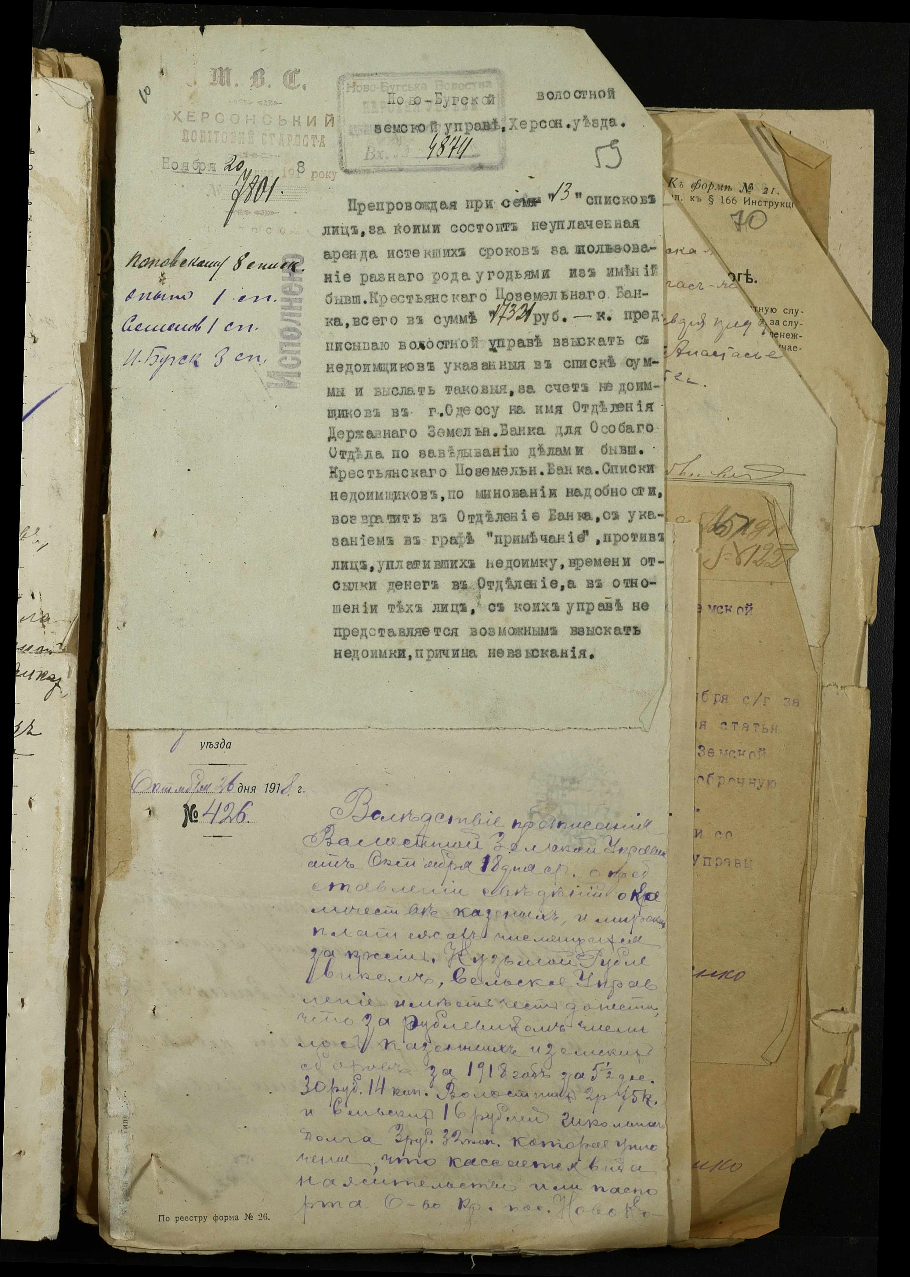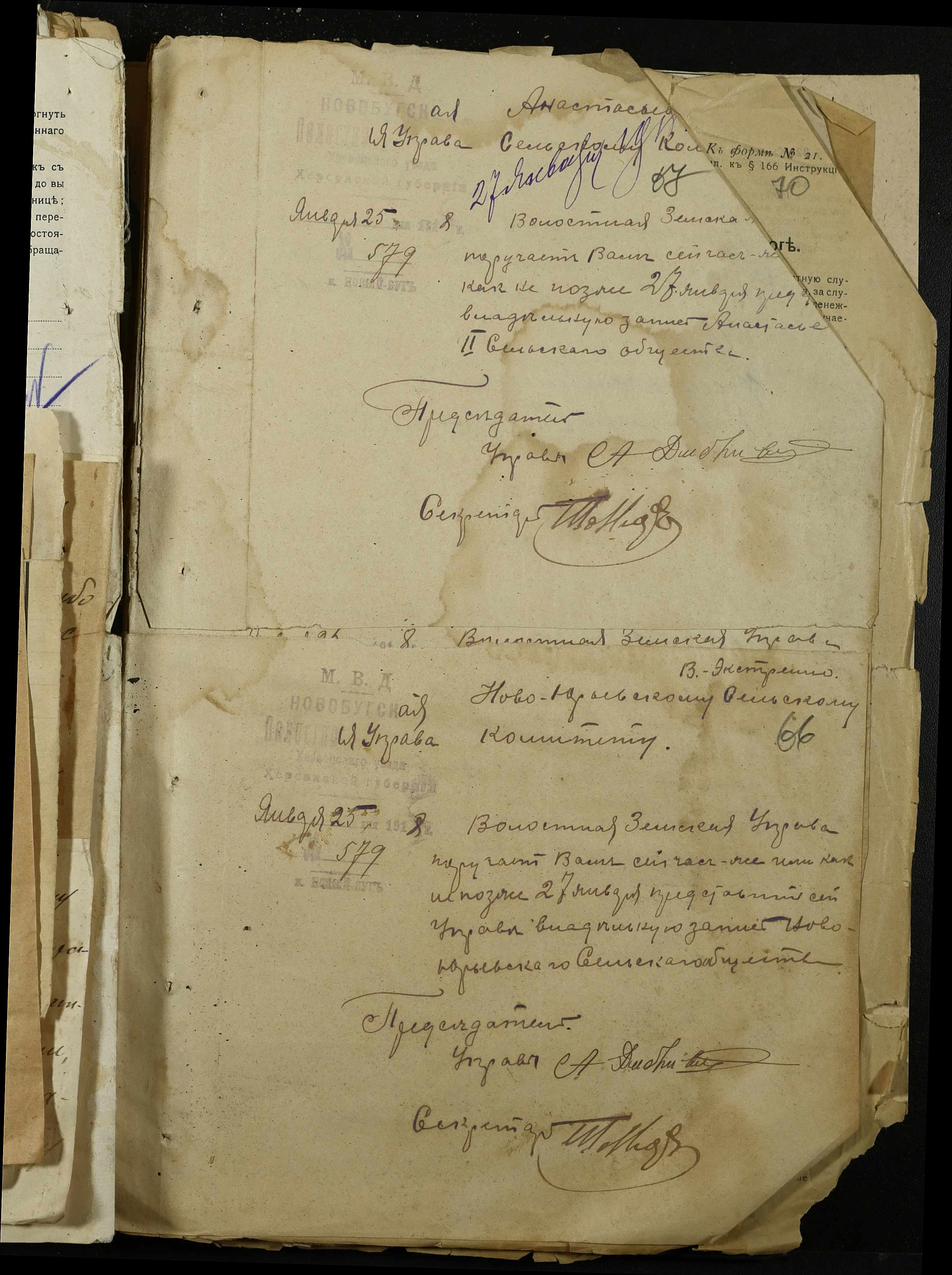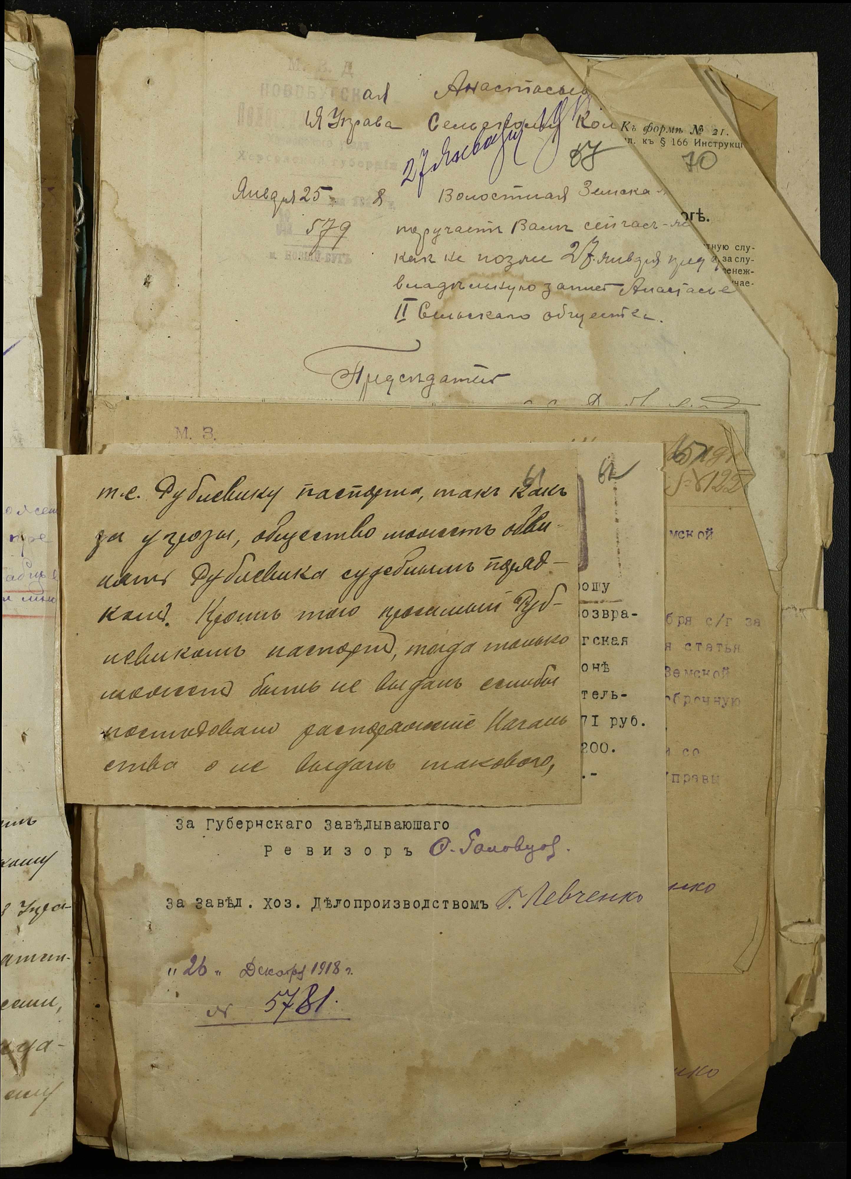 • • • • Справа № 368 “Обіжник Херсонського повітового військового начальника про призов в армію військово-зобов’язаних запасу, розпорядження повітового комітету солдатських та робітничих депутатів про надання допомоги нужденним родинам військовослужбовців, заяви та списки членів сімей військовослужбовців на отримання продуктів та мануфактури”