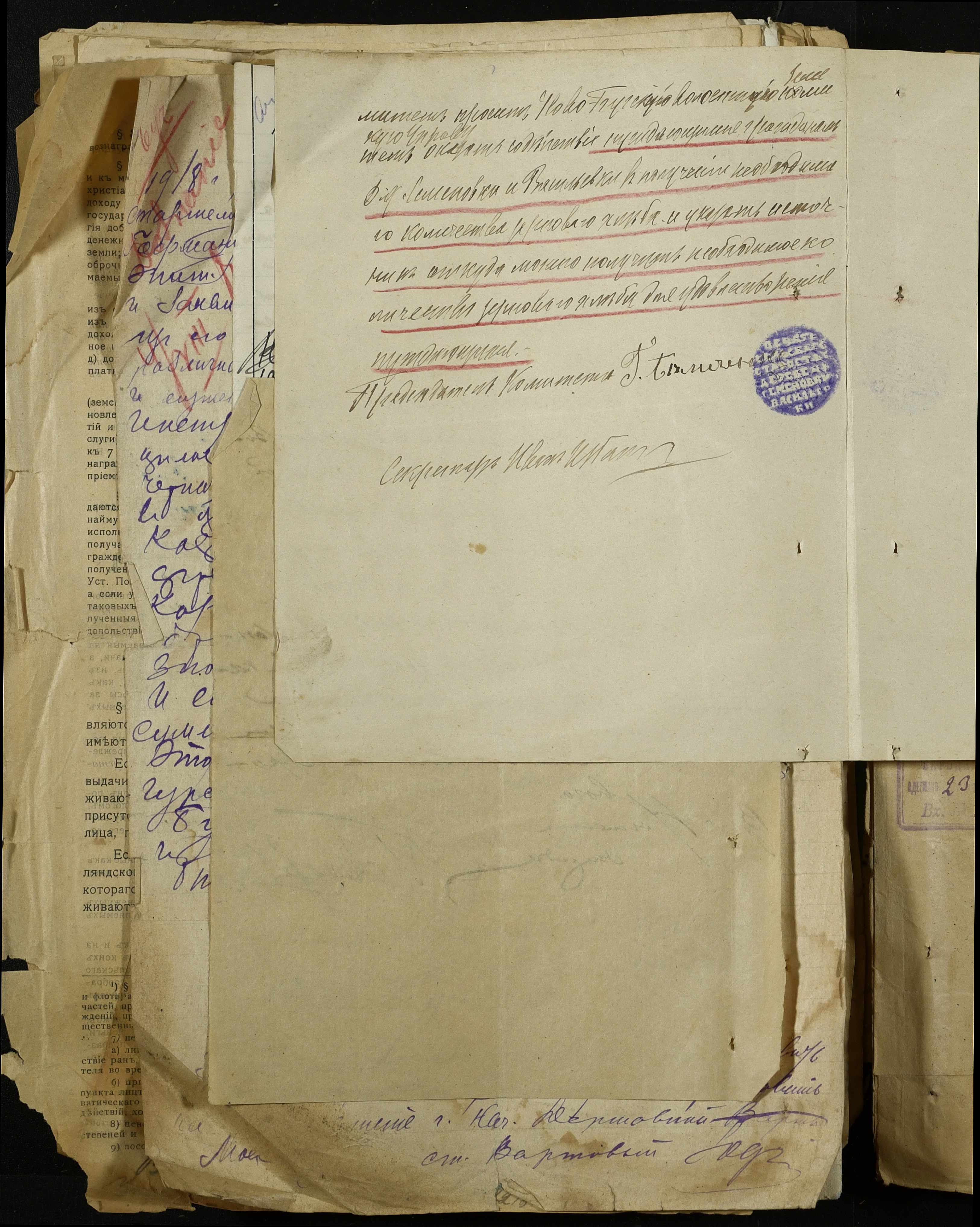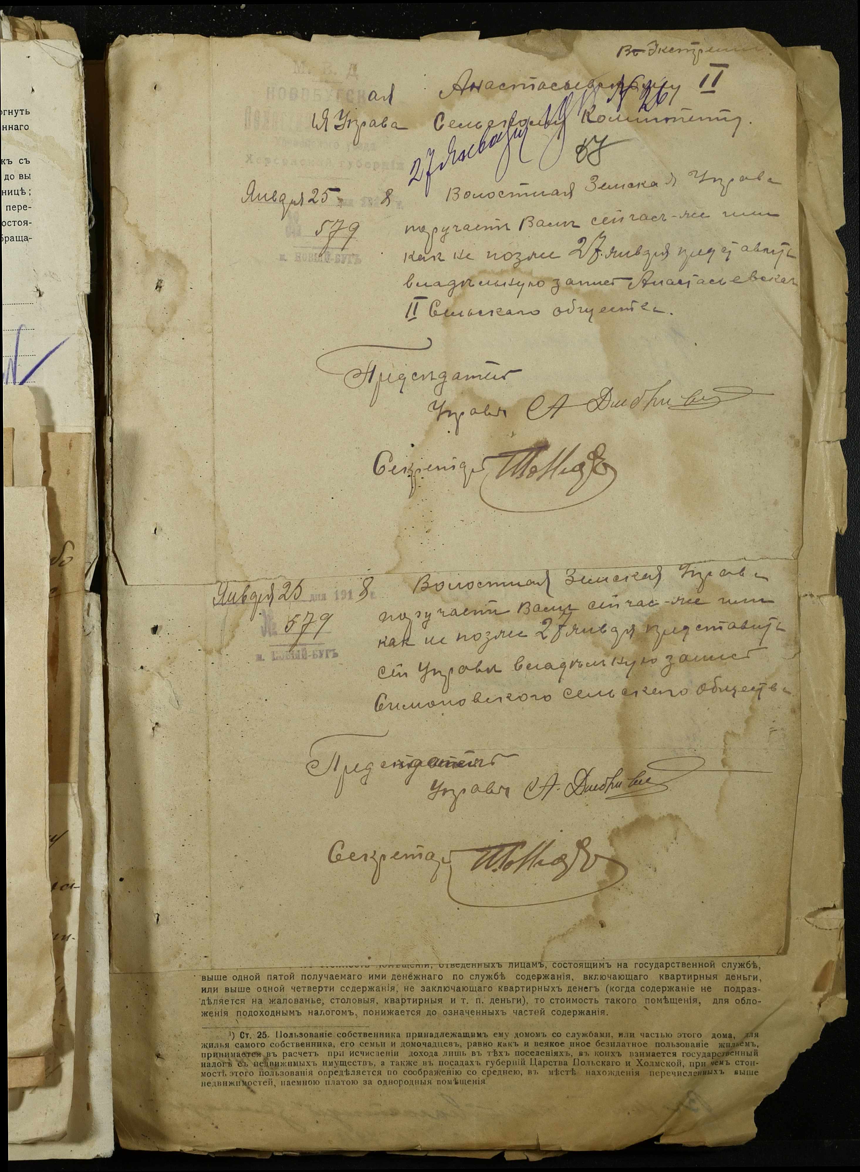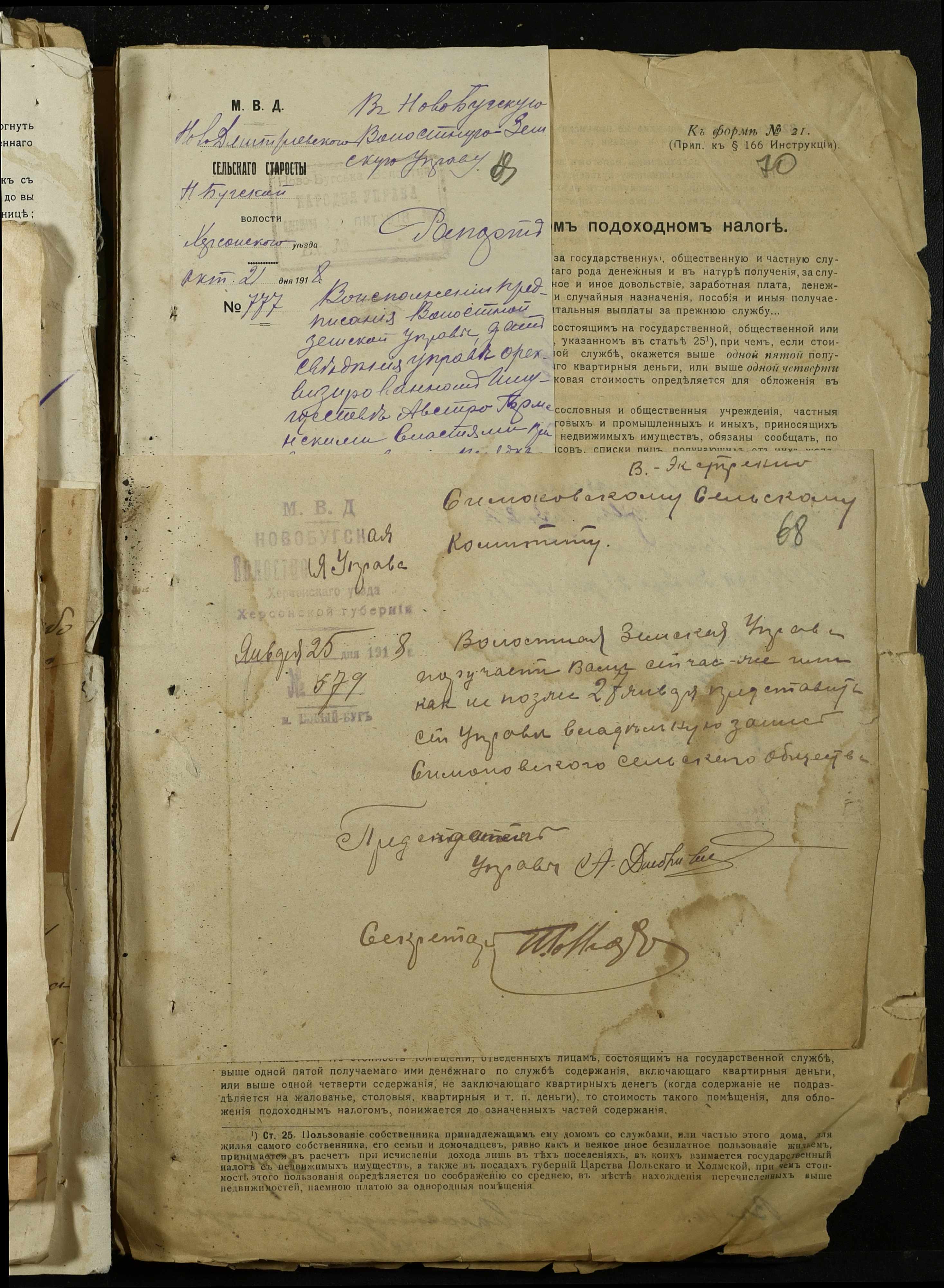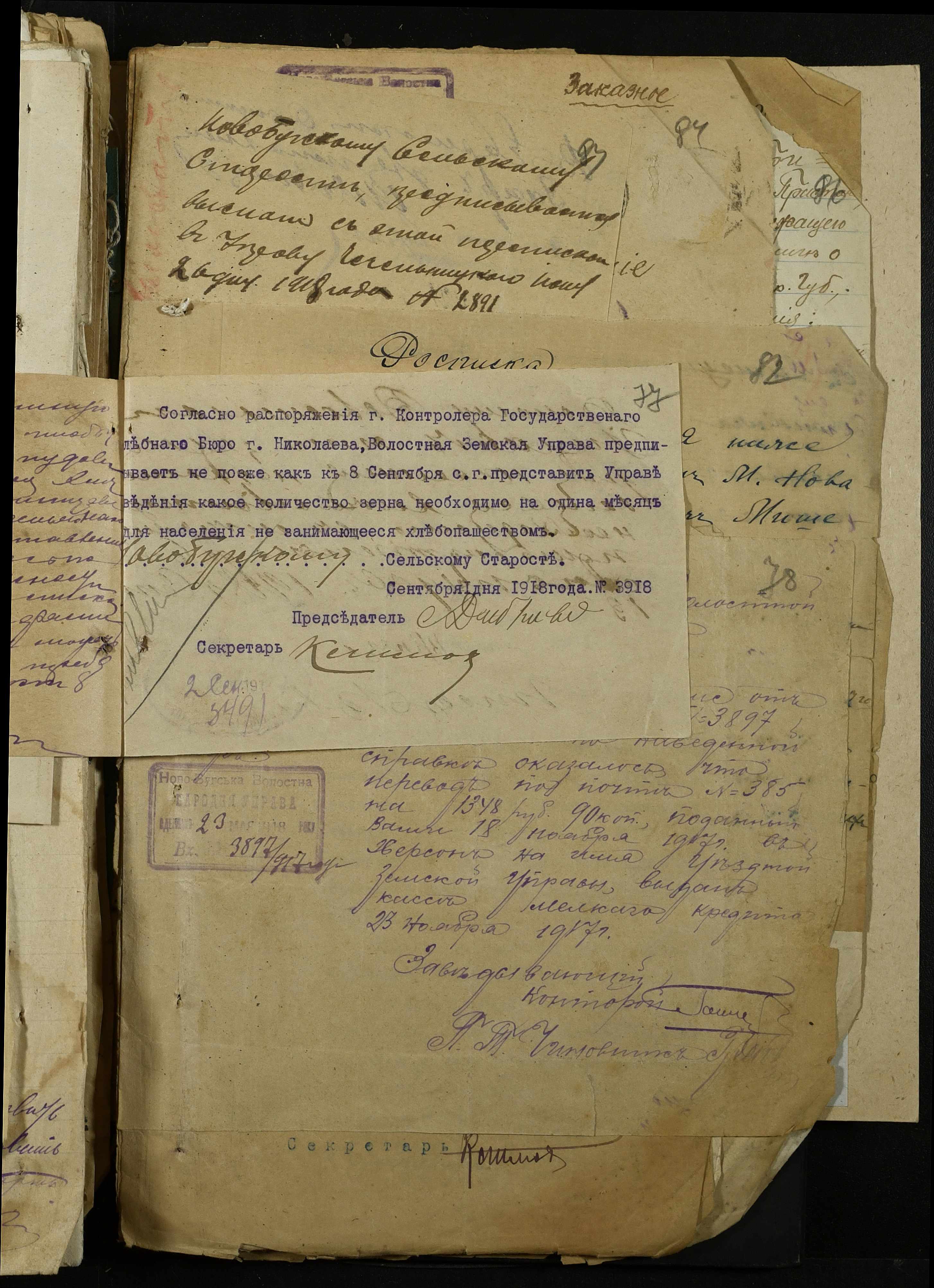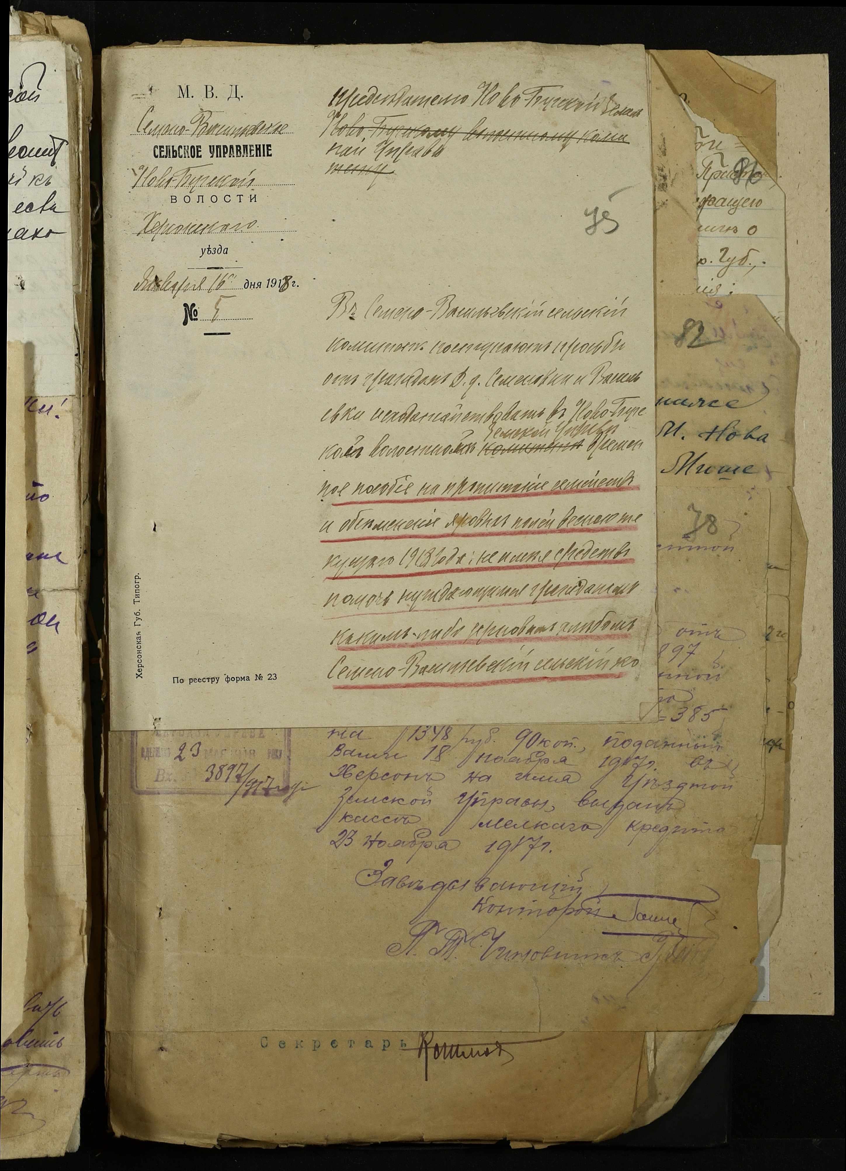 • • • • Справа № 368 “Обіжник Херсонського повітового військового начальника про призов в армію військово-зобов’язаних запасу, розпорядження повітового комітету солдатських та робітничих депутатів про надання допомоги нужденним родинам військовослужбовців, заяви та списки членів сімей військовослужбовців на отримання продуктів та мануфактури”