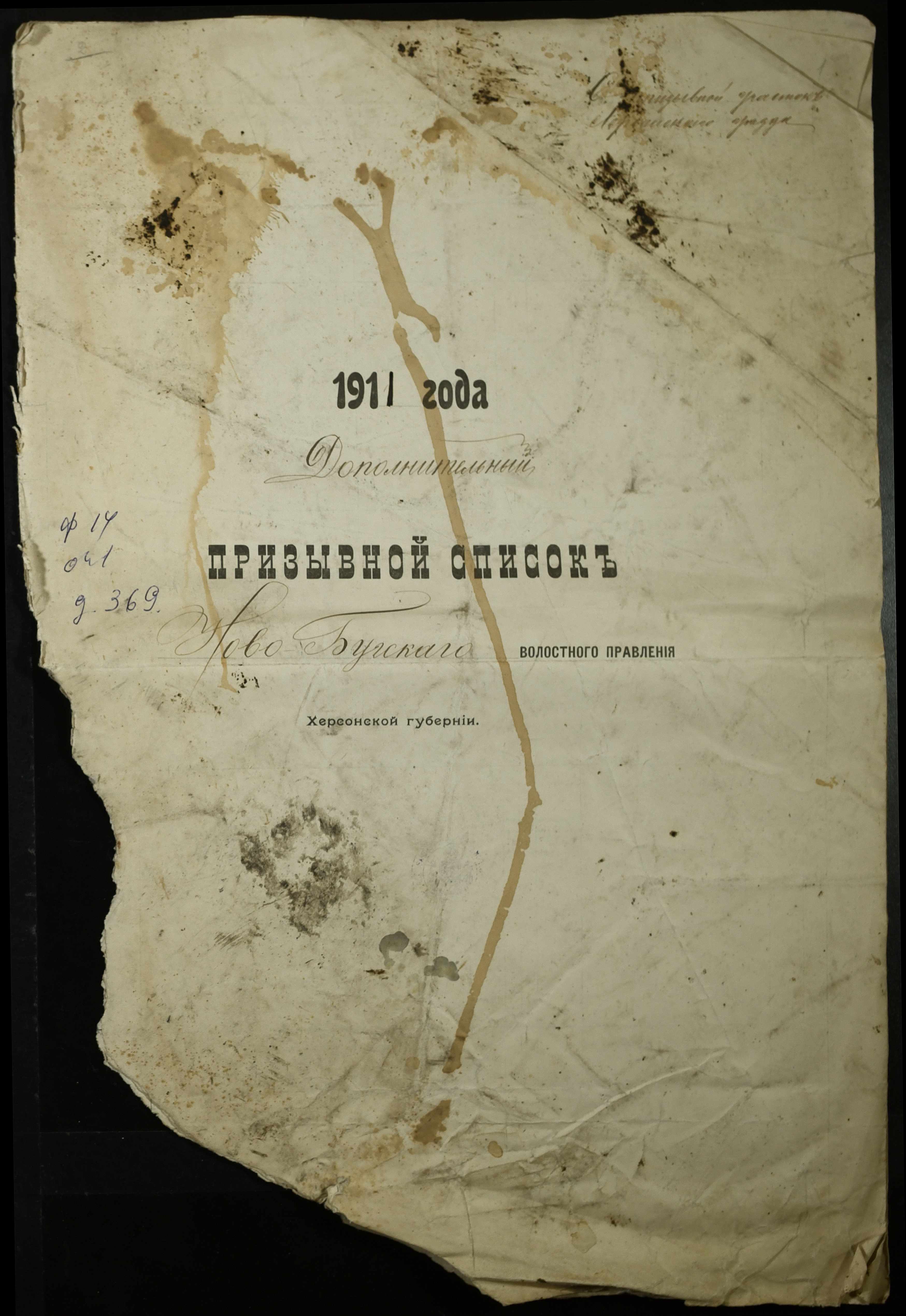 • • • • Справа № 369 “Додатковий призовний список ратників, покликаних для відбування військової повинності в 1911 році”