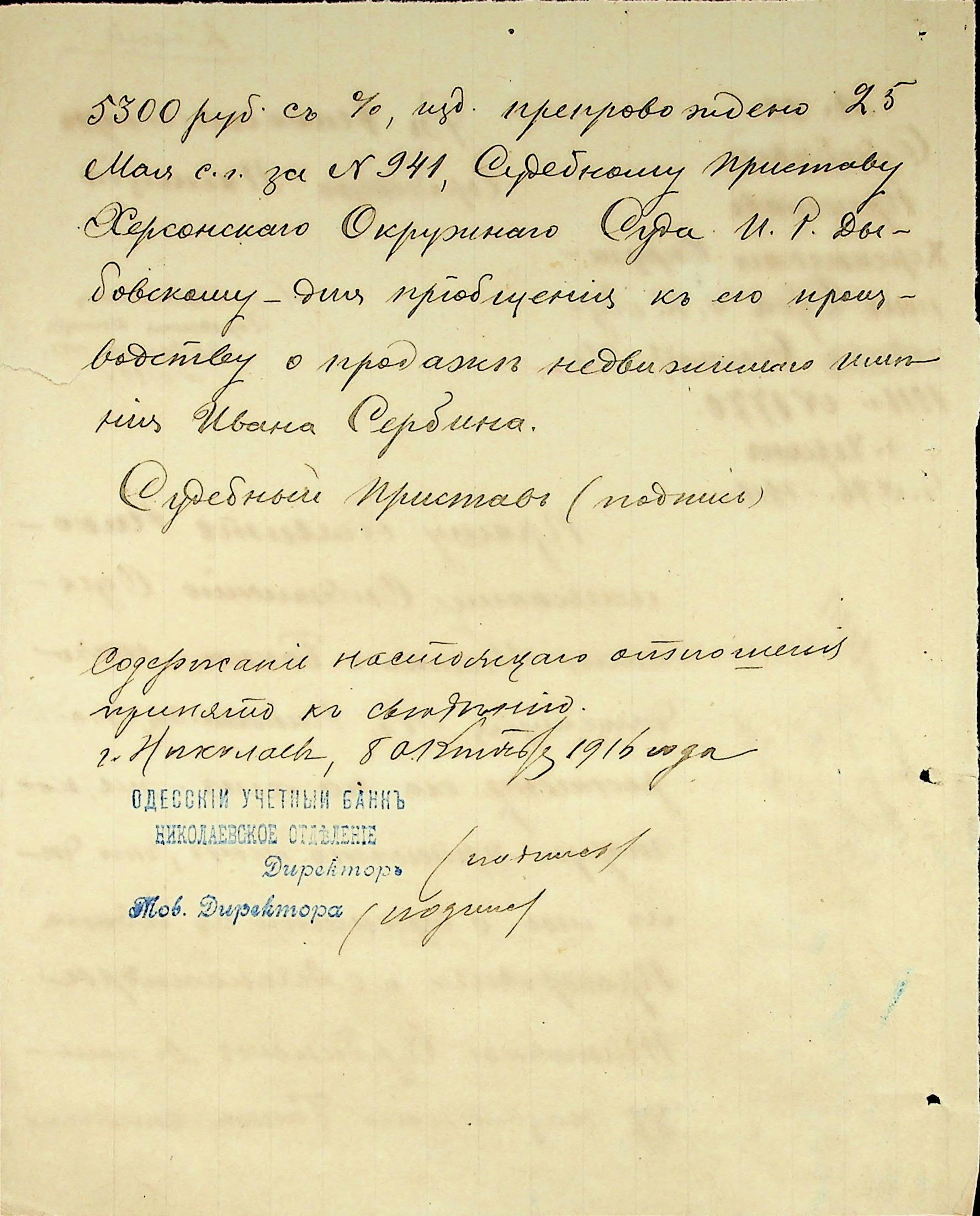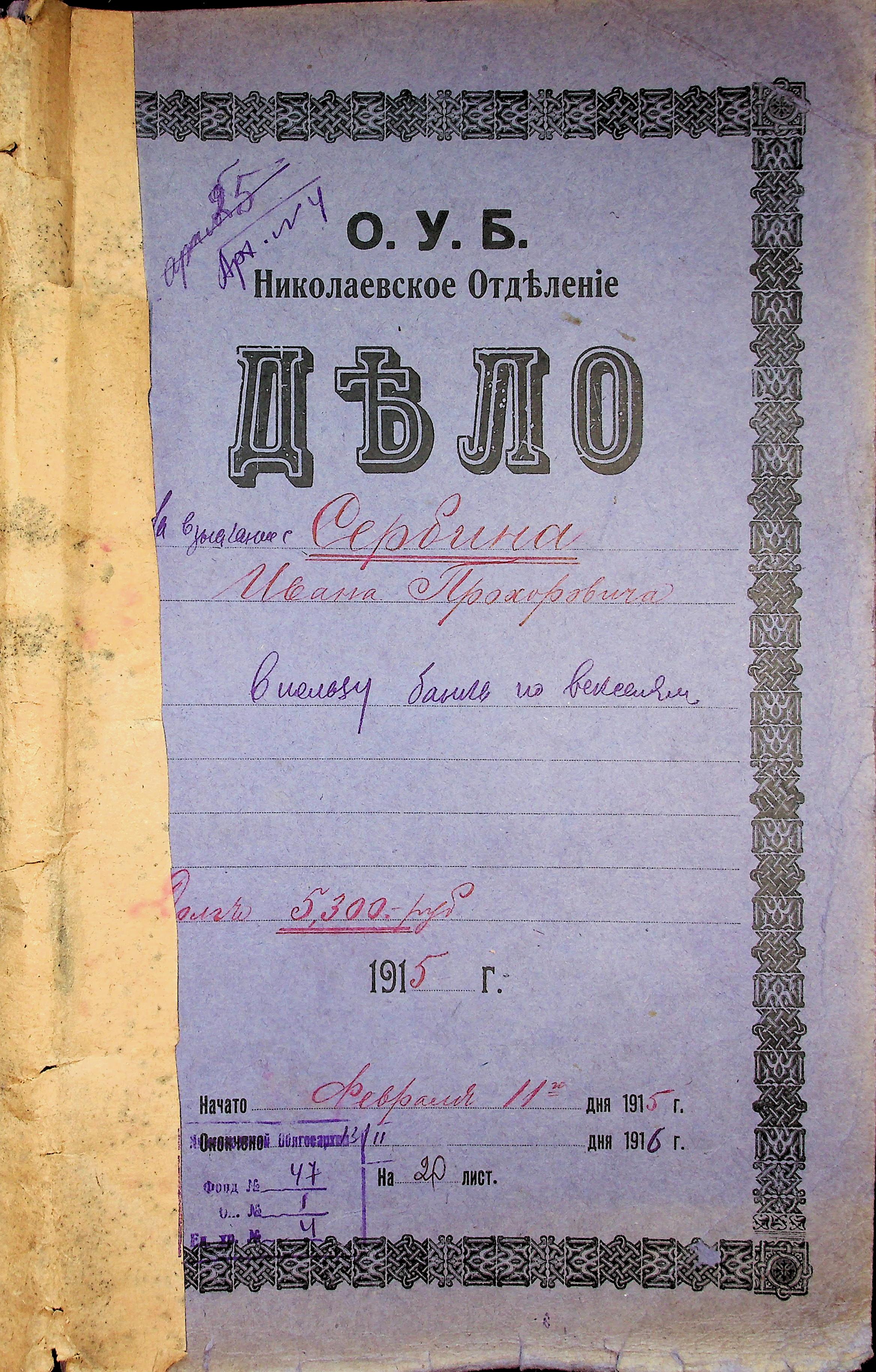◦ ◦ Фонд № 47 “Миколаївське відділення Одеського облікового банку”