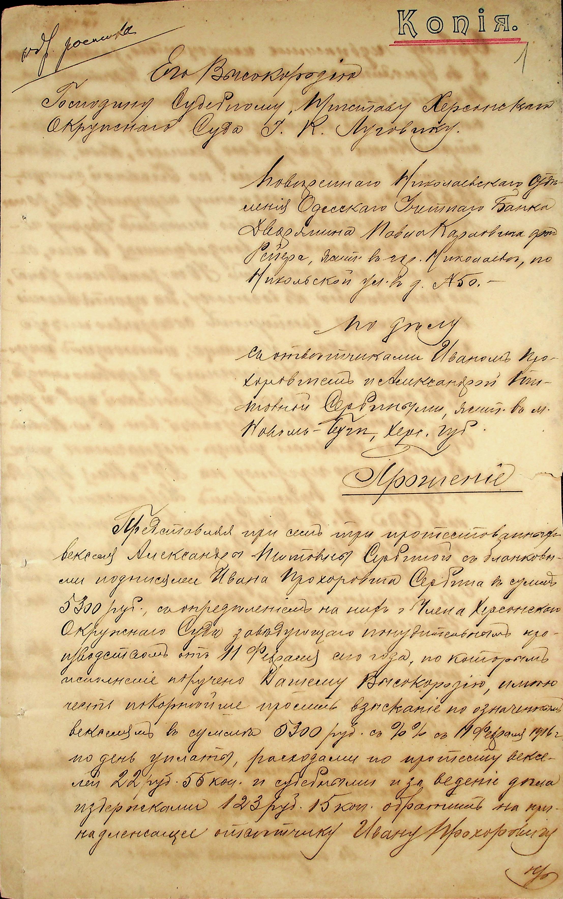 • • • • Справа № 4 “Цивільна справа про стягнення коштів з Сербіна І.П. на користь банку за векселем”